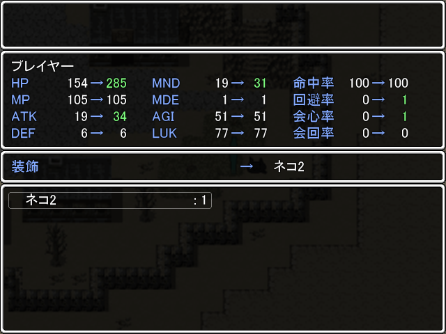 아오오니와의 복수전입니다모미모미로 분위기를 올린다음신스킬을 써주면 됩니다다음 마을씬회수좋은 술 마시고점원도 살 수 있습니다여기도 야옹이네코2를 얻습니다나중에 오라고 합니다돈이 모여서 요바이를 하러 왔습니다공짜로 묵을 수 있습니다저기 나무뒤에 고양이냥3을 얻습니다사실 돈이 있었군요살려주세요.....설산을 갈려고 하면 가이드가 있어야 한답니다이곳에서2층가서아래쪽의가이드를 구합시다이름은 리마군요위로온천은 아직 별거 없습니다돈은 있으니 주워둡시다설산여우 주의너냐여우가 적으로 등장하는데그냥 갑니다 마물을 식량으로 삼아서 인간과 친하다는군요중간에 산장에서 쉬고 갑니다중간에 망상이랑 싸우는데 강제로 이깁니다혼자로 오라고 합니다가는길에 호랑이랑 만납니다죽가서눈의 숲중간에 눈고양이랑도 만납니다더 안쪽엔 토끼이기고 돌아갑시다아래 동굴은 나중에 올 수 있습니다하루 더 묵읍시다이번엔 망상에 이기지만 다시 망상에 빠집니다 여우아닌가쑥스러운 리마씨사막으로 다시 돌아가서 용과 싸웁시다아래에는 또 인형이 있습니다고장난듯아래의 적은 못이깁니다돌아가서 방어구점에서 수리를 합시다망토도 덤으로 받습니다맨몸에 이상한거만 잔뜩입니다고쳐진 인형망토도 주고내려가면 풀이 죽어있습니다오른쪽은 일단 가서아오오니가 있고 심심하면 교회에 기부를 해서 씬을 회수합시다야옹이도 주워줍시다왼쪽으로 가서아래쪽에 마을집은 아직 못씁니다뱀이 있습니다마을 구경500원 주고 집을 살 수 있습니다여기엔 아카오니가여기는 좀 나중에 씬이 회수되는걸로 알고 있습니다산도 나중에막혀있어서 못갑니다집은 갈려니 유령이 있습니다 깜짝뱀이랑 싸워주고아래로 갑시다마물의 마을냥냥탑은 나중에가고말과 싸웁시다그냥 통과합니다마왕넌 못찌나간다용사와 싸울려는 마왕을 양이 저지합니다이 마왕말고 다른 마왕을 무찔러야 된다는군요협력을 요청실력증명을 위해 아까의 탑에 가서 마검사를 쓰러뜨려야 합니다돈도 훔쳐줍시다상자이건 존버합시다귀염모미모미를 써주면 쉽게 이길 수 있습니다