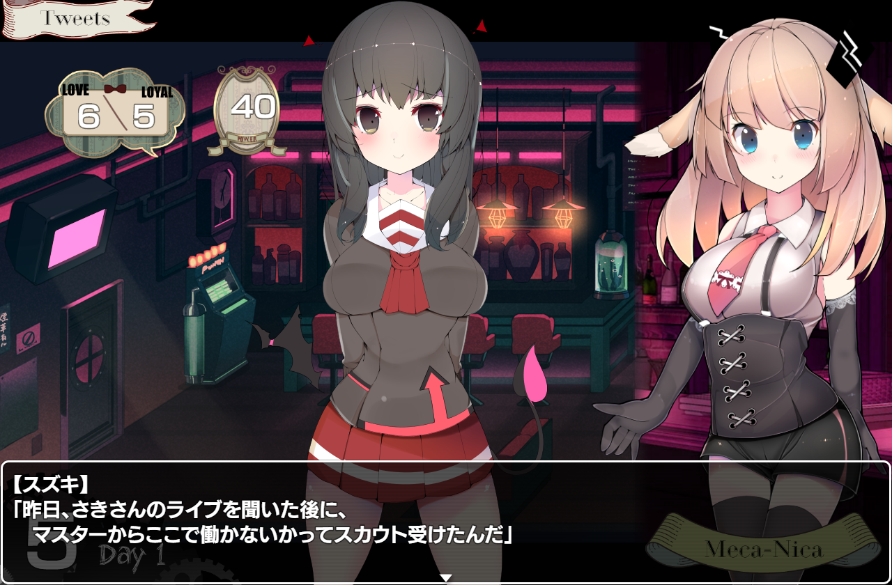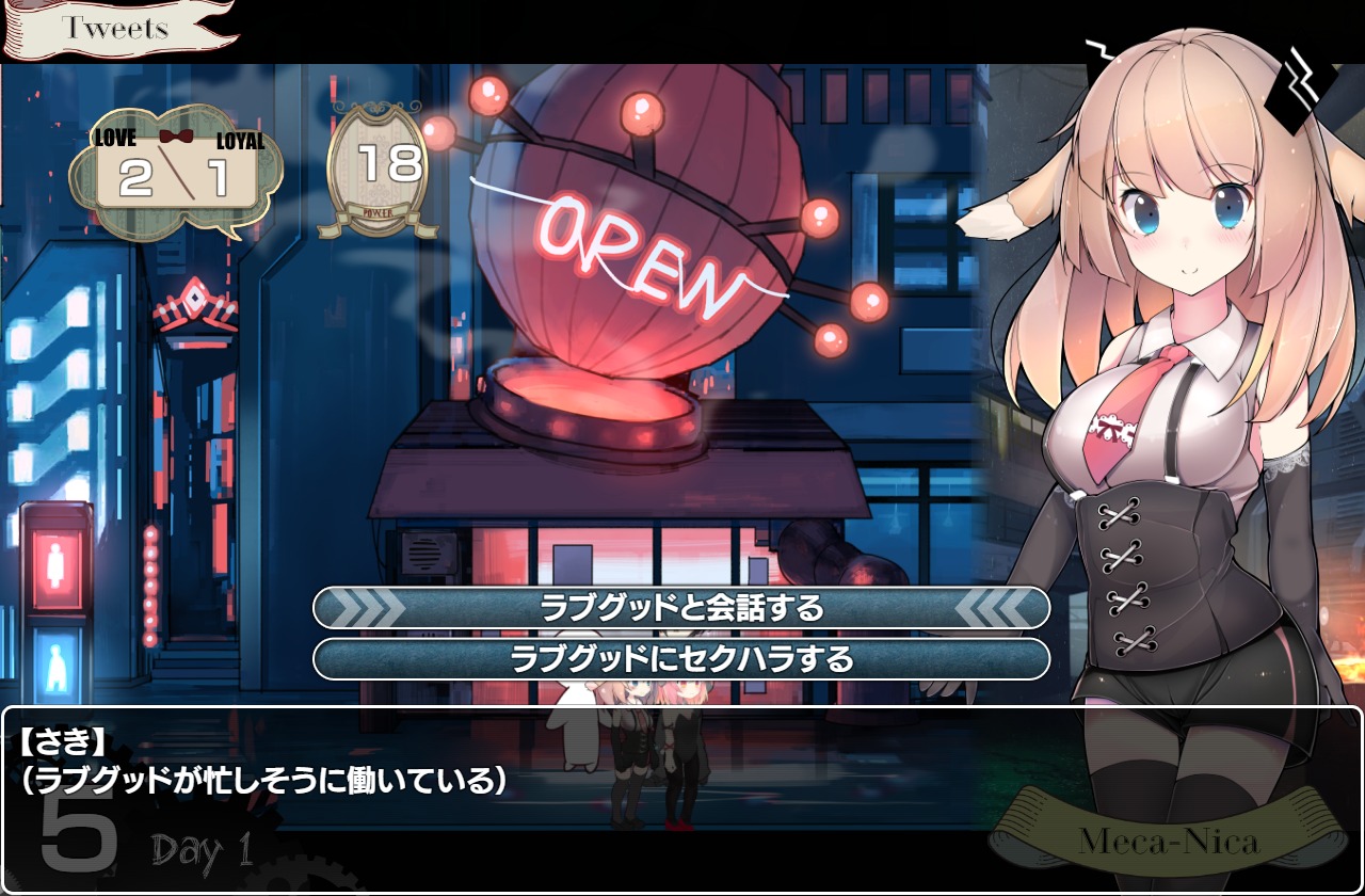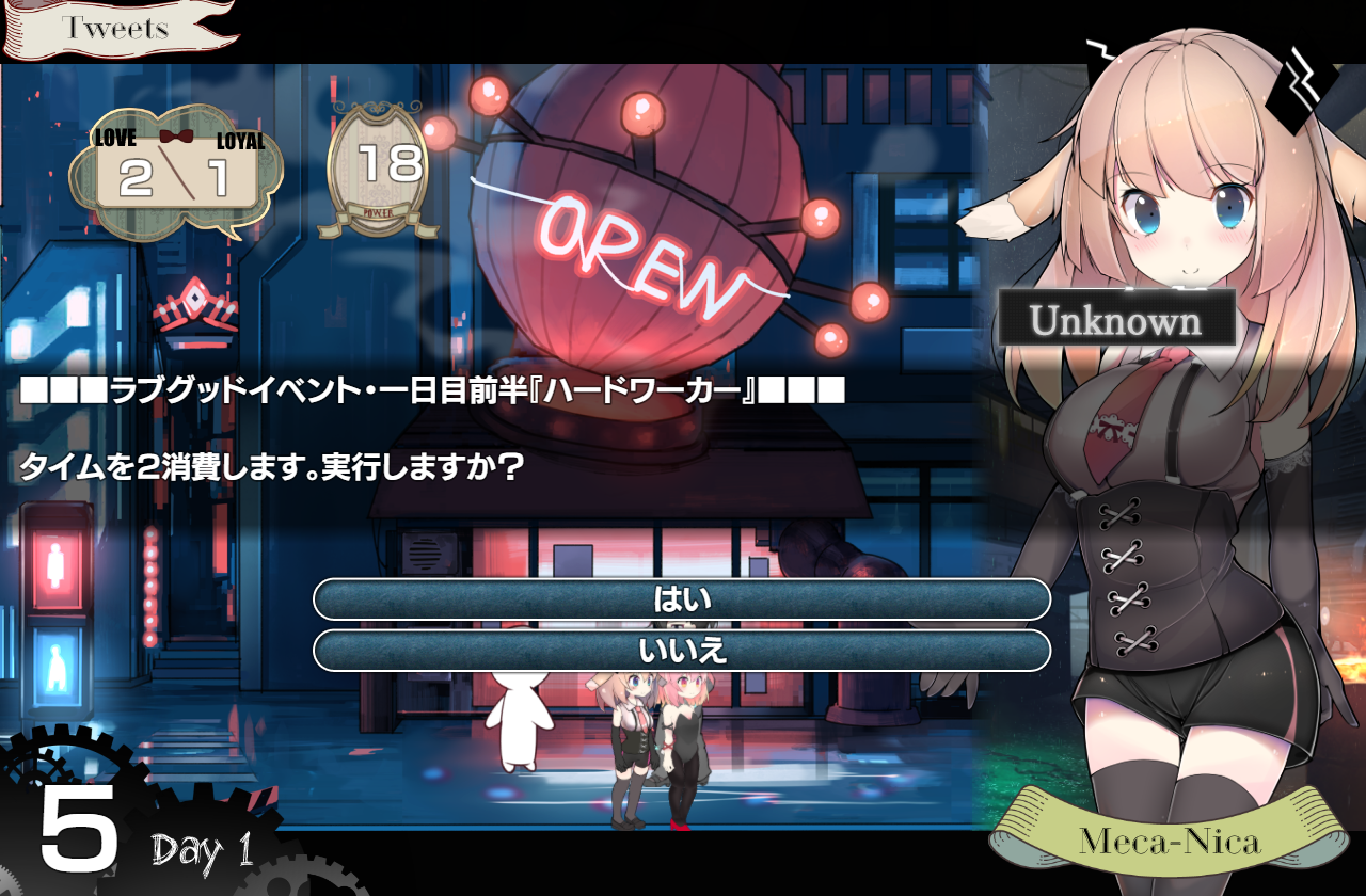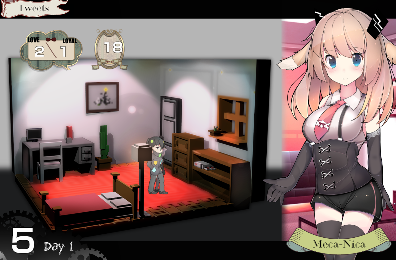 영문 모를 곳에서 부터 시작합니다성에가서 왕과 대화하면뜬금 게임 시작가챠에서 뽑아온 초고성능 안드로이도 메카니카입니다길막하는 사람을치워주고이곳 저곳 구경합시다상점도 구경포탈을 타고 이곳 저곳 놀러 갈 수 있습니다서브씬을 볼 수 있는 지식을 얻을 수 있습니다이 마을의 명물 인과시계입니다 과학으로 속칭 신을 물리치고 많은 미래를 만들었다는 군요안쪽에는 일에 대한 튜토리얼 입니다악기는 팔아버려서 메카니카가 악기가 됩니다연출모드에 대한 설명숫자만큼 악기를 칠때마다 파워가 소모됩니다악보의 좌상의 숫자가 코스트고 4개의 음으로 코스트를 맞추면 해당 음악이 흘러나옵니다고객이 편안하게 있을 수 있도록 음악을 연주하랍니다가끔씩 직접적으로 알려주지만 대부분 저렇게 추상적이게 알려줍니다 따뜻함을 뜻하는 음악을 연주해줍시다올바른 음악을 연주해주면 됩니다다음은 겨울느낌이 나는 음악곡의 명 곡의 특성 곡의 설명 이 3개를 통해 고객이 원하는 음악을 유추해 내면 됩니다 이건 바로 겨울의 음악을 연주해줍시다성공적인 라이브였습니다주인공이 볼품없기에 메카니카가 더 좋은 주인님에게 가길 원했지만 메카니카는 주인을 자신에 맞게 교육시킬려고 합니다아무튼 선물도 받고옷은 평상복이 더 예쁘더군요호감도=최대충성심이랍니다나오면 인과계가 2로 줄어있습니다 은근 소름일단은 다음날이상의 주인님으로 만들려는 메카니카시간이 0이되면 강제종료1노래 첫날 여기에 러브굿이 있습니다 딱히 현재는 중요하진 않습니다대화하면먹을걸 줍니다1단계는 죽죽 다들 말을 걸어 줍시다포탈은 스토리진행과 관련은 없습니다호감도가 10이되면 오라는데 1회차에 3일안에 가능한진 모르겠네요카드키를 읽어버린 로봇펭귄은 퀴즈대결이 가능합니다여기를 구경하고 턴엔드시간과 호감도에 따라 서브이벤트도 일어납니다 엔간하면 자연스레 보게 되어있습니다추천하는 오므라이스를 먹었습니다일을 도와줘서 충성심을 회복한다던가 추억을 쌓을 수 있습니다시간을 소비하는데 각각 일정 호감도일때 이벤트가 있더군요 시간나면 봐줍시다이쪽에서배수구에서 카드키를 주울 수 있습니다 지금생각해보면 이런거 안하고 호감도만 올리면 가능도 해 보이네요아무튼 카드기획득심심하니 옆에도 말을 걸어 줍시다이 인연을 축복해줄 노래이걸 불러줍시다이분도 대화가 가능하더군요 초반 튜토리얼 말해주길래 아닌듯여기도 첨에 뭔가 의미심장한 말인줄 알았는데 전작이야기더군요 까먹어서 모른다고 답했습니다 ㅋㅋ죽 와서카드키를 주면다른 이벤트가 생깁니다 이런식으로 대략 3번정도 다들 가지고 있습니다메카니카의 새로운 친구를 축복하기 위한 노래이걸 불러 줍시다 아래쪽들은 보시면 속성이 두갠데 비용이 비싼만큼 다른 부가효과가 있더군요 전 비싸서 안했습니다포탈의 위치도 새로 생깁니다이건 시간을 써서 돈을 낚는건데 비추합니다포탈구경이전에 얻은 메이드력과 지식들을 소비해서 이런저런걸 얻을 수 있습니다상점은 일단 휴대전화는 꼭 사줘야 합니다추억도 잘 쌓아줍시다 이거 귀찮다고 안했는데 이벤트를 해금할려면 꼭 해야하더군요시간은 소비가 안되지만 충성심을 회복하는 이벤트가 많기 때문에 사용한뒤 이벤트를 봅시다수성의 3일째의 마지막날 하늘에서 건물들이 쏟아져 내리며 수성을 종말을 맞이 합니다영문모를 사망 후 영문모를 곳죽 따라갑시다나와서 성으로 들어가면 다시 원상복귀이상한 꿈을 꾸었다고 생각하는 메카니카하지만 사실은 3일간동안 타임루프를 하는 것이였습니다나가서바로가면마스터대신 스즈키가 있습니다이곳 저곳 둘러보면서 모두와 대화를 합시다켈피에겐 우리가 지금 타임루프를 하고 있다고 이야기해 줍니다 다행히 기록은 되어있다는 군요다 둘러보았다면 탐정사무소로 갑시다대화알고보니 전작에 나오신분우리들이 탐정이 되어서 누군가가 이 우주를 멸망시키려는 것을 막아야 합니다믿어줍시다대충 공략들을 알려줍니다일단 진짜로 수성이 멸망하는지 확인하자고 합니다할 것도 없으니 이곳저곳 정보를 모아줍시다여기도 정보를 얻어줍시다고민거리가 있으신분에게이노래를 선물을 해줍시다이렇게 정보를 얻을 수 있습니다이미 보았던 이벤트는 타임과 파워를 소비해서 넘길 수 있습니다 넘기는게 이득입니다다음날부터 아침마다 음악을 바꿔 틀 수 있습니다종류는 3개이며 3곡다 나오는 주민들이 다릅니다이렇게 다릅니다주위를 둘러보죠이분에겐이 노래를 선물로특제단팥빵을 얻습니다이분은헛소리를 하니 누군가 끼어듭니다일단 이게임의 목표는 범행방법 범인 동기를 찾아 밝혀내는 것 입니다전작은 기억안나서 모른다고한 ㅋㅋ