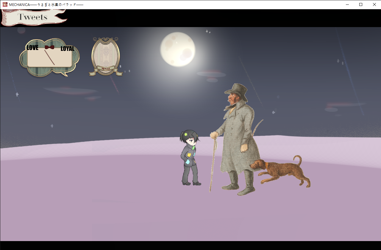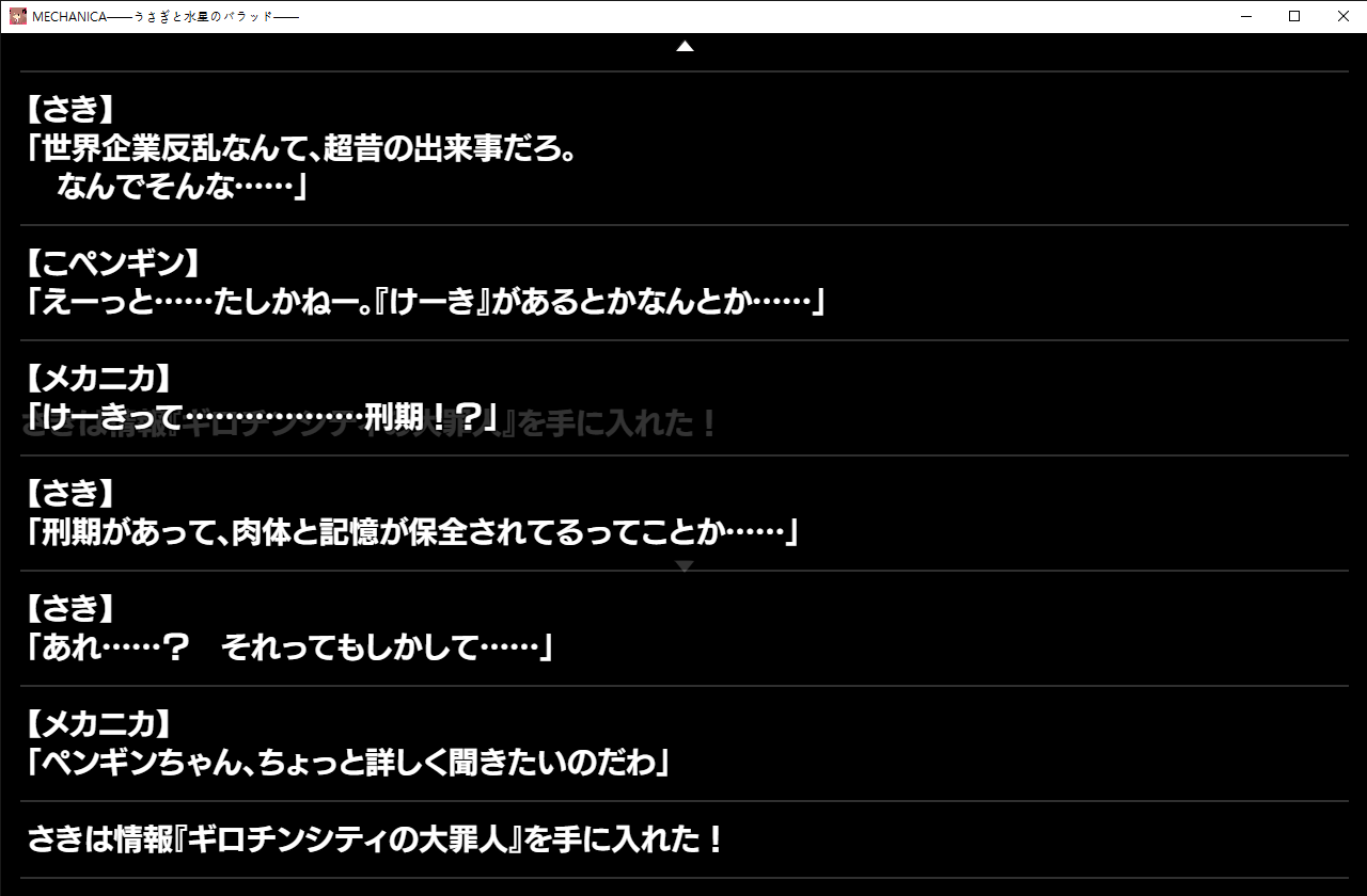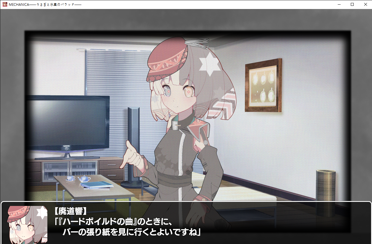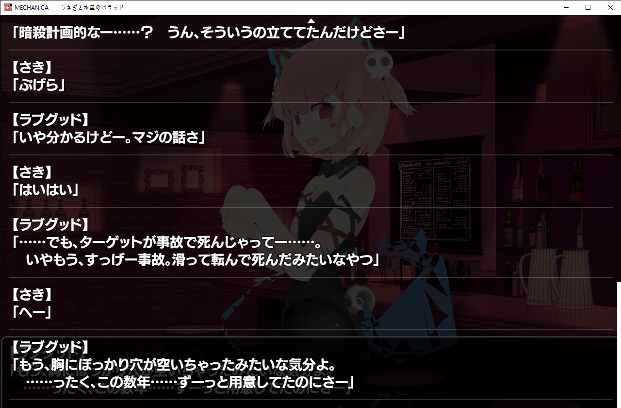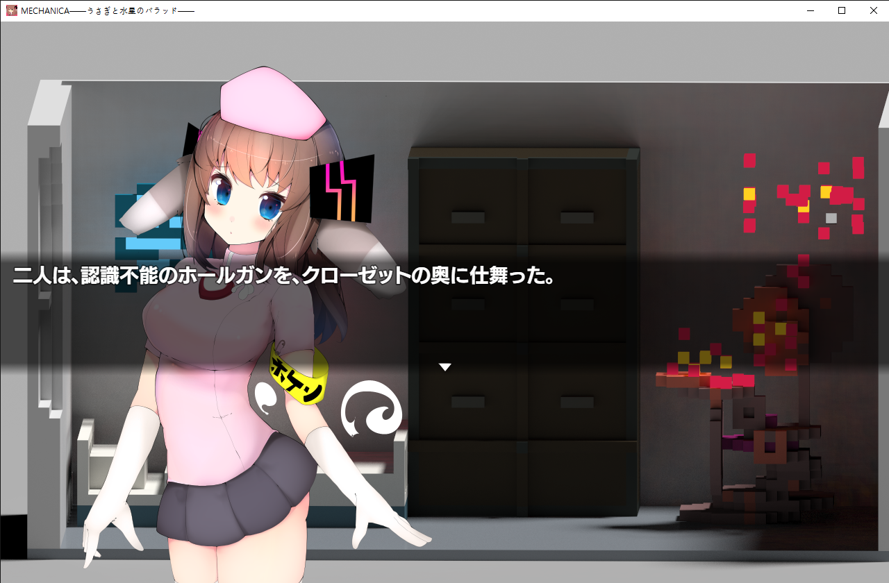 다시가서이분과의 퀘스트노래는 이것으로3일째 바에서 러브굿과 대화 이걸 사용하면패스워드를 해킹합니다내려와서 이곳저곳 조사합시다장롱뒤에서위험무기 홀건을 발견할 수 있습니다이곳저곳 다 뒤져야 합니다이곳 저곳 다 뒤지면 알 수 있는건 러브굿이 자신의 부모의 복수를 하려고 했단 것 입니다나갈려고 하면 말을 거는 기계가 있는데러브굿의 언니의 카피입니다러브굿은 복수를 꿈꾸고 있고 기계를 이요해 시뮬레이션을 돌리고 있었습니다다시 이야기를 해볼려는 주인공여기서 막혀서 힌트를 봤습니다아니 이걸 어캐알아몰랐는데 이것도 하다보면 더 친해지는군요신경쓰이는 주인님으로 바꼇습니다하드보일드에서 바에 갑시다그전에 전뇌도 죄다 던져줍시다기계안에 우주가 있다는 의미심장한 이야기바의 종이를 조사해줍시다이곳도 슬슬 마무리를 지어줍시다우정을 손에 넣습니다다시 가서 곤충소녀에게 팜플렛을 주고노래를 불러줍시다산책코스를 얻습니다다시 이 노래로 가서여기와서계획을 까발려줍시다상태가 한단계 더 진행됩니다이분도 산책코스에 대해 이야기를 해주고노래를 불러주고얻은 정보로 벌레에게 말을 겁시다노래를 불러줍시다3일 후반 러브굿의 아지트로 다시 가면러브굿이 죽어가고 있습니다각오 검은 의지를 얻고 루프끝에 러브굿의 복수를 대신 해서 러브굿을 살립니다여기로 가서이걸 제시합시다노래를 연주해주고이 때의 대화를 통해아웃 포탈에 대한 정보를 얻을 수 있습니다결의를 얻습니다이 것을 이용해 이분과 대화뭔가 일이 생기면 쓰라고메모리를 줍니다내일도 다시 오자고 합니다여기도 관계진행오프닝의 그 장소군요드디어 메카니카와 사귈 수 있습니다시키는대로 다시 갑시다예전에 받은 박사의 중요한 문서를 주고풀의 집에 갈 수 있게 되었습니다비켜봐요 좀갑시다이곳을 조사해줍시다딴건 별거없더군요록이 걸려 있는데이걸 써줍시다풀의 탐험기록입니다이 침략자는 우리들의 차원을 붕괴가 목적이며정신오염기술을 가지고 있습니다드디어 해결방법을 알아냈습니다클론을 보내는 철두철미함범인은 육체를 가지지 않았을 것이라는 군요그렇기에 활동하기 위해서는 불법적인 아바타를 쓰고 있을거라 생각합니다즉 올바른 지문 클로리아문이 없을 거라고 합니다3일에 바에 가서러브굿과 이야기를 해줍시다암살계획을 짯는데 이미 상대가 죽어버렸습니다 그래서 러브굿은 드디어 과거를 청산하고 미래를 볼 수 있게 되었습니다옆의 갱에게도 아바타를 주고 노래를 불러줍시다바로 라운드티비를 주고 진입가능티비모양의 포탈이였습니다그때의 그곳내려가서 대화후포탈키를 얻은 다음성으로 들어가서조사드디어 이 현상에 대한 이야기를 들을 수 있습니다시계는 사실 기원차원의 수를 나타내는 거였습니다근데 이 기원을 부숴버려서 미래가 처리불가능한 속도로 늘어가니 시작했습니다 그래서 우주를 지키기 위해 다른 차원을 부쉈습니다방식은 상위존재를 이용해서즉 플레이어를 이용한 것입니다이 작업을 도운 동료들이 나오는데 모두 전작의 인물들입니다이렇게 플레이어의 힘을 이용해 메카니카를 제왜한 전 차원을 부정시켜 다시 하나로 만들려고 했습니다하지만 이를 이미 예측하고 오히려 역공을 가할려는 차원이 하나 있습니다 이것이 시계가 2를 가르킨 이유입니다그쪽세계는 상대를 죽이고 흡수하는 세계라서 인구가 108인밖에 없습니다저쪽보단 그래도 이쪽이 좋으니 이쪽에 힘을 실어줍니다범인을 검은 토끼를 막아달라고 부탁합니다주인공도 이제 플레이어를 인식하기 시작합니다돌아가서 대화이 마법사 누군가했더니바의 마스터였습니다 루프시작후 어디갔나 했습니다영웅의 의지를 얻습니다외뇌도 어딧나 했더만하드보일드의 바닷가 해안에 있었습니다우주를 넓힐것인가 우주를 멸망시킬것인가의 실험을 했는데그 그릇이 청소로봇입니다 결국은 그릇에 넘치기 때문에 우주를 줄이는 쪽으로 가닥을 잡았습니다멸망을 막기위해 다시 자기에게 락을 걸어 완전한 청소로봇으로 돌아갑니다심심하면 퀴즈도 해줍시다여기서 대죄인의 정보를 얻고이것을 집앞의 토끼에게 써줍시다이걸 불러주고결의를 얻습니다상급도 심심하면 해보세요모든 일을 해결하면 다시 여기로 오라는데 해결하면 바로 엔딩이라 잘 모르겠습니다와서 아바타코드에 대해 물으면드디어 진범의 얼굴을 알 수 있게 됩니다노래도 불러줍시다탐정사무소로 가서 각각제시해주고범인을 밝혀냈습니다추리성공이야기를 해줍시다드디어 만난 인레의 검은토끼4억5천만의 고차원생물의 집합체입니다각자의 차원을 걸고 분홍토끼와 검은 토끼와의 싸움이 시작됩니다메카니카에게 힘을 줍시다 음악은 막눌러도 되더군요영웅의 유지로 메카니카에게 힘을 옆의 글도 읽어주면 재미있습니다주인공을 노리는 공격은 고대신의 힘으로 막습니다정신오염으로 공격당하지만내일은 분명 좋은 날이 될거라는 의지로 해결합니다포탈을 열어 공격을 해오지만 다른 친구들의 도움으로 막아냅니다다시 포탈을 기동 병기를 꺼내지만마스터를 불러 이를 막아냅니다마지