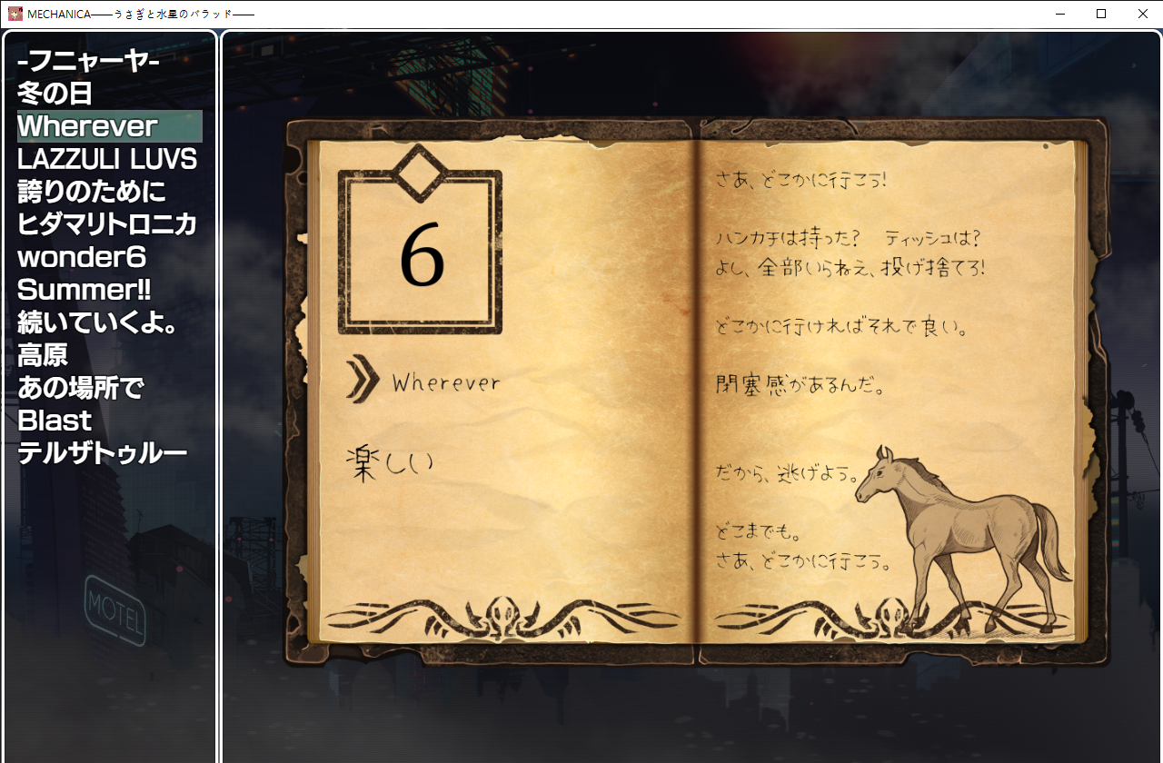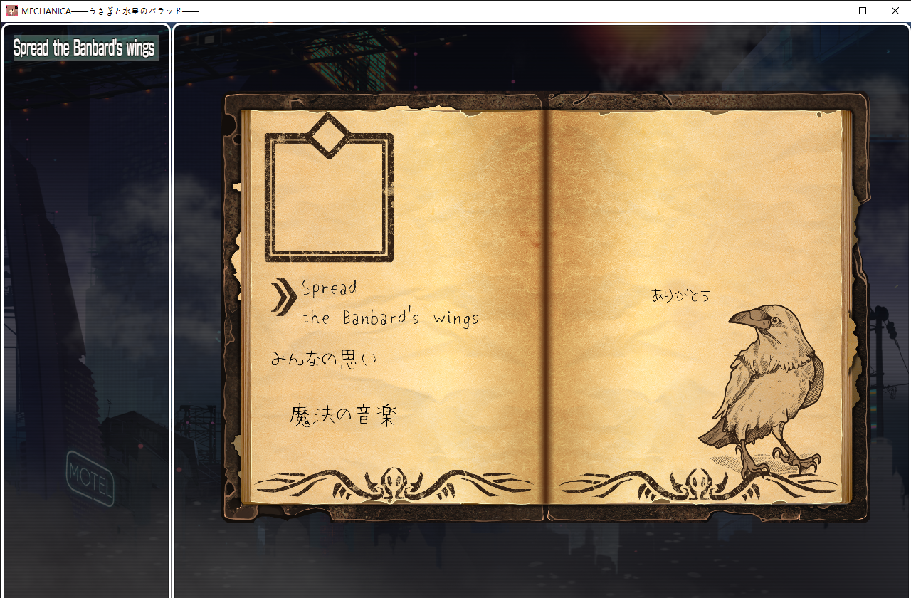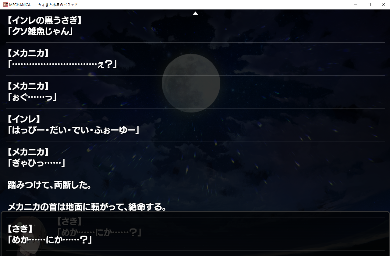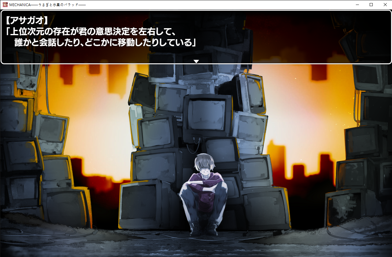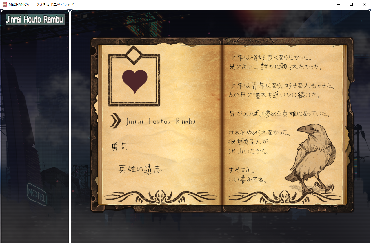 다시가서이분과의 퀘스트노래는 이것으로3일째 바에서 러브굿과 대화 이걸 사용하면패스워드를 해킹합니다내려와서 이곳저곳 조사합시다장롱뒤에서위험무기 홀건을 발견할 수 있습니다이곳저곳 다 뒤져야 합니다이곳 저곳 다 뒤지면 알 수 있는건 러브굿이 자신의 부모의 복수를 하려고 했단 것 입니다나갈려고 하면 말을 거는 기계가 있는데러브굿의 언니의 카피입니다러브굿은 복수를 꿈꾸고 있고 기계를 이요해 시뮬레이션을 돌리고 있었습니다다시 이야기를 해볼려는 주인공여기서 막혀서 힌트를 봤습니다아니 이걸 어캐알아몰랐는데 이것도 하다보면 더 친해지는군요신경쓰이는 주인님으로 바꼇습니다하드보일드에서 바에 갑시다그전에 전뇌도 죄다 던져줍시다기계안에 우주가 있다는 의미심장한 이야기바의 종이를 조사해줍시다이곳도 슬슬 마무리를 지어줍시다우정을 손에 넣습니다다시 가서 곤충소녀에게 팜플렛을 주고노래를 불러줍시다산책코스를 얻습니다다시 이 노래로 가서여기와서계획을 까발려줍시다상태가 한단계 더 진행됩니다이분도 산책코스에 대해 이야기를 해주고노래를 불러주고얻은 정보로 벌레에게 말을 겁시다노래를 불러줍시다3일 후반 러브굿의 아지트로 다시 가면러브굿이 죽어가고 있습니다각오 검은 의지를 얻고 루프끝에 러브굿의 복수를 대신 해서 러브굿을 살립니다여기로 가서이걸 제시합시다노래를 연주해주고이 때의 대화를 통해아웃 포탈에 대한 정보를 얻을 수 있습니다결의를 얻습니다이 것을 이용해 이분과 대화뭔가 일이 생기면 쓰라고메모리를 줍니다내일도 다시 오자고 합니다여기도 관계진행오프닝의 그 장소군요드디어 메카니카와 사귈 수 있습니다시키는대로 다시 갑시다예전에 받은 박사의 중요한 문서를 주고풀의 집에 갈 수 있게 되었습니다비켜봐요 좀갑시다이곳을 조사해줍시다딴건 별거없더군요록이 걸려 있는데이걸 써줍시다풀의 탐험기록입니다이 침략자는 우리들의 차원을 붕괴가 목적이며정신오염기술을 가지고 있습니다드디어 해결방법을 알아냈습니다클론을 보내는 철두철미함범인은 육체를 가지지 않았을 것이라는 군요그렇기에 활동하기 위해서는 불법적인 아바타를 쓰고 있을거라 생각합니다즉 올바른 지문 클로리아문이 없을 거라고 합니다3일에 바에 가서러브굿과 이야기를 해줍시다암살계획을 짯는데 이미 상대가 죽어버렸습니다 그래서 러브굿은 드디어 과거를 청산하고 미래를 볼 수 있게 되었습니다옆의 갱에게도 아바타를 주고 노래를 불러줍시다바로 라운드티비를 주고 진입가능티비모양의 포탈이였습니다그때의 그곳내려가서 대화후포탈키를 얻은 다음성으로 들어가서조사드디어 이 현상에 대한 이야기를 들을 수 있습니다시계는 사실 기원차원의 수를 나타내는 거였습니다근데 이 기원을 부숴버려서 미래가 처리불가능한 속도로 늘어가니 시작했습니다 그래서 우주를 지키기 위해 다른 차원을 부쉈습니다방식은 상위존재를 이용해서즉 플레이어를 이용한 것입니다이 작업을 도운 동료들이 나오는데 모두 전작의 인물들입니다이렇게 플레이어의 힘을 이용해 메카니카를 제왜한 전 차원을 부정시켜 다시 하나로 만들려고 했습니다하지만 이를 이미 예측하고 오히려 역공을 가할려는 차원이 하나 있습니다 이것이 시계가 2를 가르킨 이유입니다그쪽세계는 상대를 죽이고 흡수하는 세계라서 인구가 108인밖에 없습니다저쪽보단 그래도 이쪽이 좋으니 이쪽에 힘을 실어줍니다범인을 검은 토끼를 막아달라고 부탁합니다주인공도 이제 플레이어를 인식하기 시작합니다돌아가서 대화이 마법사 누군가했더니바의 마스터였습니다 루프시작후 어디갔나 했습니다영웅의 의지를 얻습니다외뇌도 어딧나 했더만하드보일드의 바닷가 해안에 있었습니다우주를 넓힐것인가 우주를 멸망시킬것인가의 실험을 했는데그 그릇이 청소로봇입니다 결국은 그릇에 넘치기 때문에 우주를 줄이는 쪽으로 가닥을 잡았습니다멸망을 막기위해 다시 자기에게 락을 걸어 완전한 청소로봇으로 돌아갑니다심심하면 퀴즈도 해줍시다여기서 대죄인의 정보를 얻고이것을 집앞의 토끼에게 써줍시다이걸 불러주고결의를 얻습니다상급도 심심하면 해보세요모든 일을 해결하면 다시 여기로 오라는데 해결하면 바로 엔딩이라 잘 모르겠습니다와서 아바타코드에 대해 물으면드디어 진범의 얼굴을 알 수 있게 됩니다노래도 불러줍시다탐정사무소로 가서 각각제시해주고범인을 밝혀냈습니다추리성공이야기를 해줍시다드디어 만난 인레의 검은토끼4억5천만의 고차원생물의 집합체입니다각자의 차원을 걸고 분홍토끼와 검은 토끼와의 싸움이 시작됩니다메카니카에게 힘을 줍시다 음악은 막눌러도 되더군요영웅의 유지로 메카니카에게 힘을 옆의 글도 읽어주면 재미있습니다주인공을 노리는 공격은 고대신의 힘으로 막습니다정신오염으로 공격당하지만내일은 분명 좋은 날이 될거라는 의지로 해결합니다포탈을 열어 공격을 해오지만 다른 친구들의 도움으로 막아냅니다다시 포탈을 기동 병기를 꺼내지만마스터를 불러 이를 막아냅니다마지