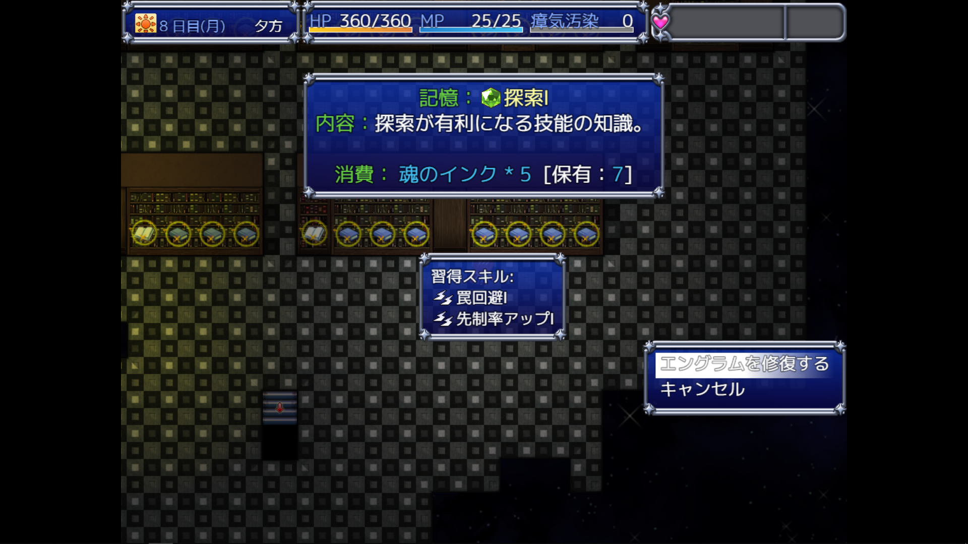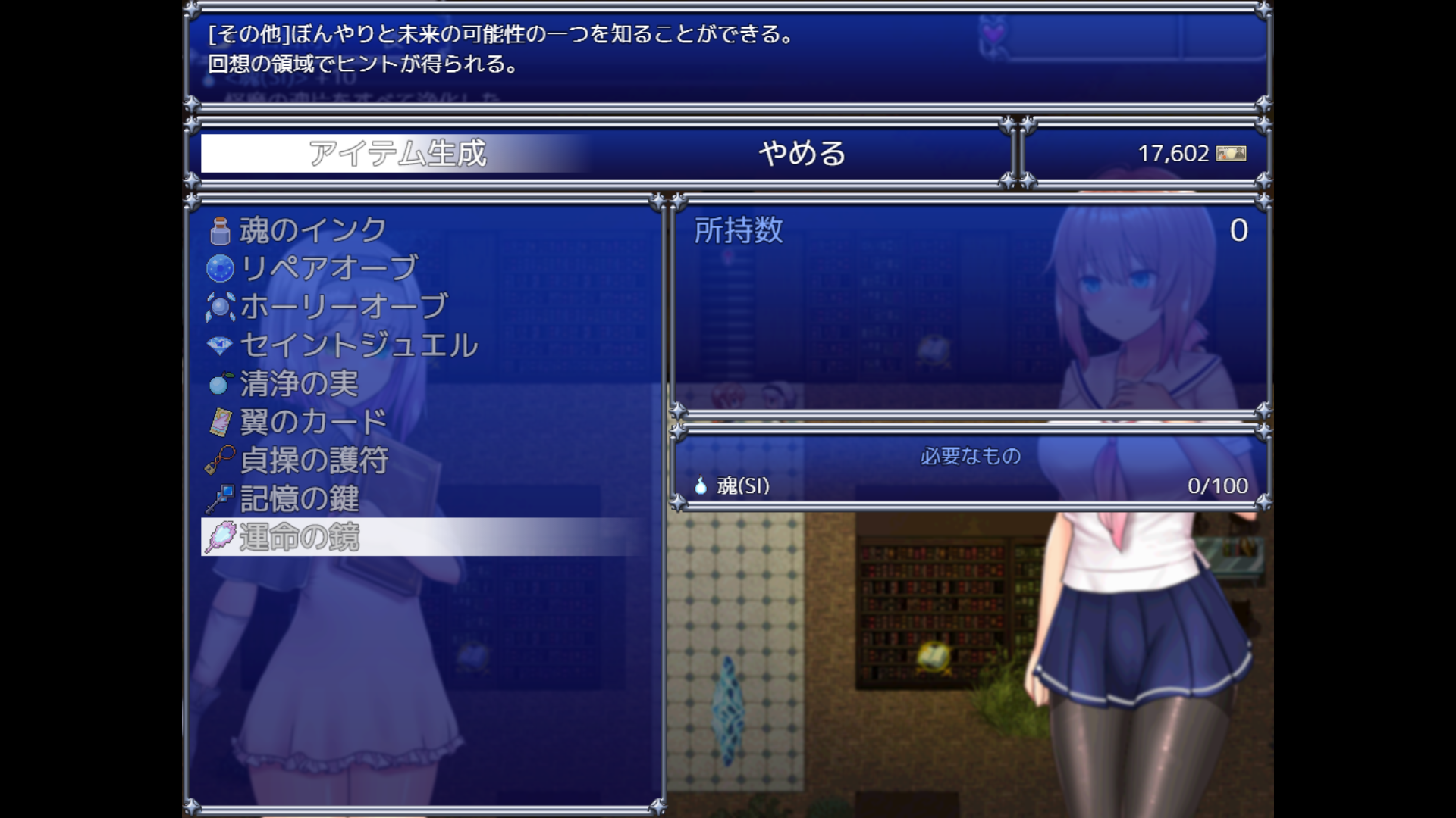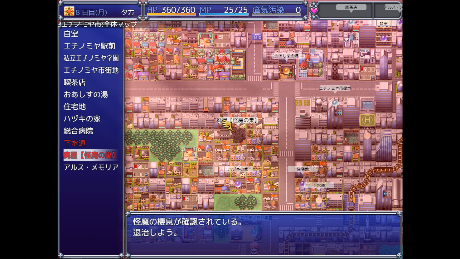 드디어 1챕터입니다책은 주워둡시다촬영을 하면5천엔을 얻을 수 있습니다바로 나갑시다주택가로 가서몇몇 곳은 돈을 주고 시간을 보낼 수 있는데 딱히 쓸일은 없었던거 같습니다스텟이 쥐꼬리만큼 오릅니다장기를 조사해줍시다아래로 가서답은 여기준비를 하고 가자고 합니다장기도에 주의 100을 넘으면 강제로 귀환을 하게 됩니다그리고 이게 높은 상태로 잘 시 침식도가 증가하게 됩니다 당장은 아니지만 침식도도 100을 넘으면 게임오버죽 탐험하도록 합시다뒤를 공격할 시 선공을 잡게 되니 꼭 뒤를 노리도록 합시다심심해서 져봤는데굳이 초반에 죽어갈 필요는 없을 듯 합니다메모리아가 구출해줍니다지배도가 높을 수록 탈출이 힘들어 집니다베하에서 특정접을 잡으면 트로피를 준다는데 버그인지 안줍니다아침에 학교는 꼭 갑시다평판이 깍이는 일 따윈 용납하지 않는 스타일이곳저곳 둘러볼 수는 있는데 별건 없습니다학원이벤트의 반은 학원평가가 낮을 때 발생합니다이걸 사긴 했는데 개인적으로 백화점의 크리 10퍼증가가 제일 좋았습니다메달교환은이게 초반에 제일 좋긴합니다 계속 부족한게 영혼입니다이런건 딱히 필요는 없었습니다이거도 막상 사니 게임이 거의 끝나가서 의미없고 다른거도 은근 수치를 깨작깨작줘서 얻는게 더 귀찮았습니다포션은 초반만 든든히 챙겨가면 됩니다반창고도 풀매수이게 젤 좋습니다템도 잘 주워주시고하트하트 몹혼자있음 좀 덜아픈데 여러명일경우 일방적으로 맞아서 아픕니다죽죽 안으로 들어가도록 합시다이제부터 슬슬등장하는 함정들입니다만 여기서 포션다써서 귀환좀 낭낭하게 주지이건 사도 큰 의미는 없으니 클리어하고 사도록 합시다기억들은 나중에 엔딩볼려면 다 사야합니다이건 사던말던이거도 필수인게혼의 정화스킬이 교환율 증가라 꼭 사야합니다다시 진입말이 함정이지 뭐 딱히 위협적이진 않습니다템줍줍이걸 작동시키면 지름길이 생깁니다안쪽에 보스몹이건 하루 한번 전회복을 시켜줍니다보스전괴마의 진화형인 괴인들입니다그냥 잡아줍시다클리어세레스포니아의 정보가 퍼지기 시작하고시민평가와 지명도가 오르기 시작합니다챕터 2입니다해맑일단 병원으로 가보라고 합니다학교 주위를 돌며 메달을 주워줍시다수영부에 하즈키가 있는데여기서 수영을 해서 체력을 올릴 수 있습니다부적샀는데 하즈키의 집에 하나 있던...여기도 체육복이 있으면 운동을 할 수 있는데 베하기준 선공을 뻇긴적이 없어서 의미가 있나 싶습니다여기 아빠가 있는데업무중 사고를 당했군요저 경감은 사실 아빠 직장동료였군요아빠의 상처는 괴인들이 준거였습니다 적과 싸워야 할 이유가 늘어났습니다메모리아에게 가야하군요학원을 다니면서 괴인과 싸우는건 힘들테니미법인형을 만들어줍니다근데 영혼도 소비하고 평판도 안올라가서 그냥 100만들때 까진 다니기로 했습니다대출가능솔직히 제가 쓸 영혼도 없어 죽겠습니다기억을 사봤는데 설정이야기더군요강대한 괴마 아포류온이란 존재가 있습니다문젠 불사신에다가 부활할 때마다 모습 능력 약점도 변합니다 어캐잡음해서 이에 대처하기 위해 많은 전투의 지식등을 기록해 놓은게 메모리아 입니다당연하지만 이 전에도 많은 소유주가 있었습니다이거도 사봤습니다가지고만 있어도 되는군요장비는 직접만들어야 하는데또 영혼이 들어갑니다무기도 영혼이 들어갑니다탐색은 사도그만 안사도 그만어짜피 뒤만 노릴거라 대부분 의미가 없습니다여기도 화학선생이 출몰매우 수상쩍은 사람입니다이제부터 아이템을 만들 수 있습니다레네게이드에 대해 아냐도 묻는데 몰라요최근 여기저기서 보이는 이상한 옷을 입는 녀석들입니다이상한 구체를 설치하고 다닌다고 합니다이제부터 적을 잡으면 지원금같은 격파보너스가 들어옵니다또한 미션이 등장합니다살건딱히 없습니다이런건 너무 비싸요장비는 솔직히 대부분 만드는게 더 귀찮습니다설비는 돈을 투자해야 합니다비쌈임무를 받을 수 있는데 죄다 지금 못깹니다일단 받아두도록 하죠프리미션은 이렇게 맵에서 곧장갈 수 있습니다