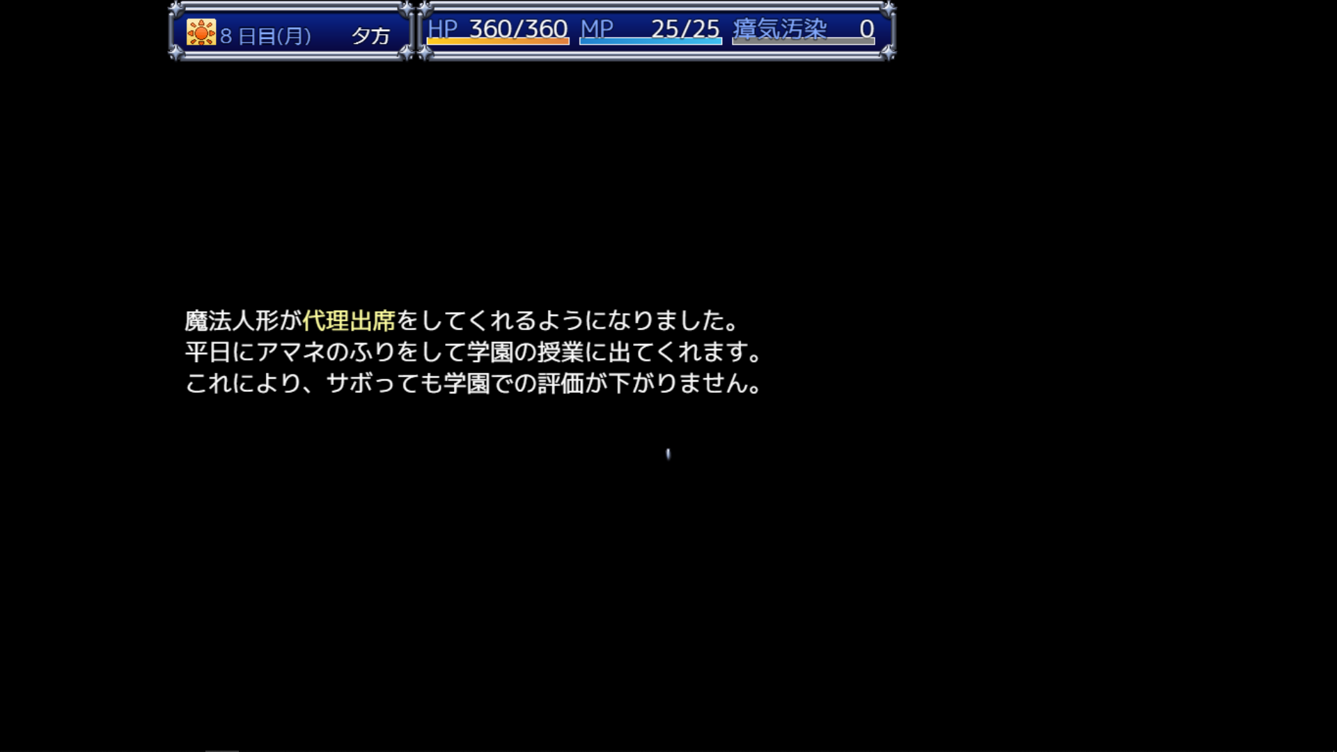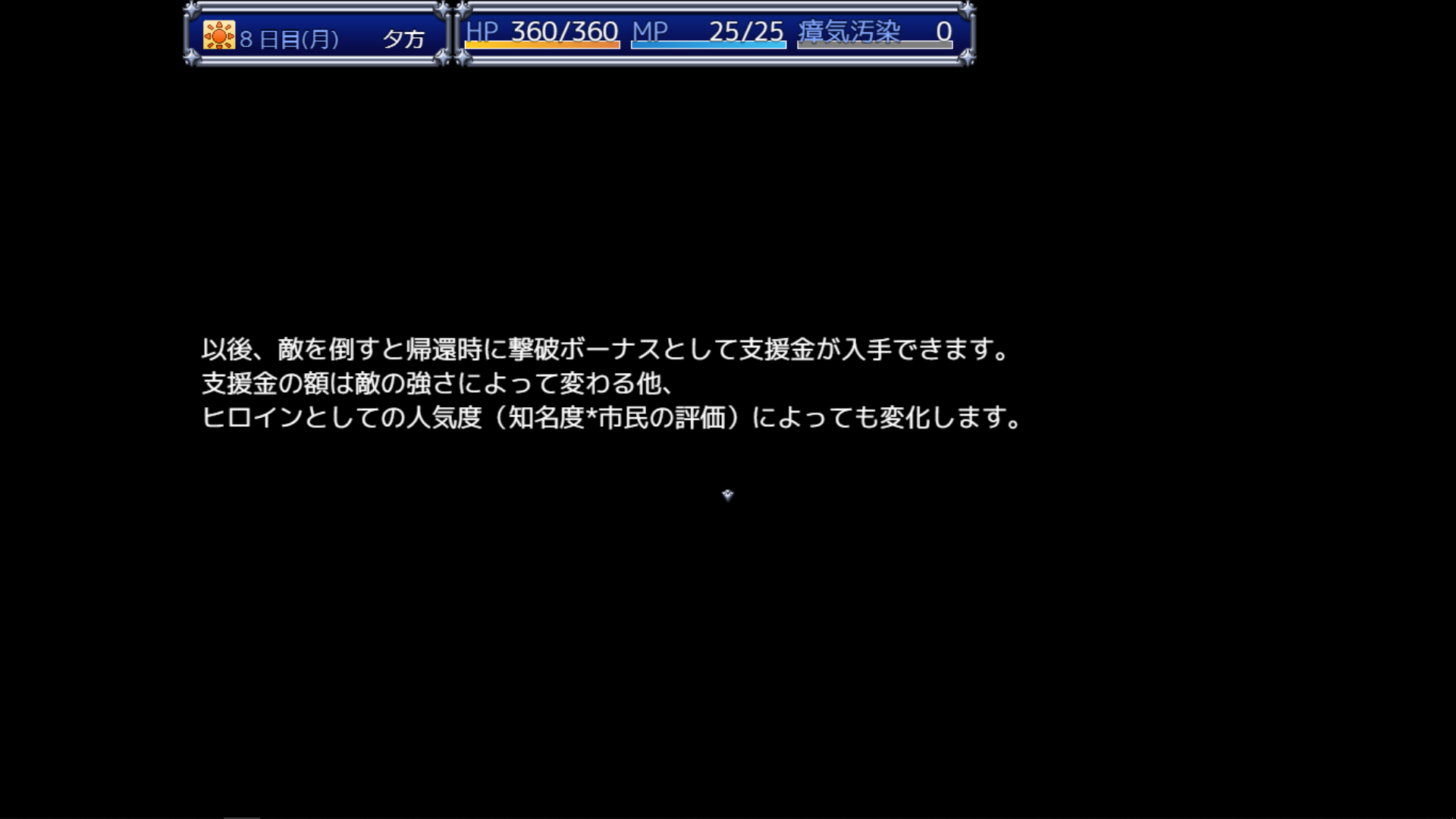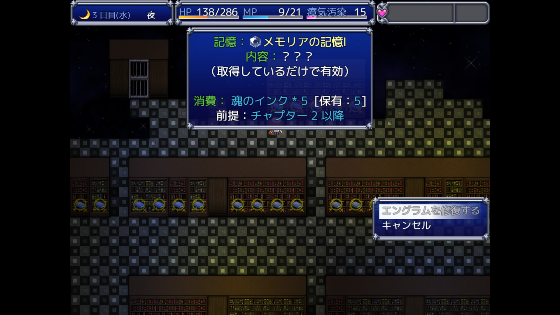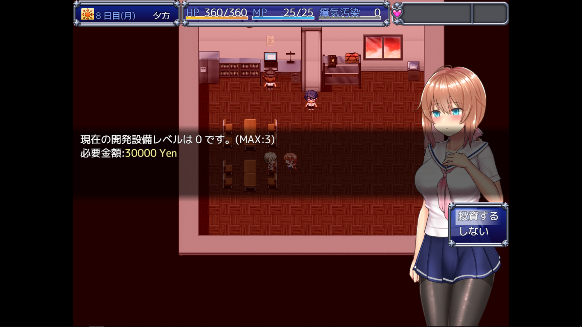드디어 1챕터입니다책은 주워둡시다촬영을 하면5천엔을 얻을 수 있습니다바로 나갑시다주택가로 가서몇몇 곳은 돈을 주고 시간을 보낼 수 있는데 딱히 쓸일은 없었던거 같습니다스텟이 쥐꼬리만큼 오릅니다장기를 조사해줍시다아래로 가서답은 여기준비를 하고 가자고 합니다장기도에 주의 100을 넘으면 강제로 귀환을 하게 됩니다그리고 이게 높은 상태로 잘 시 침식도가 증가하게 됩니다 당장은 아니지만 침식도도 100을 넘으면 게임오버죽 탐험하도록 합시다뒤를 공격할 시 선공을 잡게 되니 꼭 뒤를 노리도록 합시다심심해서 져봤는데굳이 초반에 죽어갈 필요는 없을 듯 합니다메모리아가 구출해줍니다지배도가 높을 수록 탈출이 힘들어 집니다베하에서 특정접을 잡으면 트로피를 준다는데 버그인지 안줍니다아침에 학교는 꼭 갑시다평판이 깍이는 일 따윈 용납하지 않는 스타일이곳저곳 둘러볼 수는 있는데 별건 없습니다학원이벤트의 반은 학원평가가 낮을 때 발생합니다이걸 사긴 했는데 개인적으로 백화점의 크리 10퍼증가가 제일 좋았습니다메달교환은이게 초반에 제일 좋긴합니다 계속 부족한게 영혼입니다이런건 딱히 필요는 없었습니다이거도 막상 사니 게임이 거의 끝나가서 의미없고 다른거도 은근 수치를 깨작깨작줘서 얻는게 더 귀찮았습니다포션은 초반만 든든히 챙겨가면 됩니다반창고도 풀매수이게 젤 좋습니다템도 잘 주워주시고하트하트 몹혼자있음 좀 덜아픈데 여러명일경우 일방적으로 맞아서 아픕니다죽죽 안으로 들어가도록 합시다이제부터 슬슬등장하는 함정들입니다만 여기서 포션다써서 귀환좀 낭낭하게 주지이건 사도 큰 의미는 없으니 클리어하고 사도록 합시다기억들은 나중에 엔딩볼려면 다 사야합니다이건 사던말던이거도 필수인게혼의 정화스킬이 교환율 증가라 꼭 사야합니다다시 진입말이 함정이지 뭐 딱히 위협적이진 않습니다템줍줍이걸 작동시키면 지름길이 생깁니다안쪽에 보스몹이건 하루 한번 전회복을 시켜줍니다보스전괴마의 진화형인 괴인들입니다그냥 잡아줍시다클리어세레스포니아의 정보가 퍼지기 시작하고시민평가와 지명도가 오르기 시작합니다챕터 2입니다해맑일단 병원으로 가보라고 합니다학교 주위를 돌며 메달을 주워줍시다수영부에 하즈키가 있는데여기서 수영을 해서 체력을 올릴 수 있습니다부적샀는데 하즈키의 집에 하나 있던...여기도 체육복이 있으면 운동을 할 수 있는데 베하기준 선공을 뻇긴적이 없어서 의미가 있나 싶습니다여기 아빠가 있는데업무중 사고를 당했군요저 경감은 사실 아빠 직장동료였군요아빠의 상처는 괴인들이 준거였습니다 적과 싸워야 할 이유가 늘어났습니다메모리아에게 가야하군요학원을 다니면서 괴인과 싸우는건 힘들테니미법인형을 만들어줍니다근데 영혼도 소비하고 평판도 안올라가서 그냥 100만들때 까진 다니기로 했습니다대출가능솔직히 제가 쓸 영혼도 없어 죽겠습니다기억을 사봤는데 설정이야기더군요강대한 괴마 아포류온이란 존재가 있습니다문젠 불사신에다가 부활할 때마다 모습 능력 약점도 변합니다 어캐잡음해서 이에 대처하기 위해 많은 전투의 지식등을 기록해 놓은게 메모리아 입니다당연하지만 이 전에도 많은 소유주가 있었습니다이거도 사봤습니다가지고만 있어도 되는군요장비는 직접만들어야 하는데또 영혼이 들어갑니다무기도 영혼이 들어갑니다탐색은 사도그만 안사도 그만어짜피 뒤만 노릴거라 대부분 의미가 없습니다여기도 화학선생이 출몰매우 수상쩍은 사람입니다이제부터 아이템을 만들 수 있습니다레네게이드에 대해 아냐도 묻는데 몰라요최근 여기저기서 보이는 이상한 옷을 입는 녀석들입니다이상한 구체를 설치하고 다닌다고 합니다이제부터 적을 잡으면 지원금같은 격파보너스가 들어옵니다또한 미션이 등장합니다살건딱히 없습니다이런건 너무 비싸요장비는 솔직히 대부분 만드는게 더 귀찮습니다설비는 돈을 투자해야 합니다비쌈임무를 받을 수 있는데 죄다 지금 못깹니다일단 받아두도록 하죠프리미션은 이렇게 맵에서 곧장갈 수 있습니다