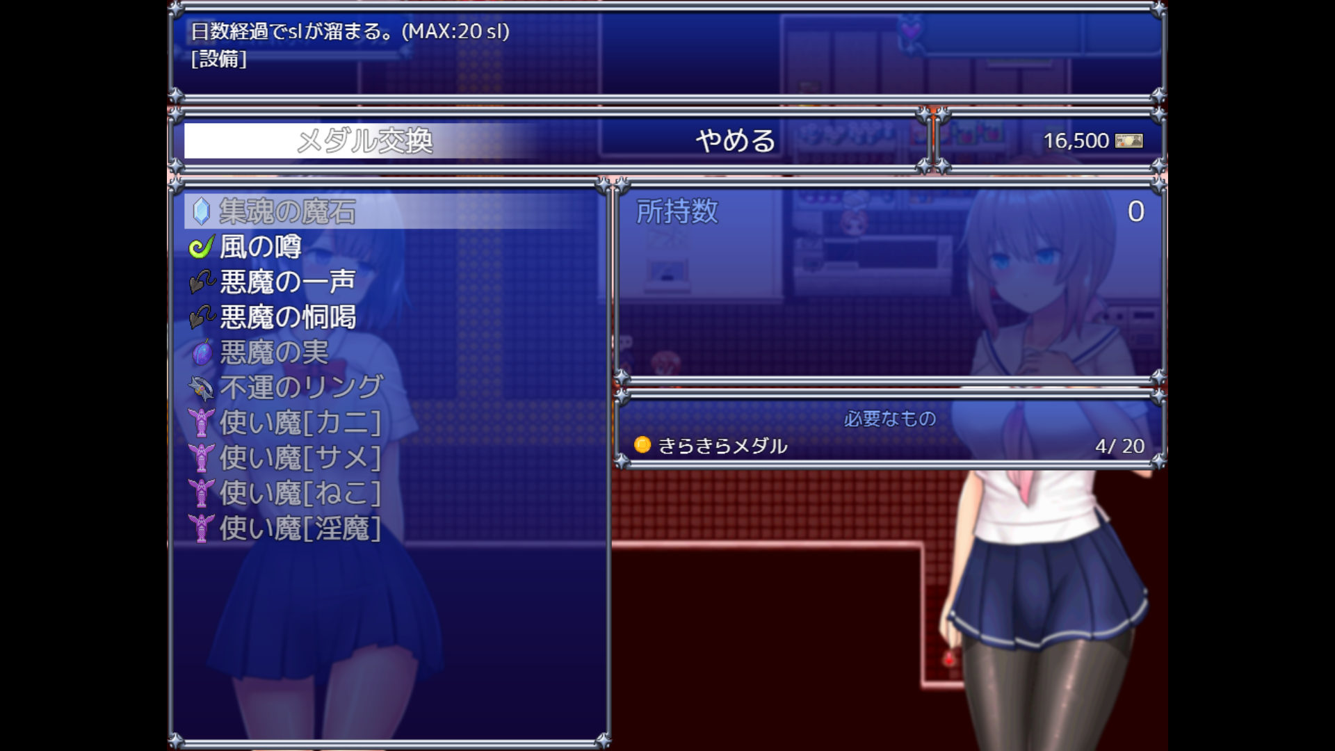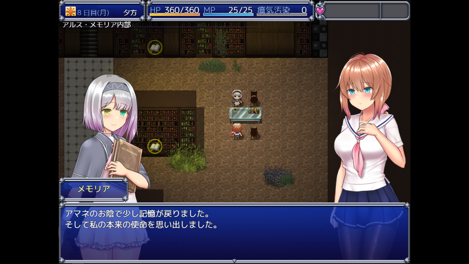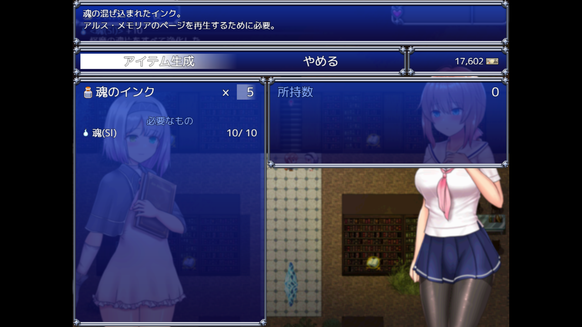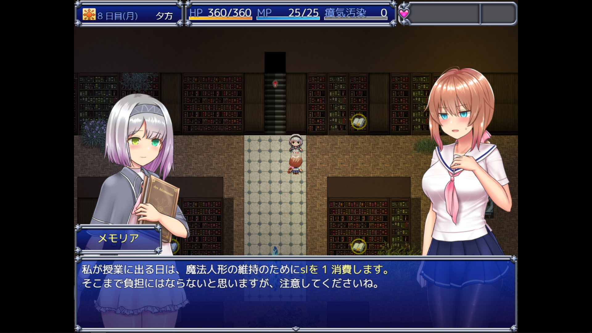 드디어 1챕터입니다책은 주워둡시다촬영을 하면5천엔을 얻을 수 있습니다바로 나갑시다주택가로 가서몇몇 곳은 돈을 주고 시간을 보낼 수 있는데 딱히 쓸일은 없었던거 같습니다스텟이 쥐꼬리만큼 오릅니다장기를 조사해줍시다아래로 가서답은 여기준비를 하고 가자고 합니다장기도에 주의 100을 넘으면 강제로 귀환을 하게 됩니다그리고 이게 높은 상태로 잘 시 침식도가 증가하게 됩니다 당장은 아니지만 침식도도 100을 넘으면 게임오버죽 탐험하도록 합시다뒤를 공격할 시 선공을 잡게 되니 꼭 뒤를 노리도록 합시다심심해서 져봤는데굳이 초반에 죽어갈 필요는 없을 듯 합니다메모리아가 구출해줍니다지배도가 높을 수록 탈출이 힘들어 집니다베하에서 특정접을 잡으면 트로피를 준다는데 버그인지 안줍니다아침에 학교는 꼭 갑시다평판이 깍이는 일 따윈 용납하지 않는 스타일이곳저곳 둘러볼 수는 있는데 별건 없습니다학원이벤트의 반은 학원평가가 낮을 때 발생합니다이걸 사긴 했는데 개인적으로 백화점의 크리 10퍼증가가 제일 좋았습니다메달교환은이게 초반에 제일 좋긴합니다 계속 부족한게 영혼입니다이런건 딱히 필요는 없었습니다이거도 막상 사니 게임이 거의 끝나가서 의미없고 다른거도 은근 수치를 깨작깨작줘서 얻는게 더 귀찮았습니다포션은 초반만 든든히 챙겨가면 됩니다반창고도 풀매수이게 젤 좋습니다템도 잘 주워주시고하트하트 몹혼자있음 좀 덜아픈데 여러명일경우 일방적으로 맞아서 아픕니다죽죽 안으로 들어가도록 합시다이제부터 슬슬등장하는 함정들입니다만 여기서 포션다써서 귀환좀 낭낭하게 주지이건 사도 큰 의미는 없으니 클리어하고 사도록 합시다기억들은 나중에 엔딩볼려면 다 사야합니다이건 사던말던이거도 필수인게혼의 정화스킬이 교환율 증가라 꼭 사야합니다다시 진입말이 함정이지 뭐 딱히 위협적이진 않습니다템줍줍이걸 작동시키면 지름길이 생깁니다안쪽에 보스몹이건 하루 한번 전회복을 시켜줍니다보스전괴마의 진화형인 괴인들입니다그냥 잡아줍시다클리어세레스포니아의 정보가 퍼지기 시작하고시민평가와 지명도가 오르기 시작합니다챕터 2입니다해맑일단 병원으로 가보라고 합니다학교 주위를 돌며 메달을 주워줍시다수영부에 하즈키가 있는데여기서 수영을 해서 체력을 올릴 수 있습니다부적샀는데 하즈키의 집에 하나 있던...여기도 체육복이 있으면 운동을 할 수 있는데 베하기준 선공을 뻇긴적이 없어서 의미가 있나 싶습니다여기 아빠가 있는데업무중 사고를 당했군요저 경감은 사실 아빠 직장동료였군요아빠의 상처는 괴인들이 준거였습니다 적과 싸워야 할 이유가 늘어났습니다메모리아에게 가야하군요학원을 다니면서 괴인과 싸우는건 힘들테니미법인형을 만들어줍니다근데 영혼도 소비하고 평판도 안올라가서 그냥 100만들때 까진 다니기로 했습니다대출가능솔직히 제가 쓸 영혼도 없어 죽겠습니다기억을 사봤는데 설정이야기더군요강대한 괴마 아포류온이란 존재가 있습니다문젠 불사신에다가 부활할 때마다 모습 능력 약점도 변합니다 어캐잡음해서 이에 대처하기 위해 많은 전투의 지식등을 기록해 놓은게 메모리아 입니다당연하지만 이 전에도 많은 소유주가 있었습니다이거도 사봤습니다가지고만 있어도 되는군요장비는 직접만들어야 하는데또 영혼이 들어갑니다무기도 영혼이 들어갑니다탐색은 사도그만 안사도 그만어짜피 뒤만 노릴거라 대부분 의미가 없습니다여기도 화학선생이 출몰매우 수상쩍은 사람입니다이제부터 아이템을 만들 수 있습니다레네게이드에 대해 아냐도 묻는데 몰라요최근 여기저기서 보이는 이상한 옷을 입는 녀석들입니다이상한 구체를 설치하고 다닌다고 합니다이제부터 적을 잡으면 지원금같은 격파보너스가 들어옵니다또한 미션이 등장합니다살건딱히 없습니다이런건 너무 비싸요장비는 솔직히 대부분 만드는게 더 귀찮습니다설비는 돈을 투자해야 합니다비쌈임무를 받을 수 있는데 죄다 지금 못깹니다일단 받아두도록 하죠프리미션은 이렇게 맵에서 곧장갈 수 있습니다