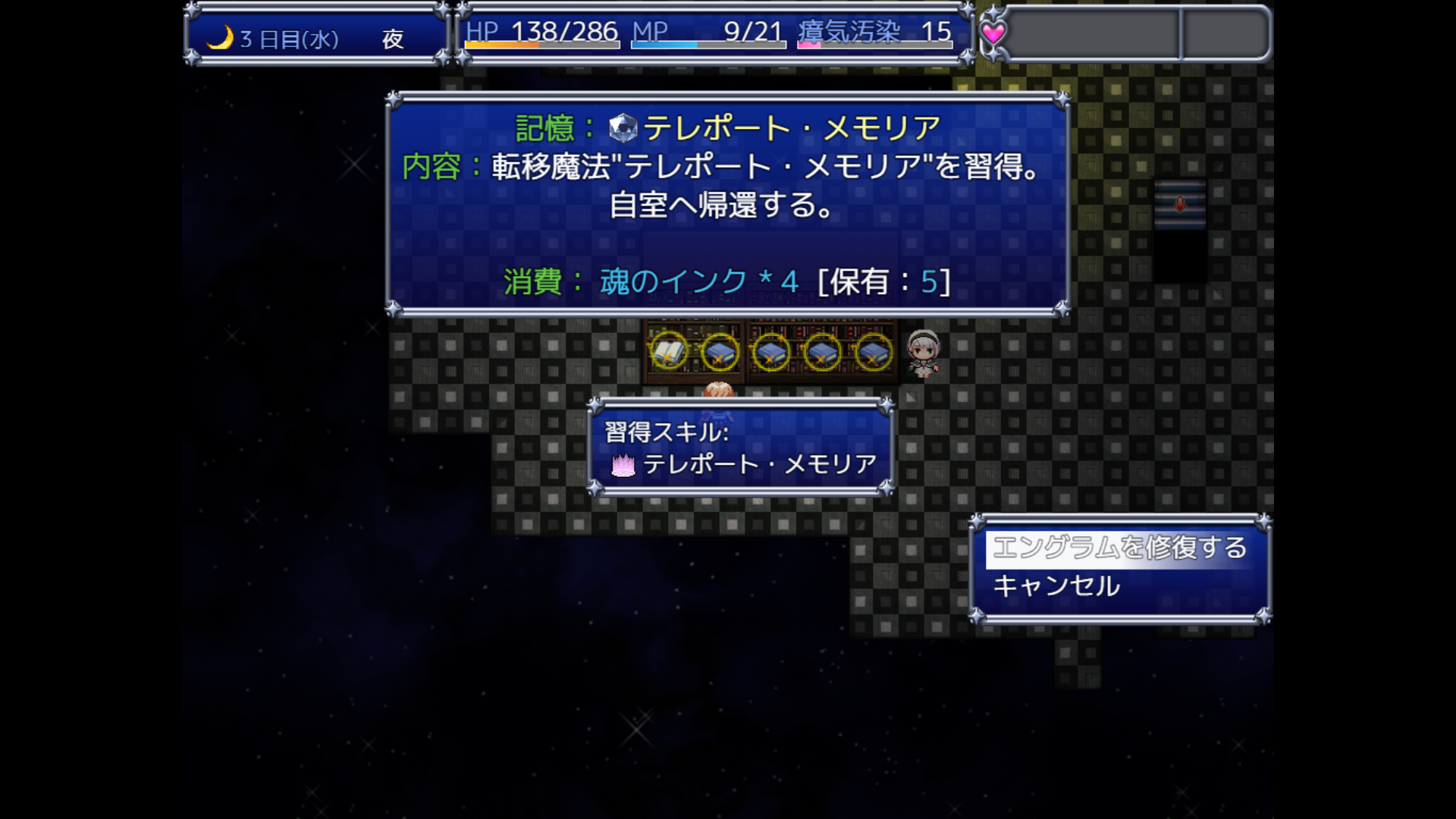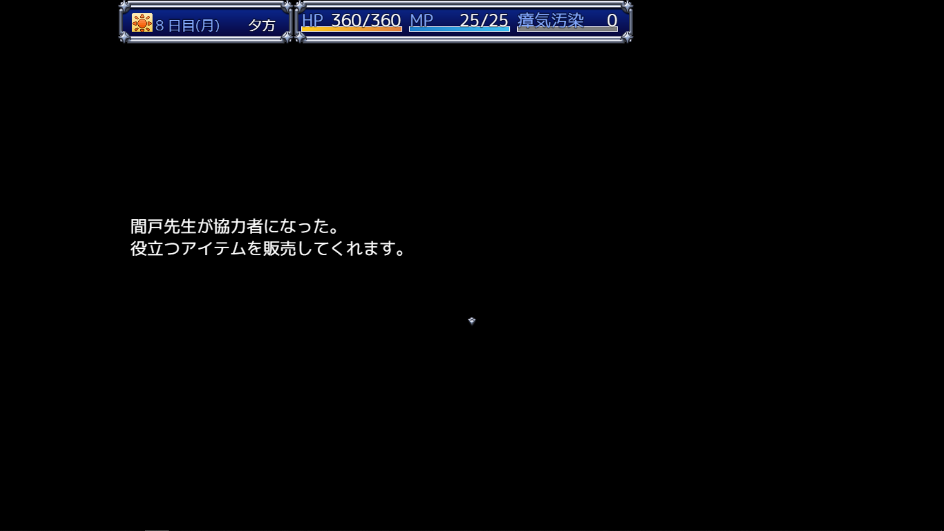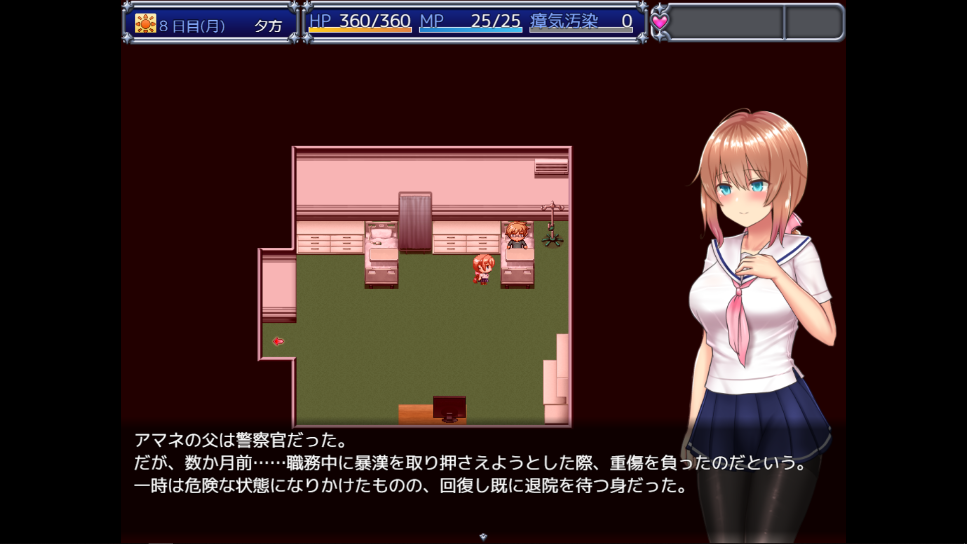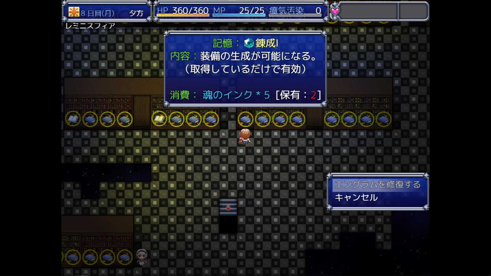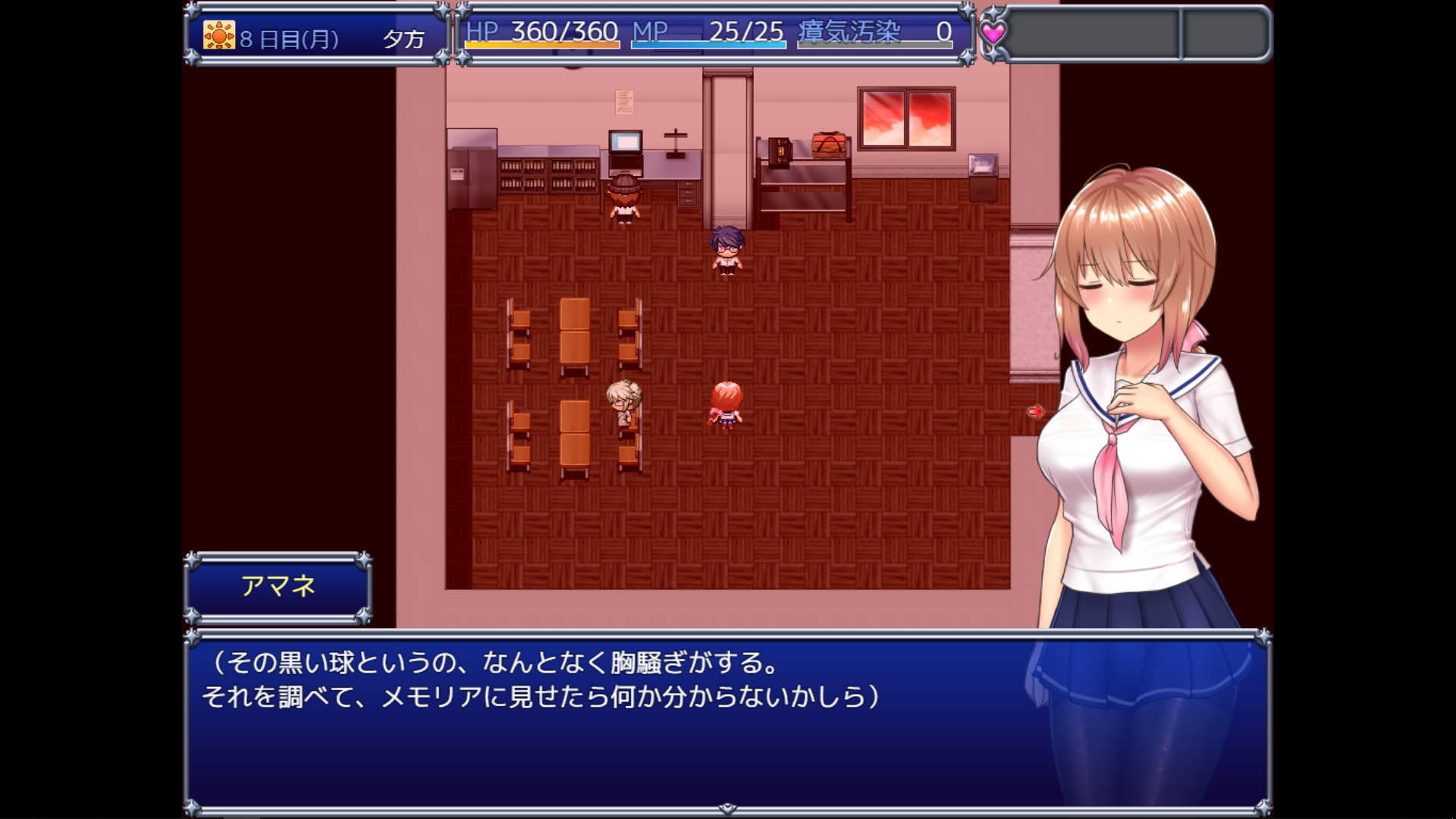 드디어 1챕터입니다책은 주워둡시다촬영을 하면5천엔을 얻을 수 있습니다바로 나갑시다주택가로 가서몇몇 곳은 돈을 주고 시간을 보낼 수 있는데 딱히 쓸일은 없었던거 같습니다스텟이 쥐꼬리만큼 오릅니다장기를 조사해줍시다아래로 가서답은 여기준비를 하고 가자고 합니다장기도에 주의 100을 넘으면 강제로 귀환을 하게 됩니다그리고 이게 높은 상태로 잘 시 침식도가 증가하게 됩니다 당장은 아니지만 침식도도 100을 넘으면 게임오버죽 탐험하도록 합시다뒤를 공격할 시 선공을 잡게 되니 꼭 뒤를 노리도록 합시다심심해서 져봤는데굳이 초반에 죽어갈 필요는 없을 듯 합니다메모리아가 구출해줍니다지배도가 높을 수록 탈출이 힘들어 집니다베하에서 특정접을 잡으면 트로피를 준다는데 버그인지 안줍니다아침에 학교는 꼭 갑시다평판이 깍이는 일 따윈 용납하지 않는 스타일이곳저곳 둘러볼 수는 있는데 별건 없습니다학원이벤트의 반은 학원평가가 낮을 때 발생합니다이걸 사긴 했는데 개인적으로 백화점의 크리 10퍼증가가 제일 좋았습니다메달교환은이게 초반에 제일 좋긴합니다 계속 부족한게 영혼입니다이런건 딱히 필요는 없었습니다이거도 막상 사니 게임이 거의 끝나가서 의미없고 다른거도 은근 수치를 깨작깨작줘서 얻는게 더 귀찮았습니다포션은 초반만 든든히 챙겨가면 됩니다반창고도 풀매수이게 젤 좋습니다템도 잘 주워주시고하트하트 몹혼자있음 좀 덜아픈데 여러명일경우 일방적으로 맞아서 아픕니다죽죽 안으로 들어가도록 합시다이제부터 슬슬등장하는 함정들입니다만 여기서 포션다써서 귀환좀 낭낭하게 주지이건 사도 큰 의미는 없으니 클리어하고 사도록 합시다기억들은 나중에 엔딩볼려면 다 사야합니다이건 사던말던이거도 필수인게혼의 정화스킬이 교환율 증가라 꼭 사야합니다다시 진입말이 함정이지 뭐 딱히 위협적이진 않습니다템줍줍이걸 작동시키면 지름길이 생깁니다안쪽에 보스몹이건 하루 한번 전회복을 시켜줍니다보스전괴마의 진화형인 괴인들입니다그냥 잡아줍시다클리어세레스포니아의 정보가 퍼지기 시작하고시민평가와 지명도가 오르기 시작합니다챕터 2입니다해맑일단 병원으로 가보라고 합니다학교 주위를 돌며 메달을 주워줍시다수영부에 하즈키가 있는데여기서 수영을 해서 체력을 올릴 수 있습니다부적샀는데 하즈키의 집에 하나 있던...여기도 체육복이 있으면 운동을 할 수 있는데 베하기준 선공을 뻇긴적이 없어서 의미가 있나 싶습니다여기 아빠가 있는데업무중 사고를 당했군요저 경감은 사실 아빠 직장동료였군요아빠의 상처는 괴인들이 준거였습니다 적과 싸워야 할 이유가 늘어났습니다메모리아에게 가야하군요학원을 다니면서 괴인과 싸우는건 힘들테니미법인형을 만들어줍니다근데 영혼도 소비하고 평판도 안올라가서 그냥 100만들때 까진 다니기로 했습니다대출가능솔직히 제가 쓸 영혼도 없어 죽겠습니다기억을 사봤는데 설정이야기더군요강대한 괴마 아포류온이란 존재가 있습니다문젠 불사신에다가 부활할 때마다 모습 능력 약점도 변합니다 어캐잡음해서 이에 대처하기 위해 많은 전투의 지식등을 기록해 놓은게 메모리아 입니다당연하지만 이 전에도 많은 소유주가 있었습니다이거도 사봤습니다가지고만 있어도 되는군요장비는 직접만들어야 하는데또 영혼이 들어갑니다무기도 영혼이 들어갑니다탐색은 사도그만 안사도 그만어짜피 뒤만 노릴거라 대부분 의미가 없습니다여기도 화학선생이 출몰매우 수상쩍은 사람입니다이제부터 아이템을 만들 수 있습니다레네게이드에 대해 아냐도 묻는데 몰라요최근 여기저기서 보이는 이상한 옷을 입는 녀석들입니다이상한 구체를 설치하고 다닌다고 합니다이제부터 적을 잡으면 지원금같은 격파보너스가 들어옵니다또한 미션이 등장합니다살건딱히 없습니다이런건 너무 비싸요장비는 솔직히 대부분 만드는게 더 귀찮습니다설비는 돈을 투자해야 합니다비쌈임무를 받을 수 있는데 죄다 지금 못깹니다일단 받아두도록 하죠프리미션은 이렇게 맵에서 곧장갈 수 있습니다