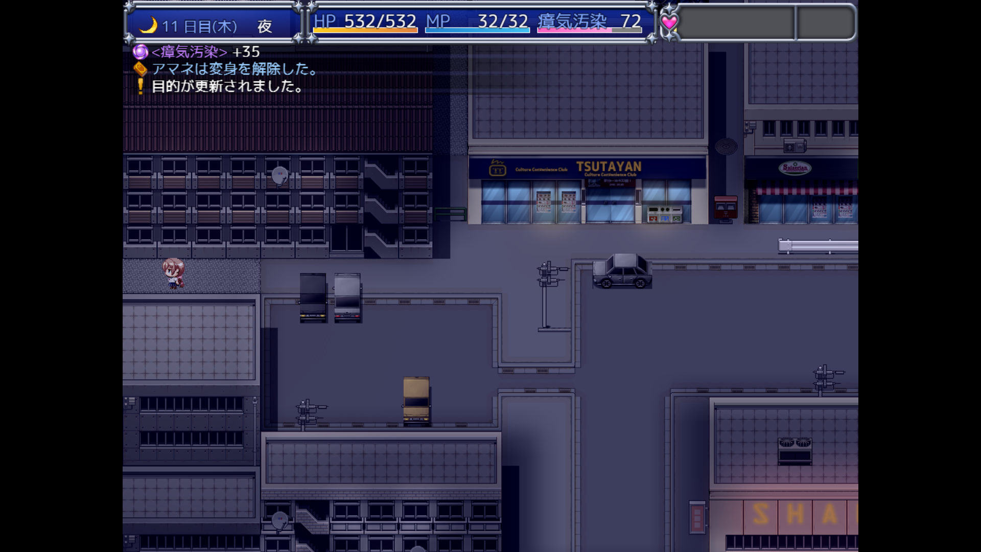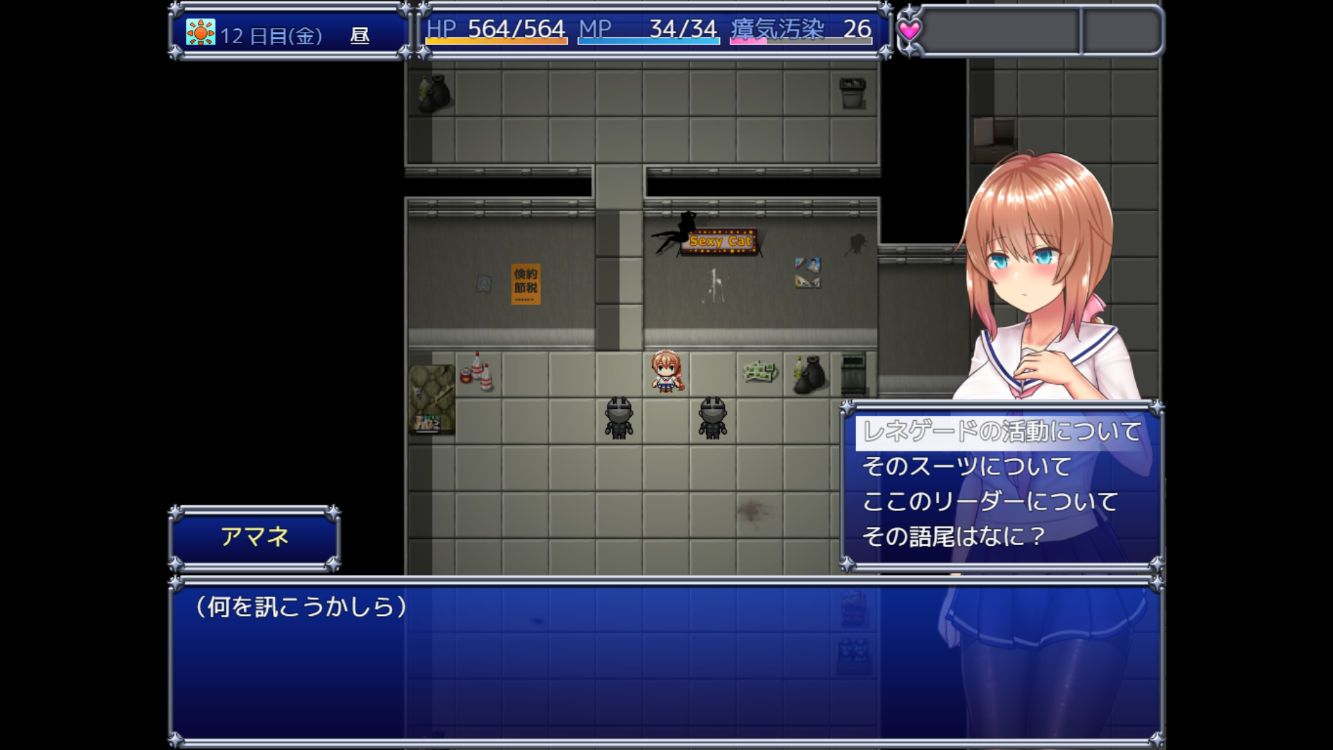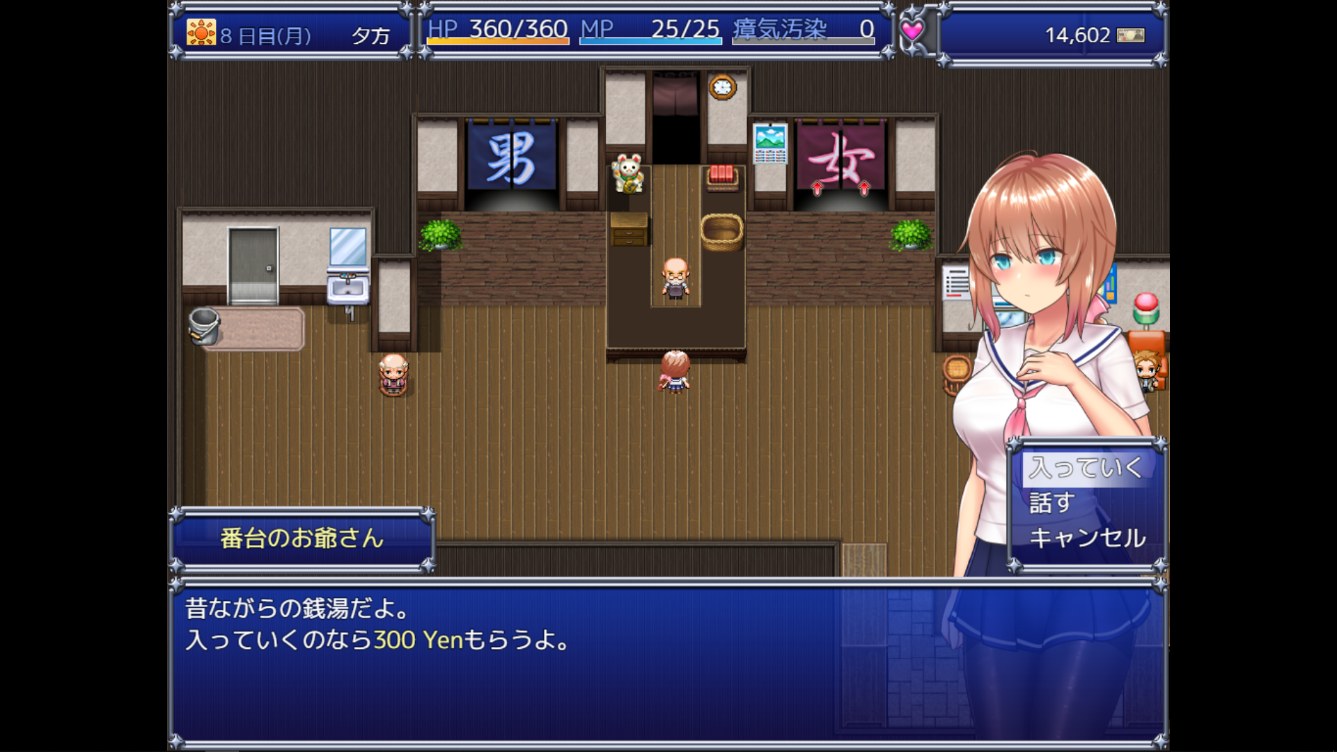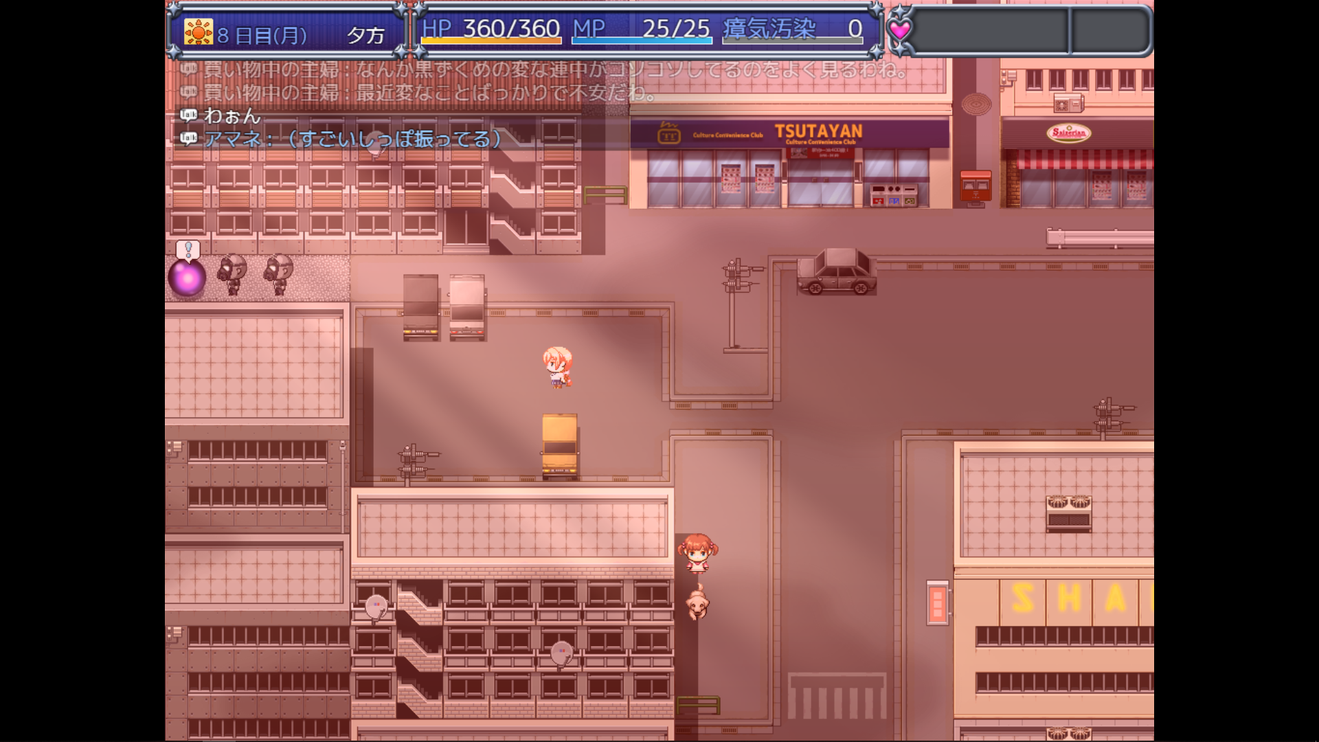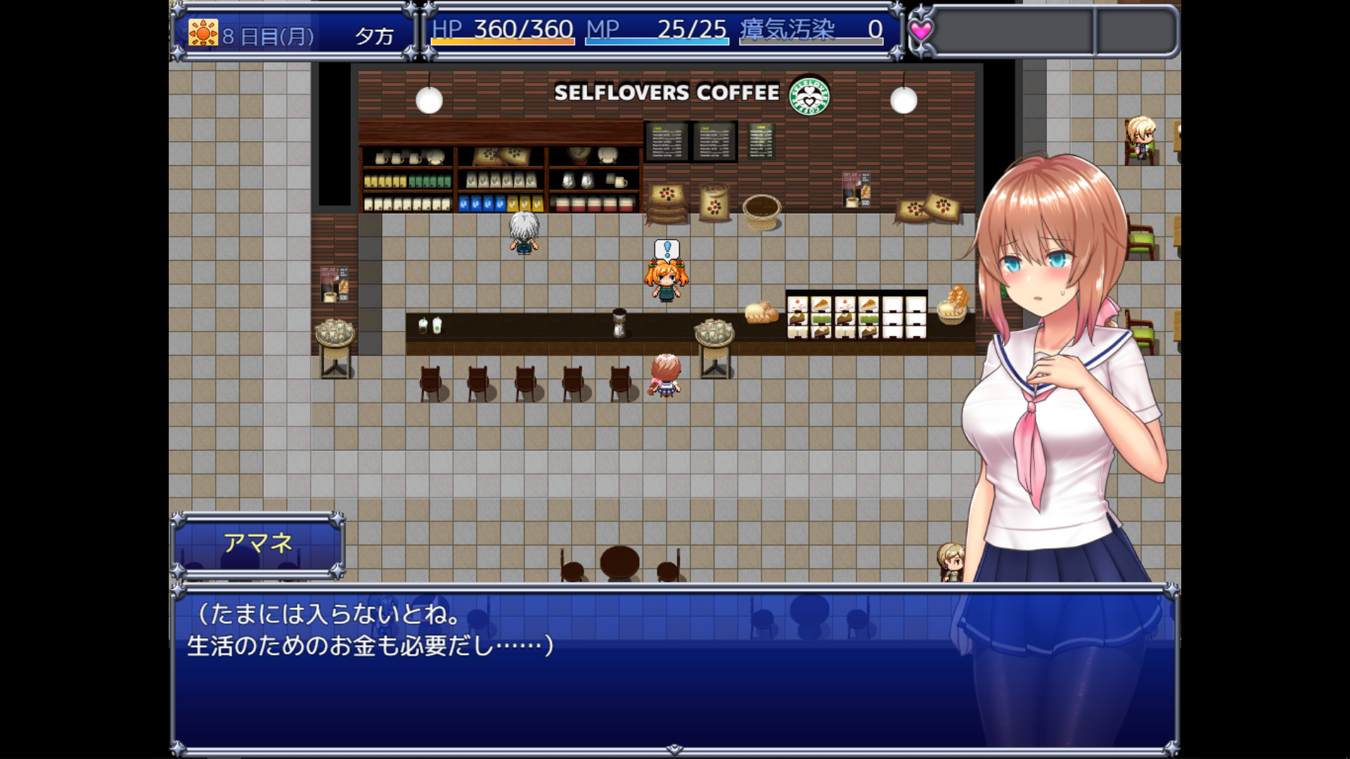 아빠가 돈주고 가라고 한 찻집별건없고평범한 알바가 가능합니다시거리에 와서위쪽에 찾던 물건이 있습니다이것저것 살 수도 있습니다이건 돈남는다고 샀더만 집에가니 하나 있으니 경영수영복을 사도록 합시다욕탕도 가봅시다퀘스트가 있는데별거없고남탕에 나옵니다처들어가면지금 싸우기엔 더럽게 셉니다한방에 반피가 깍이는데꾸역꾸역 이겼습니다당장은 별거 못합니다프리미션은세이브가 불가능합니다다 잡으면 클리어슬슬 이쯤되면 여기 뒤를 치면 한방에 죽일텐데 취향껏 노가다를 뜁시다여기 수영복이 있습니다여기도 아침 미션을 와보면당장은 아무것도 못합니다이걸 사면 회상방으로 갈 수 있고여기서 패배의 기억을 이용해 스텟을 올릴 수 있습니다회피템이 제일 좋은듯검은 개인적으로 이걸 썻습니다화학선생에게 말을 걸면1단계는 클리어가 됩니다나머지는 제작을 통해 만들어야 하는데 보통 4챕은 가야 주을 수 있습니다여기서 공격력을 올릴 수 있긴한데 큰 의미는 없습니다치유마법부터 죽 찍는게 좋습니다대충 2까지 만들어두고스토리를 진행해 봅시다이걸 깨면 되는데장기가 더럽게 쌓입니다이걸 깨면 메모리아가숏컷마법을 줍니다장기가 높을때 집으로 가면마사지숍 이벤트가 등장합니다역 앞으로 오면 레네게이드가 선전을 하고 있는데 나중에 가기로 하고마사지숍부터 갔습니다할머니가 마녀라네요여기선 잡템을 살 수 있는데묘하게 죄다 필요없습니다마사지는 침식도를 5정도 줄여주는거 같습니다대충 이쯤에서 이걸 샀습니다준비가 다 되었다면 말을 걸고마카이 지구로 끌려갑니다안쪽에 거점이 있습니다이것저것 물어볼 수 있고정보를 다 얻었으니 암살을 해줍시다템을 훔쳐가줍시다별건 없으니 죽죽 갑시다이렇게 쓰러져 있는 사람들을 구출할 수 있으니 구출도 해줍시다적이 있는데 평범하게 대화를 하시는회복도 해주고죽 올라가면 됩니다여자도 구해주고죽 위로가서이걸 피해서안으로 들어가서세큐리티를 꺼주도록 합시다여기로 들어가면 됩니다안쪽에 보스감시카메라에 찍히시는 아마네