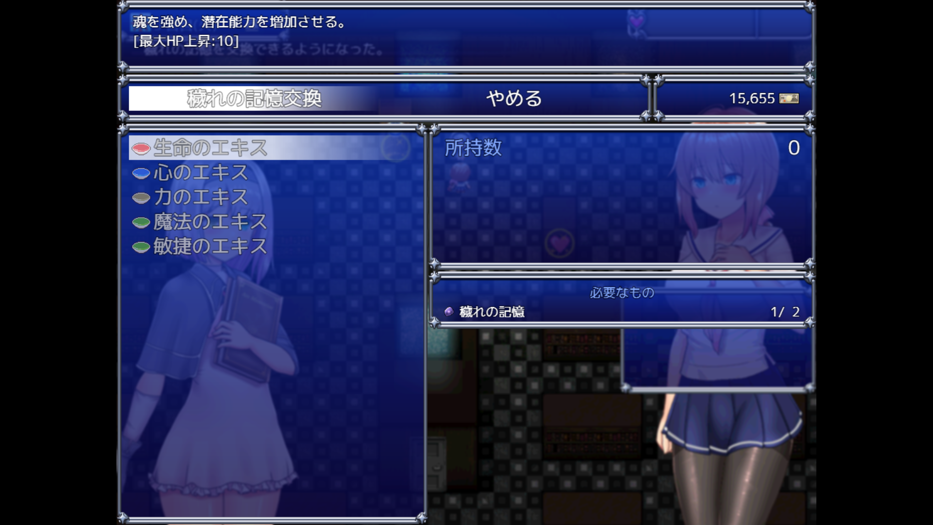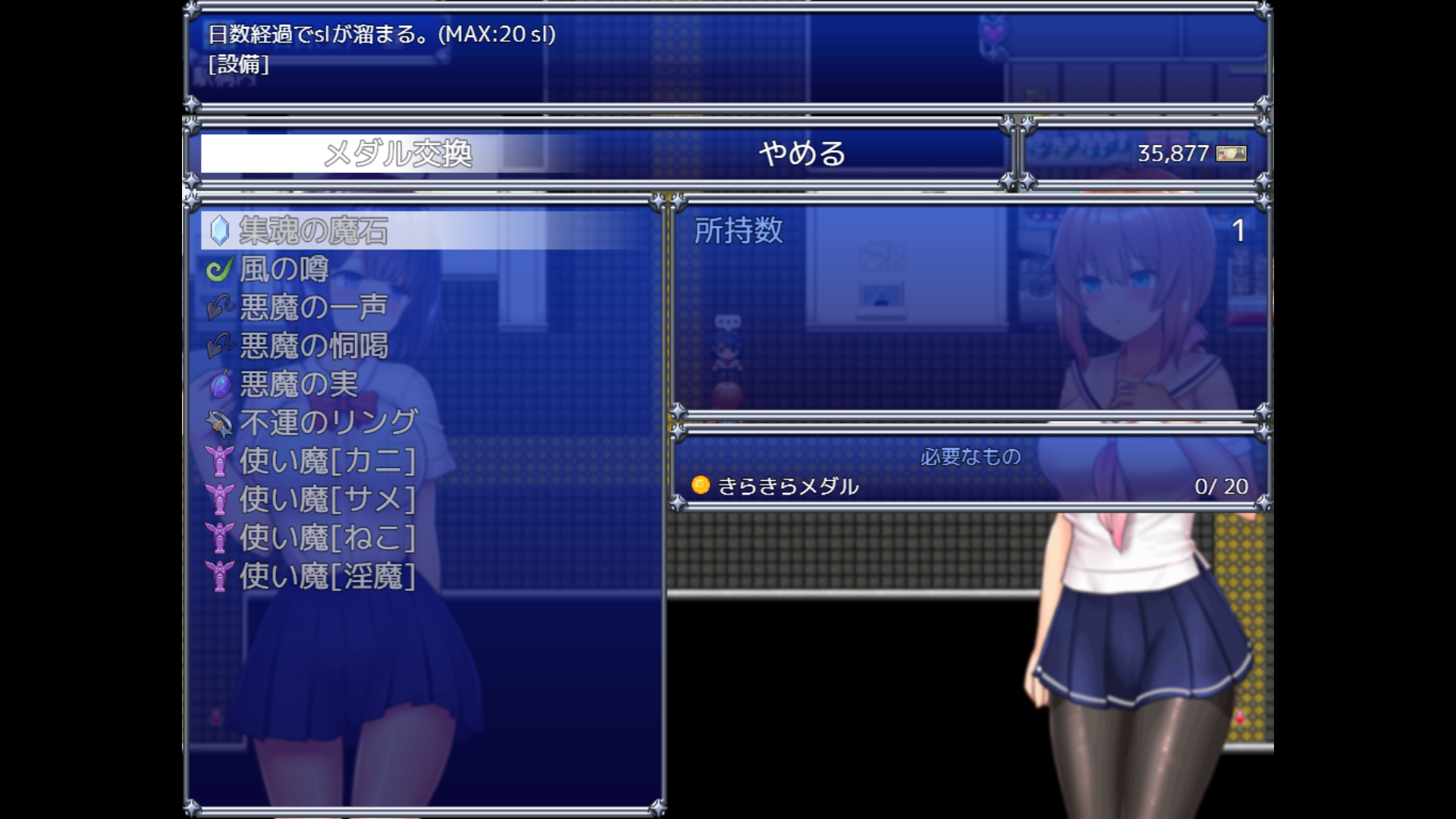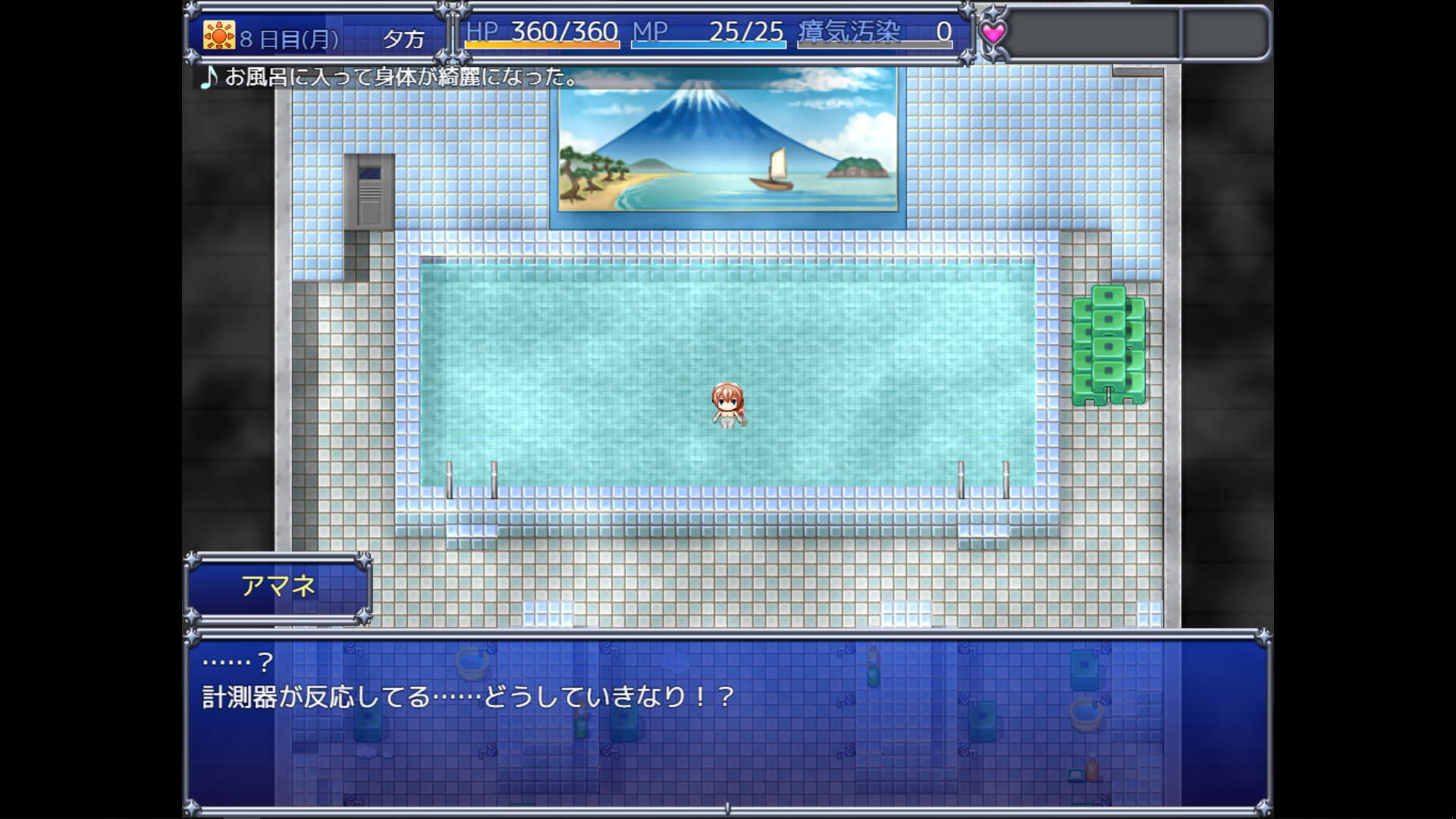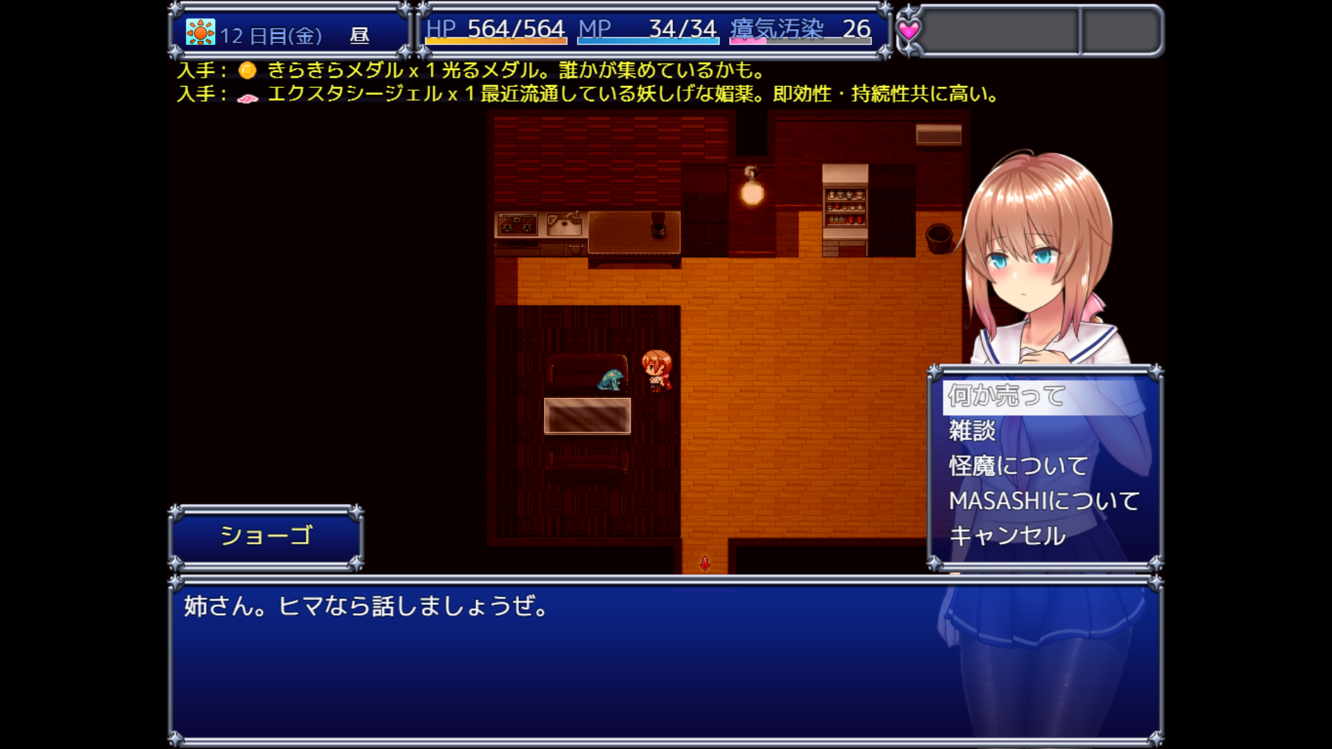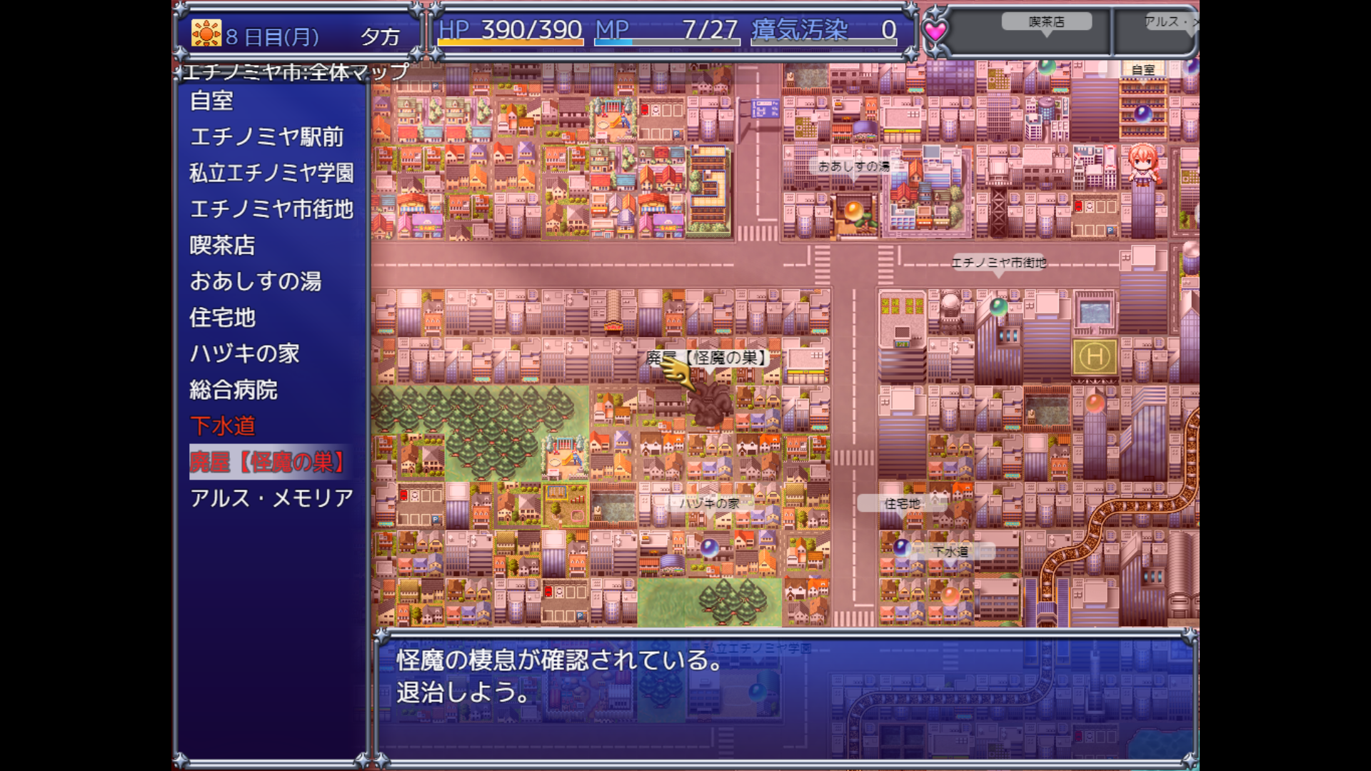 아빠가 돈주고 가라고 한 찻집별건없고평범한 알바가 가능합니다시거리에 와서위쪽에 찾던 물건이 있습니다이것저것 살 수도 있습니다이건 돈남는다고 샀더만 집에가니 하나 있으니 경영수영복을 사도록 합시다욕탕도 가봅시다퀘스트가 있는데별거없고남탕에 나옵니다처들어가면지금 싸우기엔 더럽게 셉니다한방에 반피가 깍이는데꾸역꾸역 이겼습니다당장은 별거 못합니다프리미션은세이브가 불가능합니다다 잡으면 클리어슬슬 이쯤되면 여기 뒤를 치면 한방에 죽일텐데 취향껏 노가다를 뜁시다여기 수영복이 있습니다여기도 아침 미션을 와보면당장은 아무것도 못합니다이걸 사면 회상방으로 갈 수 있고여기서 패배의 기억을 이용해 스텟을 올릴 수 있습니다회피템이 제일 좋은듯검은 개인적으로 이걸 썻습니다화학선생에게 말을 걸면1단계는 클리어가 됩니다나머지는 제작을 통해 만들어야 하는데 보통 4챕은 가야 주을 수 있습니다여기서 공격력을 올릴 수 있긴한데 큰 의미는 없습니다치유마법부터 죽 찍는게 좋습니다대충 2까지 만들어두고스토리를 진행해 봅시다이걸 깨면 되는데장기가 더럽게 쌓입니다이걸 깨면 메모리아가숏컷마법을 줍니다장기가 높을때 집으로 가면마사지숍 이벤트가 등장합니다역 앞으로 오면 레네게이드가 선전을 하고 있는데 나중에 가기로 하고마사지숍부터 갔습니다할머니가 마녀라네요여기선 잡템을 살 수 있는데묘하게 죄다 필요없습니다마사지는 침식도를 5정도 줄여주는거 같습니다대충 이쯤에서 이걸 샀습니다준비가 다 되었다면 말을 걸고마카이 지구로 끌려갑니다안쪽에 거점이 있습니다이것저것 물어볼 수 있고정보를 다 얻었으니 암살을 해줍시다템을 훔쳐가줍시다별건 없으니 죽죽 갑시다이렇게 쓰러져 있는 사람들을 구출할 수 있으니 구출도 해줍시다적이 있는데 평범하게 대화를 하시는회복도 해주고죽 올라가면 됩니다여자도 구해주고죽 위로가서이걸 피해서안으로 들어가서세큐리티를 꺼주도록 합시다여기로 들어가면 됩니다안쪽에 보스감시카메라에 찍히시는 아마네