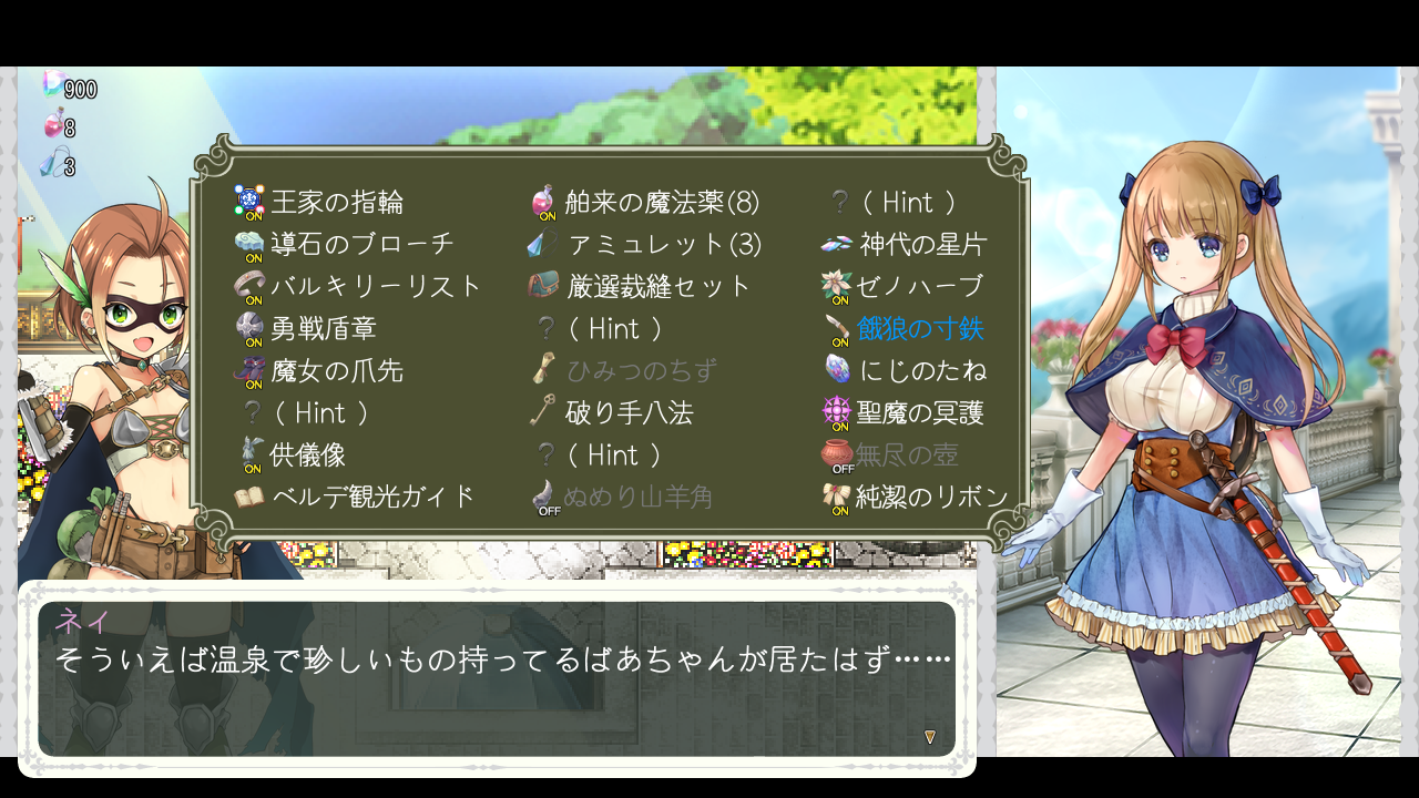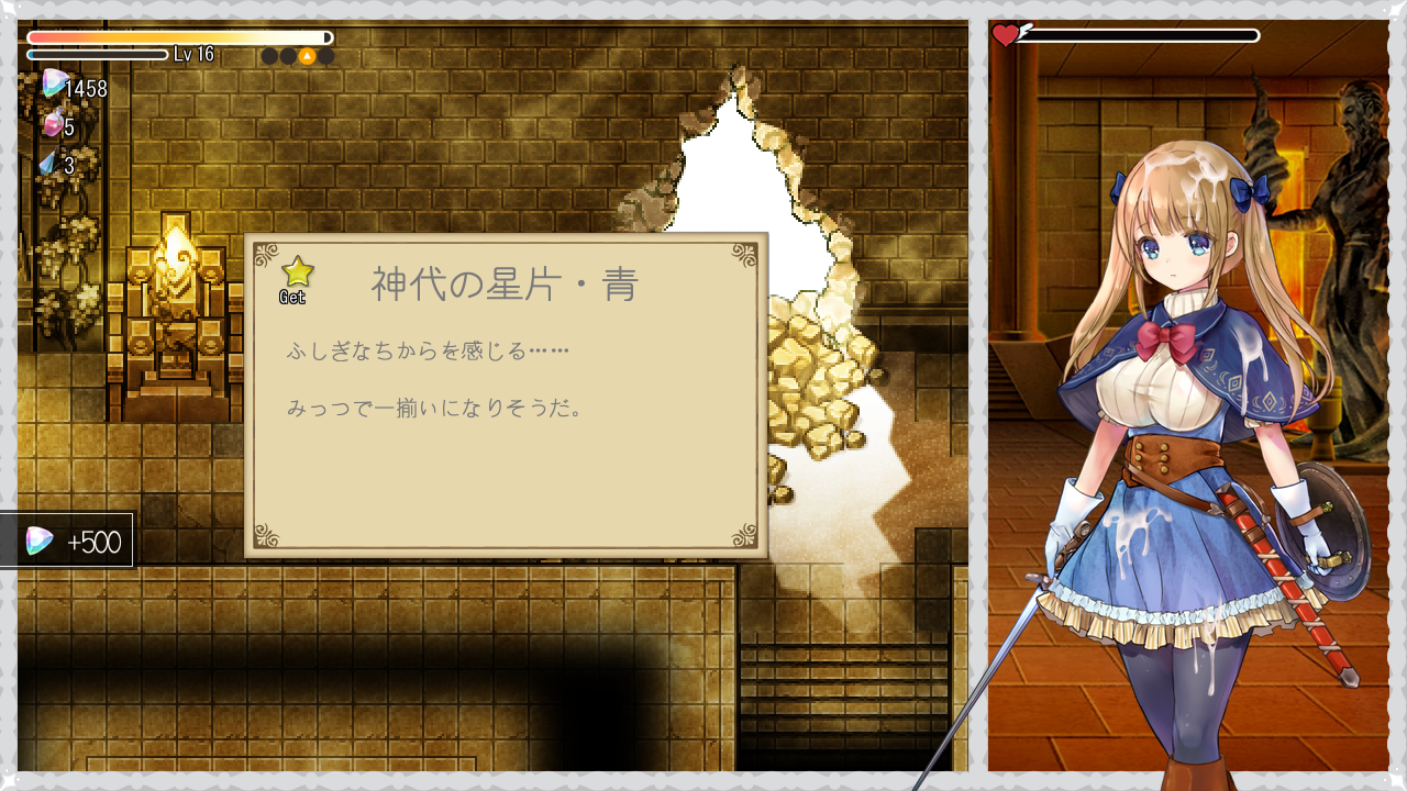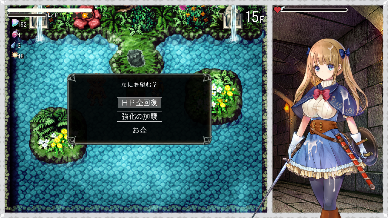 여기도 심심하니 탐험10층마다 보스가 있고 중간지점으로 저장됩니다돈이 제일 좋습니다집으로 돌아긴 댕댕이를 키울려고 하는군요 커엽길러줍시다이름도 정할 수 있는나데나데이후 말을 걸면 할 수있는게 늘어납니다이런 후와후와거리는걸 잡으면 나쁜아이도가 증가하니 주의10렙이 되어 말을 걸면 조각을 하나 줍니다다른 조각은 첫 맵의 상자에 있습니다다른건 별거 없습니다상자도 열고이런곳에 숨겨져 있습니다디버프템늑대와도 싸우고이런데는 갇히는 구간보스전별거 없었습니다그냥 춤만추다가 가십니다스테이지를 클리어하면 제한이 해제됩니다여기도 템을 사면 의장의 파괴도를 변경가능합니다얜 좀 있으니여기서 죽어있더군요안에는 별거없었습니다여기는 조심히 지나가면그냥 당하는 장소용이걸 때리면나쁜아이도가 엄청 올라갑니다 깜놀한내려가서 바로 오른쪽 집은남창이 있습니다취향껏다른건 별거 없더군요여기도 지나갈 수 있게 되는데당장은 별거 없습니다이벤트 보기용나중에 들어갑시다마지막 탐험섬바디 헬미급으로 짜증납니다죽 내려가서 이걸 잡으면끝입니다돈치트를 줍니다여긴 별거 없습니다상자는 저기 있던데 밖으로 나가서 얻어야 하더군요샘은소원빈다고 던진 돈을 가져갈 수 있습니다죽가면 보스고이건 그냥 왼쪽길로 가면 있더군요병사가 다쳐있고무시하고 기억이나 봅시다마지막은 대시하면서 이동해야 합니다댕댕이도 죽이고보스전다 하면 정령을 템창에서 바꿀 수 있습니다주점앞에 사람이 있던데 이건 그냥 회상모으기용이였습니다뭔가 늑대가 와있는데사막의 그곳으로 와달라고 합니다가면검을 받을 수 있습니다오추억을 다 조사하면들어갈 수 있게 됩니다오른쪽으로누구심붙잡혀 가는데면회를 신청합시다이야기를 듣고다시가서템을 얻고 석방여기로 가면이런 저런것들의 힌트를 들을 수 있습니다ㄹ이건 검이고슬럼에서 얻을 수 있는데 처녀플도 아마 얻을 순 있는데 노가다가 더 심할겁니다온천에도 하나기사장이 하나 가지고 있나봅니다말을 걸어서 자살용 템을 얻을 수 있습니다처녀플으로 하기엔 다감도얻기가 힘들긴 합니다온천은 밖의 아줌마가 주더군요마지막으로 여기4군데의 중보스들을 잡아서 구슬을 켜줍시다안쪽에서 그때의 흑기사잡으면 파편을 주는데이걸로 연속공격이 가능한 템을 얻을 수 있습니다죽 들어가면 디버프를 받는데정령을 다 모았다면 상쇄가 됩니다정문으로 못가고옆으로 빙글빙글 돌아서 가야합니다유니콘도 있는데쓸데없는 경험치버프를 줍니다안쪽에서 보스자기자신과의 싸움 후이상한 곳을 지나공주님을 만납시다구출 후최종보스전눈을 열면 때리면 되는데 버그인지 다단히트로 들어갑니다예쁜 일러와 함께 공주를 구출합니다데리고 가면 가끔씩 쓰러지니 잘 챙겨갑시다클리어엔딩 1을 봤습니다다른엔딩들은 조건이 다 나와있더군요 회상은 밖에 나가서 회상방에서 전회상개방이 될겁니다