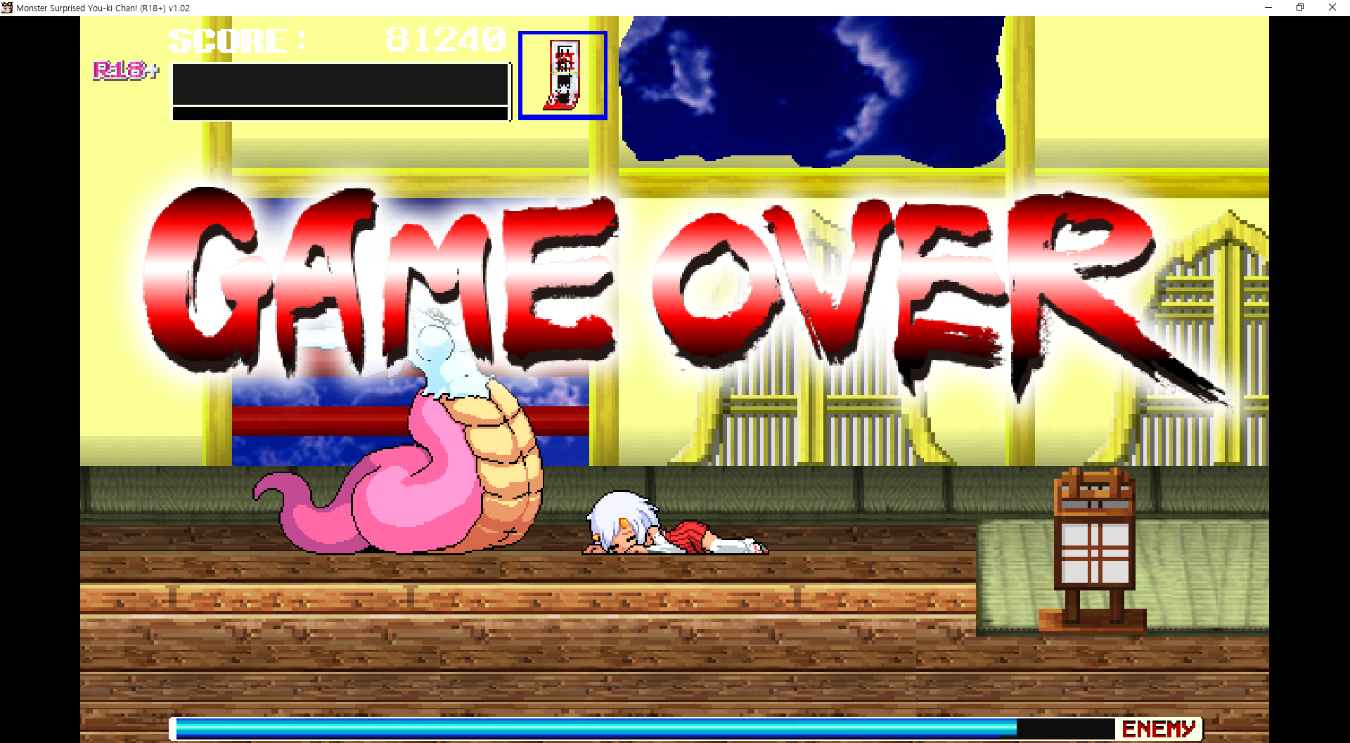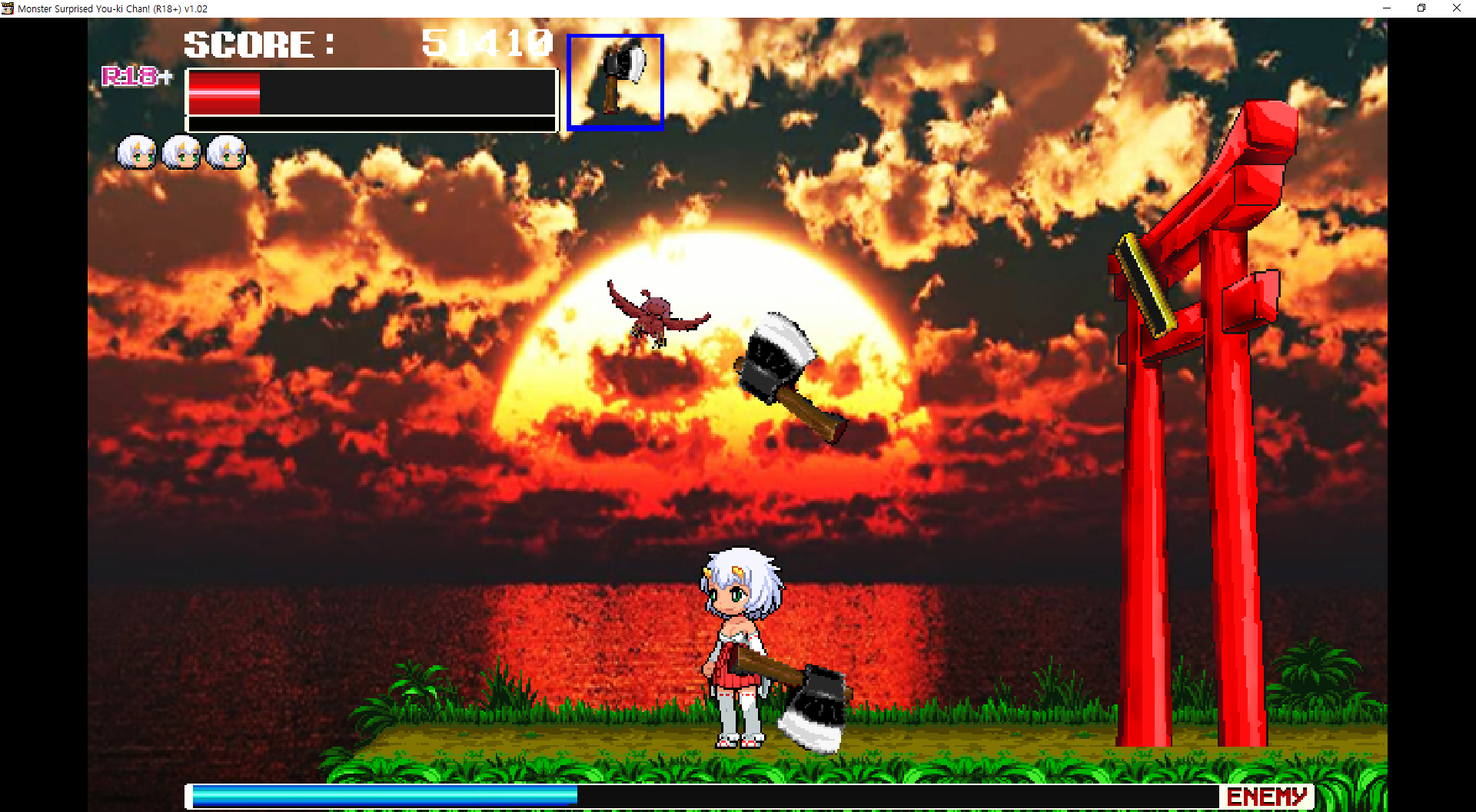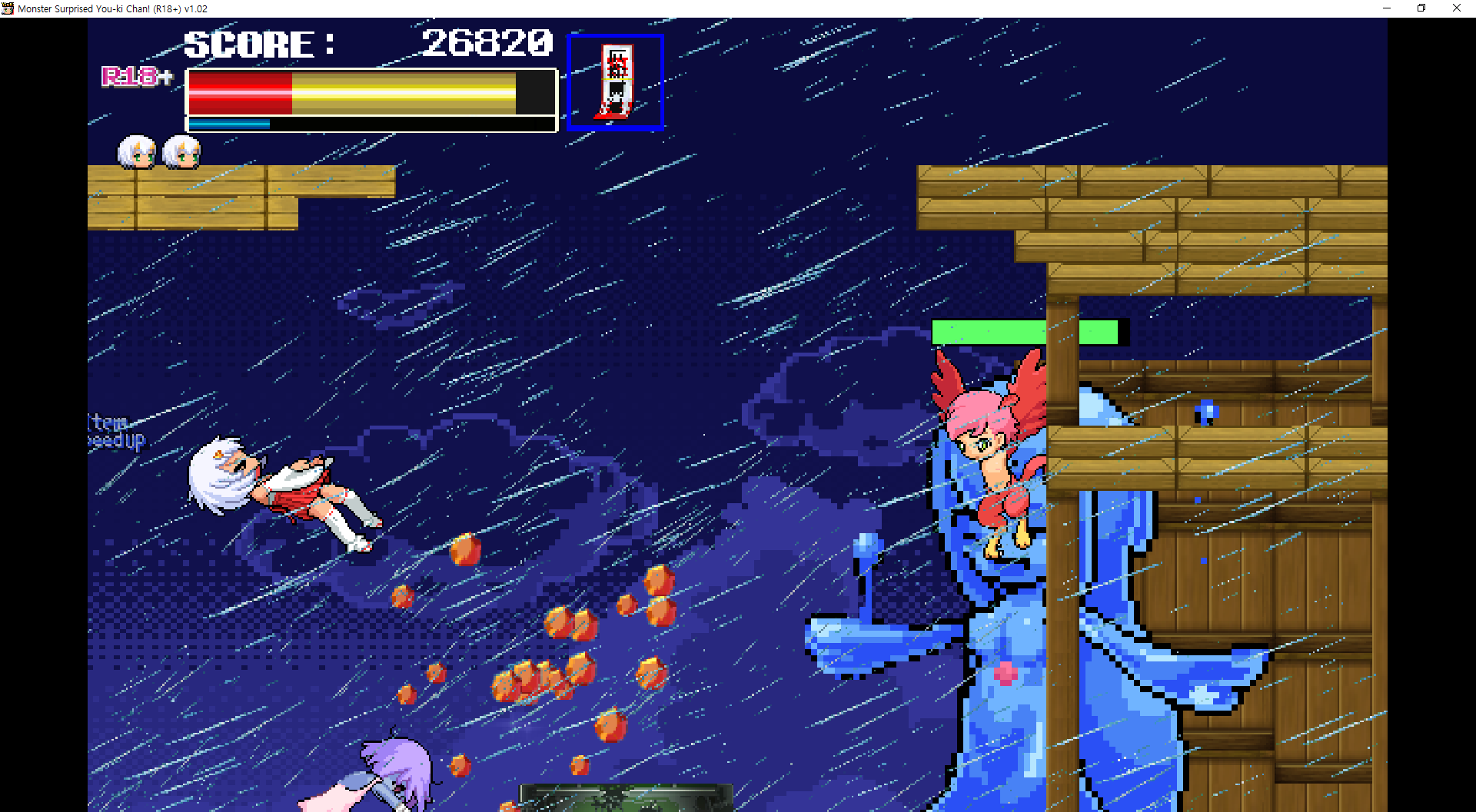 상황에 따라 이지도 추천합니다무기들 목록인데 개인적으론 부적이 제일 좋았습니다키설명까지 친절점프해서 상대 공격을 잡아역으로 공격 할 수 있습니다저런 폭탄풀은 때리면 폭팔해서 좋습니다돌은 진짜 너무 느리고도끼는 곡선으로 던져서 영 별로였습니다길따라만 가면 되는 좋은 겜보스전거대해 지네요이떄 딜을 잘 넣어서 한방에 저걸로 죽이면 페이탈리티입니다재도전해본결과 돌을 잡아 던지면 아슬하게 딜이 되는거 같더군요다음은 하피익사가 있는 갓겜입니다나무를 위로 잡아 올라갈 수 있습니다 특이하네요저기 위로 힘들게 올라가야 합니다위로 죽죽 올라가면이런곳이 있는데하피가 날라오네요반피 이하가 되면 날라오면서 돌을 떨구고저쪽 토이리 쪽으로 박으면 밧줄도 떨어뜨리는데날라오는 하피에게 돌을 던저 기절시킨 뒤 밧줄을 던져주면 됩니다다음 스테이지 여기서부터 난이도가 급상승합니다닌자도 숨어있습니다나중에 여러분들에게 엿을 선사해줄 가고일함정도 낭낭하게 준비되어 있습니다길도 뒤로 갈 수록 복잡해지더군요죽 올라가면여우가 기다리고 있는데댓?여우에 라미아라니 혼종으앙쥬금다행히이어하는 장소는 양심이 있습니다일단 머리를 치면 공격이 먹히는데 대부분 공격이 안먹힙니다이떄는 오히려 적에게 가까이 있으면 안맞습니다체력이 낮을때 다다미를 던지면 기절상태로 만들 순 있는데 마력탄이 다다미를 부수고해서 어렵습니다여기서만 한 10번은 넘게 죽은듯다음은 전함을 부수러 갑니다타서죽이고 뺏읍시다이 배는 이제 제껍니다전함으로 처들어가서난리를 피우면 됩니다문제는 여기만 쓸 수 있습니다슬픔스위치를 누르고 진입하면타이밍 맞춰 피하는 곳기다리는걸 못참는 한국인에게 어려운 게임이였습니다악벽타고 가는줄 알고 갔다가 다급하게 돌아오고 있습니다이걸 타고 가면 되는듯 하군요중간에 내렸다가 다시 타고 가거나 벽을 잡고 가면 됩니ㅏㄷ죽 가서위로 죽죽가면선장실에서 황소눈난가 기다리고 있습니다이때 뒤를 잡을 순 있다는데 노리기는 빡셉니다라미아랑 비슷하게 잡을 수 있고 무적패턴도 없어서 할만합니다? 살아있는거 같은데??야 일어나봐아무튼 전함을 부수고 탈출을 합시다근데 여기서 버그걸림 아 ㅋㅋ다행히다행히 여기쯤으로 저장이 되어있더군요보스도 다시 잡고이젠 잡몹이 된 보스몹도 보고왔던 곳을 거꾸로 돌아가고 있습니다멀미나이상한 코어를 떄려잡아 줍시다특정 타이밍 마다 화면이 흔들거려서 어지럽습니다이런데 있어도 안전하니 옆에 붙어서 때려주면 됩니다부숴주면폭발을 하니 도망쳐줍시다호에에엑아이곳저곳 무너져 있으니 잘 피해서 갑시다아빨리 뛰어서 비행기도 훔쳐줍시다역시 살아있었네요딱히 저쪽편은 아니고 협박받아서 같이 있던거라고 합니다자기는 작은 마을을 수호하는 신이라고 하네요