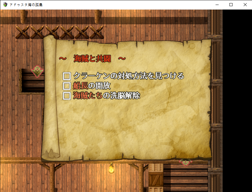 로프를 이용해 해적선으로 갑시다엔딩조건중 하나가 해적선의 해적을 모두 죽이는거니 죄다 죽여줍시다뭐래이곳저곳들 털어줍시다튼튼한 통을 찾으면엔딩조건이 하나 더 열립니다육분의도 얻고오른쪽으로 올라가는 길은 다른 쪽으로 나가는 길입니다여기서 암살을 배웠는데 마나가 드는데다 이쯤되니 엔간한 적은 암살이 안되더군요 뭐임두개를 배워야하는지는 모르겠는데 그 라인의 스킬을 배우면 오의도 주기 때문에 찍긴 해야합니다아래로 내려가서템을 훔치고여기서 크로스보우를 얻을 수 있습니다메달도 겟순찰이 오는데여기다가 숨으면 됩니다행운점이 있기 때문에 5이하만 나오면 되는데주작하지 말라고 ㅅㅂ다른 방도 불을 켜주면서 템을 찾아줍시다왼쪽은 나중에 키면 왼쪽에 템이 나오더군요여튼 열쇠를 얻고이거는 중요한 정보는 아닙니다더 내려가면신호용 횃불과잡것들이 있습니다여길 열고대충 일기장을 보고정상인은 아닌듯 합니다이런저런 활동으로도 경험치를 얻을 수 있습니다나침반도 얻고수증호흡의 연고도 얻어줍시다다시 돌아와 무기고에서아까의 포탄과 수복제를 만들 수 있는데 필요없습니다크로스보우를 이용해 넘어가면섬 중앙꺼져부숴주면뭔가 정화된 기분을 느낄 수 있습니다내려가면 섬 북부언더월드로 가봅시다여기서언제주웠는지도 모를 메달을 끼우고구경이런 시체는 기억해 둡시다내려가서 탐험맨 오른쪽은못갑니다여기서 템도 줍고지름길도 만들어 줍시다죽 내려가면해저신전이건 해적선 맨 오른쪽에서 주을 수 있는데 못봐서 현재는 없습니다돌구경하고여기도 둘러보고지름길여기 이벤트를 나중에 봐서 이벤트가 지금나오는데여기에 뭔가 안좋은 예감이 드는데다시 가보면 돌이 굴러떨어집니다다시 게가 있던 곳으로 오면 게들이 모두 사라져 있습니다시체도 기억해둡시다여기서도 해저신전으로 갈 수 있습니다템인줄어둑어둑한데어둠의 주민들은 기습이 힘들다고 합니다기습도 찍어줬습니다위쪽길로 가서 내려가면선장이 같혀있습니다일단 나중에 오죠여기에 전에 주은 메달을 끼우고 들어가서죽 가면석상이 있습니다잘가고만원경도 있습니다여기를 정리하면 여기 메달을 얻을 수 있습니다이때쯤이면 이야기가 가능하더군요해적과의 공투가 가능해집니다신전의 왼쪽 아래로 가면상층부죽 길따라 가면석상이 있는데이건 아직 못주웠습니다아래로 가면 보관고여기서 얻을 수 있습니다저기 뭔가 빛이 나오는데조사하면 지팡이를 수리하는 퀘스트를 얻을 수 있습니다여기서 악세도 얻고여기는최종보스인데다가 들어가면 못나오니 나중에 옵시다다시와서 그냥 잡아도 되고위로가서죽 가서수면제를 가져와서 죽여도 됩니다 수면제로 죽이는게 경험치가 더 적습니다여기도 항해사들이 있고옆으로 내려가면장비와난파선의 정보를 얻을 수 있습니다다시와서 여기저기그리고 돌이 굴러왔던 곳을 조사하면여기도 뭔가 있습니다뭔 효과인지는 모르겠습니다옆으로 죽가면보스구경쟤들은 왜 안가지여기서 마지막 템을 주을 수 있고이걸로지팡이를 만들 수 있습니다알고보니 승강기가 없어서 못돌아가던 것이건 왜 안가지나 했더니 옷을 바꿔 입어야 하더군요선장을 죽이고 얻은 브로치를 가지고 오면아뮬렛을 얻을 수 있고 크라켄과의 전투를 피할 수 있습니다여기에 누가 추가되어 있던데잡템들을 팝니다여기 밖의 통이 탈출수단 1운이 8이상이 되어야 하는데 행운의 토끼발과 상자들을 조사하다보면 운빨로 행운이 1증가합니다 즉 운으로 못클리어 할 수도 있습니다여기도 연장시켜주고승강기를 내려주면엔간한 클리어 루트는 다 했습니다해적선 오른쪽 끝열쇠로 열고내려가면 나룻배와 석상이 있습니다탈출 수단 하나와이제 해적들의 정신이 온전히 돌아옵니다다 죽여서 없을지도난파선 아래에서 검을 얻고여기서 수리를 해주면최강템을 얻을 수 있습니다이렇게 끼고 보스전 2번째 악세의 경우 크라켄 퇴치 악세가 더 센데 로드를 잘못해서 못끼고 갔습니다이거 쓰고 들어가면버프가 발린상태다음은 물길어놓고 기도하면서 깨면 됩니다상태이상의 경우 이게 풀어주니 써줍시다아슬아슬하게 이겼습니다이 후 해적과 탈출하면 엔딩 1입니다