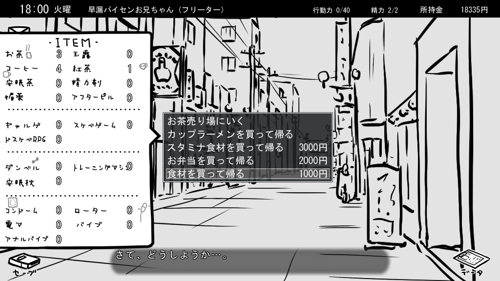 라면일 경우 돈이 안들지만 호감도와 기분이 깍이므로 배드엔딩나기 좋습니다