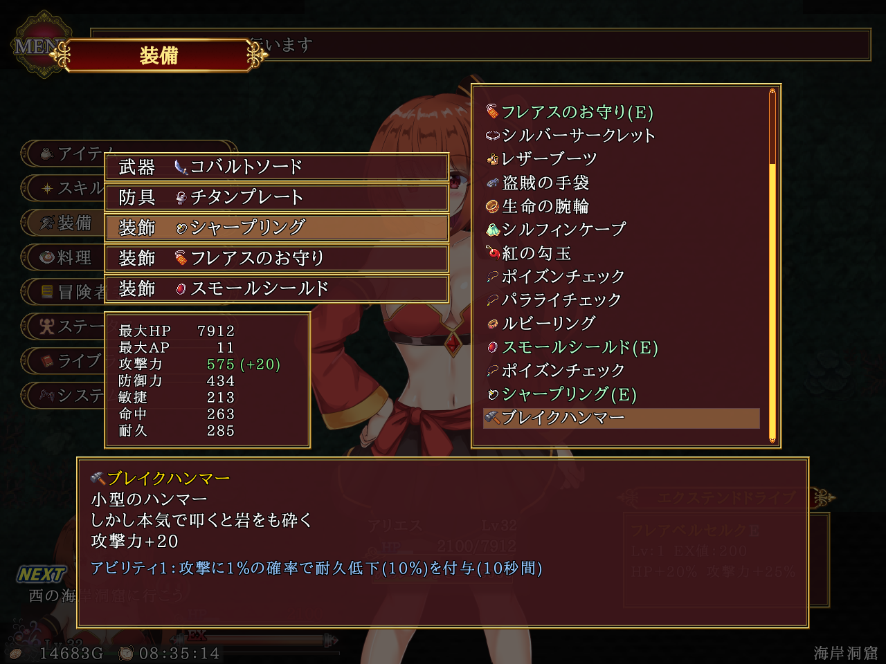 상태이상도 마비 독 둘다 걸기 때문에 마비악세를 끼고 독은 음식으로 해제합시다