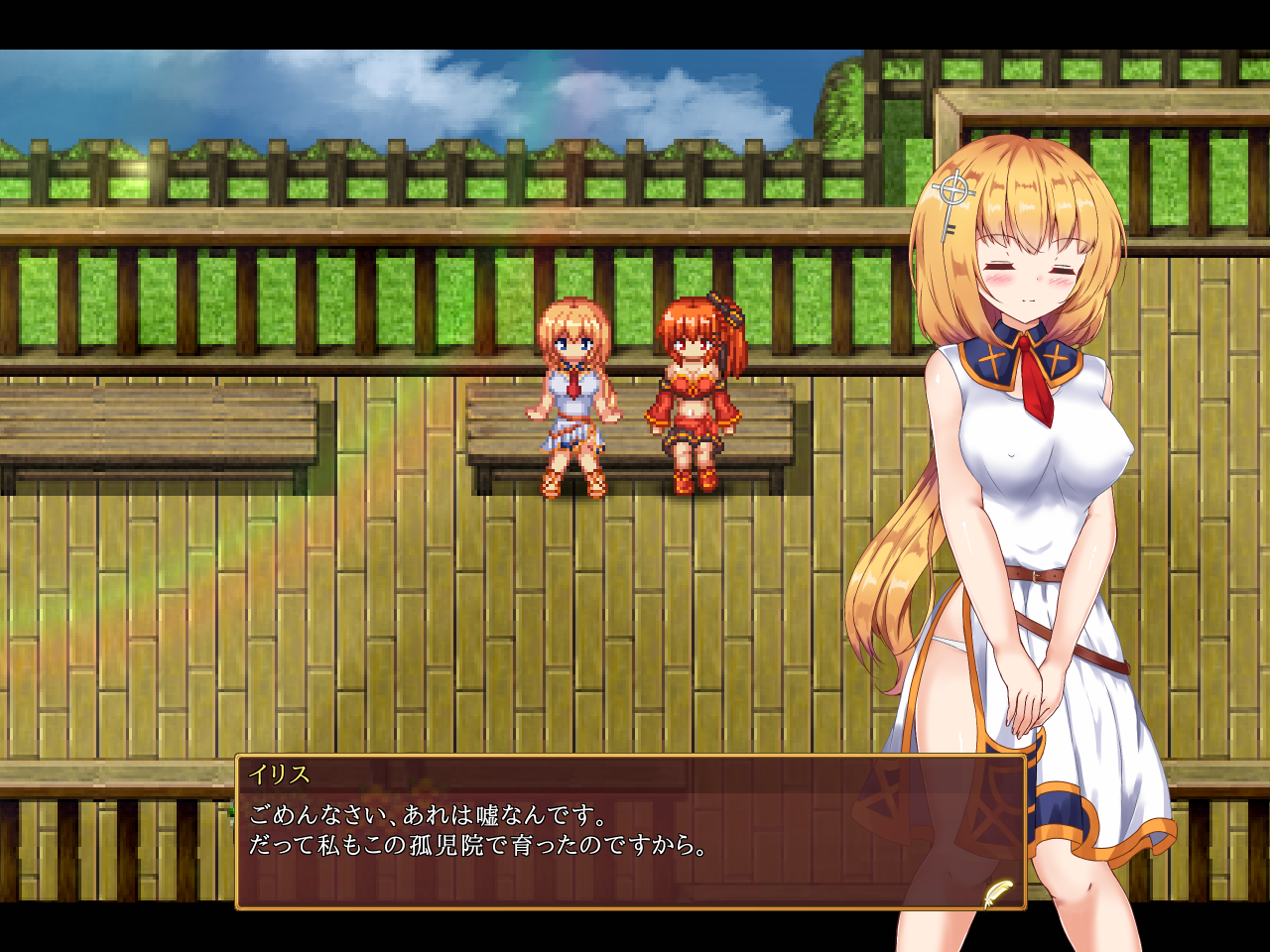 그런데도 딸피로 깬아무튼 집니다만 이때 벨이 와서 도와줍니다오추웡3일정도는 얼어있을거라고 합니다생각보다 여기 오크들은 단단하군요그새끼그때 그냥 죽였어야 했습니다사실 가업을 물려받는게 싫으신일확천금의 꿈을 안고 상경했다가 망해서 사교에 빠지고매직아이템을 빌리고 그걸로 돈을 벌 생각을 했습니다오리카의 엄마도 유괴해서 팔았습니다그리고 가축처럼 오리카를 노려 아이들을 팔 생각을 했습니다미친백업이 있으니 도망칠거라고 생각하지만 그냥 죽이러 온거였습니다잘가고일단은 물러갑니다아무튼 퀘스트는 실패돌아가는 도중 이리스를 만나게 되고졸졸졸 쫓아갑시다앗역시 교회군요고향에 있는 부모를 낫게 하기 위해서 약이 필요하다고 합니다신자를 늘리고 많은 기부금을 모으면 비약을 건네주겠다고 했다고 합니다그리고 야한거 좋아함바이바이내일 같이 놀라가자고 합니다정문으로 가면 이리스가 있습니다서쪽의 못가던 다리로 가면 됩니다이 앞을 건너가면 됩니다뎃?는 이리스의 팬클럽이 있군요뭔 이상한 단언가 했더니 팬클럽의 약자였군요해서 갑시다참고로 밤의 그 일들은 아무튼 꿈인걸로 친다고 합니다템도 먹고란스죽 가면고아원이 있는데 이런 곳에 고아원을 둘 생각한 사람은 대체 누굴까요교회가 관리하고 있었다고 합니다교주도 여기에 있군요수리가 되자마자 아이들이 걱정되어서 왔다고 합니다 그럼 이딴데 짓지 말던가그녀에게 시스터를 소개한건 자기고 앞으로도 잘 지내달라고 합니다뭔가 이쪽을 믿는 듯한 분위기앞에 했던말은 사실 거짓말이고 자기는 고아원에서 살았답니다그 약을 먹으면 이 성격을 고칠 수 있지 않을 까 하는데그냥 있어야징인간의 여자가 되고 싶다고 하는거보니 서큐버스인가 보네요숏컷낚시도 열심히 했습니다무기도 하나 받을 수 있고 피쉬아이라는 뭘 덜 낚았는지도 알 수 있는 템도 줍니다여기도 돈을 갚고 하나 더 받았습니다너무 디메리트가 큰데내려가면 퀘스트가 있고시험일이라고 합니다쫓아가죠다행히 지도를 보면 어디로 가야하는지 알 수 있습니다쫓아가면나쁘지 않습니다만그걸로는 부족합니다영혼이 없다고 퇴짜를 맞습니다여기로 와서얘도 이리스 팬클럽 회원이였군요단장이 조언을 해줍니다일단은 여기서 끝이 납니다돌아와서 길드로대화를 해보면 서큐버스에 대한 이야기를 들을 수 있습니다숲으로 가면 됩니다가서미로인데템도 줍고그 밧줄오른쪽부터 가야합니다거울은쓰레기이상한 미로맵도 있고오른쪽부터 가보면템들과여기 몹들의 난이도가 미쳤습니다너무 어려워서 Ex까지 썻습니다로프를 꾸역꾸역 얻고낚시도 해줍시다얘도 진짜 미쳤습니다아마 이템이 식물특공을 가지고 있을겁니다여기 길은빛에 유혹된 자는 환상의 숲에서 영원이 헤맬것이다안빛나는 버섯으로 갑시다여기가 5마리가 계속 리젠되므로 노가다하긴 좋습니다제대로 가고 있는거 맞나? 할 정도로 꽤나 오래 가야합니다안쪽엔 서큐버스가 있고그냥 잡몹수준의 강함입니다과격패는 대부분 죽었고 남은건 다 온건파 서큐버스랍니다같이 살고 싶다고 대화하는 도중 모험가가 끼어듭니다에이이와중에 퀘스트도 멋대로 뺏어 갔습니다 실환가