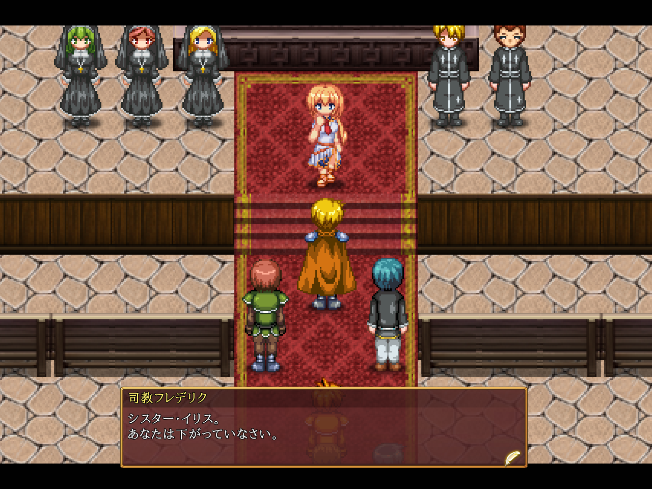 꺼져이쪽이 이겼습니다솔직히 가문때문에 하는거지 이번건은 딱히 하고싶어 하진 않았군요지하통로로 들어갈 수 있었습니다열쇠도 줍고안쪽으로 들어가면보물상자가 있다고 광고를 떄리는데못엽니다이리스에게나 갑시다해정스킬을 가지고 계시네원래 혼혈이라면 죽기 마련인데 엄마는 키워줬지만 모험가들에게 죽어버렸습니다다른 부모에게 양자로 들어갔으나 음마의 본능으로 인해 가정이 초토화 되어버렸습니다잡히면 죽일거라고 생각해서 도망치고이러던중 성홍기사에게 도움을 받았습니다해서 이렇게 같이 있었습니다찐 교주라면 성검 에스트그랄이 있을거라고 하는데본인에게 물어보자고 합니다고르조브를 죽인 로브남이 튀어나오는데짜쟌 사실 교주였습니다이리스는 중요한 불씨라고 합니다검은 불은 창세의 불이라고 생각하며 사교를 따르고 있습니다와 저거도 있네개털립니다결계의 매직아이템으로 이리스를 가둬버립니다얼음의 결계로 길을 막고 튑니다어떻게 하지다른 지하통로를 이용하자고 합니다이리스랑 같은 방을 쓰던 리에라라는 시스터가 도와줍니다교회엔 결계때문에 못들어간다고 하고이 목걸이가 열쇠이므로 줍니다지하감옥으로 가는 다른 길을 알려줍니다한동안 마을로 못돌아오니 조심하라고 합니다비밀통로를 알려줍니다덤으로 어제부터 아론신부가 보이지 않으니 조심하라고 해줍니다