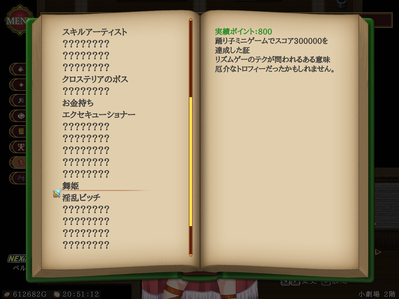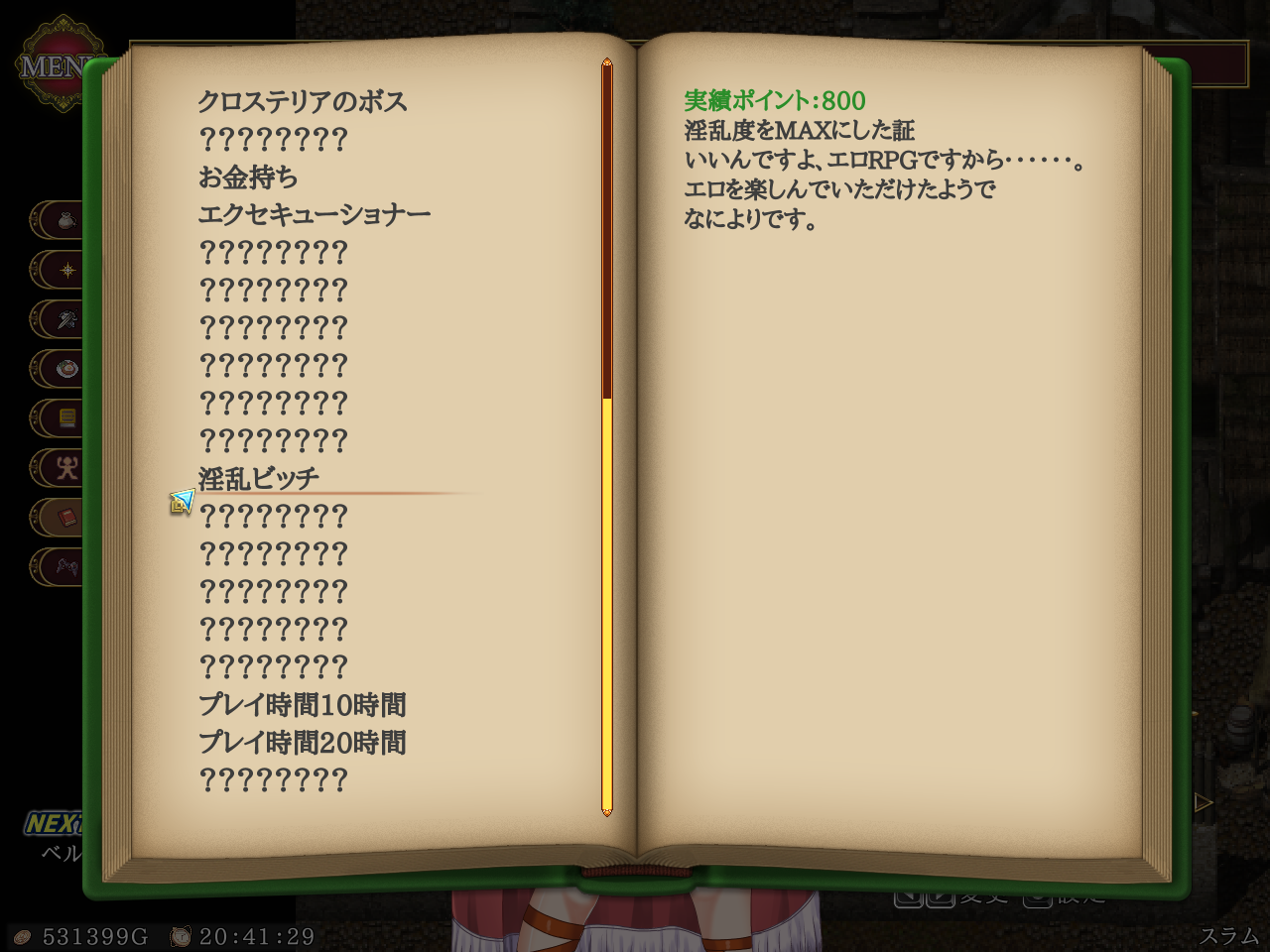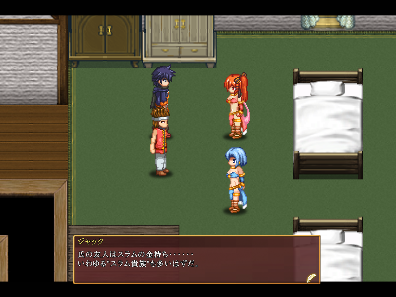 벨의 어릴적 이야기를 엿볼 수 있습니다먼 선조가 엄청큰 죄를 지었다고 하네요또한 자기의 힘을 금술이라고 말합니다집을 나가서 밖을 보라고 말하는 아버지저주와 동시에 세계를 구할 힘이군요그래서 세계를 구할 용사가 되고 싶었습니다마을에 도착일단 왕에게로 갑시다안녕어디서 왔는지도 알고있습니다무려 300년이나 전에 일어난 일까지 이야기를 해야합니다해서 슬럼가부터 처리하려 합니다 흑염을 병기로 이미 쓰고있군요슬럼과 왕도와의 전쟁을 막아봅시다섬홍계획 선조가 미래를 위해 피운 희망의 불씨라고 합니다여긴 모찌나간다말을 걸면 치즈케잌텅텅 비어있군요여기는 슬럼가장비도 맞추고계승도 가능합니다길드로 가서 벨과 이야기를 합시다나라가 어떻게 될지는 모르겠고 귀찮아서 다들 떠나갔습니다슬럼에서 쳐들어올려면 뭔가 보스가 있을거라고 합니다이때 다른 사람들이 나오는데슬럼가에서 공연을 하려고 합니다각지에서 쇼를 하는 유랑단입니다따라가서 슬럼가에 잠입을 하려고 합니다대신 협력을 해달라고 합니다오오슬럼가에도 귀족은 있다고 합니다밤이 되고 슬럼가로 갑시다 바로 앞이 극장가입니다뭔가 수상쩍어 보이는 사람초기 버전은 난이도가 미쳤다고 하는데 지금도 충분히 어렵더군요당장은 뭘 할순 없습니다마와레마와레마와레돈을 벌 수 있습니다나중에 혼자라도 오라고 합니다옷은 공짜로 받습니다어쩃든 왕도가 이런 상황이니 다시 떠납니다보스도 누군지 알아냈습니다슬럼안쪽의 폐공장이 아지트약으로 강화도 하고 총도 있고 등등 꽤나 강력합니다기습할려면 심야로짬때립니다벨과 이야기 해서 작전을 실행한다고 하면 스토리가 진행됩니다무계획으로 가면 매우 어렵다고 합니다또한 경계도가 있어서 이상한 짓을 하면 경계도가 오릅니다100이상이면 특수배드엔딩이 뜨니 주의다시 왕도로 와서 햄버그 레서피도 훔치고여기 메모리아가 있는데이때까지 갔던 장소를 재현할 수 있습니다결정석이 하나 필요합니다슬럼가로 가서오른쪽 아래로 가면 무기상을 볼 수 있습니다졸졸 따라가면 옆으로 죽죽 갑니다가는길에 퀘스트도 있습니다강화약을 만들고 있던 사람입니다이런저런 불법적인 약들을 만들고계십니다엥 팔지 말아줘요그런건 안된다고 하고 그럼 그 약의 증세를 줄여줄 약을 만들어 달라고 부탁합니다허브를 가져다 달라고 하네요대충 던전가면 다 나온다는 뜻좀 더 옆으로 가면 새로운 맵이 나옵니다일단 극장가로 가면이벤트가 있었습니다어딨지저기 있군요꽤나 귀축이신 아리에스음란한데 처녀인극장가에 그라탕레서피도 있더군요춤도 줘봤습니다롱타임왼쪽으로 텐션을 올린다음 오른쪽으로 이런저런 특수옵을 붙이면서 점수를 올리면 되겠습니다참고로 텐션에 따라 난이도가 증가합니다30만점만 얻으면 트로피대충 구경다했으니 진행하겠습니다무기상을 만나 팔지 말아달라고 하면대신할 좋은 정보를 달라고 합니다귀찮게 하네일단 죽 진행하다보면허브를 주을 수 있습니다더욱 더 가면산이 나오고로프도 줍고낚시도 알차게 하고대차륜 좋습니다저기서 허브를 주을 수 있습니다구린줄 알았는데 확정적으로 적을 아래로 내릴 수 있어서 좋더군요레서피도 얻고로프로 내려가서 풀도 주워줍시다더 올라가면미친난이도와일단은 끝부분이 나옵니다당장은 보스가 없으니 템만 먹고 튑시다검도 줍고하산어느새 15만점이 되어서 S랭크가 되었습니다본작 최강무기입니다링도 꽤나 좋은 성능을 자랑합니다말을 걸어드디어 이전 맵을 갈 수 있게 되었습니다귀환은 a키를 누르면 됩니다1회 5천원입니다죽 돌아가서 첫마을에서 까먹고 못먹은 레서피를 얻어주고돈도 있으니 마사지를 받아볼까요최대ap와 크리율은 그냥해서는 안오르고기본 음란도에 이런저런 약을 발라야 좀 오릅니다그래도 잘 오르진 않습니다상한도 있더군요죽 상한까지 올렸습니다일단은 다시 와서 왕과 이야기홍신룡이라는 부르는 드래곤의 어금니를 가져다주면 될거라고 합니다위치는 아까 돌주은 곳그리고 성의 오른쪽으로 오면 마지막 허브를 얻을 수 있습니다척봐도 용이랑 싸울거같으니 강화해서 들고 갔습니다지금보니 무기당 강화가격도 다르더군요다시 등산용을 만날 수 있습니다호무라의 가호를 받고있는 것도 알아봅니다