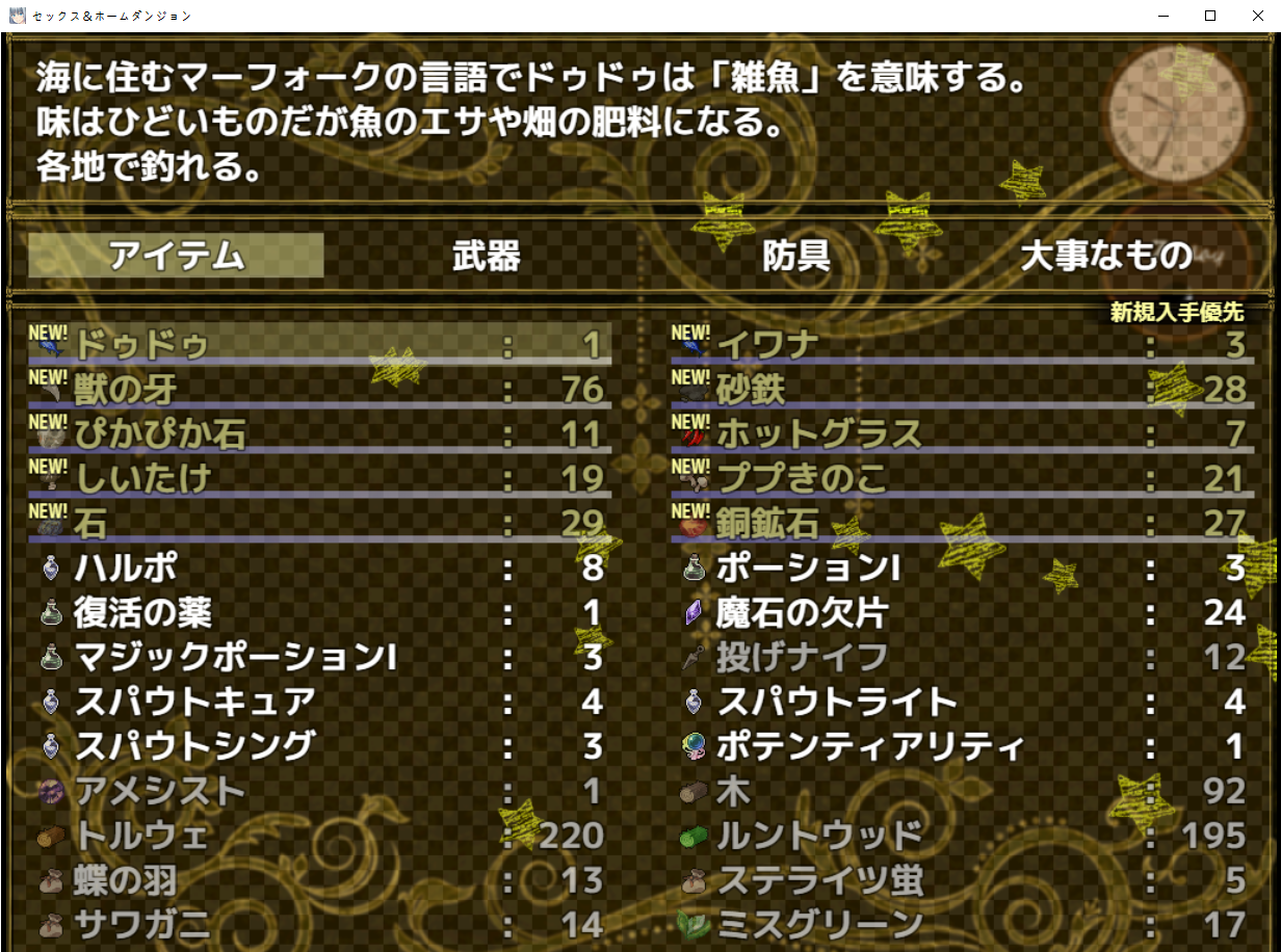 여기로 가니낚시꾼들이 있군요낚시 좀더 하고 오랍니다여기도 납치퀘스트는 심심하면 해줍시다여기도 열렸길래 구경슬라임과카지노와특이하게 버섯이랑 상자만 나오더군요옥상에서 보스전 후잡템훔치ㅣㄱ엘프의 숲에도 놀러갔습니다여긴 그래도 변방이라 좀 널널한 분위기 입니다척봐도 혼혈인걸 아나봅니다왕도가까지는 가지 말라고 해줍니다혹시 가족이 모이면 여기 살거냐고 하니이미 마을 만드는거에 재미들렸군요이런저런 단축키들어떤 미끼를 쓰냐에 따라 잘 잡히는 물고기가 있습니다퀘스트도 있고이건 이미 들고있어서 바로 줬습니다납치농작업이 가능하게 되면 오랬는데 아직도 안갔네요여기도 까먹고 있었는데 나중에 바로 찾아가야 겠습니다상점으로 가면새로운 히로인을 구경할 수 있습니다드워프 마을이라도 간게 아닐까 합니다퀘스트일단 여기로 가서재료를 주고영약류는 스텟을 올려줍니다상점으로 가면 또 있습니다상회좀 열어줘쫄았냐 라고 도발까지어딘가 사이에 있을거라고 합니다흠여기로 가면바로 있더군요바로 먹어주고 납치합시다동료가 됩니다호감도는 낮은편특이하게 총을 쓰는데스텟변화가 없습니다이렇게 속성탄을 장전해서 싸우는 스타일입니다만 짜피 공격력 자체가 너무 낮아서 약하더군요스텟류는 없고 대부분 버프 디버프류를 가지고 있습니다운빨로 들어가는 2회공격과특이하게 전투중 마법총이 천천히 강화된다는데 다른 센캐가 강해지는게 더 빠를 듯 합니다상회도 만들 수 있습니다좀 낚으니 퀘스트를 줍니다도도를 낚아 오라는데이미낚은건 취급안하더군요에라이다음은 아마고를 낚아오라는데 장소는 많은데 뭔가 미끼를 잘써야하나봅니다 전 아직까지 못낚았습니다자기도 이런저런걸 만들 수 있다고 하는데시로는 뭔가 사기급으로 크래프팅을 한다고 합니다상회도 만들어주고그러면 다른 것들도 만들 수 있게 됩니다상점도 여는군요가면간단히 말해 자원들로 주식질을 할 수 있게 됩니다비쌀때 팔고 쌀때 사둡시다이런 곳도 레서피가 있으니 읽어줍시다엘프의 나라도 구경갔습니다이런저런 대화동성애하다가 국외도피;;대화해서 퀘스트버프효율이 좋다고 합니다 특이하게 4회까지 중첩가능합니다왠지 엘프가 좋아할법한 템이군요이곳저곳 퀘스트를 받아줍시다천개가 누구 집 개이름이냐가끔 이런 레서피가 있는데초희귀급 레서피입니다 이 재료들을 섞어라 라고 적혀져 있습니다왕성으로 갈 방법을 찾아야 하는데 당장은 없는 듯 합니다여기도 퀘스트류나를 잡는 작전의 참가자군요교전에는 죄를 가지고 태어난 생명은 없다라고 말하고 있어서 류나를 왜 잡는지 이해가 되지 않는다고 합니다현재 엘프들은 왕성에의 불신감이 많이 심하다고 하네요 특히 왕은 중태에 대신이 수상하다고 합니다흐으으으음그냥 레서피인데 무기이름이 플랑베르쥬면 뭔가 움찔하게 됩니다 왠지 사기같아보이고 그렇네요대신의 집 자체는 북서쪽에 있습니다퀘스트 여신거리니 비싼템같은데 일단 중반부에도 얻을 수 있습니다