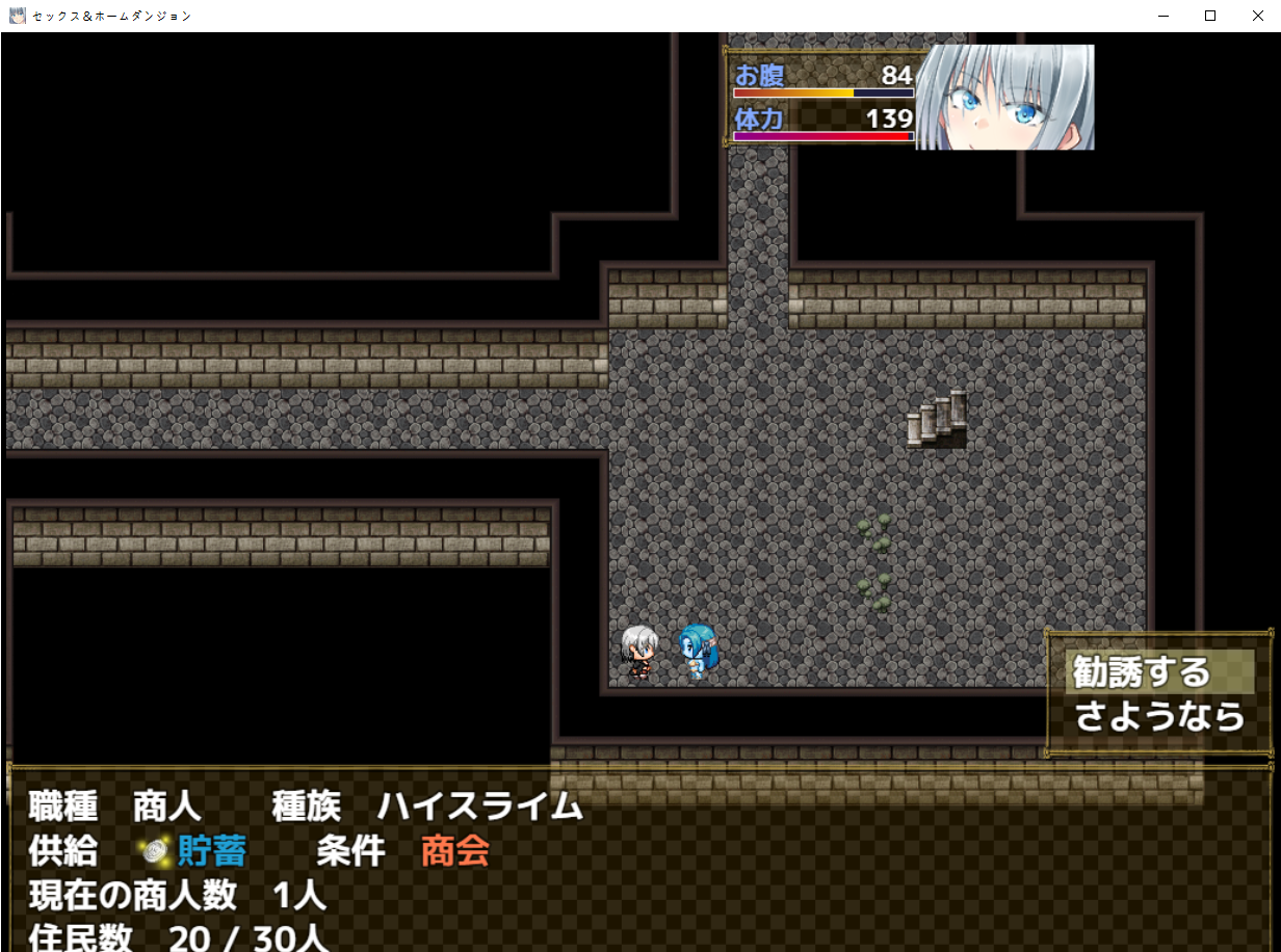 물고기에 대한 정보라던가 이곳저곳 들을 수 있습니다페어리의 마을도 놀러갔습니다누군가 있군요쾌활한 페어리입니다북쪽에 목장도 있습니다돌아다니면 퀘스트가 있으니 받아주고상회가 있다면 동료로 할 수 있습니다별거 없는 것들을 팔고있습니다여기도 목장이 있으면 부를 수 있습니다밖으로 나가보면위쪽에 목장이 생깁니다실종된 페어리를 찾는 퀘스트도 확인해줍시다일단 목장으로 가보면늑대가 있어서 늑대들을 쫓아내야 합니다같이 놀자고 하는 냐이카어른의 놀이를 해줍시다여기에서 이것저것 훔쳐갈 수 잇습니다직업은 페어리특이하게 마방이 아닌 민첩비례힐을 해줍니다행동속도 회피율도 높고 빠르게 아군을 지원해 줄 수 있습니다마을로 돌아오니뭔 유괴가 자주일어나는지냐이카가 동료가 되었으므로 목장을 만들 수 있습니다드디어 사료로 동물을 기를 수 있게 되었습니다동물마다 사육난도가 있고 목동의 수가 부족하면 기를 수 없습니다동물은 매일 가축에 대응하는 농산물을 줍니다목동이 부족하면 불만상태가 되고 만족도가 0이되면 탈주하니 주의당연하지만 텅 비어있군요일단 여기로 가봤습니다납치된 엘프는 여기 있군요경비대도 나중에 있나 봅니다대충 둘러보고 나가죠템이 없어서 그런가 너무 아픕니다적당히 만들어서 입혀줬습니다페어리들은 꽃에서 태어나나 보군요버섯의 날이 되었습니다만 중요하지 않은 날이군요여기도 매일 들러주고호수를 발견했습니다거주구를 늘리면 엘프가 찾아옵니다차기국왕님입니다떠나지 않으면 무력으로 없앨거라고 합니다자기들은 북쪽에 있을테니 알아서 오라고 하네요마법계약도 아닌 구두계약이라 무시할 예정마을이 습격당하기 전에 기습할 생각입니다생각보다 그리 세진 않은가 봅니다자기가 차기 국왕이 될것임을 알고 있으며 지금의 왕을 그리 믿고있지는 않습니다나중에 오라고 하네요도적의 탑쪽부터 구경을 와봤는데 여기도 주민들이 있군요페어리가 여기 납치되지 않았을까 하고 왔는데 별거 없네요여기도더럽게 세군요대충 주민들이나 납치해 갑시다안쪽은보스전이니 위험하면 가지 맙시다날이 지나니 마법총 공방도 생기던데 강화가 되는지 1도 모르겠더군요전작에는 광석을 캘려면 조건이 빡셋던거 같은데 지금은 렙 2만되도 캘 수 있더군요주민들도 곳곳에 있습니다버섯이 ㅈㄴ세단걸 이제 알려주고 있습니다 목장을 지었으니 목동도 주민으로 맞이합시다동물들도 챙겨가는데 짜피 낮은 단계의 동물들은 별로 주는게 없습니다목장이 작기 때문에 들어갈 수는 없습니다현재 마을 스펙은 이정도이것저것 계속 늘어나네요일단 거주구를 계속 늘러나갑시다엘프여자와 말을 걸다보니밭을 기르면 누가 온다는거 같네요다시 주민들을 죽 늘리고 정보들을 얻었습니다다들 못가겠군요광산구경을 가봤습니다아픔일단 석재를 얻을 광부가 필요하니 왕창 주워갔습니다열심히 광부를 줍고안쪽에는 보스가 있더군요초반에는 어쨋든 광부과 목수를 많이 잡아가는게 좋습니다이건 죽 봤는데 5 ~ 15원 사이인거 같더군요 5일때 풀매수각밭도 대충 일궈봅시다물도 매일 줘야 해서 좀 귀찮네요씨앗을 어떻게 구해야 하나 기억이 안났었는데 작물을 크래프팅하면 씨앗이 됩니다여기도 구경을 해봅시다까매서 잘 안보입니다낚시도 가능여기도 주민들이 있으니 납치각클리어자체는 쉽더군요별건없습니다여기도 다시 도전해서 잡아주고여기로 가면이쪽 낚시터에 슬라임이 있더군요그 다음은 여기슬라임을 동료로 만들 수 있습니다빙결상태가 되기 쉽군요탱커형캐릭입니다만 딱히 제 취향은 아니군요