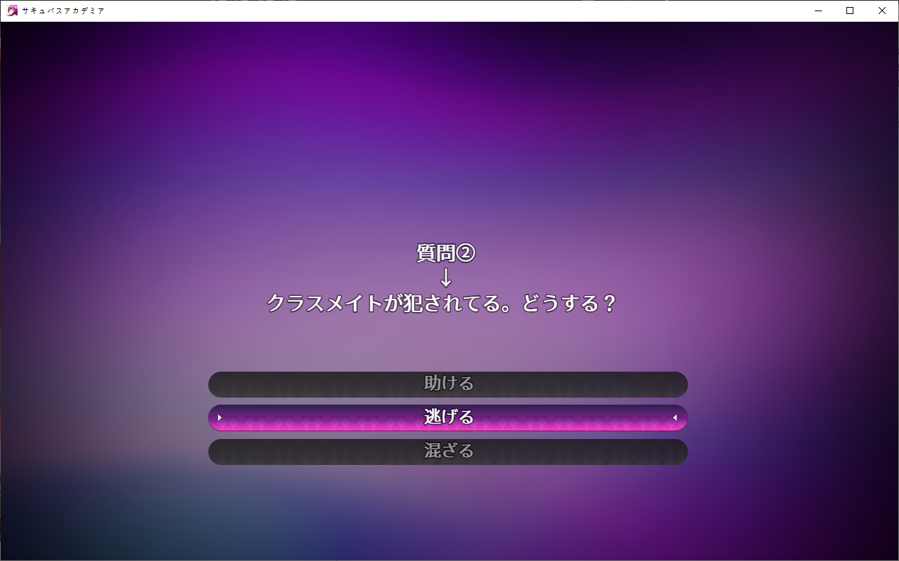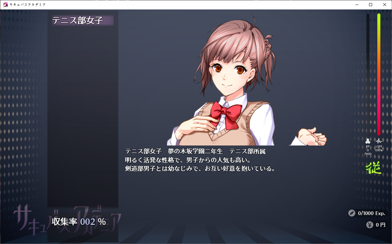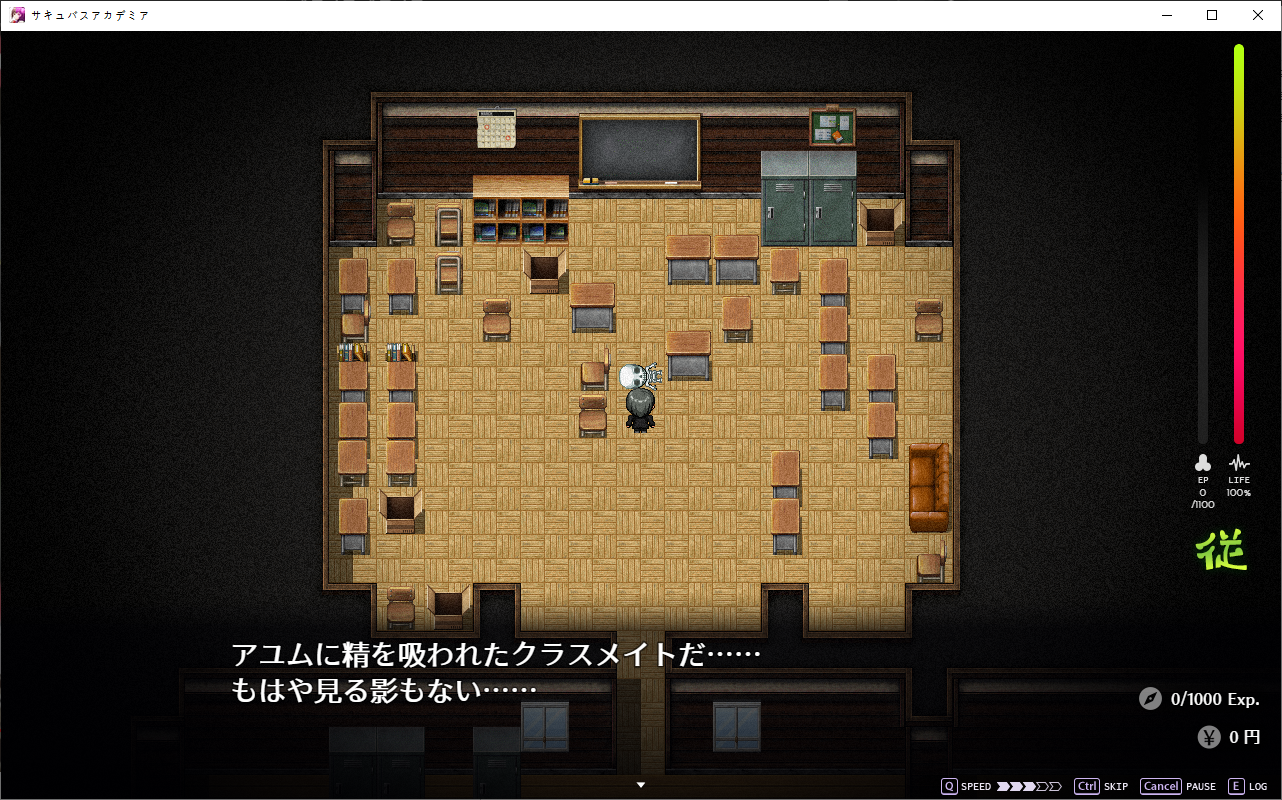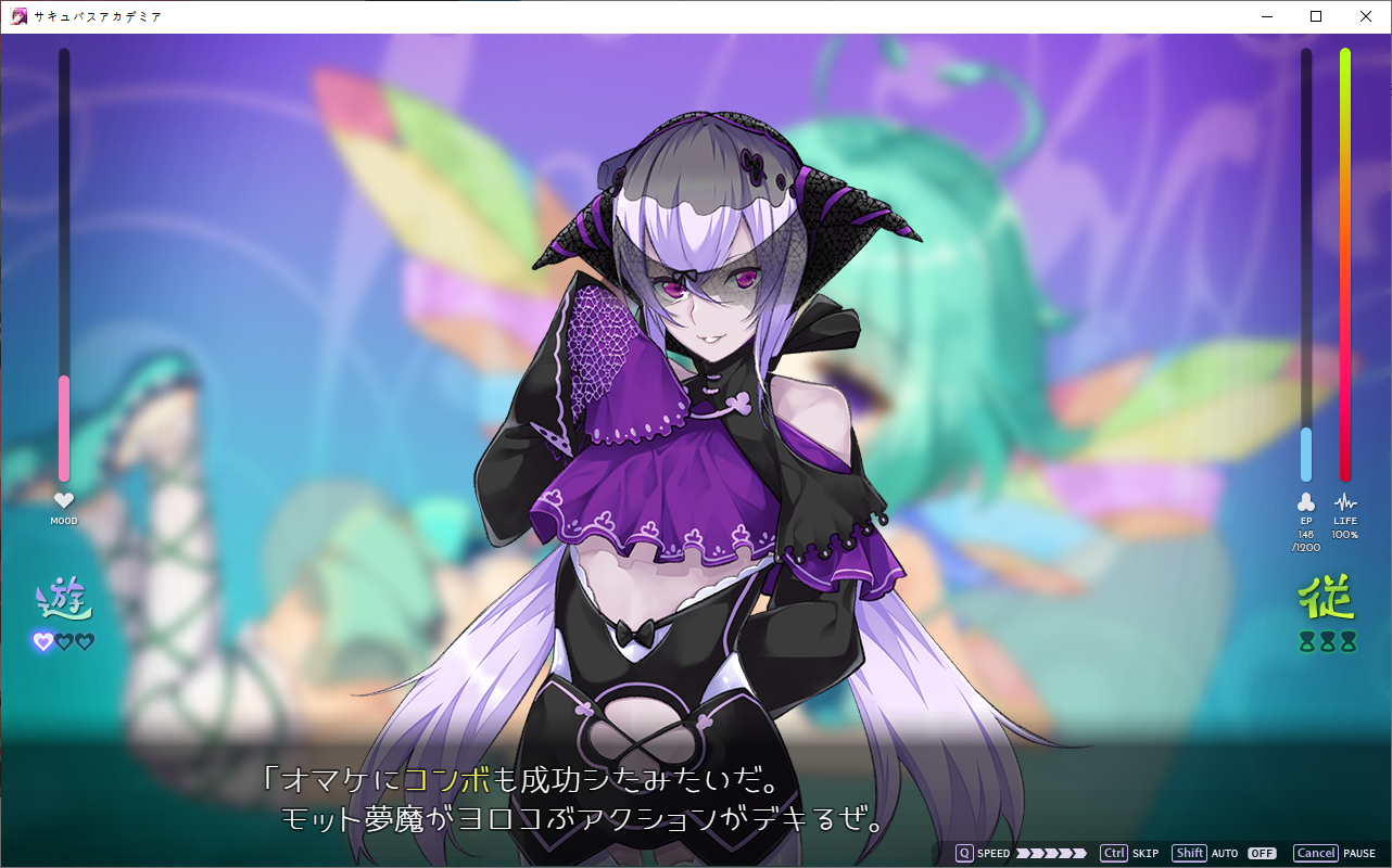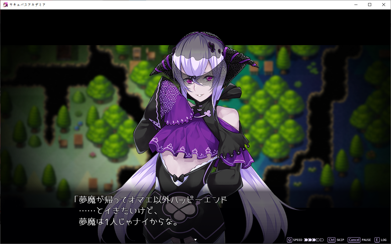 요상한 질문부터 시작합니다죽기 싫지만 쟌넨 이미 죽었습니다이 질문은 꽤 중요한데 처음의 자세를 결정합니다뭐 짜피 중간중간 계속 바뀌기도 하고 나중엔 3개다 쓸 수 있어서 엄청 중요한건 아니니 취향껏 합시다3은 없습니다처음은 이 게임의 시스템을 살짝보여줍니다 나중에 다시 보여주니 패스앞에서 템을 줍고난이도를 선택할 수 있네요도감도 있군요바로 앞의 명찰을 주으면주인공의 이름을 정할 수 있습니다키설명바로 위는 여자의 명찰이 있고자신의 소꿉친구라고 하네요서브히로인 이름도 일일히 지정할 수 있습니다백골이 된 친구가 있습니다뎃 누구지금 쓸데없이 죽는거랑 뒤에 세계를 구하고 죽는거 뭐가 더 좋냐고 합니다여기 몽마들은 강해서 진짜로 세계를 지워버릴 지도 모른다고 하네요안뇽너 악마지같이 돌아갈까후후후 거리며 다가오려는 찰나 세계가 어긋나버립니다몽마 맞네빈 교실의 숲으로 이동되었습니다템을 줍고악세나 열쇠는 장비템입니다위로 갑시다이건 나중에 부술 수 있습니다빈 교실도 이상하게 변해버리는 군요몽마를 만족시킨뒤 보내버리면주인공이 가는 순간 몽마가 최고로 만족한 상태라면 몽마는 꿈의 세계로 돌아갈 거라고 합니다물론 주인공은 죽고 나머지는 해피엔딩...은 아니고 몽마는 한마리가 아니라고 합니다그래도 주인공이 학원에서 얻은 경험은 이녀석이 다른 녀석에게 확실히 전해줄거라고 합니다물론 죽음의 직전은 아니고 동정인 채로 넘어간다고 합니다참고로 동정만 가능하고동정이 모두 죽으면 이세계도 끝입니다이름을 정하는데 이녀석의 웃는 소리인 푸후쿠스로 정합니다이동중에 쉬프트를 누르면 이야기가 가능한데 초반부터 까먹고 바로 안썻습니다안쪽으로 가보자네요템들은 죄다 가져가고중간부터 잡몹이 나옵니다몽마는 아니고 마도로미라는 녀석입니다배틀전에 난이도를 선택할 수 있는데트로피는 또 못참지하드로 가겠습니다암거나 누르고태도는 보통 선택지에 따라 갈린다고 합니다전투공격시 일정확률로 콤보가 나타나며 더욱 상위의 공격을 할 수 있습니다보통 상위기는 데미지가 크며 필살게이지를 1 올립니다스탠스게이지가 차오른걸 볼 수 있습니다이걸 소비함으로 특별한 기술을 쓸 수 있습니다물론 성공을 해야겠죠필살기는 게이지를 모두 소모하며 강한데미지를 주고 재사용 시간이 있습니다하지만 모든 기술은 이렇게 실패확률이 있습니다액션이 실패하면 흥미를 잃기 때문에 디메리트가 큽니다흥미를 다시 불러 일으키기 위해 공격을 해야 합니다 난이도가 높으면 공격이 실패하는 순간 망할 수가 있습니다상대도 스탠스 게이지가 있으며 이것이 꽉 찰경우 특수한 공격을 해옵니다어떤 공격을 해올지는 한자를 통해 어느정도 유추는 가능합니다푸후쿠스를 선택해 베일을 써줍시다다시 흥미를 보이기 시작하고 절호조가 되었습니다리그렛을 사용해 2턴동안 무드를 배로 증가시킵시다꽤나 엄청난 데미지가 들어갑니다이렇게 무드가 최대가 되면 몽마는 만족하고 떠납니다몽마와 논 덕분에 이 세계에 대해 조금 더 이해하게 되었습니다exp를 가득 채우면 여러 유용한 아이템을 줍니다이건 대충 스킬포인트라고 생각하면 됩니다이런저런 트로피도 있으니 모으는 재미도 있습니다마도로미는 캔슬키를 연타하면 거부할 수 있습니다싸울지 말지는 선택이며 싸우는 쪽이 경험치나 아이템을 더 주긴합니다도망치던 싸우던 자유지만 100잡는 트로피도 있으니 엔간하면 잡아줍시다이런저런 환금용 아이템도 줍니다길따라 가다보면뭔가 이상한게 공격해옵니다저런 붉은건 케다모노입니다정면에서 공격하면 쓰러뜨릴 수 있습니다이건 주인공인 검도부의 능력입니다돌아가면오컬트부가 결계인지 머시기로 여긴 괜찮다고 합니다안쪽에서 뭘 하고 있으니 물어보라고 하네요이곳저곳 둘러봅시다온도계는 몽도계로 바뀌어져 있고 보스를 쓰러뜨릴때마다 1씩 증가합니다이건 밀어주면 나중에 바닥으로 생깁니다에비살려둬서 얻는 이득은 없고 상자 자체는 나중에 열수록 좋다고 하네요이곳저곳 대화하고각각의 장소마다 앞에 명찰이 떨어져 있습니다간호사 선생님도 계시고비상구는 나중에 이곳저곳 다니는 지름길 입니다여기서 악마를 소환하면악마상인이 등장합니다환금은 자동입니다장비템이라던가 새로운 길을 열 수 있는 아이템을 팝니다오컬트부 부원이런저런걸 물어볼 수 있고여기는 유품을 사용하는 곳입니다숲의 동쪽으로 가보라고 하네요각지의 명찰을 줍고갸루도 하나 있습니다여기는 상점에서 가솔린을 사면 되는데 잡템인줄 알고 1회차는 깜박했습니다여기로 갑시다