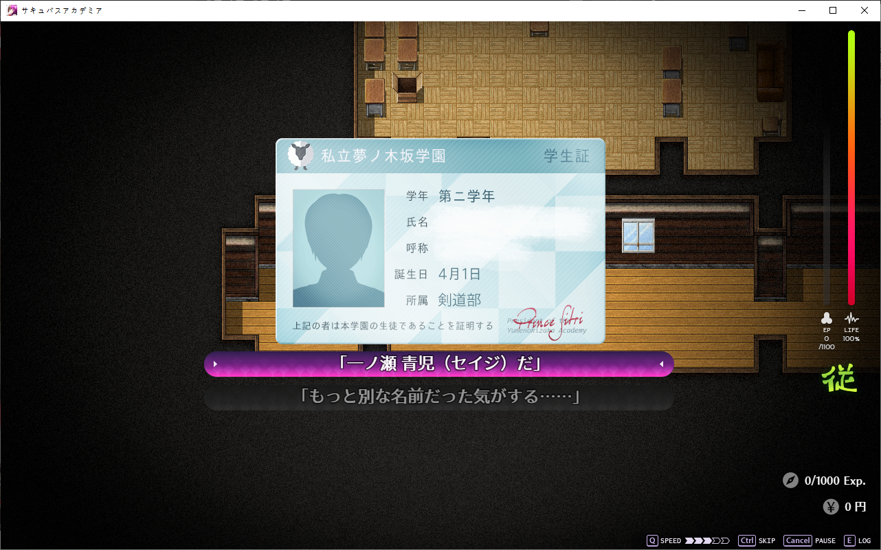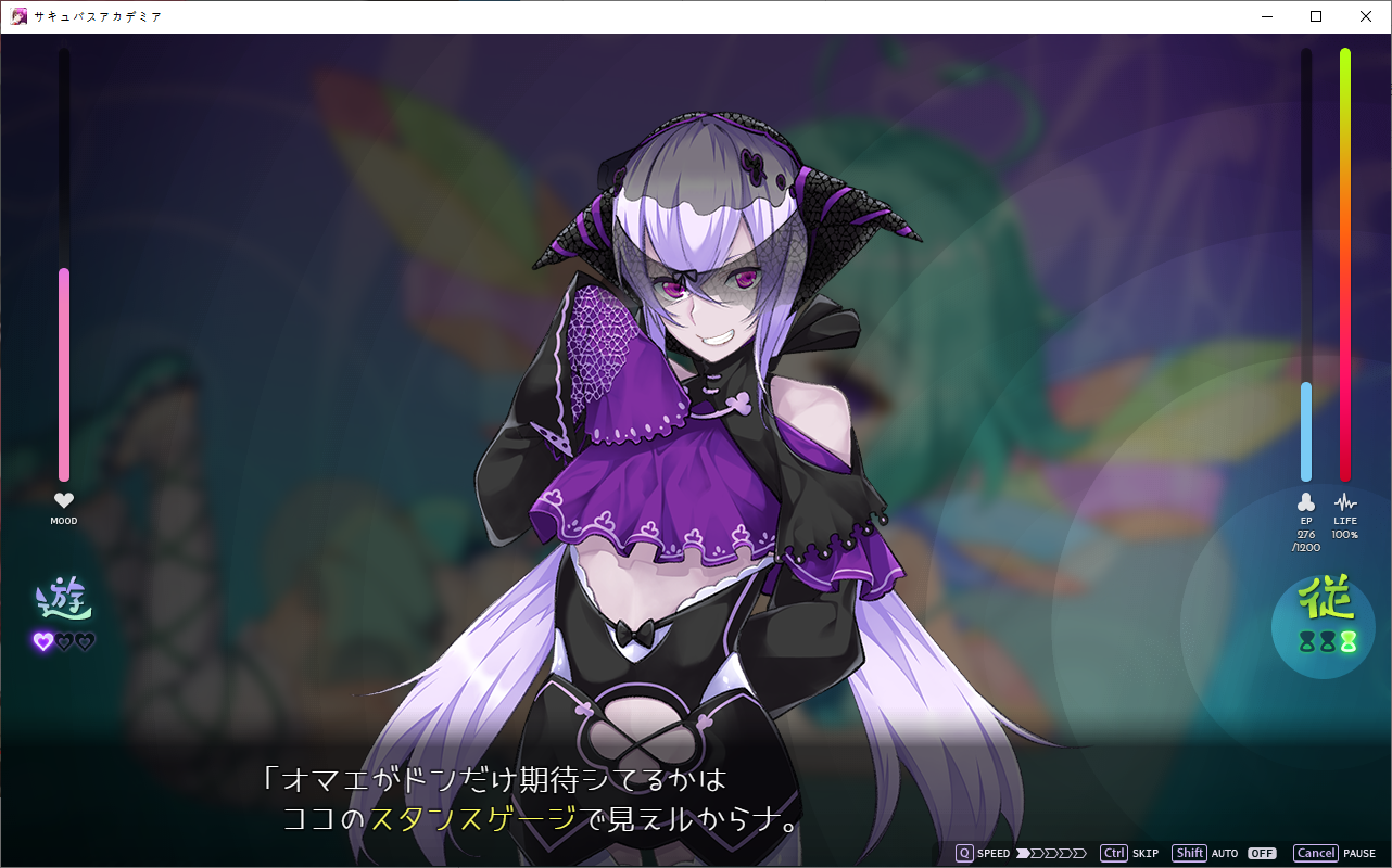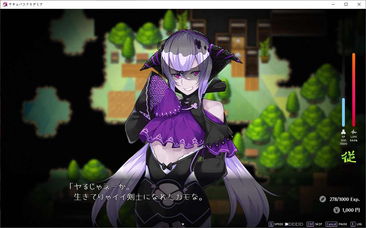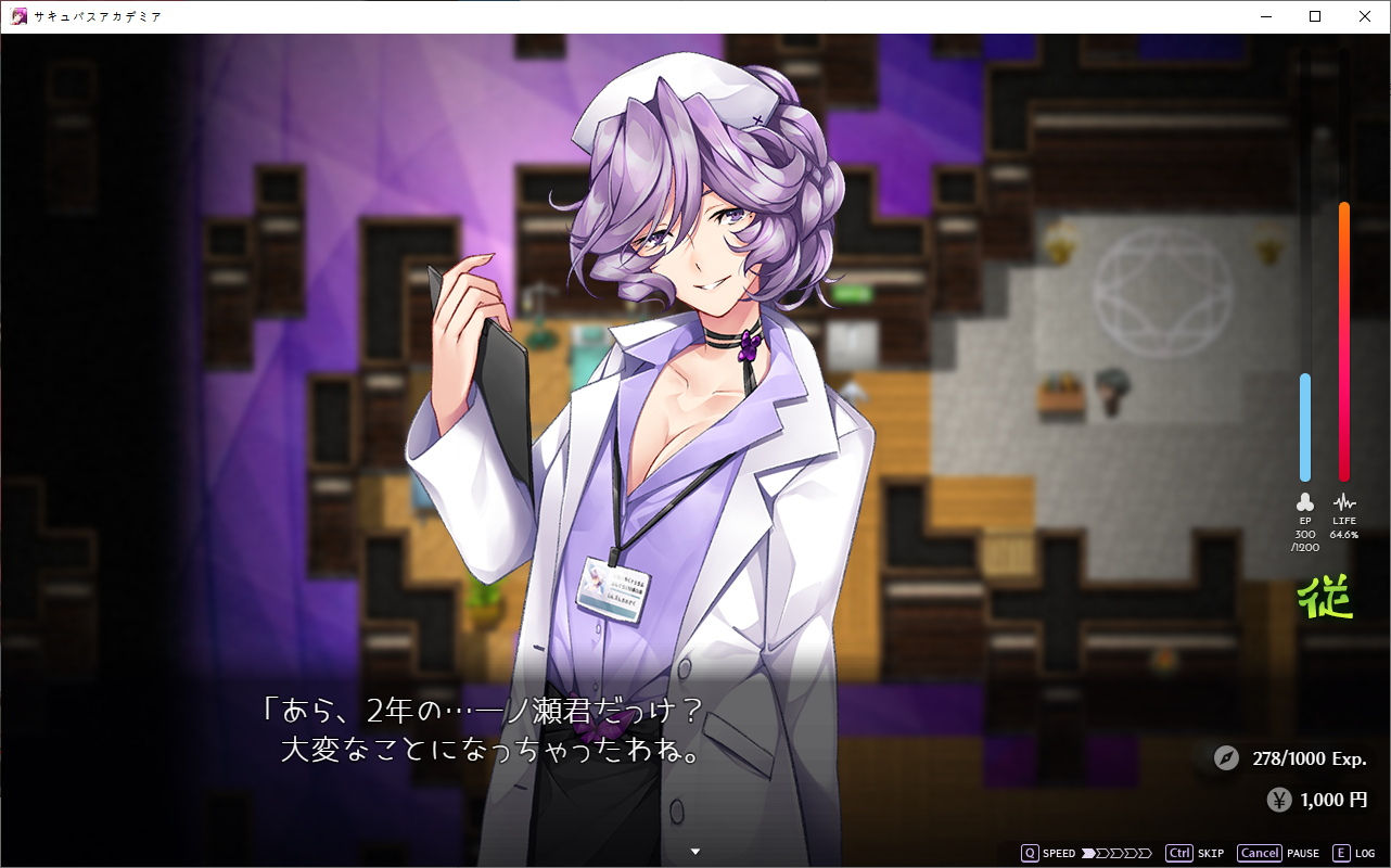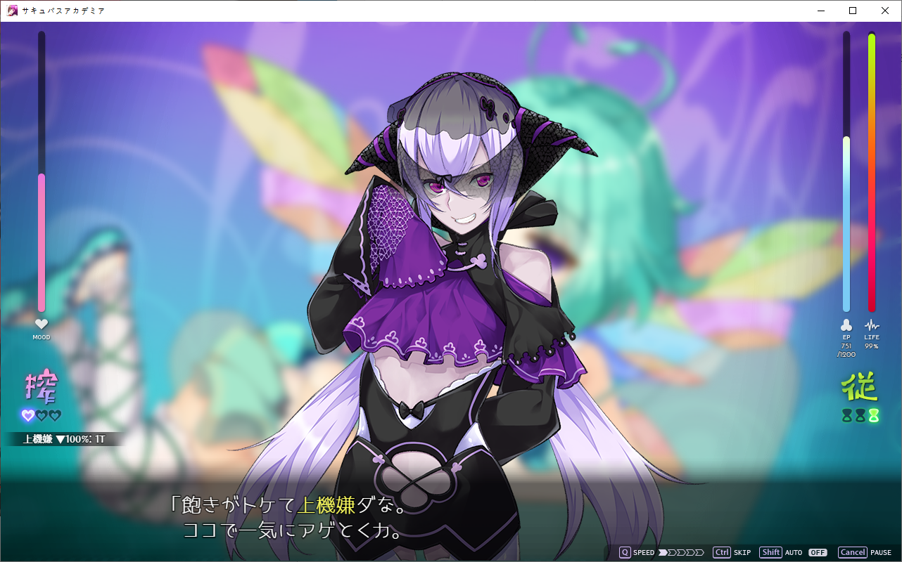 요상한 질문부터 시작합니다죽기 싫지만 쟌넨 이미 죽었습니다이 질문은 꽤 중요한데 처음의 자세를 결정합니다뭐 짜피 중간중간 계속 바뀌기도 하고 나중엔 3개다 쓸 수 있어서 엄청 중요한건 아니니 취향껏 합시다3은 없습니다처음은 이 게임의 시스템을 살짝보여줍니다 나중에 다시 보여주니 패스앞에서 템을 줍고난이도를 선택할 수 있네요도감도 있군요바로 앞의 명찰을 주으면주인공의 이름을 정할 수 있습니다키설명바로 위는 여자의 명찰이 있고자신의 소꿉친구라고 하네요서브히로인 이름도 일일히 지정할 수 있습니다백골이 된 친구가 있습니다뎃 누구지금 쓸데없이 죽는거랑 뒤에 세계를 구하고 죽는거 뭐가 더 좋냐고 합니다여기 몽마들은 강해서 진짜로 세계를 지워버릴 지도 모른다고 하네요안뇽너 악마지같이 돌아갈까후후후 거리며 다가오려는 찰나 세계가 어긋나버립니다몽마 맞네빈 교실의 숲으로 이동되었습니다템을 줍고악세나 열쇠는 장비템입니다위로 갑시다이건 나중에 부술 수 있습니다빈 교실도 이상하게 변해버리는 군요몽마를 만족시킨뒤 보내버리면주인공이 가는 순간 몽마가 최고로 만족한 상태라면 몽마는 꿈의 세계로 돌아갈 거라고 합니다물론 주인공은 죽고 나머지는 해피엔딩...은 아니고 몽마는 한마리가 아니라고 합니다그래도 주인공이 학원에서 얻은 경험은 이녀석이 다른 녀석에게 확실히 전해줄거라고 합니다물론 죽음의 직전은 아니고 동정인 채로 넘어간다고 합니다참고로 동정만 가능하고동정이 모두 죽으면 이세계도 끝입니다이름을 정하는데 이녀석의 웃는 소리인 푸후쿠스로 정합니다이동중에 쉬프트를 누르면 이야기가 가능한데 초반부터 까먹고 바로 안썻습니다안쪽으로 가보자네요템들은 죄다 가져가고중간부터 잡몹이 나옵니다몽마는 아니고 마도로미라는 녀석입니다배틀전에 난이도를 선택할 수 있는데트로피는 또 못참지하드로 가겠습니다암거나 누르고태도는 보통 선택지에 따라 갈린다고 합니다전투공격시 일정확률로 콤보가 나타나며 더욱 상위의 공격을 할 수 있습니다보통 상위기는 데미지가 크며 필살게이지를 1 올립니다스탠스게이지가 차오른걸 볼 수 있습니다이걸 소비함으로 특별한 기술을 쓸 수 있습니다물론 성공을 해야겠죠필살기는 게이지를 모두 소모하며 강한데미지를 주고 재사용 시간이 있습니다하지만 모든 기술은 이렇게 실패확률이 있습니다액션이 실패하면 흥미를 잃기 때문에 디메리트가 큽니다흥미를 다시 불러 일으키기 위해 공격을 해야 합니다 난이도가 높으면 공격이 실패하는 순간 망할 수가 있습니다상대도 스탠스 게이지가 있으며 이것이 꽉 찰경우 특수한 공격을 해옵니다어떤 공격을 해올지는 한자를 통해 어느정도 유추는 가능합니다푸후쿠스를 선택해 베일을 써줍시다다시 흥미를 보이기 시작하고 절호조가 되었습니다리그렛을 사용해 2턴동안 무드를 배로 증가시킵시다꽤나 엄청난 데미지가 들어갑니다이렇게 무드가 최대가 되면 몽마는 만족하고 떠납니다몽마와 논 덕분에 이 세계에 대해 조금 더 이해하게 되었습니다exp를 가득 채우면 여러 유용한 아이템을 줍니다이건 대충 스킬포인트라고 생각하면 됩니다이런저런 트로피도 있으니 모으는 재미도 있습니다마도로미는 캔슬키를 연타하면 거부할 수 있습니다싸울지 말지는 선택이며 싸우는 쪽이 경험치나 아이템을 더 주긴합니다도망치던 싸우던 자유지만 100잡는 트로피도 있으니 엔간하면 잡아줍시다이런저런 환금용 아이템도 줍니다길따라 가다보면뭔가 이상한게 공격해옵니다저런 붉은건 케다모노입니다정면에서 공격하면 쓰러뜨릴 수 있습니다이건 주인공인 검도부의 능력입니다돌아가면오컬트부가 결계인지 머시기로 여긴 괜찮다고 합니다안쪽에서 뭘 하고 있으니 물어보라고 하네요이곳저곳 둘러봅시다온도계는 몽도계로 바뀌어져 있고 보스를 쓰러뜨릴때마다 1씩 증가합니다이건 밀어주면 나중에 바닥으로 생깁니다에비살려둬서 얻는 이득은 없고 상자 자체는 나중에 열수록 좋다고 하네요이곳저곳 대화하고각각의 장소마다 앞에 명찰이 떨어져 있습니다간호사 선생님도 계시고비상구는 나중에 이곳저곳 다니는 지름길 입니다여기서 악마를 소환하면악마상인이 등장합니다환금은 자동입니다장비템이라던가 새로운 길을 열 수 있는 아이템을 팝니다오컬트부 부원이런저런걸 물어볼 수 있고여기는 유품을 사용하는 곳입니다숲의 동쪽으로 가보라고 하네요각지의 명찰을 줍고갸루도 하나 있습니다여기는 상점에서 가솔린을 사면 되는데 잡템인줄 알고 1회차는 깜박했습니다여기로 갑시다