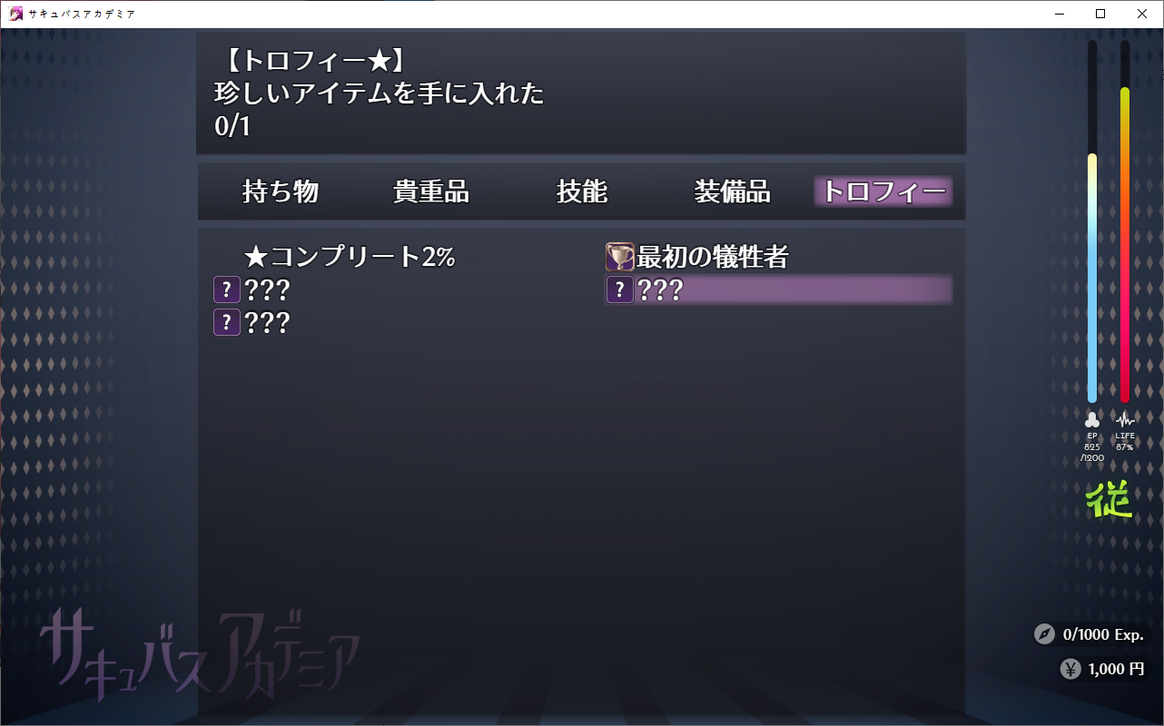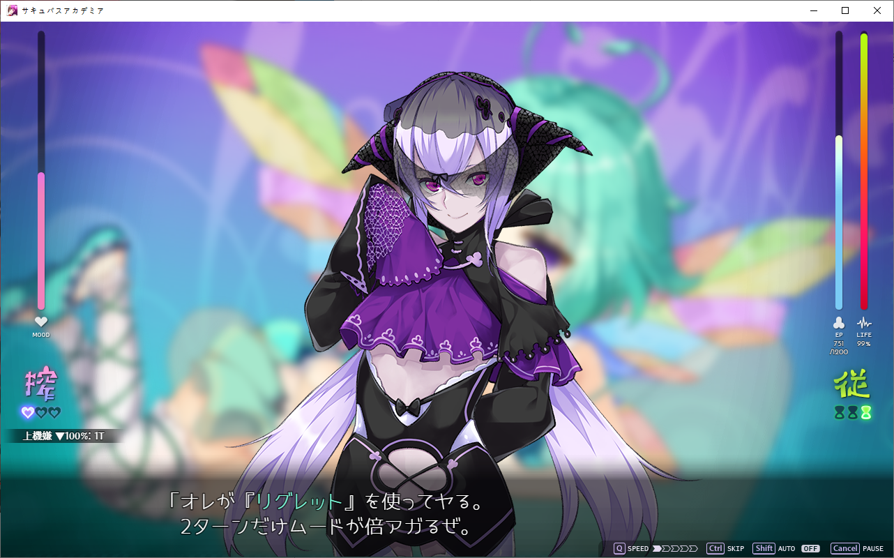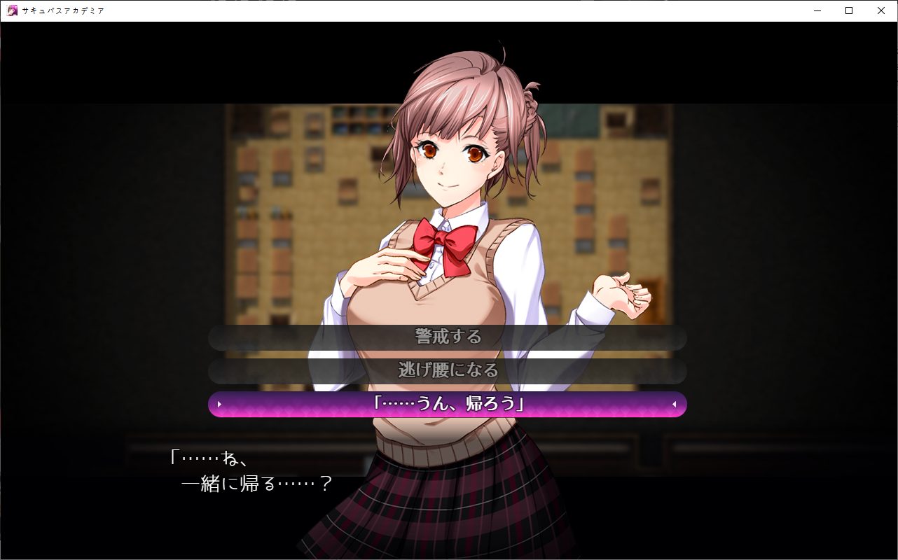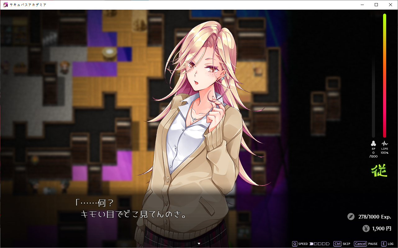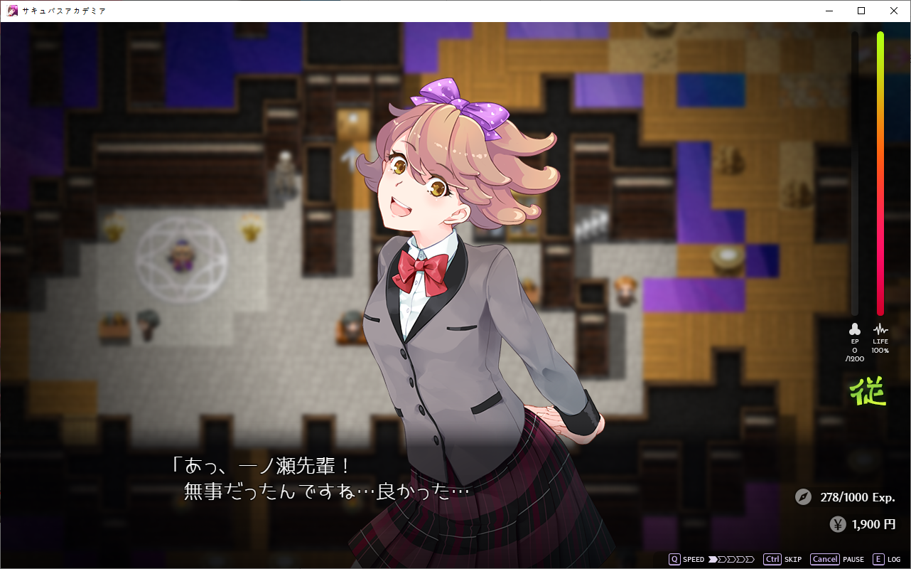 요상한 질문부터 시작합니다죽기 싫지만 쟌넨 이미 죽었습니다이 질문은 꽤 중요한데 처음의 자세를 결정합니다뭐 짜피 중간중간 계속 바뀌기도 하고 나중엔 3개다 쓸 수 있어서 엄청 중요한건 아니니 취향껏 합시다3은 없습니다처음은 이 게임의 시스템을 살짝보여줍니다 나중에 다시 보여주니 패스앞에서 템을 줍고난이도를 선택할 수 있네요도감도 있군요바로 앞의 명찰을 주으면주인공의 이름을 정할 수 있습니다키설명바로 위는 여자의 명찰이 있고자신의 소꿉친구라고 하네요서브히로인 이름도 일일히 지정할 수 있습니다백골이 된 친구가 있습니다뎃 누구지금 쓸데없이 죽는거랑 뒤에 세계를 구하고 죽는거 뭐가 더 좋냐고 합니다여기 몽마들은 강해서 진짜로 세계를 지워버릴 지도 모른다고 하네요안뇽너 악마지같이 돌아갈까후후후 거리며 다가오려는 찰나 세계가 어긋나버립니다몽마 맞네빈 교실의 숲으로 이동되었습니다템을 줍고악세나 열쇠는 장비템입니다위로 갑시다이건 나중에 부술 수 있습니다빈 교실도 이상하게 변해버리는 군요몽마를 만족시킨뒤 보내버리면주인공이 가는 순간 몽마가 최고로 만족한 상태라면 몽마는 꿈의 세계로 돌아갈 거라고 합니다물론 주인공은 죽고 나머지는 해피엔딩...은 아니고 몽마는 한마리가 아니라고 합니다그래도 주인공이 학원에서 얻은 경험은 이녀석이 다른 녀석에게 확실히 전해줄거라고 합니다물론 죽음의 직전은 아니고 동정인 채로 넘어간다고 합니다참고로 동정만 가능하고동정이 모두 죽으면 이세계도 끝입니다이름을 정하는데 이녀석의 웃는 소리인 푸후쿠스로 정합니다이동중에 쉬프트를 누르면 이야기가 가능한데 초반부터 까먹고 바로 안썻습니다안쪽으로 가보자네요템들은 죄다 가져가고중간부터 잡몹이 나옵니다몽마는 아니고 마도로미라는 녀석입니다배틀전에 난이도를 선택할 수 있는데트로피는 또 못참지하드로 가겠습니다암거나 누르고태도는 보통 선택지에 따라 갈린다고 합니다전투공격시 일정확률로 콤보가 나타나며 더욱 상위의 공격을 할 수 있습니다보통 상위기는 데미지가 크며 필살게이지를 1 올립니다스탠스게이지가 차오른걸 볼 수 있습니다이걸 소비함으로 특별한 기술을 쓸 수 있습니다물론 성공을 해야겠죠필살기는 게이지를 모두 소모하며 강한데미지를 주고 재사용 시간이 있습니다하지만 모든 기술은 이렇게 실패확률이 있습니다액션이 실패하면 흥미를 잃기 때문에 디메리트가 큽니다흥미를 다시 불러 일으키기 위해 공격을 해야 합니다 난이도가 높으면 공격이 실패하는 순간 망할 수가 있습니다상대도 스탠스 게이지가 있으며 이것이 꽉 찰경우 특수한 공격을 해옵니다어떤 공격을 해올지는 한자를 통해 어느정도 유추는 가능합니다푸후쿠스를 선택해 베일을 써줍시다다시 흥미를 보이기 시작하고 절호조가 되었습니다리그렛을 사용해 2턴동안 무드를 배로 증가시킵시다꽤나 엄청난 데미지가 들어갑니다이렇게 무드가 최대가 되면 몽마는 만족하고 떠납니다몽마와 논 덕분에 이 세계에 대해 조금 더 이해하게 되었습니다exp를 가득 채우면 여러 유용한 아이템을 줍니다이건 대충 스킬포인트라고 생각하면 됩니다이런저런 트로피도 있으니 모으는 재미도 있습니다마도로미는 캔슬키를 연타하면 거부할 수 있습니다싸울지 말지는 선택이며 싸우는 쪽이 경험치나 아이템을 더 주긴합니다도망치던 싸우던 자유지만 100잡는 트로피도 있으니 엔간하면 잡아줍시다이런저런 환금용 아이템도 줍니다길따라 가다보면뭔가 이상한게 공격해옵니다저런 붉은건 케다모노입니다정면에서 공격하면 쓰러뜨릴 수 있습니다이건 주인공인 검도부의 능력입니다돌아가면오컬트부가 결계인지 머시기로 여긴 괜찮다고 합니다안쪽에서 뭘 하고 있으니 물어보라고 하네요이곳저곳 둘러봅시다온도계는 몽도계로 바뀌어져 있고 보스를 쓰러뜨릴때마다 1씩 증가합니다이건 밀어주면 나중에 바닥으로 생깁니다에비살려둬서 얻는 이득은 없고 상자 자체는 나중에 열수록 좋다고 하네요이곳저곳 대화하고각각의 장소마다 앞에 명찰이 떨어져 있습니다간호사 선생님도 계시고비상구는 나중에 이곳저곳 다니는 지름길 입니다여기서 악마를 소환하면악마상인이 등장합니다환금은 자동입니다장비템이라던가 새로운 길을 열 수 있는 아이템을 팝니다오컬트부 부원이런저런걸 물어볼 수 있고여기는 유품을 사용하는 곳입니다숲의 동쪽으로 가보라고 하네요각지의 명찰을 줍고갸루도 하나 있습니다여기는 상점에서 가솔린을 사면 되는데 잡템인줄 알고 1회차는 깜박했습니다여기로 갑시다