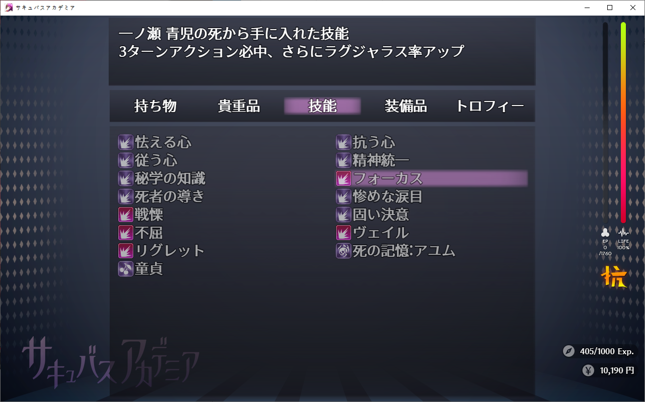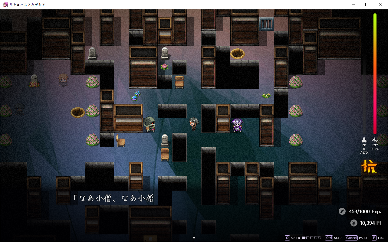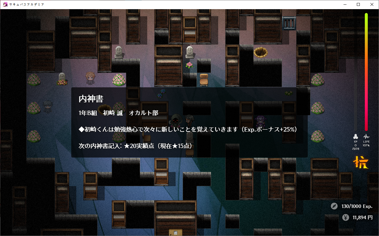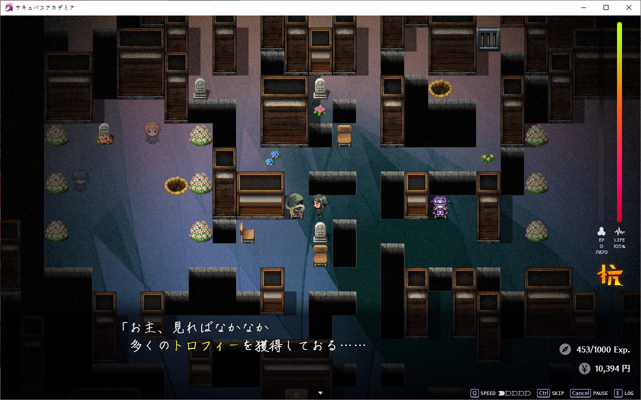전 아직은 트루엔딩의 존재를 몰라서 아무나 붙잡고 환생했습니다부활하면 이렇게이름을 다시 정하고 시작할 수 있습니다이 몸은 이제 제겁니다전생의 기억과 기술들을 모두 가지고 갑니다몽도계가 1 증가해서 파는 템들도 늘어났습니다도끼저기를 깨면뭔지 싶었는데여기서 템을 주워불을 붙여주면 됩니다그다음 시계를 멈추면회상방이 개방됩니다아직은 찍먹수준의 진행도나갈 땐 멈춰야 합니다회상방용 잡템템을 줍고내려가서다시 멈추고안쪽에 들어가면 여신이 나타납니다바이아직은 별거 없습니다참고로 보스를 잡으면 죽음의 기억이 들어오는데 이거도 2회차 보정용입니다오컬트부 부원들도모두 2층으로 갔습니다여기도 사라져있고몽도계도 보면 숫자가 증가해 있습니다오컬트부는 2층으로 가고 여긴 수영부가 오는게 맞습니다여자탈의실이 있는데 당장은 못갑니다기척이 있습니다내려가서여기의 기믹은죽내려가서물을 채우면물이 생기면서 헤엄쳐서 건너갈 수 있습니다이번의 보스물이 있는 상태에서 만나면 상태이상에 걸립니다물을 빼고상자를 열어야 합니다물이 있으면 수초가 자라나서 지나갈 수 없습니다이렇게 좀 왔다갔다 거려야 합니다주겅지나가고아직은 별거 없습니다다음 스테이지여기는 저 물방울을 타고 지나가면 됩니다뿅끝에 소용돌이가 있다면강제 전투잘 타고 지나가면 됩니다상자도 열심히 열고템줍줍이녀석들도 여유가 되면 상대해 줍시다죽는걸 지켜보던살려주던 죽는건 같습니다잘가요운을 올려주는 열쇠는 좋습니다돌아오면트로피에 대해 이야기를 해줍니다뭐를 찍을지는 자유인데전 언제나 경험치 증가를 좋아하는 편입니다스킬도 좀 찍어주고스킬설명이 부족한 경우도 있는데 큰 데미지를 받으면 짤딜을 한번 넣을 수 있어서 좋은 스킬입니다참고로 보스를 잡은 곳에 다시가면 템을 얻을 수 있습니다렙을 올리다보면 얻는 열쇠 강화 아이템취향껏 올려주면 되는데 이거랑이거를 주로 썼습니다여튼 다시 돌아가서 진행아마 저 붉은거도 밟으면 안되는지 여기서 함정회피실패가 많이 뜨더군요템도 훔치고여기는 잠시 있다가 보고여기로 가면비상구가 있습니다돌아오면 사신과 잡담을 하는데좋아하는 가슴의 크기를 묻습니다 이건 푸후쿠스의 외형에 영향을 미칩니다통지서도 바꾸고더 가면 보스전여기에 앞서 주은 템을 뿌리면이런저런 잡템과 보스전이 기다립니다개인적으로 좀 어렵긴 했습니다으앙 쥬금다음은 수영부 부원으로 환생했습니다