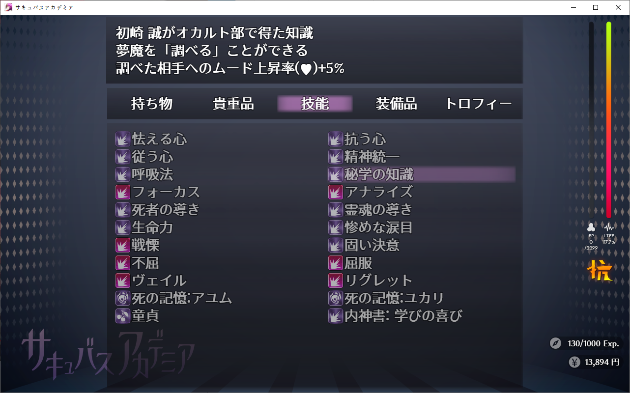 다음 제물도 기상음마를 조사할 수 있습니다 지금보니 무드증가도 있는데 까먹고 잘 안쓴거 같네요도끼를 사줍시다악세들의 강화도 중요하죠다시 와서콰ㅗ카ㅘ와ㅗ카ㅗ캉말을 걸어주면 동정하나를 발견할 수 있습니다아마 여기까지 말을 걸어야 할겁니다서순해서 수영부로 오컬트부로 가고 있습니다눈 구경여자부원이랑 놀려고 하는 모습입니다여기의 기믹은 전자 유닛들을 올바른 위치에 묻어주는 것묻어주면길이 열립니다줍줍뭐 어려운 정도는 아닙니다여긴 남녀를 묻어야 하는데여기 물어보면여기에 있다는 사실을 알 수 있습니다다음여기의 기믹은그림자입니다뒤쪽이 어두운 상태로 촛불에 말을 걸면 안됩니다올바르게 조사하면 이렇게 이동합니다죽죽 진행템도 줍고이렇게 잘못넣어주면함정이 발동됩니다바로옆에 있는데 못봄죽죽 이동하고다음기믹은이렇게그림자가 비치는 촛불을 조사해주면 됩니다이런 식여기는 몹을 끌고와서 불을 붙여야 하더군요당장은 몰랐으니 패스죽죽가서후배가 임프로 각성합니다템줍줍비상구도 가고동일한 취향조사악세는 리사이클이 가능합니다 한 70퍼 정도로 돌려줄겁니다악세도 죽 강화하고앞으로 진행합시다푸딩도 훔쳐먹고다시 돌아와서 이걸 까먹고 있었습니다문을열고엿봅시다죽이고 틈으로 들어가서템들을 훔쳐먹읍시다준비가 다 되었다면 진행꺼져 악마으앙 쥬금몽도계는 엄청 일그러졌군요1회차라서인진 몰라도 계속 도전해봤는데 엄청 어렵더군요
