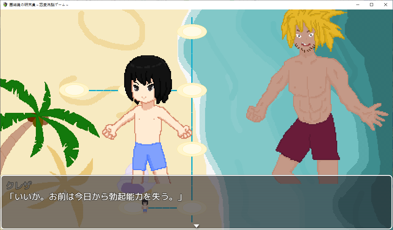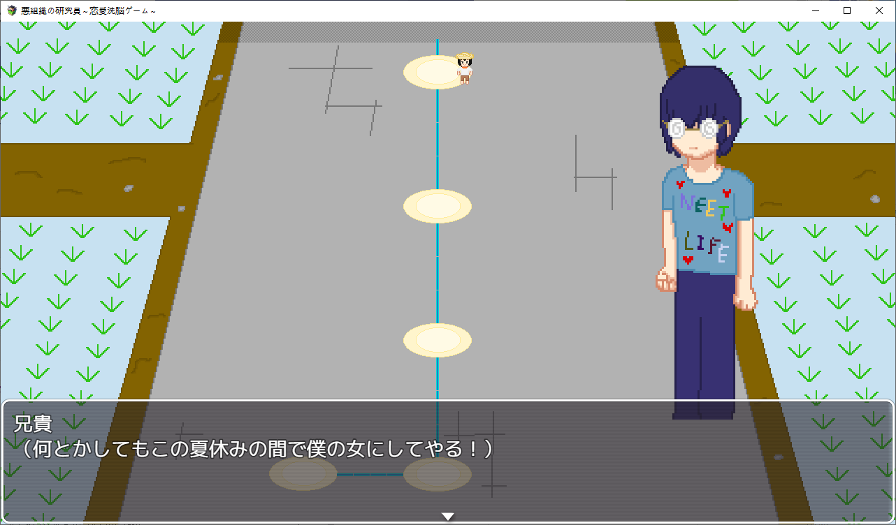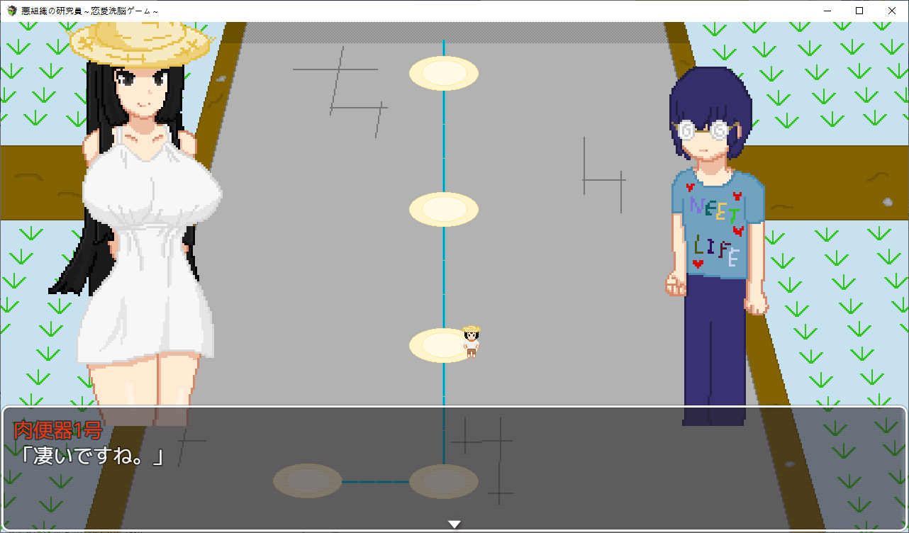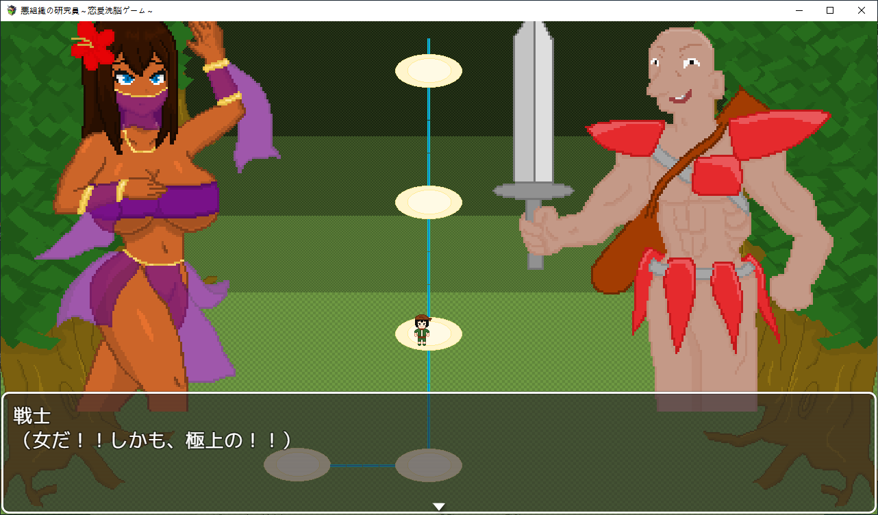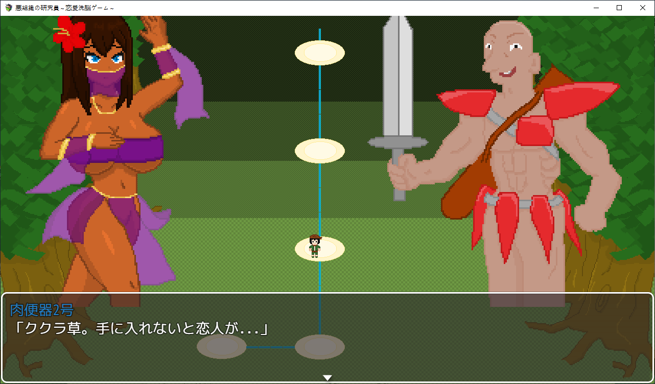 게임을 하나 만든 주인공팀시험테스트를 하러 들어가는데난이도를 지옥으로 만들어놨습니다여자들을 공략하는 게임입니다캐릭들은 전작의 4소녀들상념녀는 여친이 맡습니다한칸씩 이동하면서 진행NTR남에게서 여캐들을 NTR해옵시다애인을 위해 약초를 캐러 온 여주를 모험가가 먹을려고 하는걸 주인공이 먹습니다쇼타임을 이용해먹는 주인공특정칸마다 전투가 있고 여기서 노가다가 가능합니다여긴 최면마법으로 공략하네요하다보면 막히는데 다른 스테이지를 가보라고 합니다학원으로 먼저 가봤습니다여기 설정은선생에게 그런 사진이 찍혀 협박당하는 스토리 입니다여긴 최면어플로 해치웁니다중간에 막히면 다른스테이지로 이동이쪽이 스킬을 주는 스테이지입니다오대충 시골소녀가 상경해서 금태양에게 먹힐 스토리 입니다여름방학동안 공략을 하려는 남캐를 뻇어먹으려는 주인공같이 놀게해서 그녀를 멍청하게 만들 작전을 짭니다 얘가 더 멍청한 듯여기는 세뇌충을 쓰네요열심히 공부하는 동안 그녀는 공략당하고 있습니다여기를 깨면 스킬을 하나하나 배울 수 있습니다다음은 무인도금태양와 표류를 합니다남친은 게임이 끝날때쯤 무인도로 흘러옵니다여긴 암시버섯을 이용해 최면을 거네요이걸로 곶아로 만드는 주인공이제안건데 스테이지마다 파는 물건이 다르더군요이게 제일 좋습니다이건 적용이 안되는거 같더군요무기도 사고열심히 노가다를 해줍시다이거도 스테이지를 밀면 상품이 점점 고급화 됩니다클리어자체는 여기부터 빠르게 미는게 좋습니다이리저리 다니면서 레벨업과 노가다를 뛰어줍시다끝까지가면 연적이 눈치를 슬슬채는데 일찍도 챕니다마지막은 연적과의 전투공격력을 낮춰서 생존률을 올리고 때리면 됩니다얘가 그나마 4명중에 제일 약합니다공략완료최종보스를 잡으면 최종티어템을 팝니다이거자체의 성능이 사기라서 원래라면 이걸 끼고 나머지를 잡아야 하는 듯 합니다여기서 연적과의 전투운빨로 미스가 왕창뜨면서 잡을 수 있었습니다이렇게 하나하나 클리어 해주면 됩니다모든 스테이지를 깨면 최종스테이지가 나옵니다이전의 4천왕이 등장합니다최종보스는 융합체여기서 노가다를 했는데되돌아갈 수 없어서 죽으려고 보스와 싸우니 스킬을 전혀 안써서 운빨로 잡았습니다 무엇아무튼 클리어노가다를 뛴게 아쉬우니 템을 사고우라스테이지로 가봅시다제작자의 오너캐히든루트는자기자신입니다최종템을 끼고 있다면 잡을만 했습니다클리어