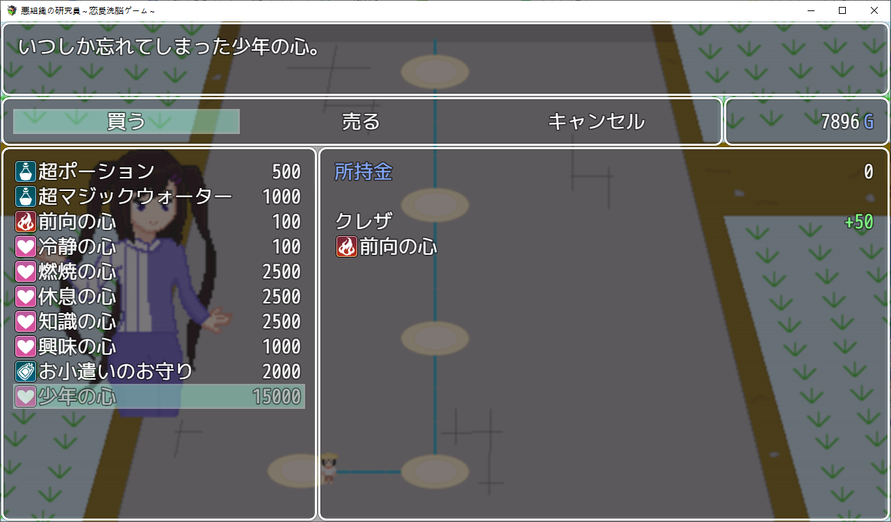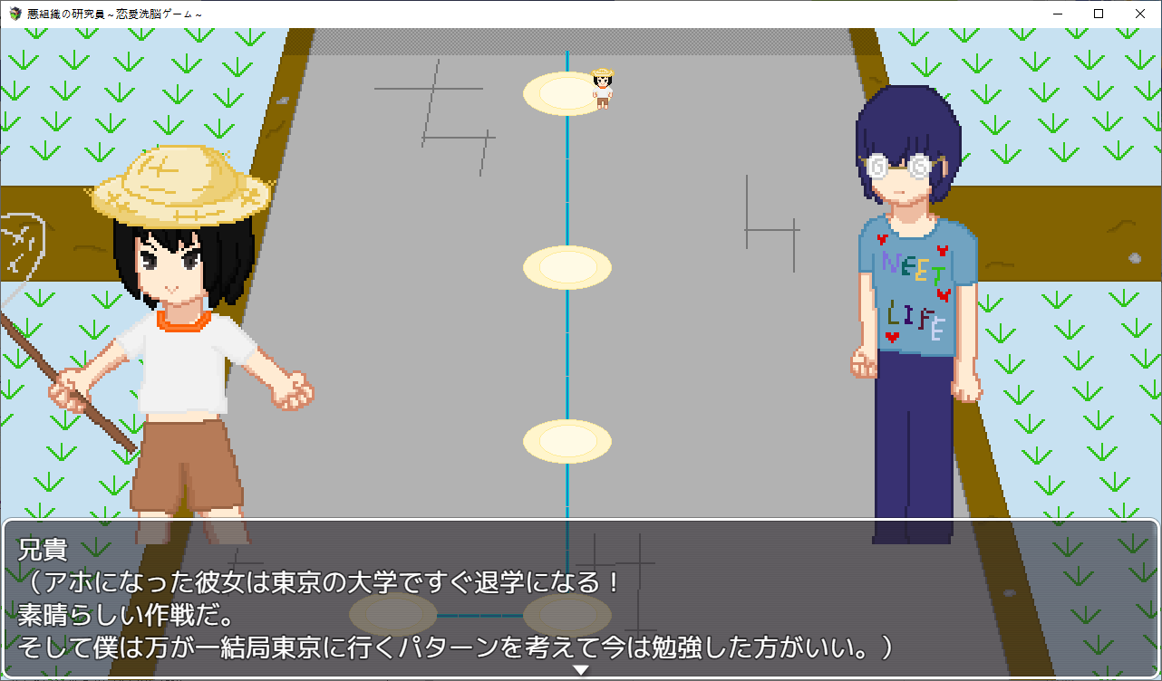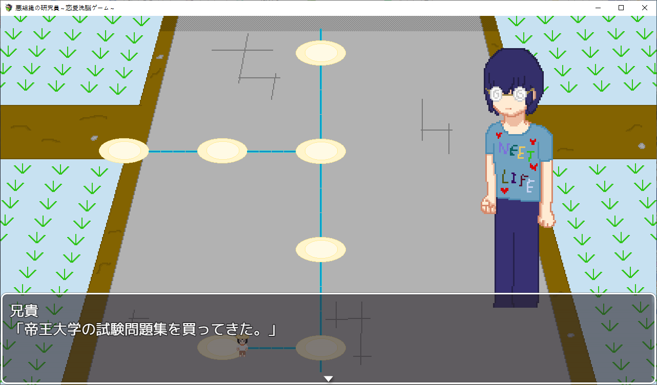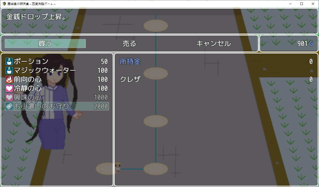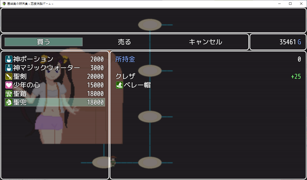 게임을 하나 만든 주인공팀시험테스트를 하러 들어가는데난이도를 지옥으로 만들어놨습니다여자들을 공략하는 게임입니다캐릭들은 전작의 4소녀들상념녀는 여친이 맡습니다한칸씩 이동하면서 진행NTR남에게서 여캐들을 NTR해옵시다애인을 위해 약초를 캐러 온 여주를 모험가가 먹을려고 하는걸 주인공이 먹습니다쇼타임을 이용해먹는 주인공특정칸마다 전투가 있고 여기서 노가다가 가능합니다여긴 최면마법으로 공략하네요하다보면 막히는데 다른 스테이지를 가보라고 합니다학원으로 먼저 가봤습니다여기 설정은선생에게 그런 사진이 찍혀 협박당하는 스토리 입니다여긴 최면어플로 해치웁니다중간에 막히면 다른스테이지로 이동이쪽이 스킬을 주는 스테이지입니다오대충 시골소녀가 상경해서 금태양에게 먹힐 스토리 입니다여름방학동안 공략을 하려는 남캐를 뻇어먹으려는 주인공같이 놀게해서 그녀를 멍청하게 만들 작전을 짭니다 얘가 더 멍청한 듯여기는 세뇌충을 쓰네요열심히 공부하는 동안 그녀는 공략당하고 있습니다여기를 깨면 스킬을 하나하나 배울 수 있습니다다음은 무인도금태양와 표류를 합니다남친은 게임이 끝날때쯤 무인도로 흘러옵니다여긴 암시버섯을 이용해 최면을 거네요이걸로 곶아로 만드는 주인공이제안건데 스테이지마다 파는 물건이 다르더군요이게 제일 좋습니다이건 적용이 안되는거 같더군요무기도 사고열심히 노가다를 해줍시다이거도 스테이지를 밀면 상품이 점점 고급화 됩니다클리어자체는 여기부터 빠르게 미는게 좋습니다이리저리 다니면서 레벨업과 노가다를 뛰어줍시다끝까지가면 연적이 눈치를 슬슬채는데 일찍도 챕니다마지막은 연적과의 전투공격력을 낮춰서 생존률을 올리고 때리면 됩니다얘가 그나마 4명중에 제일 약합니다공략완료최종보스를 잡으면 최종티어템을 팝니다이거자체의 성능이 사기라서 원래라면 이걸 끼고 나머지를 잡아야 하는 듯 합니다여기서 연적과의 전투운빨로 미스가 왕창뜨면서 잡을 수 있었습니다이렇게 하나하나 클리어 해주면 됩니다모든 스테이지를 깨면 최종스테이지가 나옵니다이전의 4천왕이 등장합니다최종보스는 융합체여기서 노가다를 했는데되돌아갈 수 없어서 죽으려고 보스와 싸우니 스킬을 전혀 안써서 운빨로 잡았습니다 무엇아무튼 클리어노가다를 뛴게 아쉬우니 템을 사고우라스테이지로 가봅시다제작자의 오너캐히든루트는자기자신입니다최종템을 끼고 있다면 잡을만 했습니다클리어