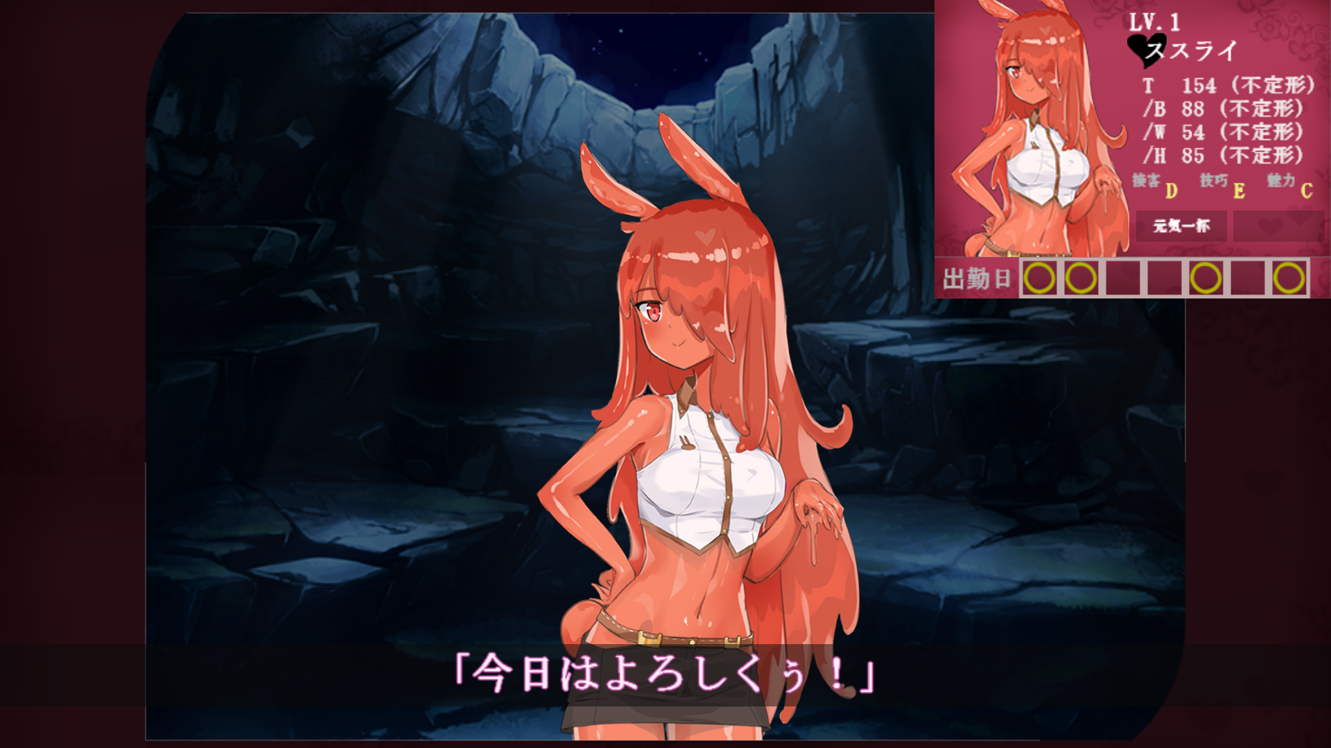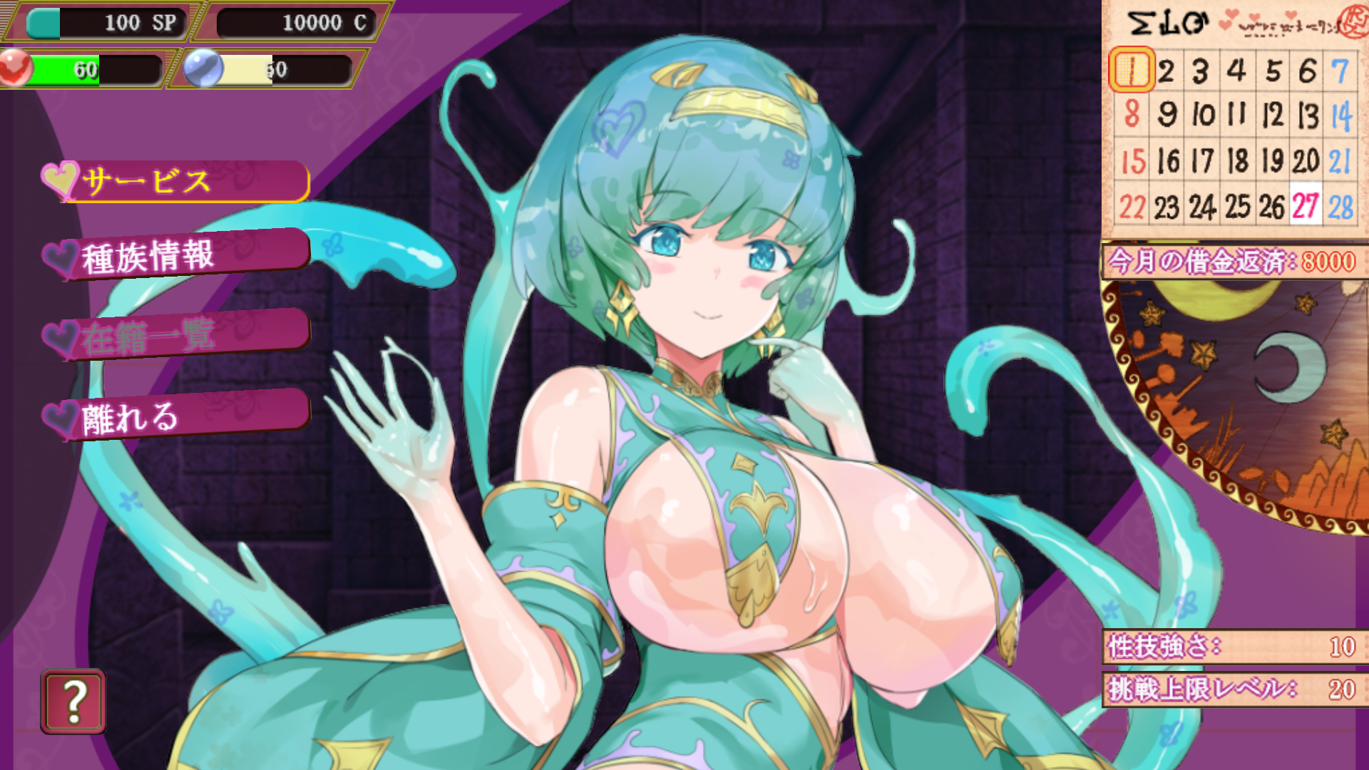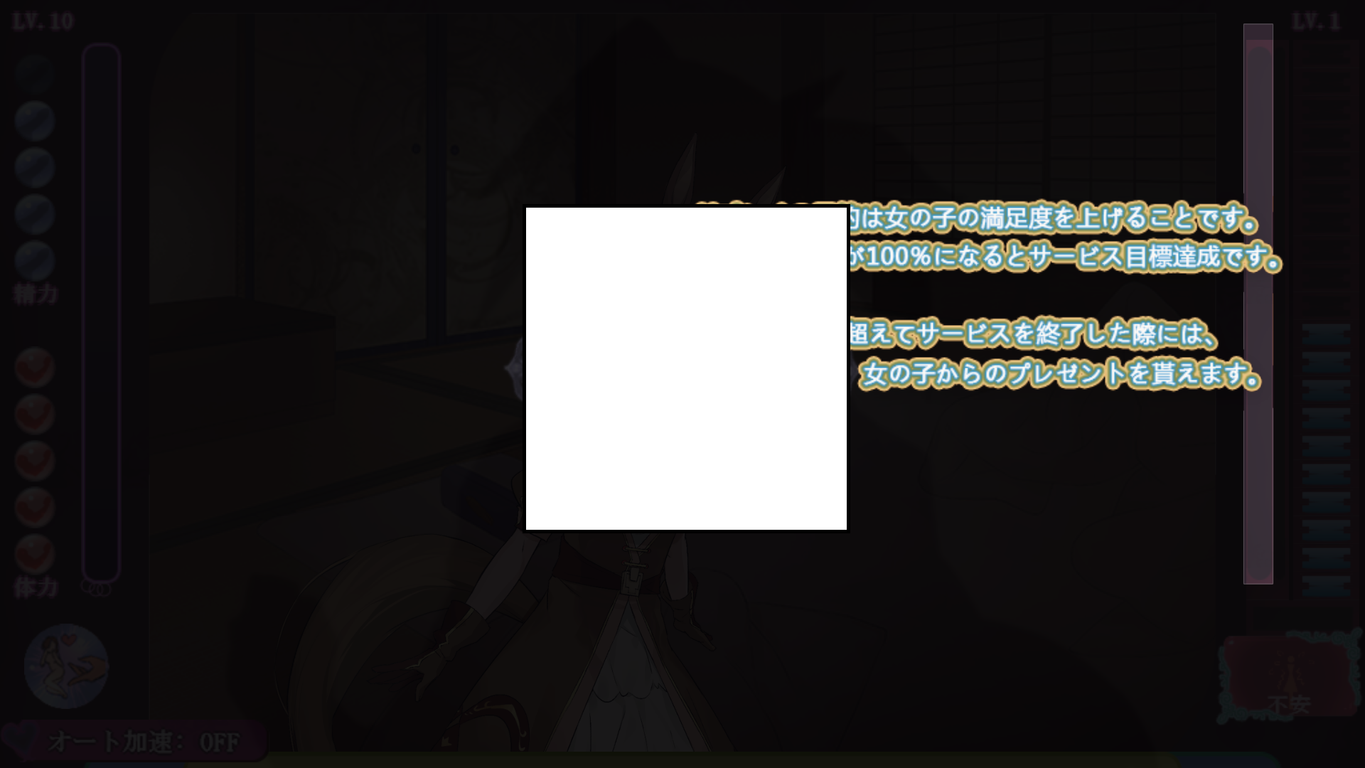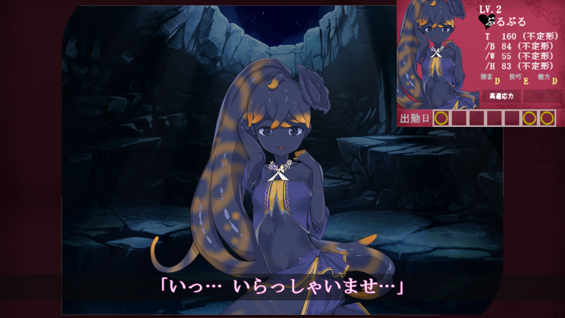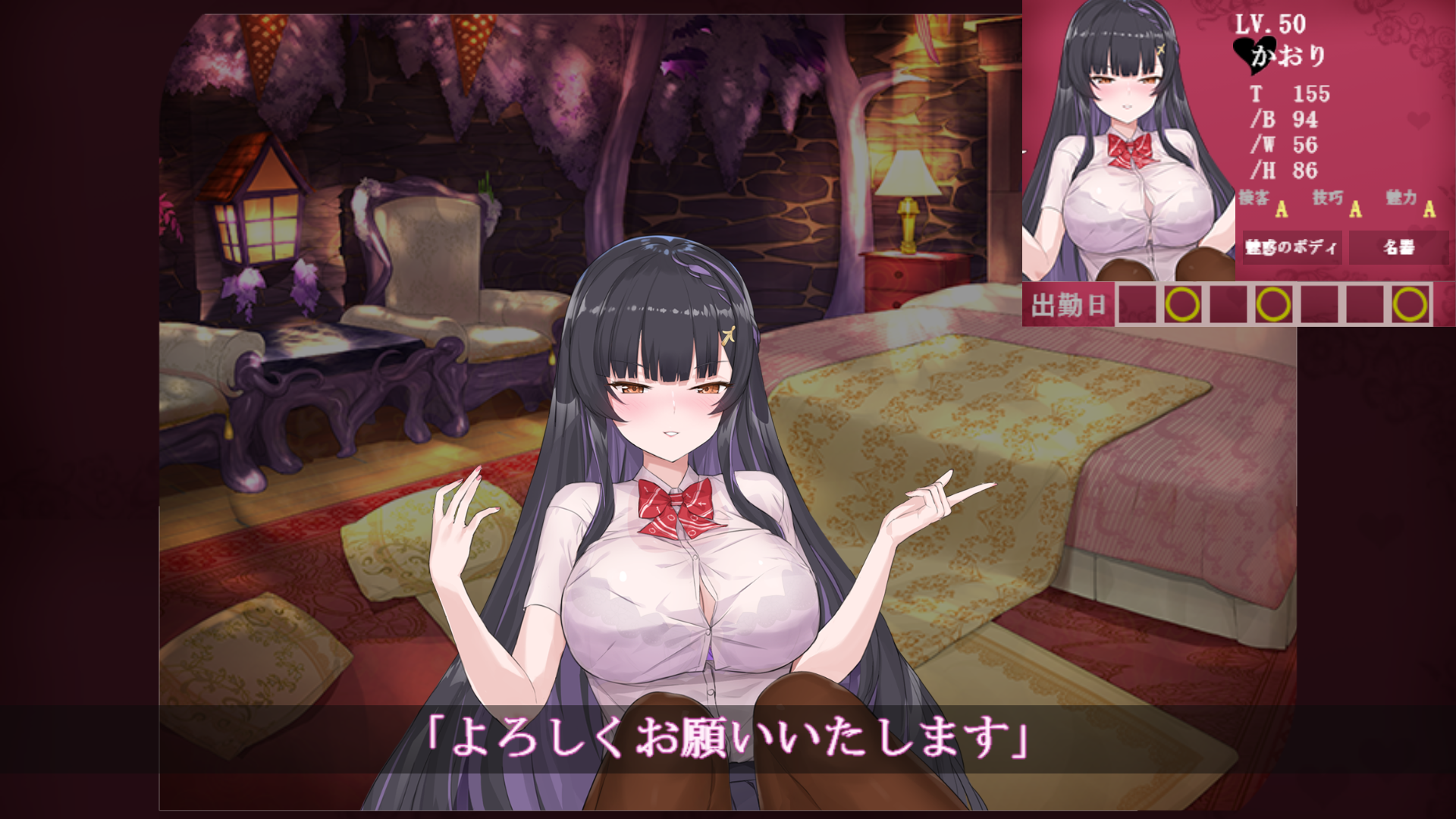 게임자체가 쉽기 때문에 노말로 갑시다튜토리얼서비스시간동안 상대를 만족시키는 것이 목표입니다각 종족마다 약점이라던가 있어서 재미가 있습니다말종족은 가슴을 만지는게 좋다지만 긴장한 상태라 그런지 효과적이지 않습니다그럴때는 숨겨진 기술을 쓰면 되는데 이땐 꼬리를 만질 수 있습니다이렇게 숨겨진 장소가 있는 종족도 있습니다 나중에 얻는 관찰스킬로 보면 보입니다꼬리를 만져주면 긴장이 풀리고 그 뒤로 즐기면 되는데 같은 기술을 계속쓰면 둔감해 지는거 같더군요여기가 주인공의 창관밖을 산책하다가 전생자를 만납니다전생자놈들은 치트능력을 앞세워서 이쪽세계를 말아먹는다고 싫어합니다친절히 상대해 주는데당연히 처발립니다아아 이건 페라라는 것이다우오옷 이것이 펠라라는 것인가 우리도 벤치마킹하자해서 개발을 하려고 합니다엘프족으론 평범하고 슬라임에게 지원을 받으려고 합니다다른 창관으로 갑시다안녕톱을 지명하기 위해선 VIP가 되어야 하고 그러기 위해선 직원 하나를 만족시켜야 합니다이 게임의 특이한 점으로선 종족정보가 있는데이런저런 약점이라던가 정보를 알게 되면 채워지고 그 만큼 각 창관에 보너스를 받을 수 있습니다아직은 VIP가 아니라서 지명은 못합니다이렇게 시작하는게 가성비는 좋습니다랜덤이라 아무나 옵니다한번하고 나오면 슬라임들은 정력이 꽉 차있는 남자를 좋아한다는 이야기를 들을 수 있습니다정력이 딸리면 거의 최종스펙으로도 못떄리겠더군요스킬도 있습니다뭐를 찍던 자유긴 한데 접객이 제일 구립니다분별을 얻을 수 있습니다상태도 있는데스테이터스라던가직원상점의 이런저런 효과아이템을 설치할 수 있습니다놀다보면 고양이 상인도 찾아옵니다전생자들은 모두 전생특전이 있나봅니다이런저런걸 살 수도 있는데해보니 돈이 철철남기도 해서 중후반부턴 죄다 사시면 됩니다슬라임에 대한 정보도 들어주고전생자에 대한 정보도 들어줍시다짜증나는 전생자를 마음대로 할 수 있어서 인기가 좋습니다회복제는 사면 바로바로 회복됩니다 휴식누르는거보단 이득이니 사주는게 좋습니다이런건 나중에 돈의 여유가 생기면 하나씩 사면 되고이거도 나중에 사야합니다 악세류는 쓰레기니 패스선전은 너무 초반이면 해봤자 이득이 적으니 좀 시간이 지나면 해줍시다일단은 슬라임과 놀아봅시다종족정보를 보면이때까지 얻은 정보들이 보이고 이런 정보를 얻을때마다 이런저런 보너스를 받은걸 볼 수 있습니다출근일이 따로 있고 지명도 따로 안했기 때문에 랜덤으로 상대가 등장합니다관찰로 상대의 약점을 볼 수 있습니다특정부위가 아닌 다른부위가 보인다면 약점입니다이렇게 특정행동을 하면 상대종족에 대한 정보를 볼 수 있습니다서로가 서로의 첫상대였나 봅니다아침에는 휴식이나 개발을 하고밤에는 음행을 떠나면 됩니다경영페이즈도 있긴한데 크게 조작할 것도 없어서 이벤트 조건일때만 들러주면 됩니다스킬 카드를 써서 이런저런 효과를 낼 수 있습니다돈을 많이 벌진 않습니다소녀를 한명 만족시켰다면 드디어 지명이 가능해집니다돈이 더 들어가는게 문제슬라리를 지명해서 놀면 됩니다이기면 계약을 얻습니다슬라임족도 하나 덤으로 받습니다날씨에 따라 방문종족이 바뀌기도 합니다또한 행동으로도 어빌리티를 얻을 수 있습니다이번 목표는슬라임페라 개발입니다아가씨들의 경험치가 쌓이면 다른 기술들도 개발할 수 있습니다현재까지 얻은 정보는 이렇군요 나중에 돈주고 사면 됩니다다음은 미노타우루스군요낮에는 우유배달을 할 수 있습니다한붓그리기 형식으로 왔던 곳은 다시 못지나갑니다손놈들을 오크라고 부르나 보네요 이런놈들은 빨리빨리 치워주어야 합니다슬라리는 S랭시 경험치 증가 악세를 주기 때문에 노가다 장소입니다일일 수입 천을 넘기고미미에게 새로운 기술에 대한 홍보를 부탁합시다종족 우수성을 이용해서 전생자에게 대항합시다선전을 부탁합시다