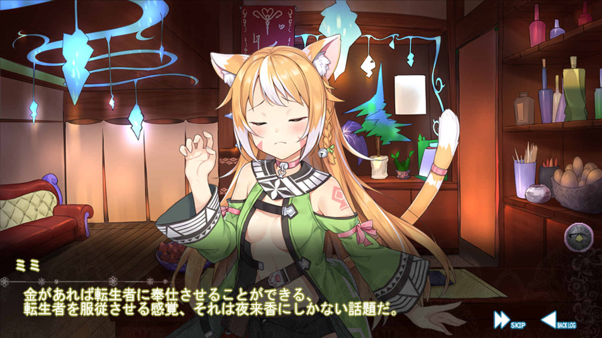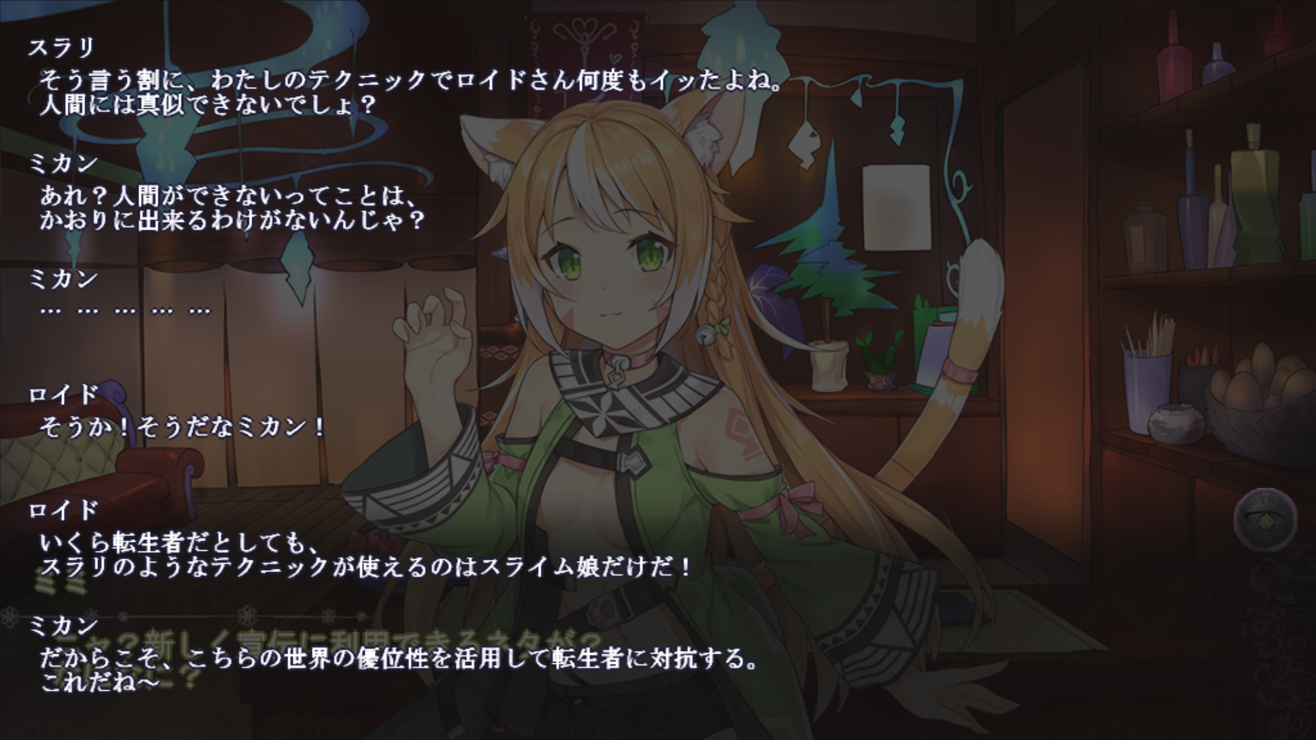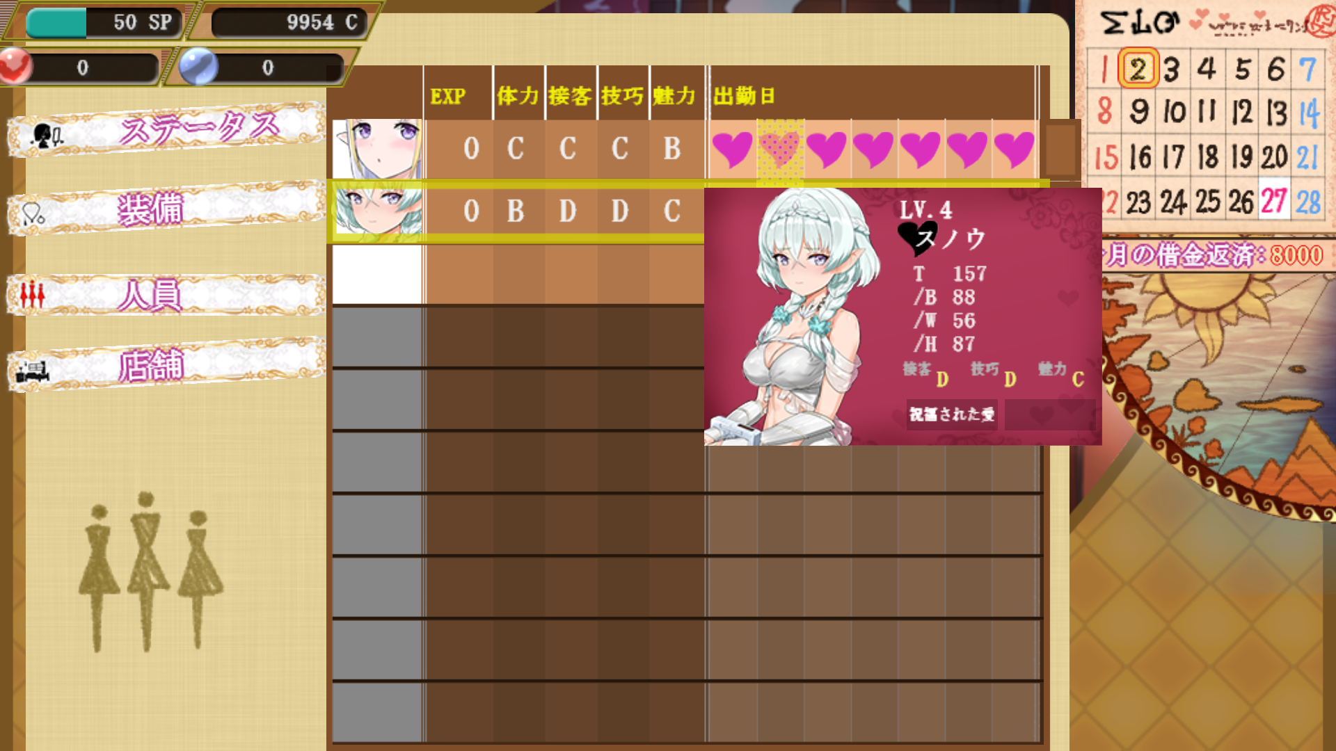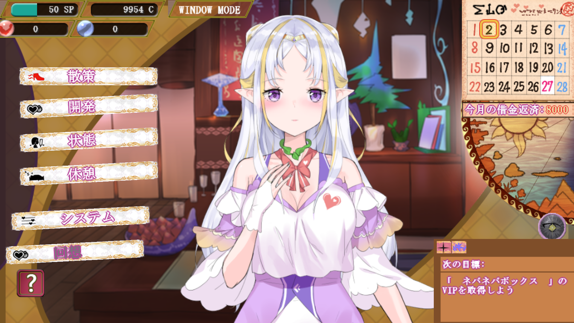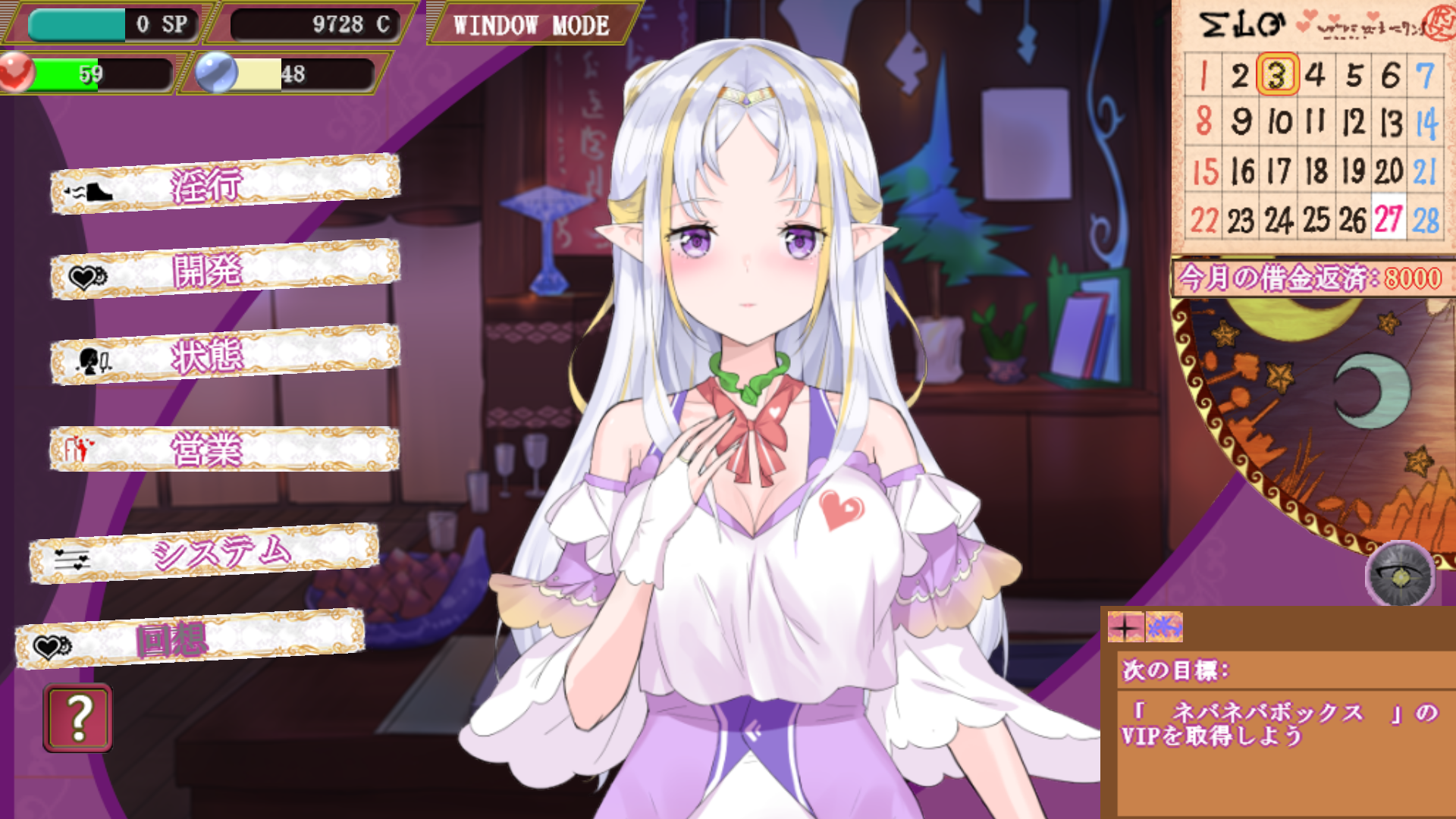게임자체가 쉽기 때문에 노말로 갑시다튜토리얼서비스시간동안 상대를 만족시키는 것이 목표입니다각 종족마다 약점이라던가 있어서 재미가 있습니다말종족은 가슴을 만지는게 좋다지만 긴장한 상태라 그런지 효과적이지 않습니다그럴때는 숨겨진 기술을 쓰면 되는데 이땐 꼬리를 만질 수 있습니다이렇게 숨겨진 장소가 있는 종족도 있습니다 나중에 얻는 관찰스킬로 보면 보입니다꼬리를 만져주면 긴장이 풀리고 그 뒤로 즐기면 되는데 같은 기술을 계속쓰면 둔감해 지는거 같더군요여기가 주인공의 창관밖을 산책하다가 전생자를 만납니다전생자놈들은 치트능력을 앞세워서 이쪽세계를 말아먹는다고 싫어합니다친절히 상대해 주는데당연히 처발립니다아아 이건 페라라는 것이다우오옷 이것이 펠라라는 것인가 우리도 벤치마킹하자해서 개발을 하려고 합니다엘프족으론 평범하고 슬라임에게 지원을 받으려고 합니다다른 창관으로 갑시다안녕톱을 지명하기 위해선 VIP가 되어야 하고 그러기 위해선 직원 하나를 만족시켜야 합니다이 게임의 특이한 점으로선 종족정보가 있는데이런저런 약점이라던가 정보를 알게 되면 채워지고 그 만큼 각 창관에 보너스를 받을 수 있습니다아직은 VIP가 아니라서 지명은 못합니다이렇게 시작하는게 가성비는 좋습니다랜덤이라 아무나 옵니다한번하고 나오면 슬라임들은 정력이 꽉 차있는 남자를 좋아한다는 이야기를 들을 수 있습니다정력이 딸리면 거의 최종스펙으로도 못떄리겠더군요스킬도 있습니다뭐를 찍던 자유긴 한데 접객이 제일 구립니다분별을 얻을 수 있습니다상태도 있는데스테이터스라던가직원상점의 이런저런 효과아이템을 설치할 수 있습니다놀다보면 고양이 상인도 찾아옵니다전생자들은 모두 전생특전이 있나봅니다이런저런걸 살 수도 있는데해보니 돈이 철철남기도 해서 중후반부턴 죄다 사시면 됩니다슬라임에 대한 정보도 들어주고전생자에 대한 정보도 들어줍시다짜증나는 전생자를 마음대로 할 수 있어서 인기가 좋습니다회복제는 사면 바로바로 회복됩니다 휴식누르는거보단 이득이니 사주는게 좋습니다이런건 나중에 돈의 여유가 생기면 하나씩 사면 되고이거도 나중에 사야합니다 악세류는 쓰레기니 패스선전은 너무 초반이면 해봤자 이득이 적으니 좀 시간이 지나면 해줍시다일단은 슬라임과 놀아봅시다종족정보를 보면이때까지 얻은 정보들이 보이고 이런 정보를 얻을때마다 이런저런 보너스를 받은걸 볼 수 있습니다출근일이 따로 있고 지명도 따로 안했기 때문에 랜덤으로 상대가 등장합니다관찰로 상대의 약점을 볼 수 있습니다특정부위가 아닌 다른부위가 보인다면 약점입니다이렇게 특정행동을 하면 상대종족에 대한 정보를 볼 수 있습니다서로가 서로의 첫상대였나 봅니다아침에는 휴식이나 개발을 하고밤에는 음행을 떠나면 됩니다경영페이즈도 있긴한데 크게 조작할 것도 없어서 이벤트 조건일때만 들러주면 됩니다스킬 카드를 써서 이런저런 효과를 낼 수 있습니다돈을 많이 벌진 않습니다소녀를 한명 만족시켰다면 드디어 지명이 가능해집니다돈이 더 들어가는게 문제슬라리를 지명해서 놀면 됩니다이기면 계약을 얻습니다슬라임족도 하나 덤으로 받습니다날씨에 따라 방문종족이 바뀌기도 합니다또한 행동으로도 어빌리티를 얻을 수 있습니다이번 목표는슬라임페라 개발입니다아가씨들의 경험치가 쌓이면 다른 기술들도 개발할 수 있습니다현재까지 얻은 정보는 이렇군요 나중에 돈주고 사면 됩니다다음은 미노타우루스군요낮에는 우유배달을 할 수 있습니다한붓그리기 형식으로 왔던 곳은 다시 못지나갑니다손놈들을 오크라고 부르나 보네요 이런놈들은 빨리빨리 치워주어야 합니다슬라리는 S랭시 경험치 증가 악세를 주기 때문에 노가다 장소입니다일일 수입 천을 넘기고미미에게 새로운 기술에 대한 홍보를 부탁합시다종족 우수성을 이용해서 전생자에게 대항합시다선전을 부탁합시다