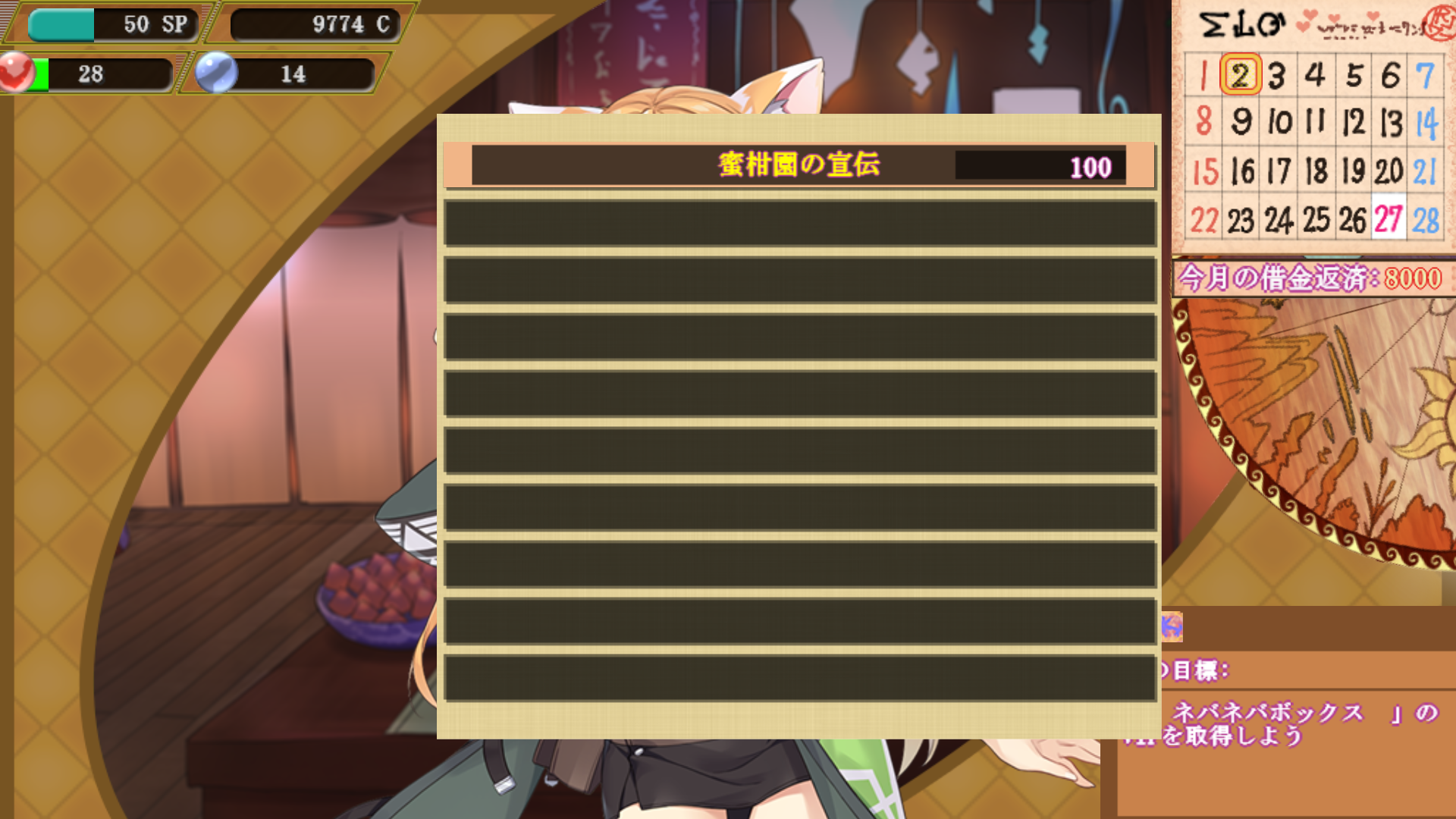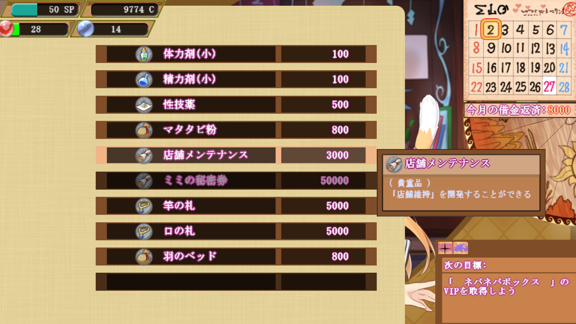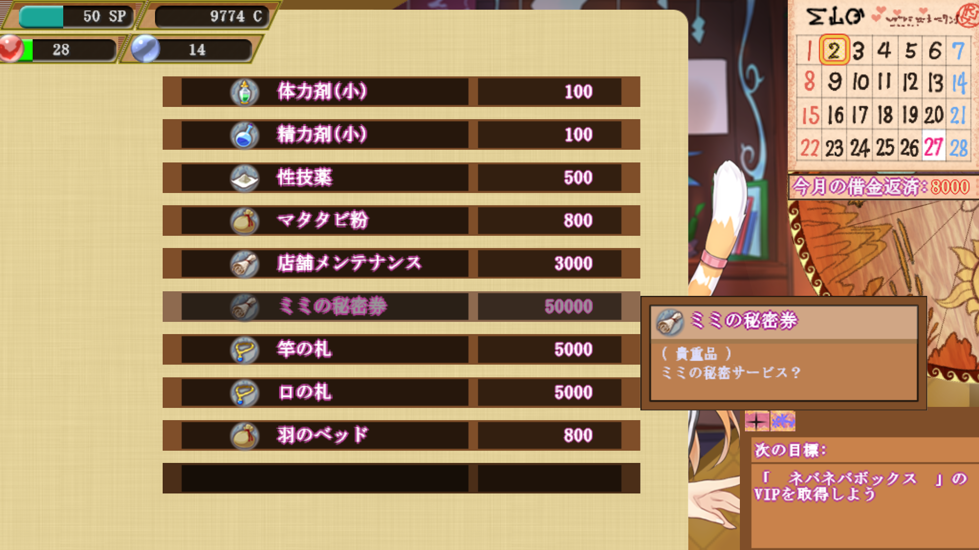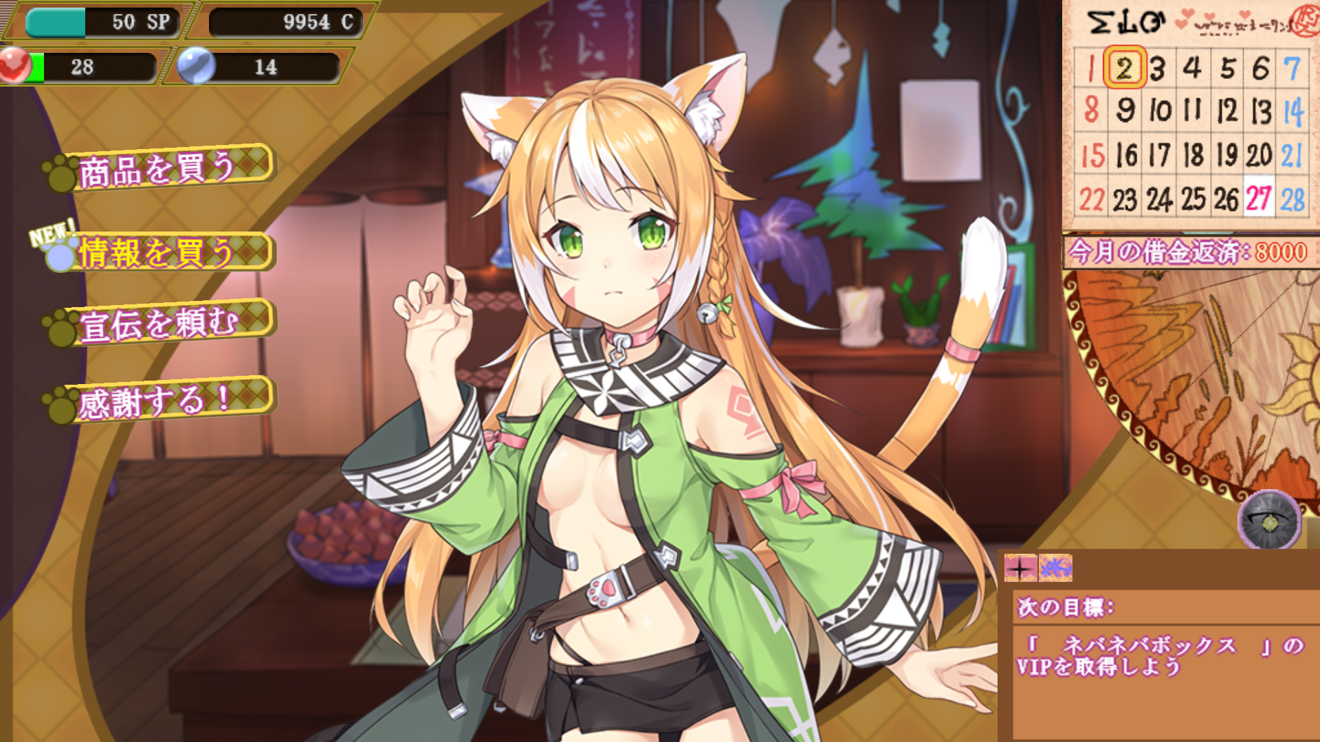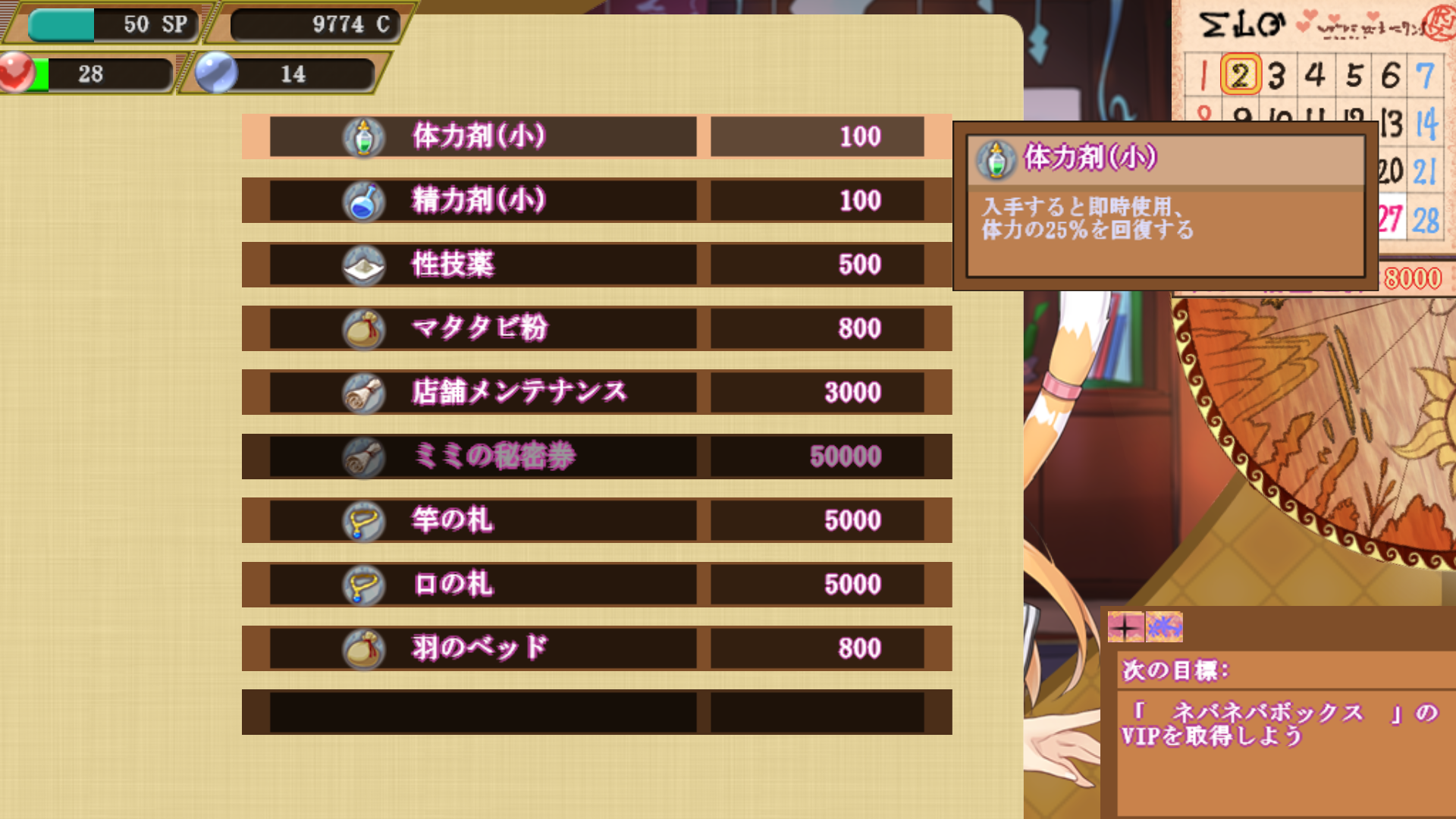 게임자체가 쉽기 때문에 노말로 갑시다튜토리얼서비스시간동안 상대를 만족시키는 것이 목표입니다각 종족마다 약점이라던가 있어서 재미가 있습니다말종족은 가슴을 만지는게 좋다지만 긴장한 상태라 그런지 효과적이지 않습니다그럴때는 숨겨진 기술을 쓰면 되는데 이땐 꼬리를 만질 수 있습니다이렇게 숨겨진 장소가 있는 종족도 있습니다 나중에 얻는 관찰스킬로 보면 보입니다꼬리를 만져주면 긴장이 풀리고 그 뒤로 즐기면 되는데 같은 기술을 계속쓰면 둔감해 지는거 같더군요여기가 주인공의 창관밖을 산책하다가 전생자를 만납니다전생자놈들은 치트능력을 앞세워서 이쪽세계를 말아먹는다고 싫어합니다친절히 상대해 주는데당연히 처발립니다아아 이건 페라라는 것이다우오옷 이것이 펠라라는 것인가 우리도 벤치마킹하자해서 개발을 하려고 합니다엘프족으론 평범하고 슬라임에게 지원을 받으려고 합니다다른 창관으로 갑시다안녕톱을 지명하기 위해선 VIP가 되어야 하고 그러기 위해선 직원 하나를 만족시켜야 합니다이 게임의 특이한 점으로선 종족정보가 있는데이런저런 약점이라던가 정보를 알게 되면 채워지고 그 만큼 각 창관에 보너스를 받을 수 있습니다아직은 VIP가 아니라서 지명은 못합니다이렇게 시작하는게 가성비는 좋습니다랜덤이라 아무나 옵니다한번하고 나오면 슬라임들은 정력이 꽉 차있는 남자를 좋아한다는 이야기를 들을 수 있습니다정력이 딸리면 거의 최종스펙으로도 못떄리겠더군요스킬도 있습니다뭐를 찍던 자유긴 한데 접객이 제일 구립니다분별을 얻을 수 있습니다상태도 있는데스테이터스라던가직원상점의 이런저런 효과아이템을 설치할 수 있습니다놀다보면 고양이 상인도 찾아옵니다전생자들은 모두 전생특전이 있나봅니다이런저런걸 살 수도 있는데해보니 돈이 철철남기도 해서 중후반부턴 죄다 사시면 됩니다슬라임에 대한 정보도 들어주고전생자에 대한 정보도 들어줍시다짜증나는 전생자를 마음대로 할 수 있어서 인기가 좋습니다회복제는 사면 바로바로 회복됩니다 휴식누르는거보단 이득이니 사주는게 좋습니다이런건 나중에 돈의 여유가 생기면 하나씩 사면 되고이거도 나중에 사야합니다 악세류는 쓰레기니 패스선전은 너무 초반이면 해봤자 이득이 적으니 좀 시간이 지나면 해줍시다일단은 슬라임과 놀아봅시다종족정보를 보면이때까지 얻은 정보들이 보이고 이런 정보를 얻을때마다 이런저런 보너스를 받은걸 볼 수 있습니다출근일이 따로 있고 지명도 따로 안했기 때문에 랜덤으로 상대가 등장합니다관찰로 상대의 약점을 볼 수 있습니다특정부위가 아닌 다른부위가 보인다면 약점입니다이렇게 특정행동을 하면 상대종족에 대한 정보를 볼 수 있습니다서로가 서로의 첫상대였나 봅니다아침에는 휴식이나 개발을 하고밤에는 음행을 떠나면 됩니다경영페이즈도 있긴한데 크게 조작할 것도 없어서 이벤트 조건일때만 들러주면 됩니다스킬 카드를 써서 이런저런 효과를 낼 수 있습니다돈을 많이 벌진 않습니다소녀를 한명 만족시켰다면 드디어 지명이 가능해집니다돈이 더 들어가는게 문제슬라리를 지명해서 놀면 됩니다이기면 계약을 얻습니다슬라임족도 하나 덤으로 받습니다날씨에 따라 방문종족이 바뀌기도 합니다또한 행동으로도 어빌리티를 얻을 수 있습니다이번 목표는슬라임페라 개발입니다아가씨들의 경험치가 쌓이면 다른 기술들도 개발할 수 있습니다현재까지 얻은 정보는 이렇군요 나중에 돈주고 사면 됩니다다음은 미노타우루스군요낮에는 우유배달을 할 수 있습니다한붓그리기 형식으로 왔던 곳은 다시 못지나갑니다손놈들을 오크라고 부르나 보네요 이런놈들은 빨리빨리 치워주어야 합니다슬라리는 S랭시 경험치 증가 악세를 주기 때문에 노가다 장소입니다일일 수입 천을 넘기고미미에게 새로운 기술에 대한 홍보를 부탁합시다종족 우수성을 이용해서 전생자에게 대항합시다선전을 부탁합시다