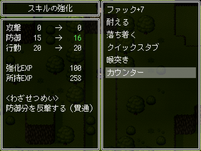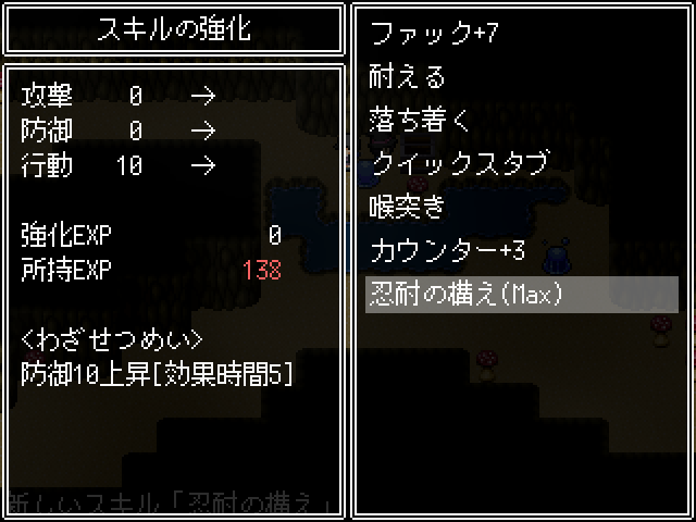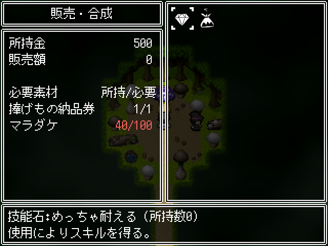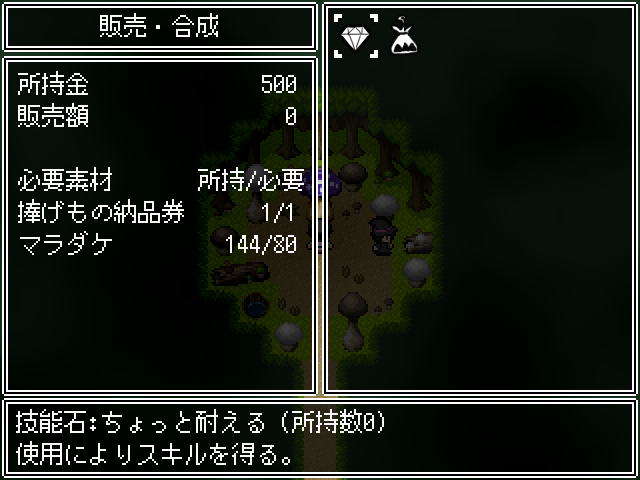 드디어 다른 지역에 갈 수 있게 되었습니다왼쪽으로 갈 수 있게 되고일기도 달라지니 구경해줍시다문을 열어주고커여운 고양이들이 반겨줍니다 카운터를 쓰니 주의아래쪽으로 빙글 둘러 갑시다문을 열어주고옆쪽이 길입니다아래쪽엔 템이 있고이쪽은 부적을 팝니다소재를 사용해서 부적을 만들 수 있습니다경험치를 끼고 다닙시다이걸 팔아서 돈을 마련합시다더 가면 화장실이 있고보물이 있다고 합니다척봐도 수상쩍군요아무리 봐도 함정이니 같이 안가줍니다혼자가면카운터를 얻을 수 있고4연전을 합시다그리고 마지막에보스를 봐줄 수 있는데괜히 덤볐다가디졋습니다이번만 봐준다카운터를 어느정도 강화를 해야 잡을 수 있습니다아래로 내려와서대충 구경하고뭔가를 설치할 수 있는 곳이 있네요여기에서 다크페어리를 볼 수 있으니이걸 만들어 줍시다두개는 못끼더군요빙글빙글 돌면서 길을 열어주고위로 가면동굴이 나옵니다스킬을 얻어주고구립니다고양이 보스를 잡아야 열립니다다시와서 잡아줍시다카운터 방어력이 19정도 되면 잡을만 했습니다다시 가서문을 열어주고 통과이쪽으로 빠지는군요죽 안으로 들어가면 버섯숲이 있고이제 대부분의 길은 나무로 막혀있습니다길목에 큰 버섯이 있고버섯숲 안쪽에는 스킬이 있습니다연타기라 좋습니다여튼 이 버섯은납품권을 주는데여기서 몬스터필의 개량을 할 수 있습니다버섯즙을 나무에 뿌리라고 합니다버섯을 공양합시다이거는 하나 사갑시다