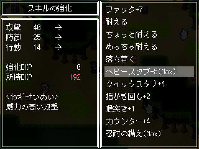 돌아오면 슈퍼필을 얻을 수 있습니다일기구경도 하면 지하에 누군가 있단 사실을 알 수 있습니다다시 왼쪽으로 가서나무를 치우고 나아갑시다죽 가면묘지같은 곳으로 빠집니다묘비는 가까이 가면 적이 튀어나오고카운터를 쓰니 주의이쯤 헤피스탭을 마스터 했는데 매우 좋습니다빙글 돌아서 저택으로 갈 수 있고여기서 사다리를 내려 지름길을 만들 수 있습니다아이템들도 회수하고여기는캔들펫이 있고이건 들 수 있네요바닥을 보아하니 여기에 놔두는 것인가 본데불은 알아서 켜지네요저택으로 들어와서왼쯕은다 잠겨있네요오른쪽은 안보이고보니 촛불이 다 꺼져가네요들어서교체밝아집니다잠겨있고여기서 슈퍼필과 열쇠를 주워돌아가면 척봐도 미믹같아보이는게 있습니다진짜네강력한 카운터를 쓰니 주의별건 없습니다돌아다니다 보면매뉴얼이 있는데되도록 혼자 있을때를 노리라네요템도 훔치고가장 안쪽의 도서관에 오면또 혼자 행동할 수 있습니다식당쪽으로 가면 붙잡힙니다보스방으로 직행배송오잡아줍시다내려와서이야기를 하면하이퍼필을 만들 수 있게 됩니다 이게 마지막입니다이거는 클리어 하면 뭔 의미인지 알 수 있습니다다시 이곳 저곳 둘러봅시다여기는 다크엘프가 나옵니다기가스탭까지 써오지만 난이도는 생각보다 쉬운편입니다바로 만들어줍시다이거도 만들어주면 아이템이 4개씩 떨어집니다리젠은 꽤나 빠르게 되는 편입니다슬슬 빈공간을 채워봅시다이곳저곳 잡고이곳도 버섯을 마저주니 마물로 변하네요세이브안해서 많이 쫄았습니다관통기술이 많기 때문에 회복을 써주면 꾸역꾸역 버틸 수 있었습니다매우 좋습니다슬라임은 못잡더군요엘프는 여기 리젠됩니다적당히 잡다보면이벤트가 일어나더군요내일 뭔가 한다고 합니다일기도 있네요일단은 이정도 채웠습니다지하로가면 책이 있고책을 조사하면 어딘가로 이동합니다
