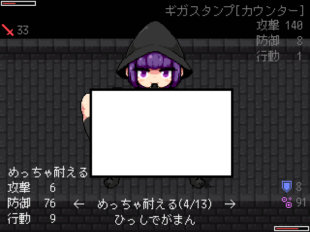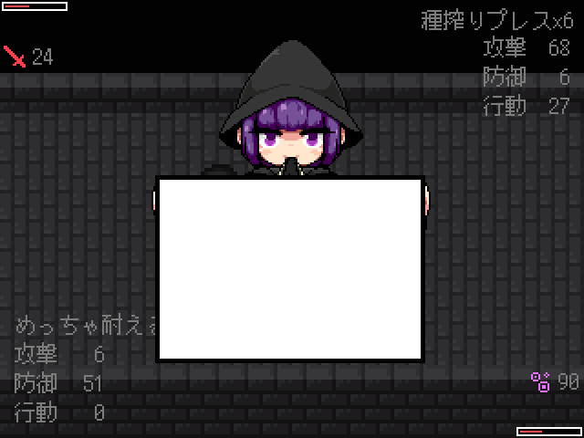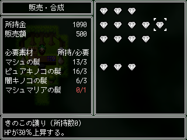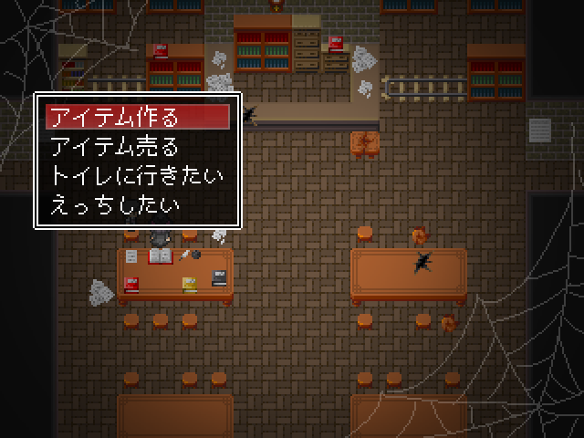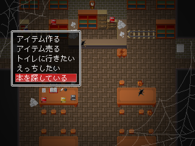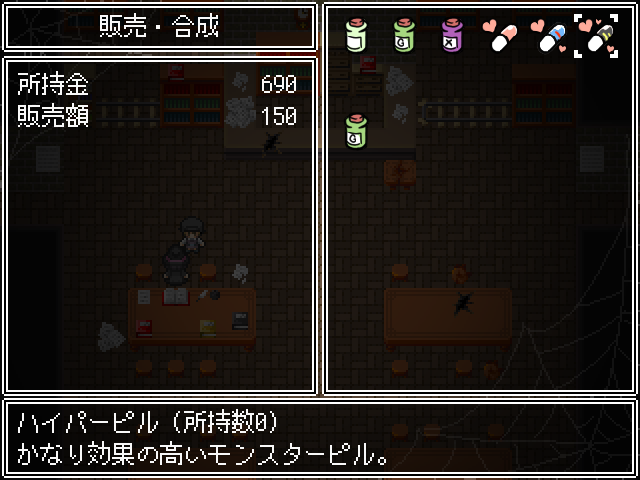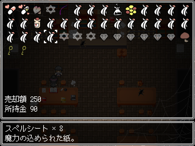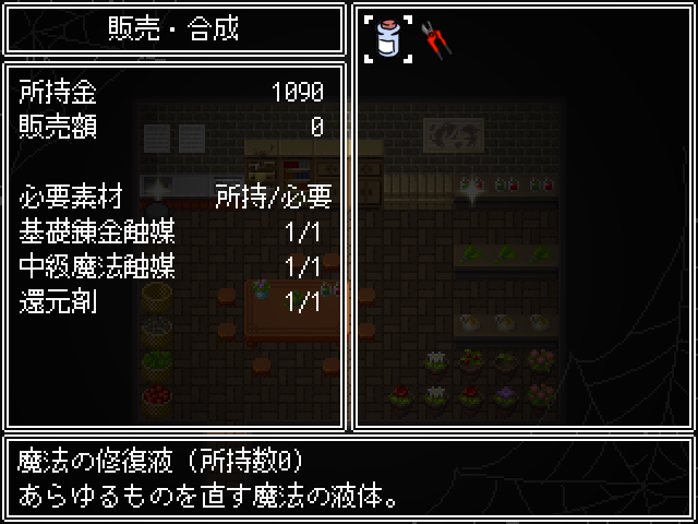 새로운 적들이 있고문은 잠겨있네요죽죽 위로 갑시다종이가 많이 떨어져 있는 곳은 함정입니다중간맵으로 가면 소녀가 있습니다이런저런게 다시 해금되고화장실은여기인데 잠겨있네요하이퍼필도 몇개 사갑시다이건 쓸일 없으니 팔아줍시다대부분 다 잠겨있고오른쪽으로 빠져아래로가면 소년이 잡혀있습니다가장 안쪽에 연타기가 있고돌아가서 책을 찾고 있다고 말하면동쪽에서 알아서 찾으라고 합니다여기서 락피킹을 얻어주고문을 열면 마물에게 당하는걸 구경할 수 있습니다녹슨 공구를 얻고말을 걸어보면알아서 수리하라고 합니다여길 열 수 있고락피킹을 얻었기 때문에 여기도 열 수 있습니다엉덩이회복하고전투는 아무것도 없는거 같네요약품실로 가면약은 다 쓰고 없고알아서 만들라고 합니다반짝이는걸 조사하면제조법을 모릅니다이번에도 책을 찾아봅시다여기 말걸면안쪽에 있다고 하네요메스가키같이 생겨서 좋네요여기서 책을 얻어서공구를 수리하고구출해줍시다소녀는 없고문밖으로 탈출이 가능합니다템을 얻고최종보스전입니다이름이 루루였군요마녀에게 감금당하고 있던 쇼타도망쳐도 안전한 장소따위 없습니다나에게 사육당하는게 안전할거야마법재료를 원하는데주인공을 새로운 가축으로 들일 생각입니다루루루슈가 덤빕니다딴건 몰라도기가스탬프가 너무 세서 무리일단 한턴 돌아갑시다낮은 버전이면 돌아가지 않는다고 하네요보통 두개가 비어있을 겁니다혼자서 왔을때 말을 걸면털을 이용해 마법사의 부적을 만들 수 있습니다구제장치로 돈을 왕창주면 완성품을 만들어줍니다판매도 여기서 가능합니다이렇게 보니 마슈마리아란걸 안잡았네요다행히 포자는 여기서 다시 얻을 수 있었습니다피아리아에게 마이코니움포자를 사용하면 됩니다허니비를 잡으면 허니드롭을 주고 꽤나 비싸게 팔립니다어지간한 템을 다 만들었다면 모든 소재를 팔아서 마지막 템을 만들어줍시다전 이렇게 갔습니다엉덩이에 체인커터를 쓰면히든보스를 만날 수 있습니다이쯤 모든 마물을 잡을 수 있었습니다여기도 털이 있었군요1턴최음술 2턴 공버프를 걸어옵니다퀵으로 때리다가 손으로 돌려주고이때 극딜을 넣어줍시다저는 괜히 쫄아서 회복을 했는데 비추천합니다행동이 적당히 남았을때 인내와버티기로 버티고다음스킬도 공격을 하다가인내와 카운터를 써줍시다괜히 버텼다가 하이퍼필로 회복을 하더군요그다음 다시 패턴을 반복합니다장기전으로 가면 오히려 불리합니다계속 극딜을 넣어주면 잡을 수 있었습니다마녀는 마물이 아니기 때문에 한번 간거가지고는 어림도 없습니다하지만 수에 눈을 뜬 마녀1대1이 아니라면 둘이서라도 덤벼보라고 합니다게임 클리어4시간20분걸렸네요하고 싶으면 지하로 오라고 합니다지하에 몇몇개가 있습니다얜 다시 잡혔네요