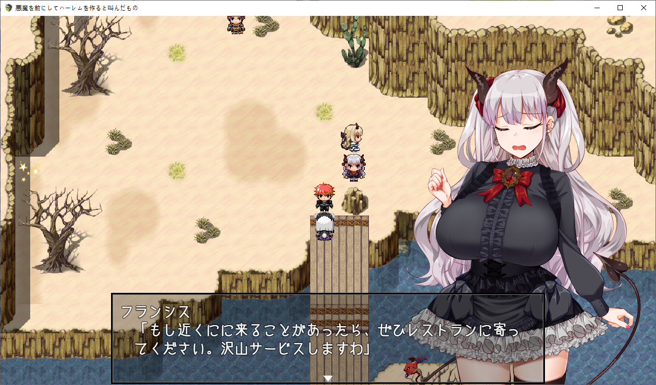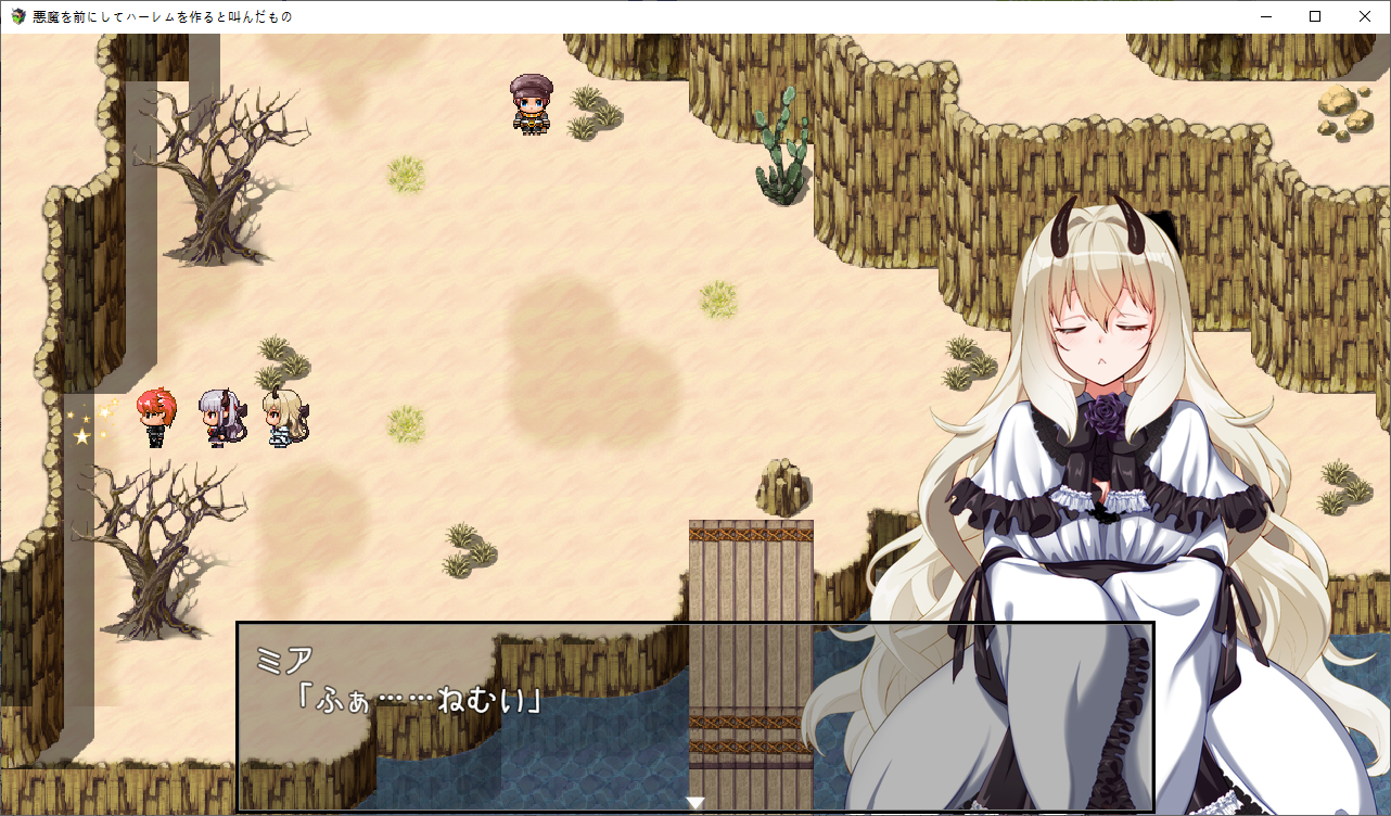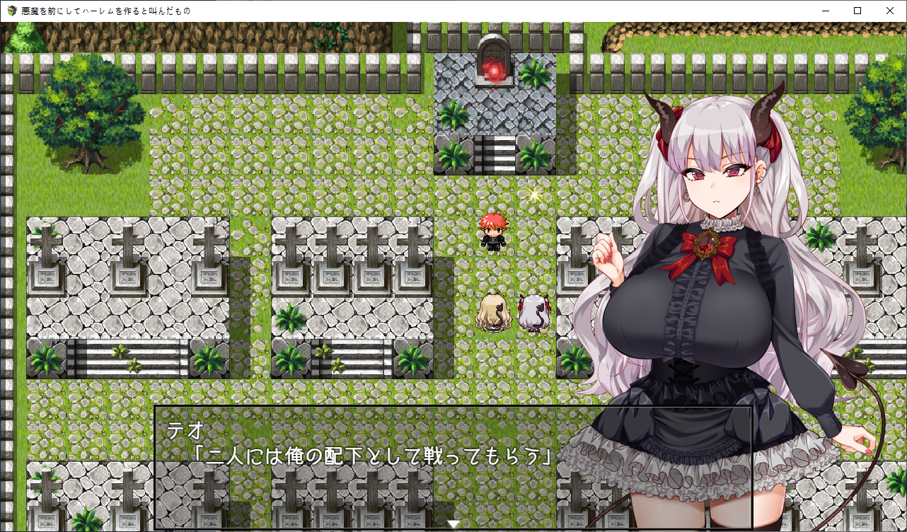 둘을 부하로 삼았습니다레이라와 주인공의 분위기가 심상치 않음을 느낀 미아주인공으로 오빠라고 부릅니다 오덤으로 뭔가를 주워갑니다또한 이때부터 선두의 캐릭의 일러가 나오고 테오가 선두일 경우 두번째의 캐릭터의 일러가 나옵니다스토리가 진행되면 개별 이벤트도 볼 수 있습니다미아가 정식으로 파티원이 되었습니다패배이벤트도 선두의 캐릭으로 나옵니다스킬은 없습니다돌아가면 로즈쪽의 이벤트가 나옵니다이미 레이라는 먹히고 있습니다바도크 결계가 누군가의 공격을 받고 있습니다결계가 지켜지기만 한다면 성은 무적과 가깝기 때문에 로즈가 직접 확인하러 갑니다제 2장미아의 능력은잠금을 해제하는 마법입니다개꿀인데보통 별건 없습니다이야기를 하고신마법을 배울 예정도 있습니다일단 성으로 가보자고 합니다개별이벤트도 구경어릴적은 첫사랑 이야기를 합니다커플한정 캠페인이 있는데오이런거도 신마법을 주네요방에서 느긋하게 쉬면히로인을 데려가서 놀 수 있습니다스텟이 오르더군요성쪽으로 가보면당연하지만 만나지 못합니다짜피 로즈는 여기에 없습니다위치까지 알려주네요반짝반짝성희롱을 하시는 테오이분은?변심하고 착하게 살거라고 하네요상자도 있는데별건 없습니다악마를 컨트롤 하는건 불가능하단걸 알아차렸군요 나중보면 이사람도 이용당하고 있을 뿐이였습니다아래로 갈 수 있고템도 줍줍하고이걸 타고 가야 합니다반짝가게에는 아무도 없고오른쪽은 못갑니다열차나 탑시다용사는 무료입니다역장이 쓰러져 있는데배가 아프다고 합니다아까 갔던 가게로 가서케이크를 훔쳐서주면 낫습니다...열차타고 와서여기는 수속성으로 공격하라고 합니다여자가 쓰러져 있는데아까 가게의 주인이군요일단 구해줬으니 서비스를 해준다고 합니다가게가 이제 오픈되는 군요우리가 찾는 길은 여기로 가면 된다고 합니다졸리신 미아이곳저곳 템을 가져가고동굴도 가져갑시다보통 별건 없고이건 챙겨줍시다이건 쓸모 없습니다돌도 줍고더 가다보면또 만났네친절히 약점도 바꿔서 왔습니다왕국군 부대가 오니 악마들은 잠시 피난하고소멸용사에 대한 이야기를 합니다자기들을 강한 동료라고 생각하고 있어 기쁜 레이라호감도가 약간 있긴 하군요미아의 이벤트도 생기고마을에 도착수도원에 가면 정보를 얻을 수 있을거라고 합니다뭐 보통 악마를 무서워 합니다이분은 여기 또 있군요고문서를 찾고 있습니다제대로된 민가가 하나 뿐이긴 합니다의뢰자가 여왕폐하인걸 보아하니 왕국에 관련된 사람인가 보군요여기 적들은 화상공격을 하나봅니다반짝이도 줍고수도원에 가기전에일단 한번 귀환을 합시다