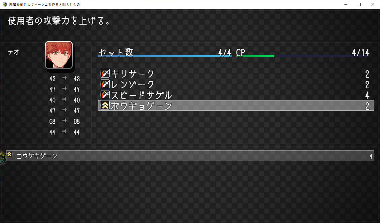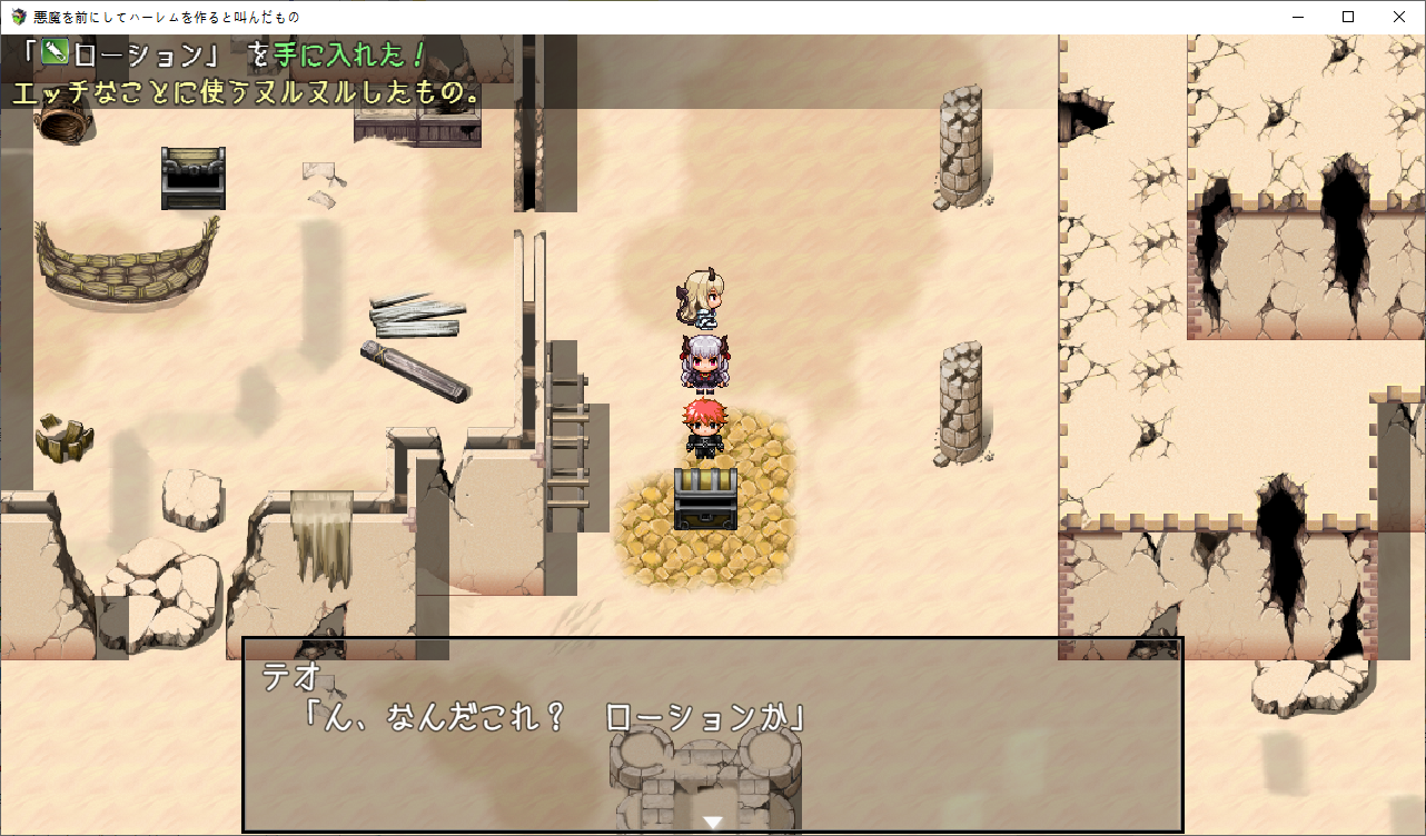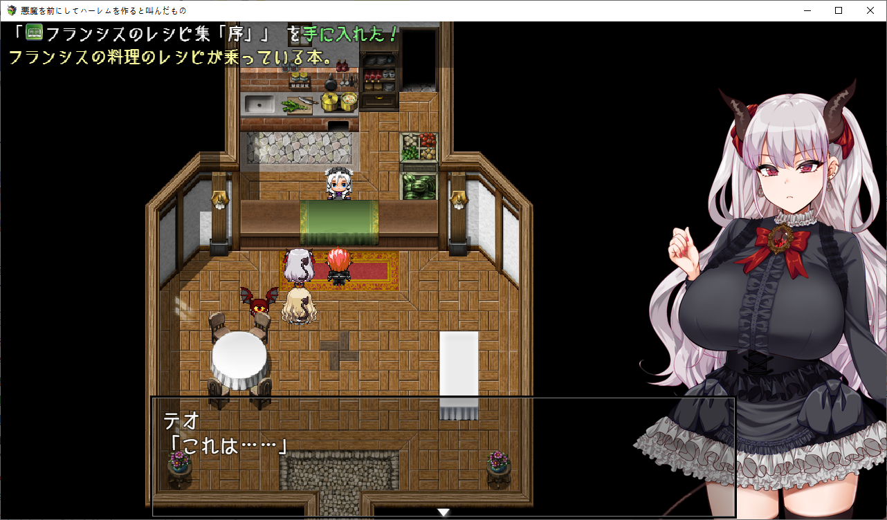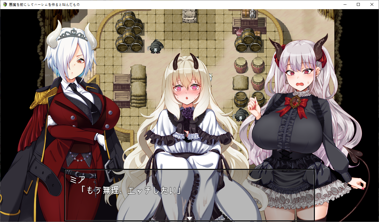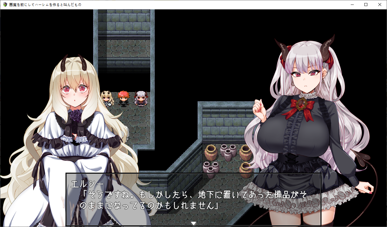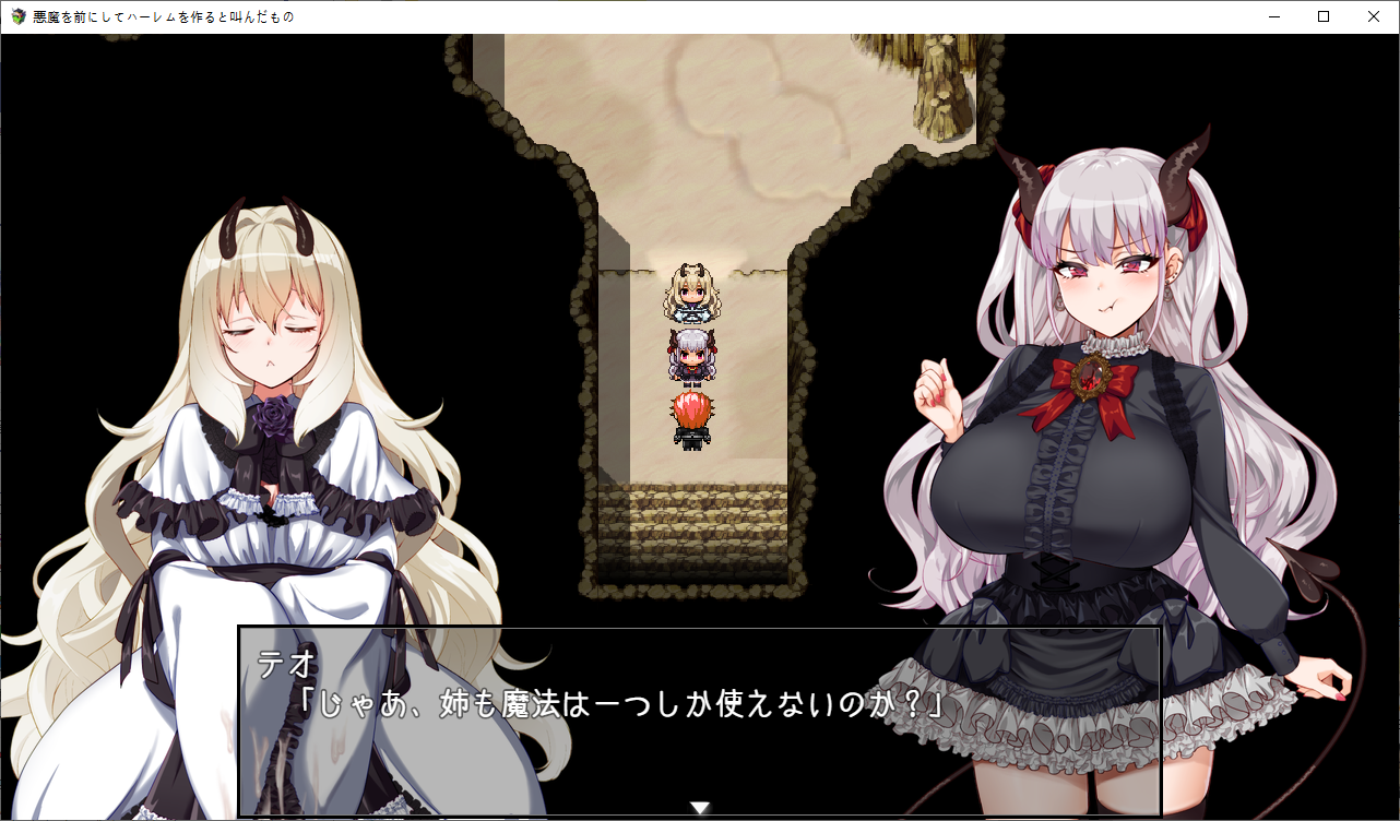 돌아와서 이벤트를 봅시다착실히 호감도를 쌓아가는 테오커엽이상한 소설을 즐겨 읽는 미아의외로 지상의 소설은 지옥에도 잘 팔린다고 합니다쓰담쓰담도 해줍시다부활마법을 얻는데 쓸일은 없더군요템도 좀 사주고앞에걸 사야지 뒤에게 나오는 형식이더군요보통 2갠 필드에서 주을 수 있고 2갠 사야합니다스킬도 팝니다레스토랑은레서피가 있어야 만들 수 있습니다메뉴얼적인 인간이라 레서피가 없으면 못만든다고 하네요다른 책들은 잃어버려서 찾게되면 달라고 합니다그냥 조합이더군요다시 돌아와서들어가면 수상쩍은 수녀가 있습니다마력이 충만한 지하공간에 결계가 있지 않을까 생각합니다예전에 쓰던 수도원이 하나 있다고 합니다뭔갈 마시고 발정이 납니다덤으로 마법도 얻습니다성수를 마시면 나을거라고 합니다진짜라면 썩지는 않는다는데 악마가 성수를 마시나위에 올라가보면 모두 잠에 빠져 있는데 암만봐도 수상쩍습니다여기가 생각보다 넓다고 하네요이곳저곳 탐험해 봅시다 길자체는 오른쪽 아래입니다템도 훔치고돌도 줍고오아시스 쪽으로 갑시다쓰레기와기사급 악마가 보물을 막고 있습니다생각보다 세더군요하는김에 패배씬을 봤습니다키랏오른쪽으로 가면폐허가 있고포션도 하나줍고여기서 쓸 수 있습니다목적지는 여기입니다여기까지 어캐옴?이쯤되니 테오도 수상쩍게 생각합니다아래쪽에 에드워드가 있던데말을 거니 돌연 수면상태에 빠졌다는데 암만봐도 수상하네요일단 올라가서나머지 템들을 회수했습니다다시 돌아와서여긴 아무것도 없고더 안쪽으로 가서지하로 가보자는데길이 막혀있습니다일부러 미네요다행히 아래는 모래라서 살았습니다템을 훔치고저기 뭔가 있어보이는데눈앞에 두고 그걸 못찾네템을 가져갑시다돌도 줍고아래에선이상한 정령이 있습니다돈을 주긴 싫으니 키스합시다여기서 언니에 대해 물어보는데 사실 언니도 마법을 하나도 못쓴다고 합니다더 가면암만봐도 수상한 상자가 있고역시나테오도 눈치챕니다초반에 개털리던 모습과는 달리 은근 세졌군요뭐 이런저런 떡밥은 많았습니다악마와 같이 사람도 죽일려고 했는데훼이크할파스의 가문도 노리고 있는 악마입니다언니도 위험할거라고 하지만이페스라는 악마가 연관되어 있나 보군요대충 권력전쟁인가 봅니다안쪽으로 들어가면이미 상황은 종료되어 있군요이제 이 남자를 공격하려는데이와중 미아가 발정나서 상황을 악화시킵니다앗쿠로군과 싸웁시다생각보다 많이 강해졌군요미아는 성수를 먹고 나았습니다대신 배아 아픕니다로즈가 동료가 됩니다