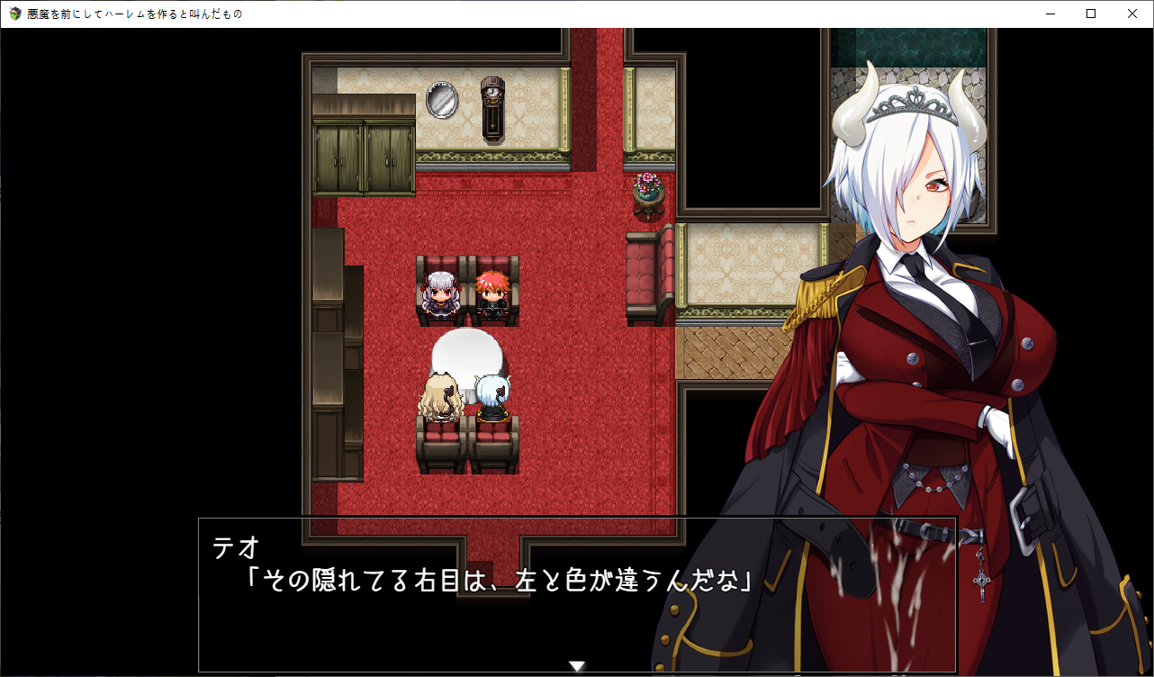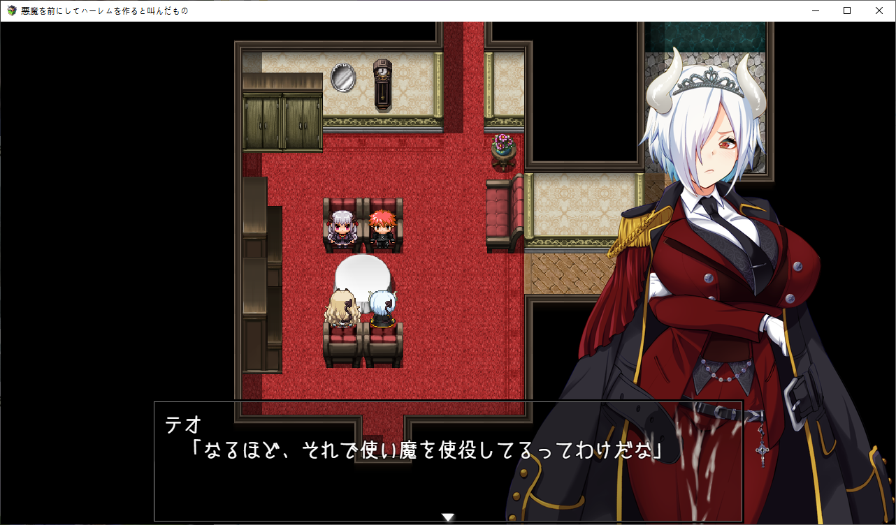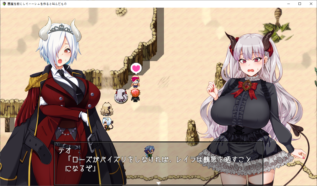 이제 통성명을 합니다그리고 레이라가 테오에 묶여있단 것도 알려줍니다하렘이 되어서 좋아하는 테오아무도 좋아하지 않으니 하렘은 아니라고 지적합니다아무튼 하렘이야이분도 이상태에서 용케 군단장이 되었네요오 여기에 천구가 묻혀있다고 합니다푸는 방법이 에로게 답네요레이라에게 부탁해서 하려고 하지만로즈가 끼어듭니다어짜피 명령할거니 거절하는거도 귀찮아합니다로즈가 대신하려고 합니다마법을 배웁니다혈족이 혈족이나 보니 자매 죄다 야한 부탁은 거절을 잘 못합니다겨우 1골드 얻습니다여긴 아직까지 쓰레기고이벤트도 보고환금용 아이템들을 좀 팔았습니다쓰레기는 지금보니 효과가 제각각인데한개만 이상한게 있군요돌아오면 뭔 마법진이 왕창 있는데응 니작전 실패야지금 부를려는 왕족악마라면 인류에게 질 일은 없다고 하지만자신의 출세길이 막힙니다해서 다른 악마를 대신 소환하려 합니다제물이 없어서 문제긴한데이미 따로 준비해놓았다고 합니다일단 성으로 가려고 하면못들어갑니다집을 나간사이 결계가 해킹당해 있습니다내부에 배신자들이 있습니다원래 작전과는 다른 사람을 부를려는건 반역행위라고 따집니다결국 이페스의 사리사욕 때문이군요문제는 제물의 준비인데갑자기 소멸용사가 튀어나옵니다정예부대를 제물로 바칠 생각이군요로즈가 없었다면 이자리는 이페스의 것이였군요엄청난 제물로 아스모다이가 지상에 강림합니다소환직후에는 힘의 대부분이 사라집니다자기는 놀고먹을 생각이군요성이 떠오르고뎃? 내 성힘이 돌아올때까지 하늘에서 버틸 생각입니다그럼 마력이 회복되기전에 빠르게 쓰러뜨릴 생각입니다아무리 평가가 나빠도 상대는 지옥의 왕입니다일단 이페스는 군사위반을 범했지때문에 처벌의 문제는 없습니다아스모다이는 좀 어중간 하긴 합니다만 여기는 용사가 있습니다오히려 아스모다이를 제물로 원래 부를려고 했든 바엘을 부를 생각입니다미아도 혼자선 돌아갈 수 없고또 다른 문제가 하늘에 떠있는 성에 어떻게 가냐군요결계도 해제해야 합니다우연히 두개 없애놨으니 남은건 두개입니다레이라의 경우 인간계로 온 뒤 힘을 회복하는데 2주가 걸렸습니다로즈는 이페스와 싸우기엔 당장 마력의 소비가 큽니다사역마도 주인공 때문에 잃어버렸습니다로즈의 능력을 물어보는데지성이 낮은 생물을 조종할 수 있습니다로즈와도 즐길 수 있습니다거기에 소멸용사도 성에 있었군요그건 모르겠고 로즈와 할 생각에 싱글벙글합니다제 3장호텔로 가기전에이벤트도 보고지옥에 떨어진 인간을 권속으로 삼을 수 있다고 하네요눈앞에 레이라를 두고 처음 만난 악마를 생각하는 테오레이라와도 사이가 꽤 좋아진걸 느낍니다아무튼 신마법로즈도 마법을 배웁시다드디어 작전회의작위는 같지만 실력은 이쪽이 우위라고 합니다부모님과 동기군요 자식뻘에게 처발린다니지상에서 인간과 만난걸 본 악마가 있다고 하는데 소멸용사 인가 보군요분명 뭔가 계약을 했을거라 생각합니다일단 다른 결계가 있는 남쪽으로 가자고 합니다이페스가 뭔갈 했을지도 모른다고 합니다눈을 가리고 있는건 오드아이라서 그런거라 하네요엄마쪽이 서큐버스군요 왠지 이런저런 부탁에 약하다고 했습니다왼쪽눈은 그래서 서큐버스의 매료의 힘이 담겨있고 이걸로 사역마를 사역하고 있습니다그래서 지능이 있는 생물에는 효과가 적다고 하네요이제 고유마법을 배웁니다여긴 아직 못가고저리가미아와 대화를 해봅시다용사가 악마 하날 붙잡아서 이런저런 정보를 알게 되었군요정령도 사주고여기도 잡아봅시다이미 의미는 없군요대충 다 둘러보았다면 아래로 내려갑시다
