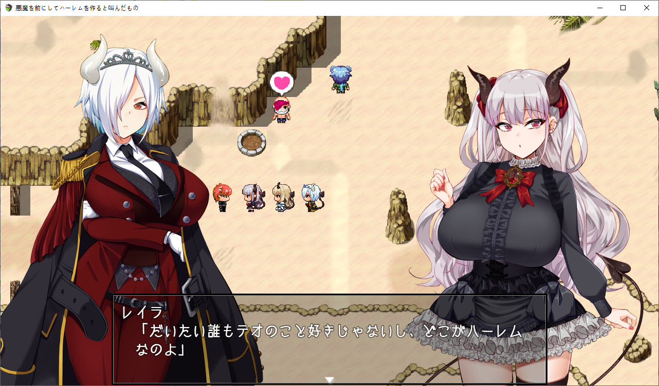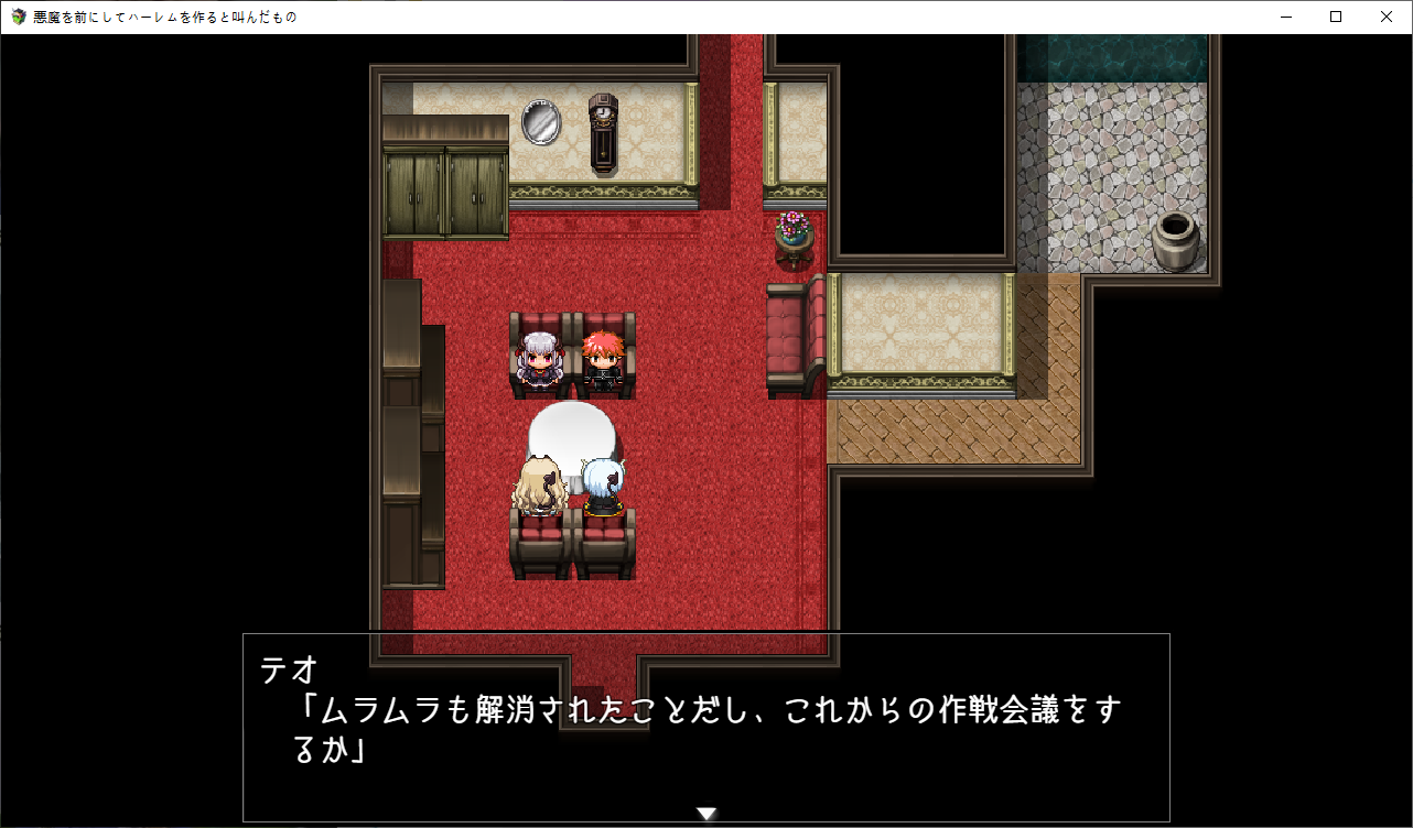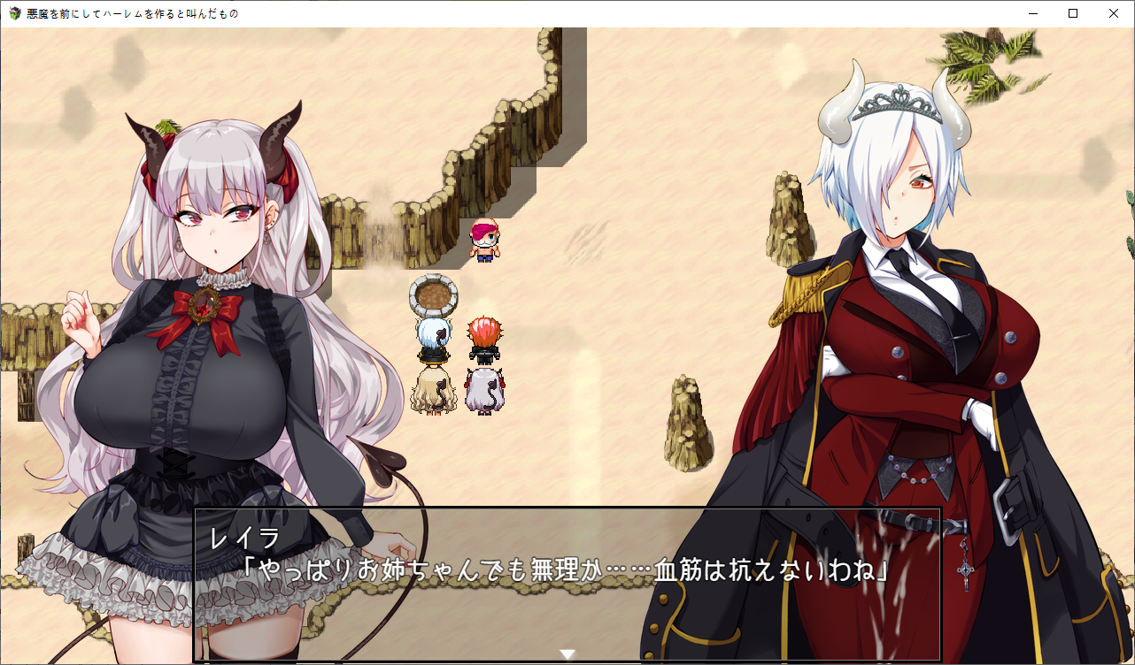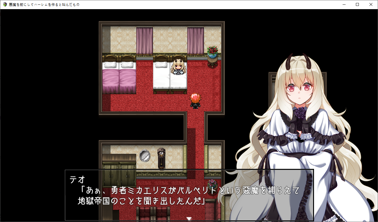 이제 통성명을 합니다그리고 레이라가 테오에 묶여있단 것도 알려줍니다하렘이 되어서 좋아하는 테오아무도 좋아하지 않으니 하렘은 아니라고 지적합니다아무튼 하렘이야이분도 이상태에서 용케 군단장이 되었네요오 여기에 천구가 묻혀있다고 합니다푸는 방법이 에로게 답네요레이라에게 부탁해서 하려고 하지만로즈가 끼어듭니다어짜피 명령할거니 거절하는거도 귀찮아합니다로즈가 대신하려고 합니다마법을 배웁니다혈족이 혈족이나 보니 자매 죄다 야한 부탁은 거절을 잘 못합니다겨우 1골드 얻습니다여긴 아직까지 쓰레기고이벤트도 보고환금용 아이템들을 좀 팔았습니다쓰레기는 지금보니 효과가 제각각인데한개만 이상한게 있군요돌아오면 뭔 마법진이 왕창 있는데응 니작전 실패야지금 부를려는 왕족악마라면 인류에게 질 일은 없다고 하지만자신의 출세길이 막힙니다해서 다른 악마를 대신 소환하려 합니다제물이 없어서 문제긴한데이미 따로 준비해놓았다고 합니다일단 성으로 가려고 하면못들어갑니다집을 나간사이 결계가 해킹당해 있습니다내부에 배신자들이 있습니다원래 작전과는 다른 사람을 부를려는건 반역행위라고 따집니다결국 이페스의 사리사욕 때문이군요문제는 제물의 준비인데갑자기 소멸용사가 튀어나옵니다정예부대를 제물로 바칠 생각이군요로즈가 없었다면 이자리는 이페스의 것이였군요엄청난 제물로 아스모다이가 지상에 강림합니다소환직후에는 힘의 대부분이 사라집니다자기는 놀고먹을 생각이군요성이 떠오르고뎃? 내 성힘이 돌아올때까지 하늘에서 버틸 생각입니다그럼 마력이 회복되기전에 빠르게 쓰러뜨릴 생각입니다아무리 평가가 나빠도 상대는 지옥의 왕입니다일단 이페스는 군사위반을 범했지때문에 처벌의 문제는 없습니다아스모다이는 좀 어중간 하긴 합니다만 여기는 용사가 있습니다오히려 아스모다이를 제물로 원래 부를려고 했든 바엘을 부를 생각입니다미아도 혼자선 돌아갈 수 없고또 다른 문제가 하늘에 떠있는 성에 어떻게 가냐군요결계도 해제해야 합니다우연히 두개 없애놨으니 남은건 두개입니다레이라의 경우 인간계로 온 뒤 힘을 회복하는데 2주가 걸렸습니다로즈는 이페스와 싸우기엔 당장 마력의 소비가 큽니다사역마도 주인공 때문에 잃어버렸습니다로즈의 능력을 물어보는데지성이 낮은 생물을 조종할 수 있습니다로즈와도 즐길 수 있습니다거기에 소멸용사도 성에 있었군요그건 모르겠고 로즈와 할 생각에 싱글벙글합니다제 3장호텔로 가기전에이벤트도 보고지옥에 떨어진 인간을 권속으로 삼을 수 있다고 하네요눈앞에 레이라를 두고 처음 만난 악마를 생각하는 테오레이라와도 사이가 꽤 좋아진걸 느낍니다아무튼 신마법로즈도 마법을 배웁시다드디어 작전회의작위는 같지만 실력은 이쪽이 우위라고 합니다부모님과 동기군요 자식뻘에게 처발린다니지상에서 인간과 만난걸 본 악마가 있다고 하는데 소멸용사 인가 보군요분명 뭔가 계약을 했을거라 생각합니다일단 다른 결계가 있는 남쪽으로 가자고 합니다이페스가 뭔갈 했을지도 모른다고 합니다눈을 가리고 있는건 오드아이라서 그런거라 하네요엄마쪽이 서큐버스군요 왠지 이런저런 부탁에 약하다고 했습니다왼쪽눈은 그래서 서큐버스의 매료의 힘이 담겨있고 이걸로 사역마를 사역하고 있습니다그래서 지능이 있는 생물에는 효과가 적다고 하네요이제 고유마법을 배웁니다여긴 아직 못가고저리가미아와 대화를 해봅시다용사가 악마 하날 붙잡아서 이런저런 정보를 알게 되었군요정령도 사주고여기도 잡아봅시다이미 의미는 없군요대충 다 둘러보았다면 아래로 내려갑시다