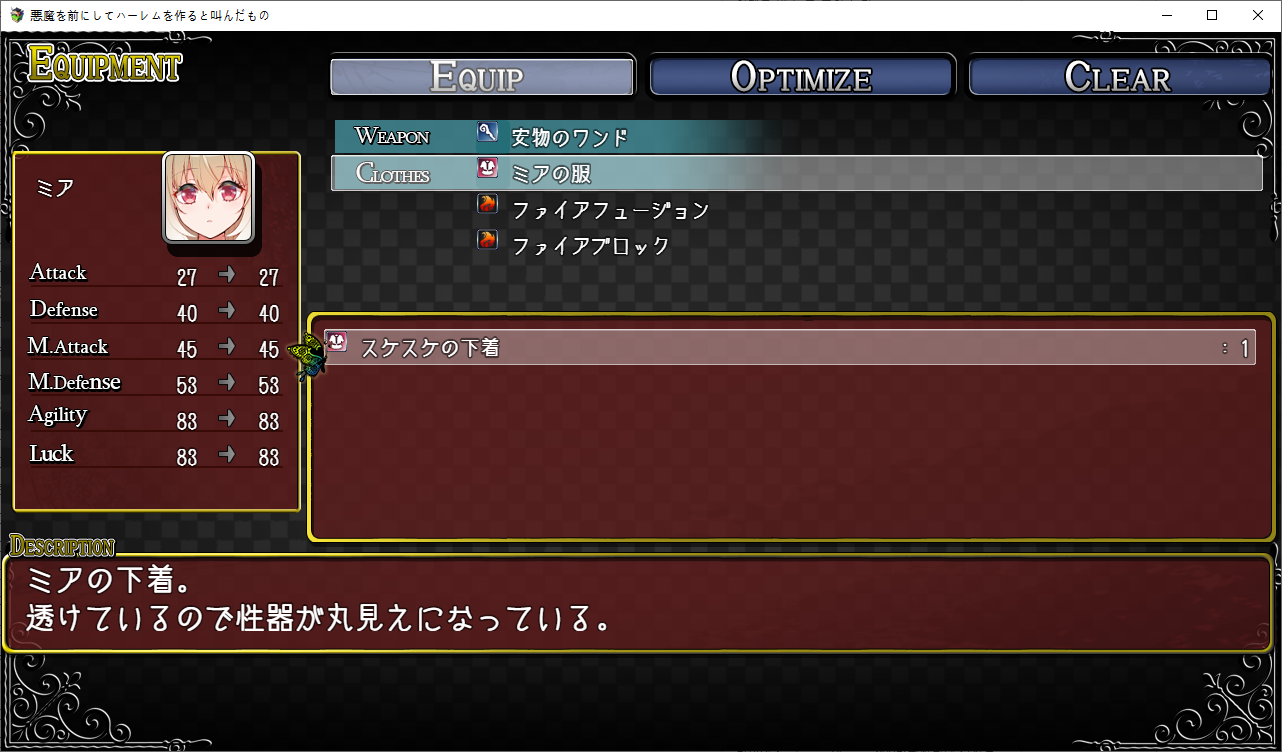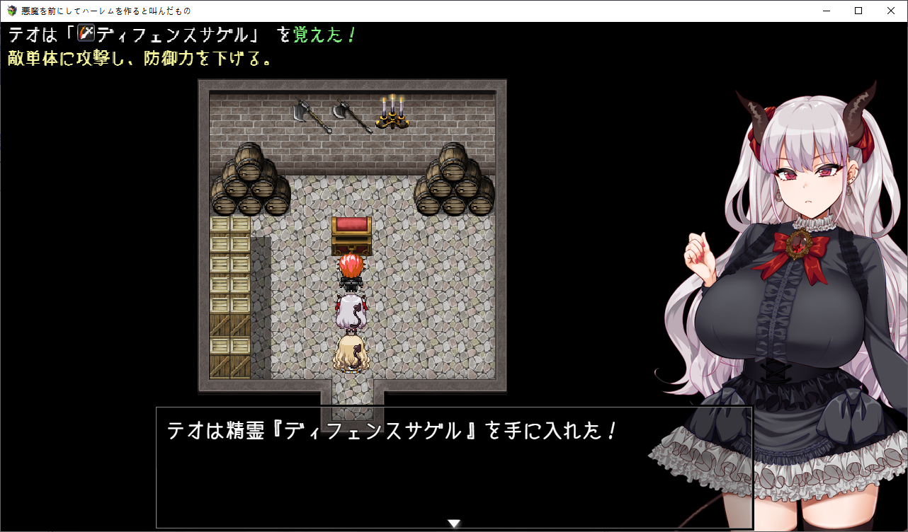 여기는 암속성으로 응전하라고 합니다바로 주워서 껴줍시다잘 주워두고누군가 있는데에드워드군요천구가 있다고 하는데진짜야 구라야보통 물가 근처에 발견된다고 하는데하필 길 두개 사이에서 다른 길로 들어왔습니다대신 속옷을 찾았군요입어줭갈아 입을 수 있습니다다른템만 한참줍고사실 반대편이란걸 알아차렸습니다바로 옆이잖아악마를 찍은 사신첩이 돌아다니는 수상한 동네레서피를 왜 이녀석이 가지고 있을까요여튼 길을 더 가니 예배당이 나왔습니다동쪽은 더 못가네요악마는 없는데여기를 지키고 있을 무기군이 없습니다커여운 고양이 악마라고 합니다기사단에 들어오기 전부터 기르고 있었습니다앞에 마법진이 있으니 가보자고 합니다귀여운 고양이들이 많네요회복은 유료입니다정령을 줍고서큐버스가 가로막고 있습니다메스가키 서큐버스네요이상한 방이 있는데가운데로 가니 서큐가 있고퀴즈를 풀어야 한다고 합니다여기서 제일 성욕이 강한 서큐를 찾으라고 하네요성욕이 강한 서큐는 마력도 강하기 때문에 우리들을 올바른 길로 옮겨 줄 수 있다고 합니다물어봅시다혼자서는 거의 안한다고 하니 얜거 같네요다른애들도 시시한 질문들이 이어집니다오로즈는 백이 좋습니다첫상대는 학교의 선생이라그 사람이 지금의 남편이라고 합니다여튼 가운데가 정답이니 골라줍시다오메데토의외로 아무나고는 안하는 테오3층으로 출발여기는 돼지들을 옮겨서 스위치를 눌러야 합니다거 귀찮네템들도 먹어줍시다버그인지 생겼다 말았다 하더군요여튼 다 하고 돌아오면 마법진이 생겨있습니다갸르르무기군입니다커엽?대충 때려서 제정신을 차리게 만듭시다냥말하는건 귀엽습니다이페스가 무언가 능력이 있을거라 생각합니다 동료한테도 보통 능력에 대해 말해주진 않습니다마석은 사라졌습니다다행히 부하가 마석을 옮기는걸 봤습니다바로 옆으로 옮겼군요미아도 레이라도 많이 강해져서 기쁜 언니개별이벤트도 개방됩니다돌도 줍고은근 슬쩍 성희롱을 하는 테오템도 줍고나중에 쓸 수 있습니다또 막는 쟈스파거 귀찮네이쪽 악마들이 작위를 가진 악마란걸 이제야 눈치챕니다소멸용사도 등장뭔가 상태가 이상해보입니다일단 도망치고 소멸용사가 악마와 함께였단걸 알려줍시다사실 쟈스파는 소멸용사와 같은 동네에서 살았습니다예전엔 그런 성격이 아녔다고 하고 조종당하는 가능성도 열어둡니다조종도 그렇게 고등한 명령은 안되서 아닐거라고 생각합니다무기군이 뭔가 검은 감정이 용솟음 쳐서 이상해 졌다고 하니 그건가 봅니다아마 그게 이페스의 능력인가 봅니다능력도 얻고가기전에한번돌아가서 정비를 해봅시다더 좋은 회복템들을 조합할 수 있네요이벤트도 보고 다시 예배당으로 갑시다
