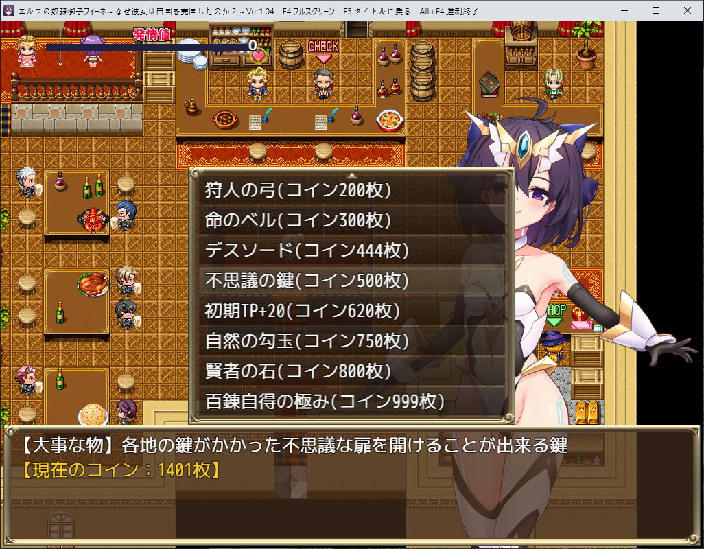 다음은 엘프의 보옥을 얻으러 숲으로 갑시다나무가 있는데최대 5회 템을 얻을 수 있고 앞에서 저장하고 극상의 과실이 나올떄까지 리세마라하는걸 추천합니다저기 뭔가 있네요가끔 상자에선 이상한게 튀어나오기도 합니다도착 패배해도 괜찮다는데개처럼 처발리지만 친절하게 전회복을 시켜주네요안쪽으로 가면 보스입니다쓰레기를 주네요안쪽에 보옥이 있습니다만 뭐가 이상합니다여튼 다음은 인간나라 위쪽의 물의 나라로 갑시다여기는이런저런 상태이상을 해제시켜주네요레벨업의 나무도 있습니다물의 나라로 갑시다인간쪽과 우호관계기 때문에 인간의 모습으로 돌아다닙시다합성실도 들러주고무난하게 괜찮으니 만들어서 들고갑시다아까먹은 이상한 템은 이런걸 만드는데 쓰이는 군요이곳저곳 둘러봤으면위로 갑시다수영복을 입어야 한다는 군요남성용입니다여튼 진입안쪽에서 왕과 대화를 하면 보옥자첸 그냥 줄려고 하는데무슨 해적에게 뺴앗깁니다해적(육지에있음)아지트를 둘러봅시다여기서 청색상자를 볼 수 있는데레서피를 얻을 수 있는 상자라고 합니다리젠은 안됩니다템을 줍고안쪽으로 갑시다인간족에게 사용할 비장의 수가 있다고 합니다시작하자마자 죽습니다리스가 구하러와주네요인간전용 무기라서 리스는 괜찮습니다엘프로 바꿔서 갑시다템은 따로 껴줘야 합니다잘가고축하를 위해 연회를 준비하는데마타타비가 포함되어 있기 떄문에 잘 피해야합니다취향껏 먹어주고 사막의 나라로 가면 됩니다동쪽으로여기는 동맹국이 아니네요댕댕이를 찾아주는 퀘스트어딘가의 던전에 있을거라고 합니다입장에는 코인이 필요합니다동쪽을 돌아다니면 누군가 있는데창관이나 카지노에서 벌 수 있다고 합니다다른 곳도 둘러보고이런 이상한 곳에합성실이 있습니다이쯤 돌아가서 과실을 줬는데스텟템을 주네요주점입장말을 하는걸 보니 국룰 사기겠네요대충 죽죽 넘어갑시다아무튼 집시다사기치네취향껏 해주고실력으로 갚아줍시다생각보다 라인업이 화려합니다경험치 증가라던가 많습니다적당히 바꿔주고50배팅하고세이브로드질로 돈을 벌어줍시다주작이 심하네한판에 꽤 법니다돈을 벌주고이건 구리고이게 사기입니다이거도 하나 사줍시다이거도 당장은 꽤 사기입니다이녀석이 미코였군요이녀석도 발키리 폼이 있네요는 필살기에 개털립니다