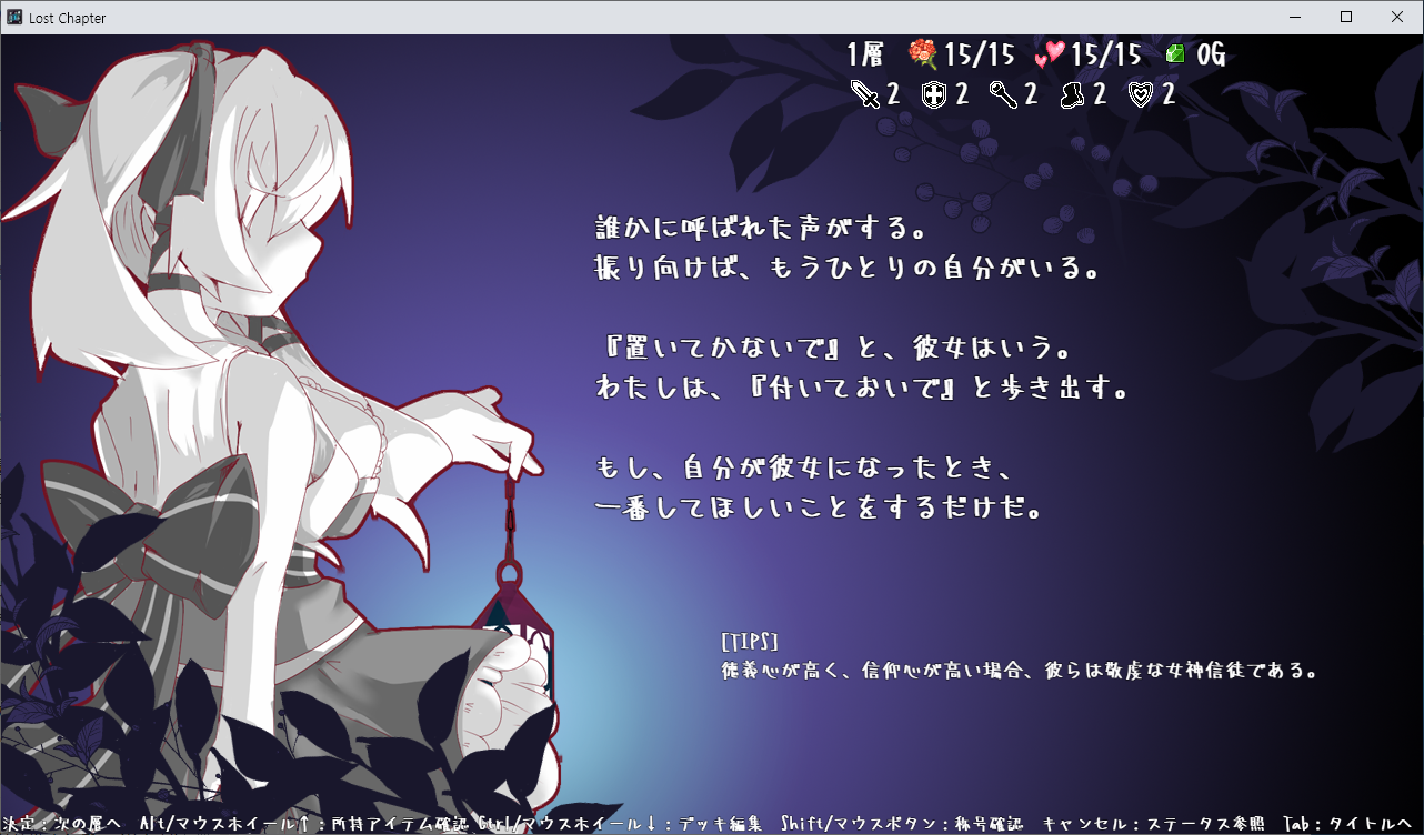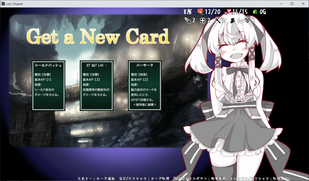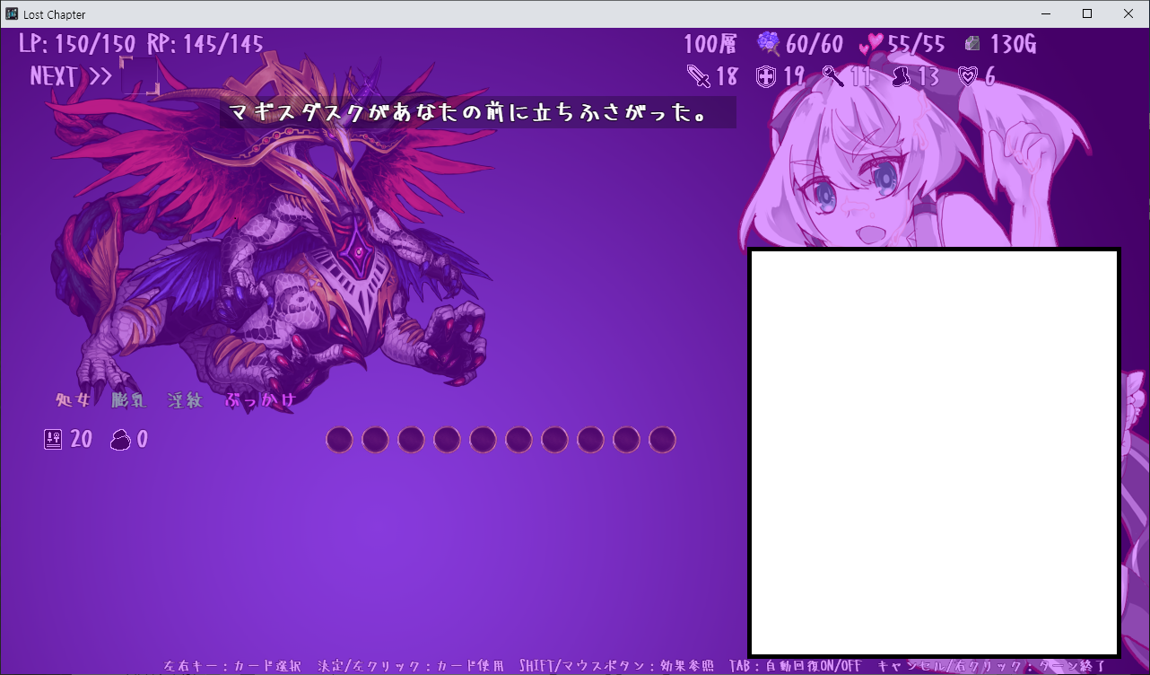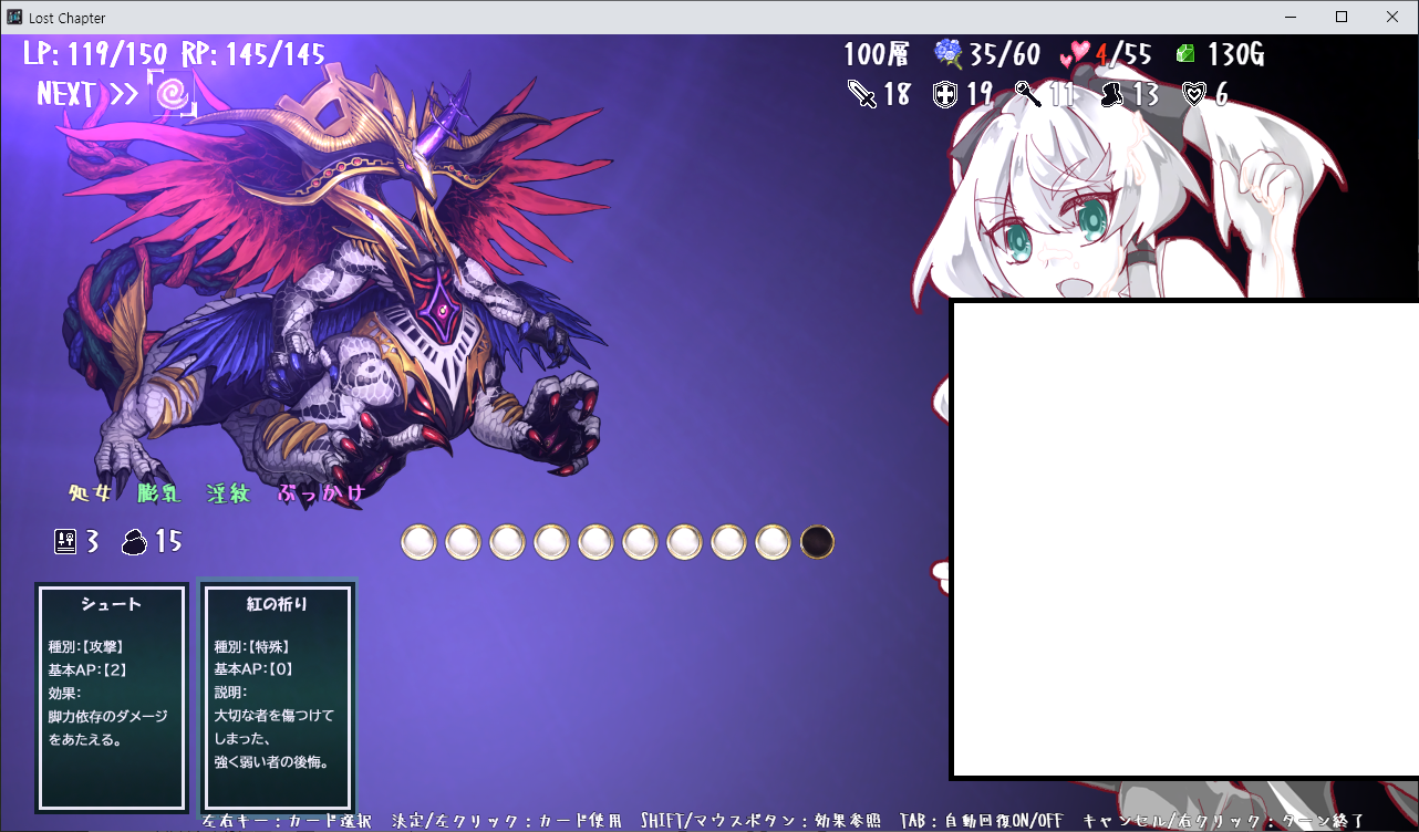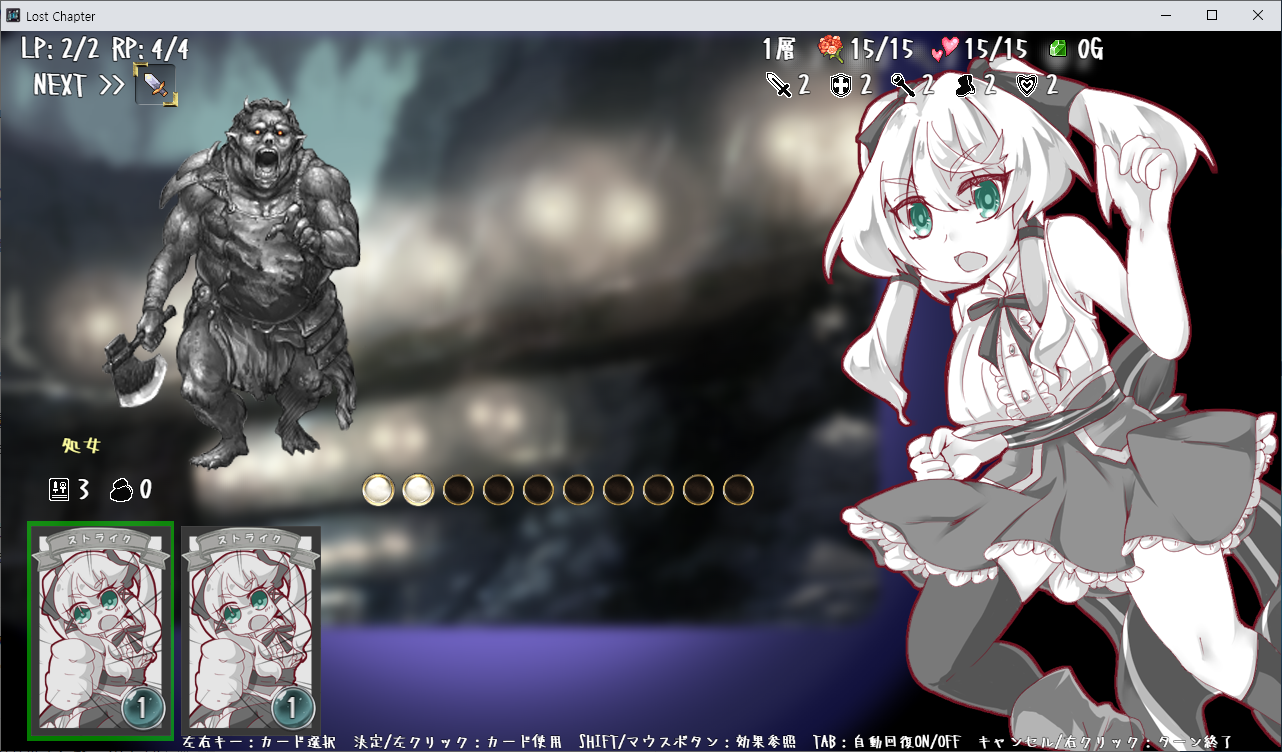 게임은 로그라이크 형식이며 LP가 0이 되면 게임오버