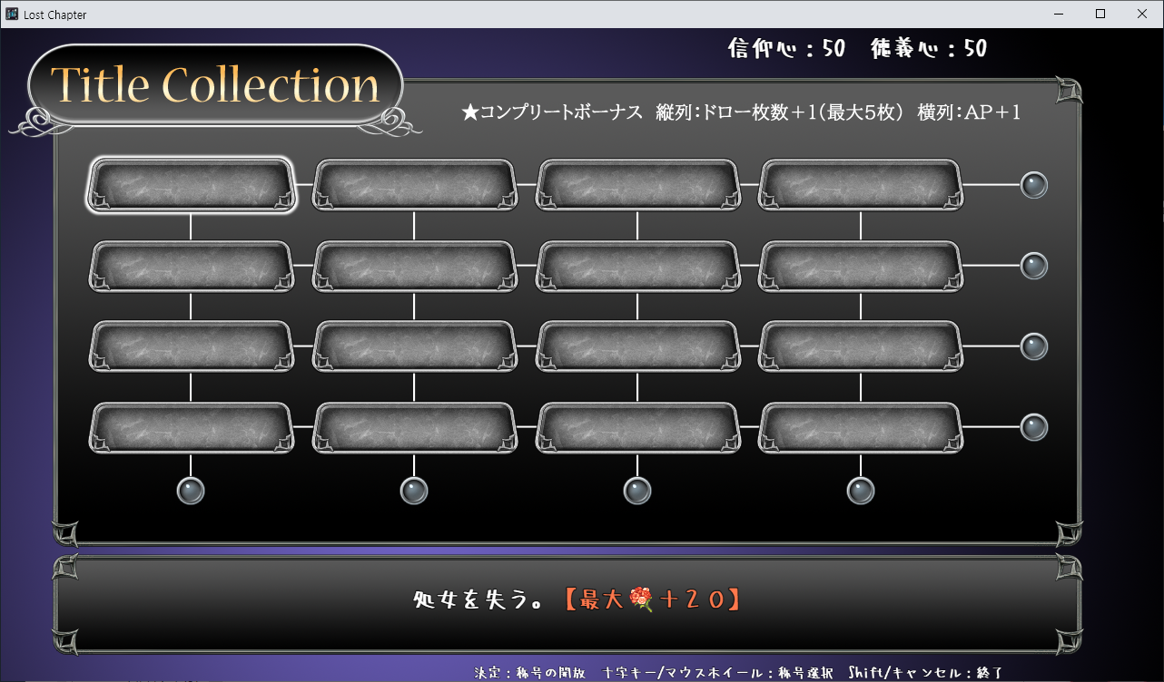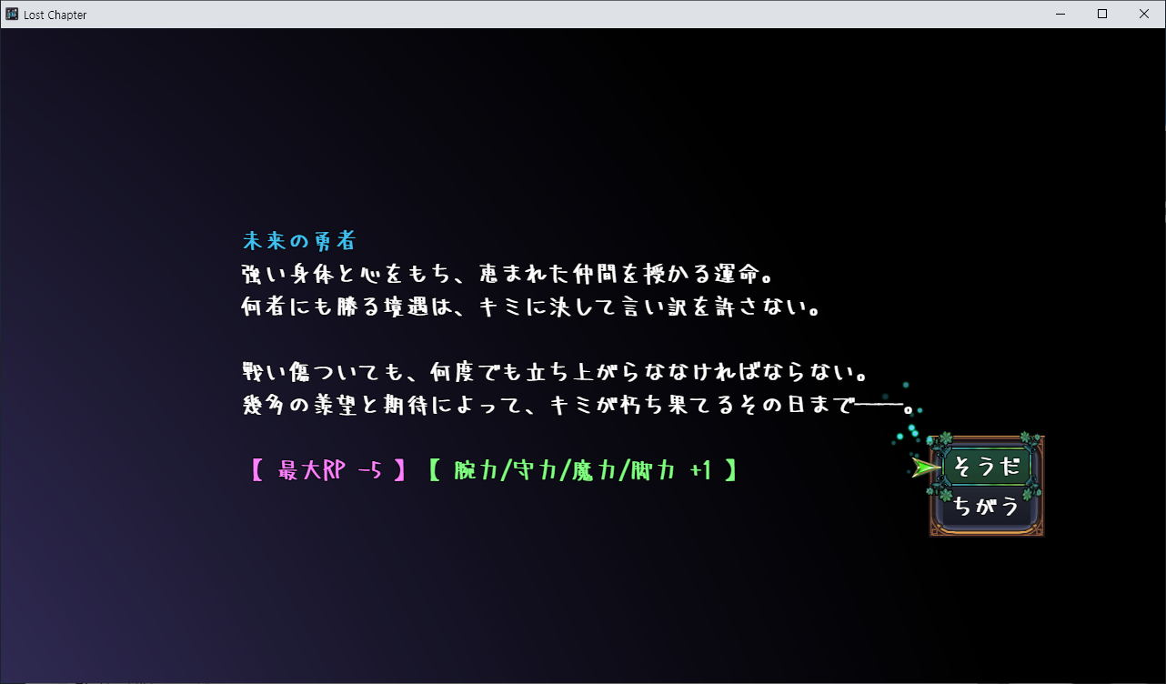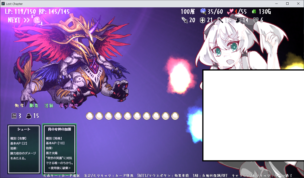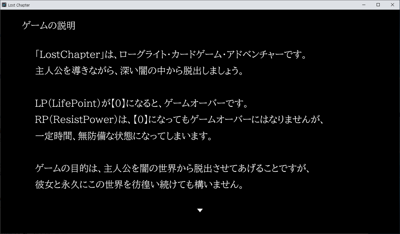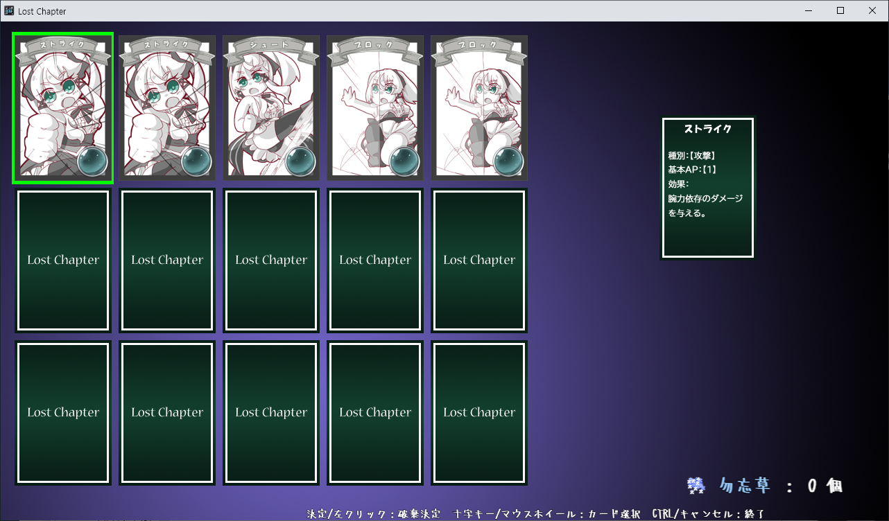 게임은 로그라이크 형식이며 LP가 0이 되면 게임오버