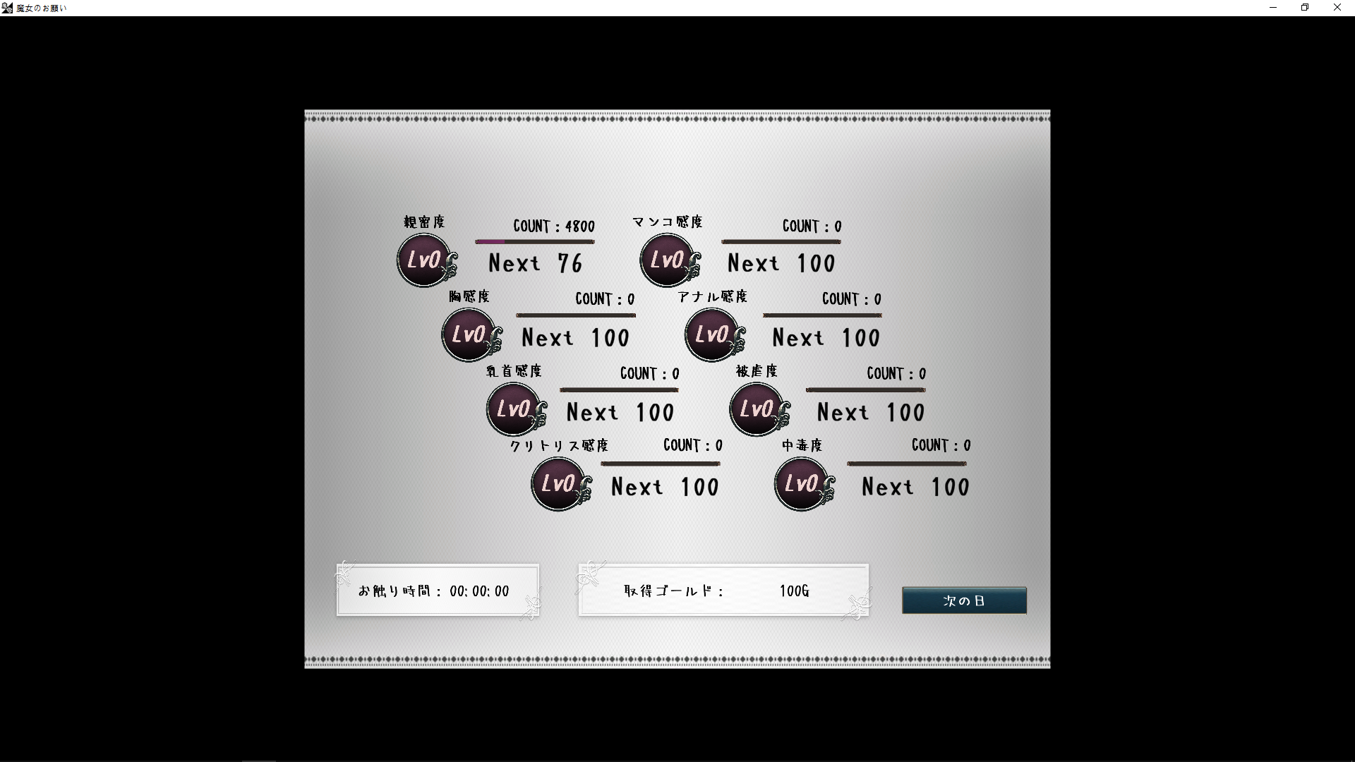 대화횟수나 밤일 횟수 등은 씬의 해방이나 엔딩에 영향을 줍니다