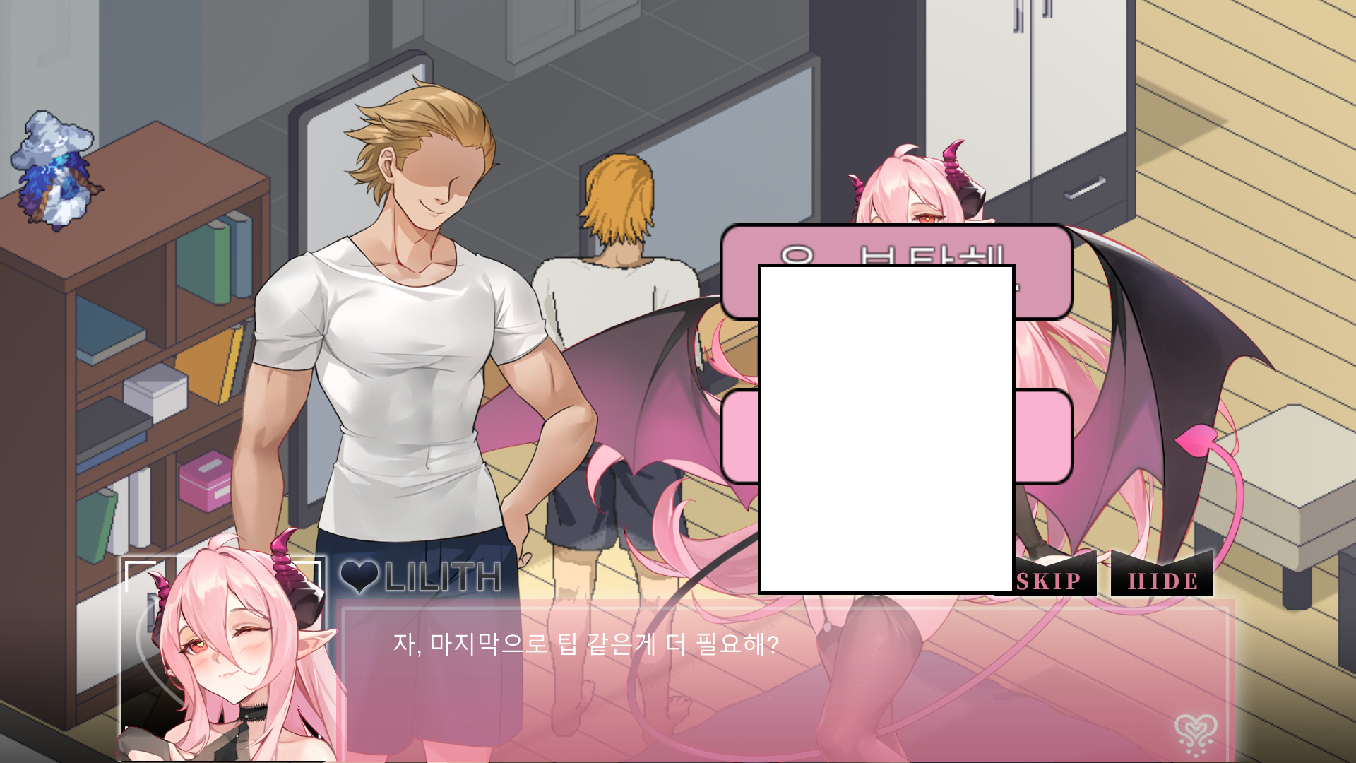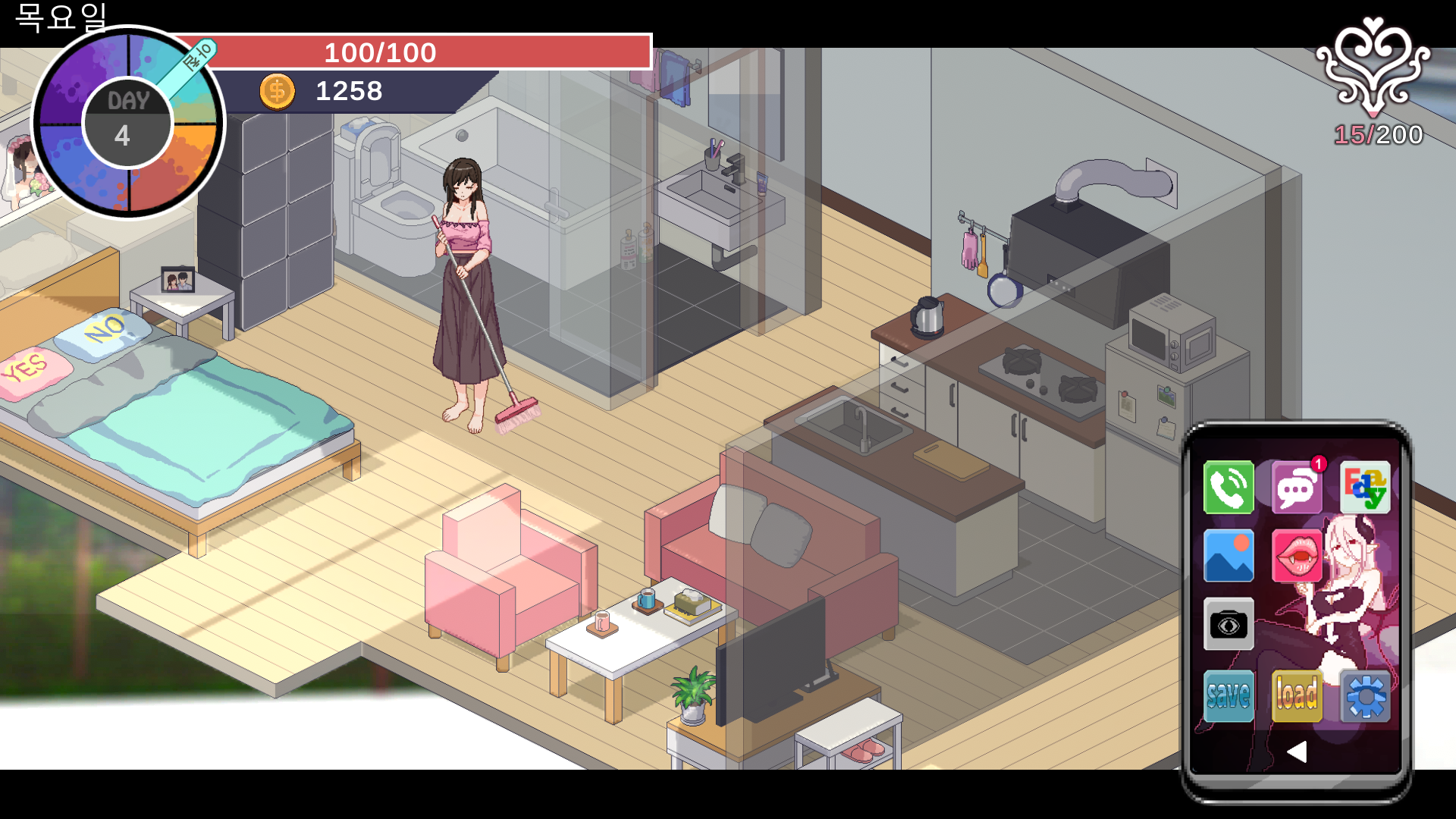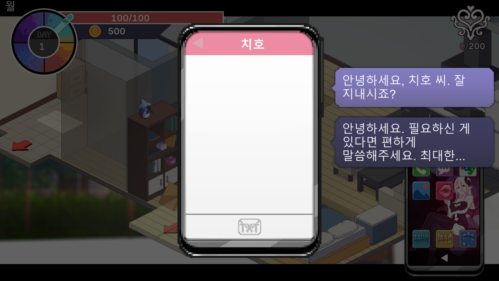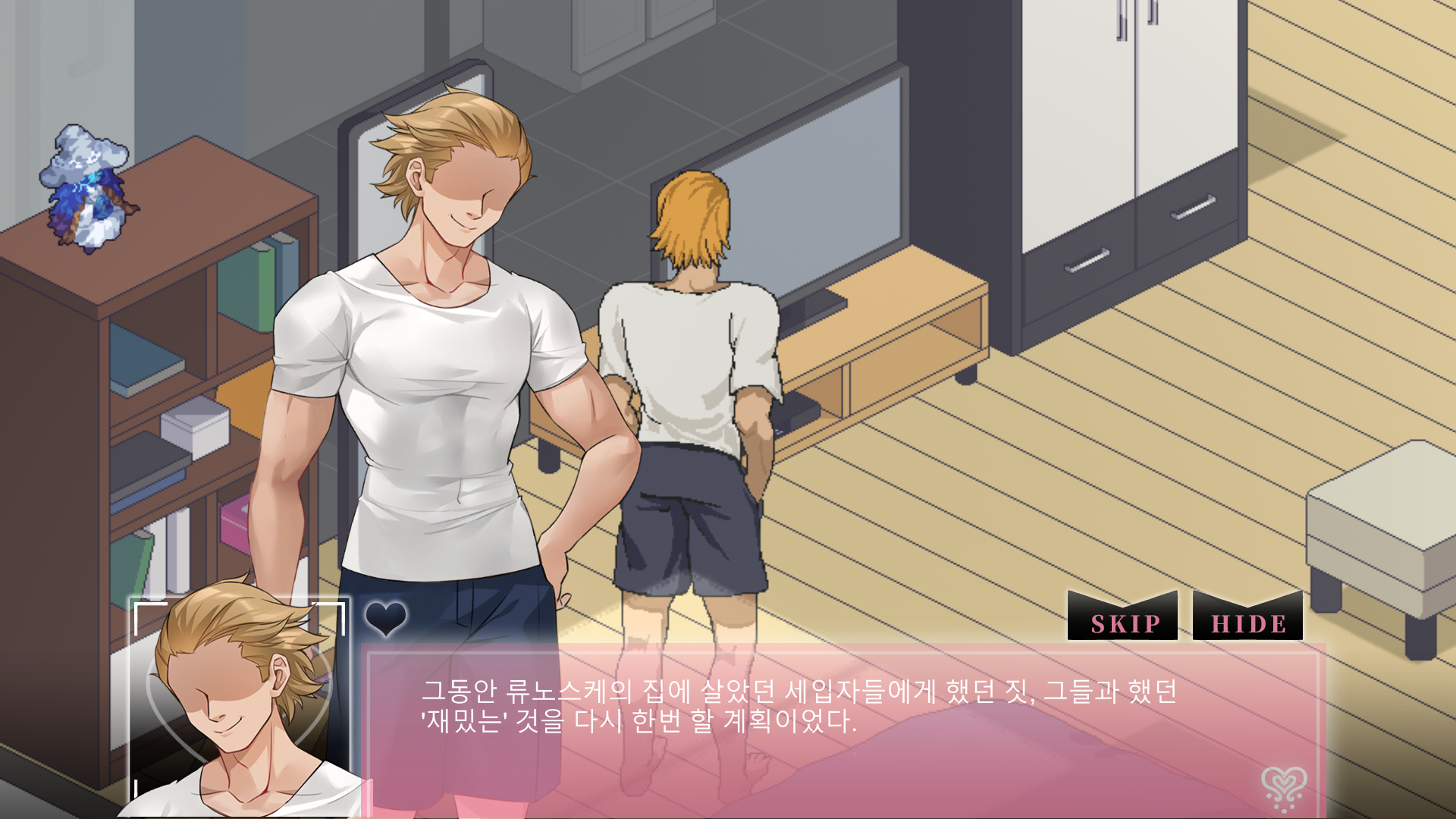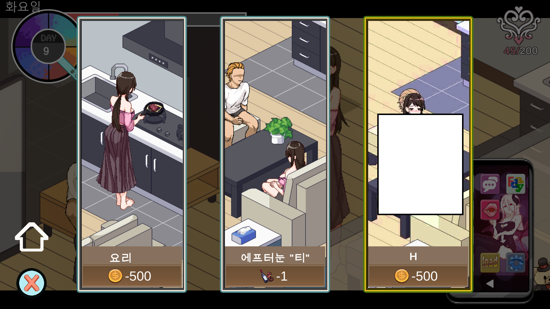 언어설정 잘 해두고돈도 많은 금태양입니다먹잇감 발견밑작업에 들어갑니다집안일을 도와주는 댓가로 월세를 받지 않습니다개꿀이능력도 있는 치트급 금태양이네요팁을 봅시다원작과 달리 시간제한이 있습니다레나인형도 있네요인형은 본편에서 리리스 인형으로 바뀌었더군요눈물은 사둡시다설명이 기네요다른거도 이것저것 살만 합니다응애 밥줘스킬들도 있네요메신저 기능도 있습니다ㅎㅇ순진한 녀석문자를 씹기도 하네요일이나 도와줘발코니도 있습니다일을 하거나 헬스장에서 체력을 늘릴 수 있습니다안되네요책같은건읽어주면 잡다한 효과가 있습니다이런거라던가이런게 있습니다 다만 최대치가 있기 때문에 많이 읽어도 의미는 없는거 같더군요낮부터 일을 하는데미니게임입니다뽈뽈뽈 날아갑시다고점을 어떻게 해서든 한번 찍어두는게 좋긴합니다야시장은 당장은 못가네요불러서요리를 시킵시다원작과 비슷한 구성인데바로만지면 의미가 없고 칭찬을 좀 해줘야 오르는거 같더군요다음부턴 놀아줍시다오이제부터 문신이 밝아집니다단계를 올려줍시다쇼타가 돈을 잘 벌어오지 못해서 어쩔 수 없이 일은 계속해야합니다월세가 공짜면 어쩔 수 없지다시와한국어로 해주세요차시간을 가져야 하는데저 템이 어딨지다른거나 열심히 샀습니다팁의 다음은 이제서야 봤네요캠이나 설치하죠화장실좀 볼게요캠이 설치가 되고오이제보니 위쪽에 템이 있더군요 누가 아래쪽부터 놔둬티타임이라지만 와인을 마십니다본편에는 아이콘이 좀 달라져 있네요 1 2 3순서로 눌러서 하트를 한칸씩 채우면 됩니다술게임도 하는데 가위바위보는 상대 마음의 색을 보고 맞게 내야합니다다시 진행일단은 밑작업을 해야합니다아내는 예스인데 남편은 계속 노군요계속 밑작업을 해주고열심히 일하네요더 높시다예문신은 점점 밝아지고 있습니다이제부턴 부스텟도 오르네요니아내 맛있더라다음은 밤에 전화리리스도 만족하네요이제 본격적인 NTR입니다이부분이 좀 어렵더군요새로운 성벽을 심어줘야 합니다이전엔 어떻게 해야 올리지 했는데 안걸리고 끝까지 한판을 해야 오르는거더군요이제부터 계획도 볼 수 있습니다야시장도 갈 수 있게 되네요
