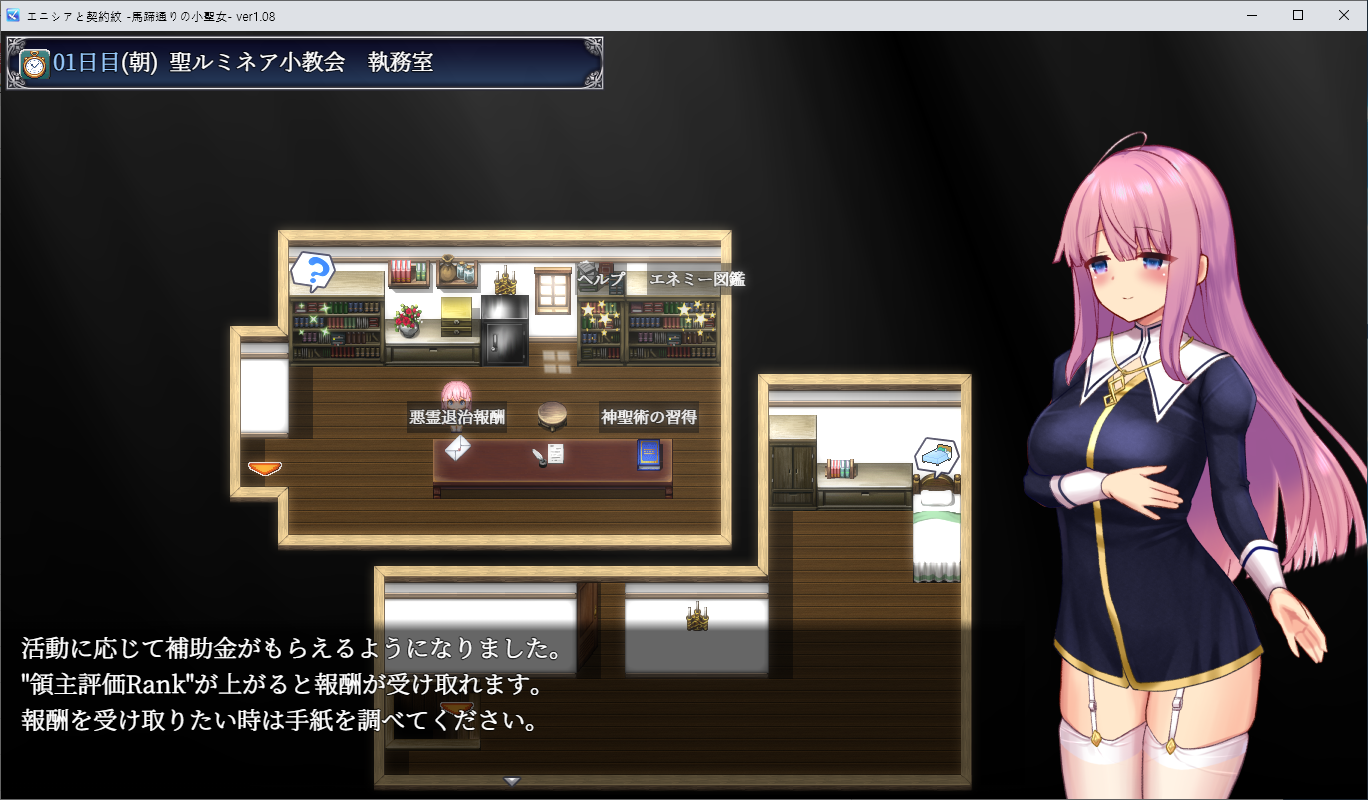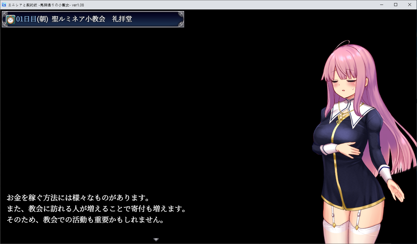 에니시아는 교회의 시스터로 일하고 있지만 교회의 세력도 약해지고 있고 교주고 죽게 되어 상황이 좋지 않습니다