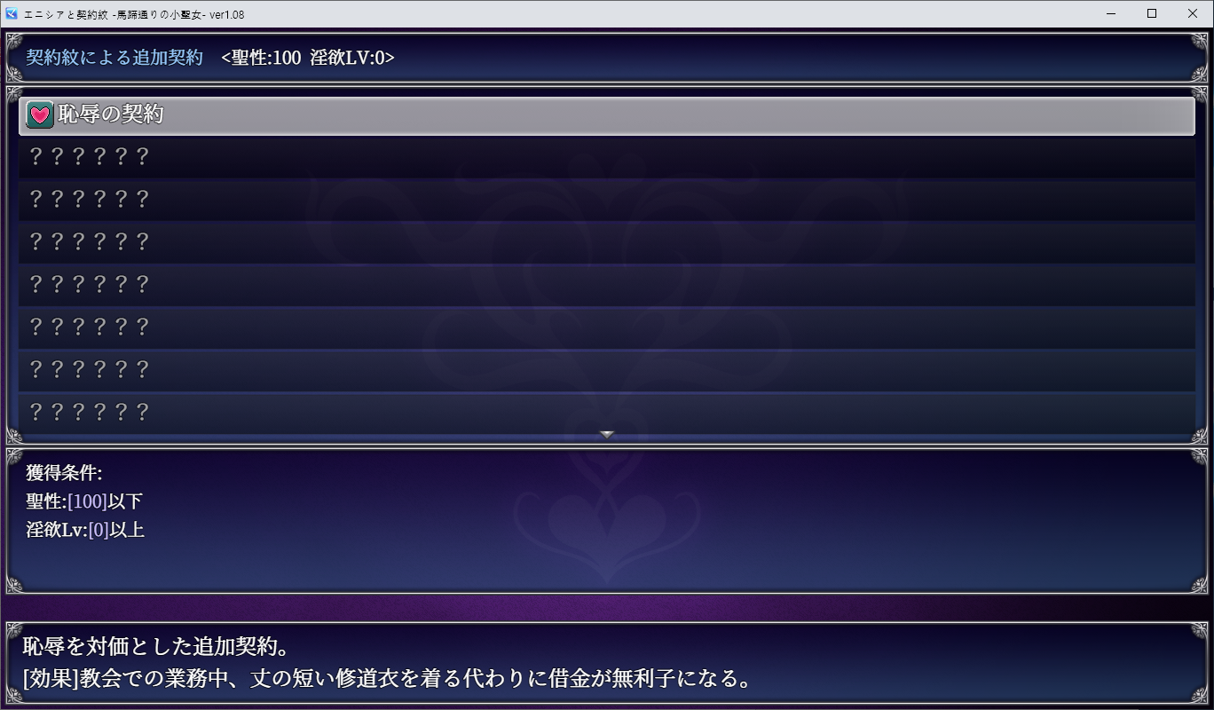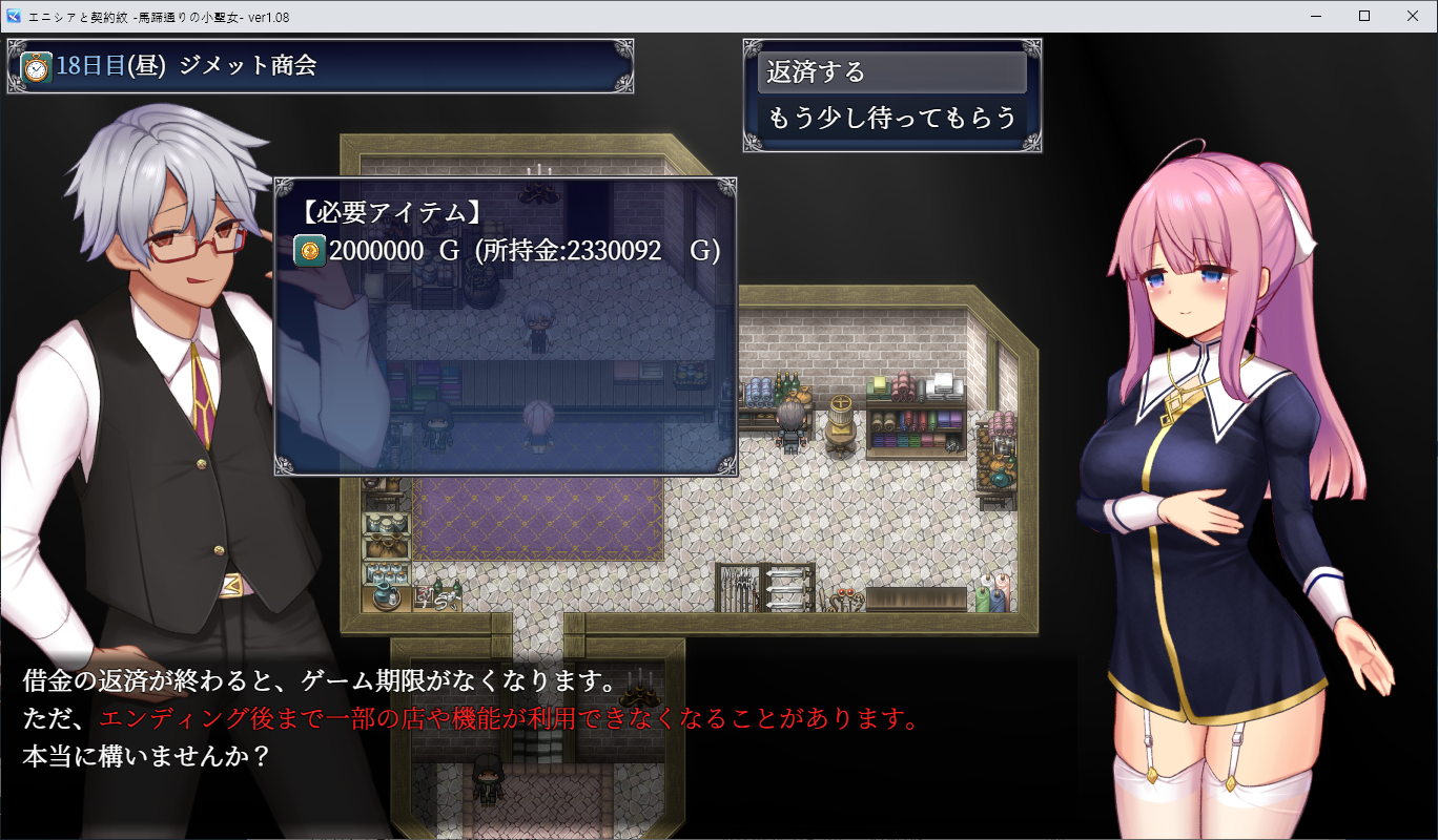 어쩔 수 없이 돈을 빌리게 되고 그 대가로 계약문을 새기게 됩니다체질이나 소질을 모아 에니시아를 강화할 수도 있습니다같이 고아원에 살았던 친구에게 부탁을 해보고 주점으로 가보라는 이야기를 듣습니다해서 주점에서 일을 시작하지만 돈은 턱없이 부족합니다여기서 추가계약을 맺어 이런저런 도움을 받을 수 있습니다이 계약은 단이 짧은 옷을 입는 대신 이자가 없어지는 효과를 얻습니다이후 추가계약은 보론에게 부탁하면 되고탐색자의 일도 알아보려고 합니다이것 외에도 이런저런 방법으로 돈을 벌거나 기부를 받거나 하면 됩니다