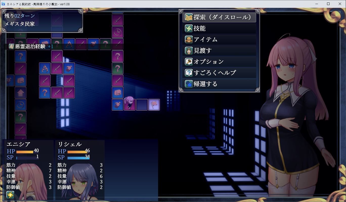 마을에 악령이 많아져서 정화의 의뢰를 해옵니다 꽤 난이도가 있으니 준비해서 가는걸 추천합니다기본적으로 교회에서 기부금을 받을 수 있으며 교회랭크에 비례해서 줍니다 솔직히 푼돈입니다교회렙은 신도들의 고민을 들어주면서 올릴 수 있습니다여기에선 하루마다 축복을 받을 수 있습니다 초반에는 골드 퀘스트 경험치 추가가 후반에는 레어확률업이 좋은거 같네요악령퇴치와 신성렙에 비례해서 보상을 얻을 수 있습니다표지판을 통해 숏컷이 가능합니다마을 곳곳에소 소재를 모아달라는 의뢰가 있지만 푼돈이라 하는걸 추천드리진 않습니다몇몇 의뢰는 여러번하면 체질을 얻기 때문에 해주는게 좋습니다낚시의 경우 낚시터가 있고바로 위의 이사람에게서 사면 됩니다악세류들은 나중에 사셔도 됩니다타이밍 맞추기 게임이고 여기서 물고기보단 코인을 모아서 성창을 사는게 좋습니다협회로 가보면 유적에 대해 이야기를 들을 수 있고 사제를 찾고 있는 파티를 만날 수 있습니다상점에선 최대턴수를 2증가시켜주는 템을 파니 사줍시다동료를 직접만들 수도 있지만 없어도 클리어에 문제는 없습니다또한 여기서 스킬을 배울 수 있습니다유적에서 얻은 보물은 여기서 팔 수가 있고 10층까지 클리어를 하면 무려 100만골드라는 대금을 얻을 수 있습니다별표가 있는 퀘스트는 주요퀘스트로서 이거만 깨줘도 돈은 거의 벌 수가 있습니다도서관에서 아무 조건도 없이 신성경험치를 얻을 수 있으니 매일 가서 읽어주는게 좋습니다다른 방법은 병원에서 알바를 하면 경험치를 얻을 수 있습니다마나를 엄청 잡아먹다보니 별로입니다슬럼가에는 상회가 있고 포인트를 사용해 이런저런템을 살 수 있는데 게임 클리어 이후 코스튬이 추가되기 때문에 초반부터 모아야합니다상회말고도 코인을 모으는 수집가도 있는데 코인을 모아 성창을 살 수 있습니다 하나는 있는게 편합니다또한 회상의 힌트를 얻을 수 있으며 클리어 이후는 전회상개방템을 팝니다탐색과 공격은 다이스로 이루어집니다 운빨억까가 좀 있습니다던전이 아닌 필드에도 보스급 몬스터와 보상들이 있으니 나중에 탐험을 해보는것도 좋습니다협회에서는 일부만 던전에서 만나는 상인은 특정 위치로 바로 갈 수 있는 템들을 파는데 후반에 쟁여놓고 보물을 챙기면 됩니다보통 밤에 시간이 비기 때문에 이때 주점알바를 해주면 됩니다주점에서 게를 살 수 있는데 업적도 있고 하루에 먹을 수 있는 제한이 있기 때문에 꾸준히 사줍시다알바나 낚시같은 모든 행동은 코스트를 소비하니 음식을 먹으며 관리를 잘 해줘야 합니다악령퇴치도 간간히 해주면 좋습니다문제는 신성속성만으로 공격이 가능하기 때문에 매우 답답합니다 마나관리도 잘 해줘야합니다적을 잡아야 경험이 추가가 되기 때문에 무턱대고 나가면 시간만 날립니다 그리고 골까지 가야 추가보상이 있으니 클리어는 해줘야합니다여기서 얻은 경험치로 랭크가 오르면 보상을 받을 수 있습니다 5가 끝이라서 굳이 더 할 필요는 없습니다던전의 경우 중간중간 강적이 막고 있기 때문에 준비가 되어있지 않다면 어려울 수 있습니다탐색을 수회 하다보면 협회에 인정을 받게 되고카드를 돈주고 사야합니다 필요없을 줄 알았는데 이거 안사면 메인퀘가 진행이 안되니 사줘야합니다좀 시간이 지나다보면 봉쇄된 길이 열리고뷔제도 한번 만나러 가보자고 합니다만나러 가보면 의뢰를 받을 수 있고가봅시다이쪽루트는 돌아올때 밟아야 합니다저녁때 출발했더니 밤이되어서강제로 숙박해야합니다한숨자고 일어나서 주위를 둘러봅시다 주점에서는 무희가 될 수 있고잡화점에서 퀘스트를 완료할 수 있습니다오른쪽 루트로 가서저기 이벤트를 보면 됩니다돌아오면 완료동료로 맞이할 수 있습니다전력을 늘리면서 던전도 탐험해봅시다 뒤로가면 기믹을 꺠야하는 곳도 있습니다10층을 클리어 하면 왕관을 얻을 수 있는데대화를 하면 무려 백만골드에 판매가 가능합니다근데 왜 찝찝하게 자꾸 팔거냐고 물어보는지 모르겠습니다아마 안팔고 수집할 사람들을 위해서인가 싶네요일단 전 18일 시점에서 돈을 갚을 수 있었습니다엔딩전까지 일부 기능을 사용못할 수 있습니다최초의 계약문은 해결이 되었지만다른 계약문을 추가한건 없어지지 않습니다또한 계약포인트로 상품은 구매할 수 있으니 계약문은 그대로 둬도 이득일거라 합니다
