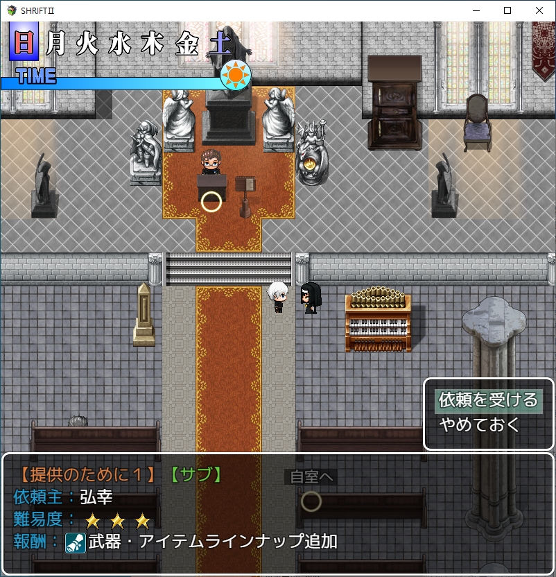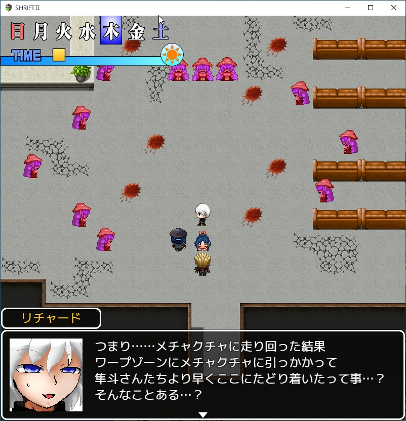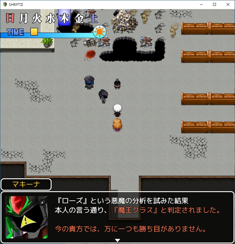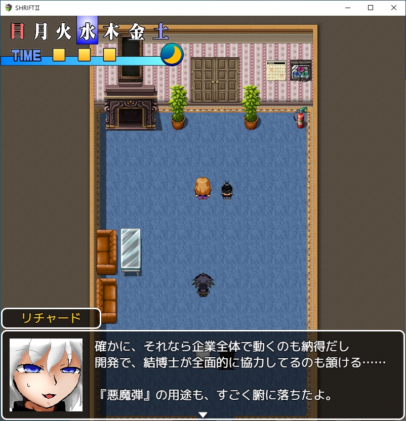 여긴 어디 난 누구이 퀘스트도 할 수 있고서브퀘도 생긴거 같은데좀 멍때리다보니 갑자기 챕터2가 시작되네요여긴어디2계속 이쪽을 응원해주네요곧 후임자들이 움직이기 시작할거라고 합니다그 날이 다가오고 있군요죄를 씻어야 합니다그리고 유이쪽에도 누가 왔는데마인도 이미 해석을 완료했나보네요대놓고 우릴 배신할거라고 하네요챕터2 회한입니다병원에 큰일이 생겼습니다 챕터1에서 마물병기가 떨어졌었죠시설에 교회의 인물이 자유롭게 다니게 하는 대신에 리쳐드가 오는걸 조건으로 달았습니다원래 스테이터스가 보였나 기억이 가물가물하네요이거 역시 사기적인 패시브였습니다근손실이 좀 났으니 운동 좀 조지고챕터1에선 안되던 서브퀘를 일단 하러 왔습니다악마와 계약을 하지 않고도 강력한 힘을 쓸 수 있게 한다고 합니다뭔 이상한 장치를 개발했나보네요골드와의 협력이 필요하고재료가 좀 필요하네요당장 급한거도 아니니 메인스토리를 밀러 가봅시다경찰이 아닌 스메라기가 와있다고 하네요유이가 개발중이던 대악마부대를 투입시킬 생각이군요직접 가봅시다안녕선발대가 들어갔다고 하네요조사를 위해 먼저 들어간 사람들도 돌아오고 있지 않습니다마키나가 있네요드디어 악마탄이 등장합니다무려 사장님이네요다만 회사내에서의 입지는 약한가봅니다회사내에서 입지를 다지기 위해 이 악마탄 개발이 꽤 중요한가봅니다스캔해보니 안쪽에 강한 적이 있다고 합니다그리고 이거던전 연출을 끄면 좀 낫습니다 너무 헷갈려요확실히 보기 좋네요근데 버그가 좀 있네요밤이라서 그렇고 낮에오면 됩니다낮밤도 있던거 깜박해서 갑자기 겜 난이도가 욀케 높지 했네요아침에 다시 옵시다사람도 무사히 있네요통로의 일부가 검은 곳은 달리면 다른곳으로 이동한다고 합니다걸어서 지나가면 문제가 없지만 이동하다가 적이 있다면 또 버그가 걸려버리네요이쪽은 미로입니다대충 잘 찍어서 지나가면1챕터 끝의 그 곳이네요상대는 마왕급입니다부유마가 반겨줍니다바로 쪽쪽 털리네요적이 꽤 많은데다행히 주인공이 도착합니다적들이 꽤 많습니다저거도 유이가 개발한 거였군요재버워크도 뜬금없이 있네요저 착정마는 죽으면 게임오버랍니다여긴 이미 구출할 사람이 남아있지 않다고 합니다중간보스로 나옵니다착정마치곤 꽤 셉니다안쪽에 오면 이미 난리가 나있는데리에가 와줘서 살았습니다 꽤 빠르네요달려서 워프존을 이리저리 헤매던 결과 주인공보다 빠르게 도착했답니다오우이름은 로즈입니다번호는 C네요꽤 유명한 마왕인가봅니다백마녀 루시에게 처발렸나보네요어쩌다보니 mow쪽으로 도망쳐서 살았나봅니다식사자리를 마련해주니 있었다고 합니다한마디로 백마녀가 무서워서 숨어있었단 소리입니다그리고 그는 뒤쪽에서 고통받고 있네요쾌락에서 벗어나기 위해 진정제를 계속 투여하고 있다는데 곧 죽겠군요사실 죽이라고 한건 리쳐드쪽인가 보네요덤으로 리에의 상관이였던 사카모토도 착정마에게 잡혀 죽었나봅니다이렇게 1챕터만에 죽을 줄이야리에를 도발합니다그와 똑같은 과오를 되풀이 하려고?분노하는 리쳐드마인에 연결된 악마도 영향을 받습니다살의에 말려드는 카게온나꽤 강력한 힘을 보여주지만 적도 만만치 않네요힘을 너무 쓴 나머지 움직이지 못하고 마인도 움직이지 않습니다다행이 사장이 오고미사일을 전부날려 위기를 모면합니다그냥가면 100퍼 처발린다고 합니다일단은 유이와 상담을 해야겠군요