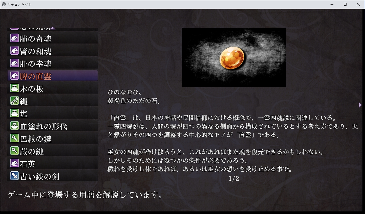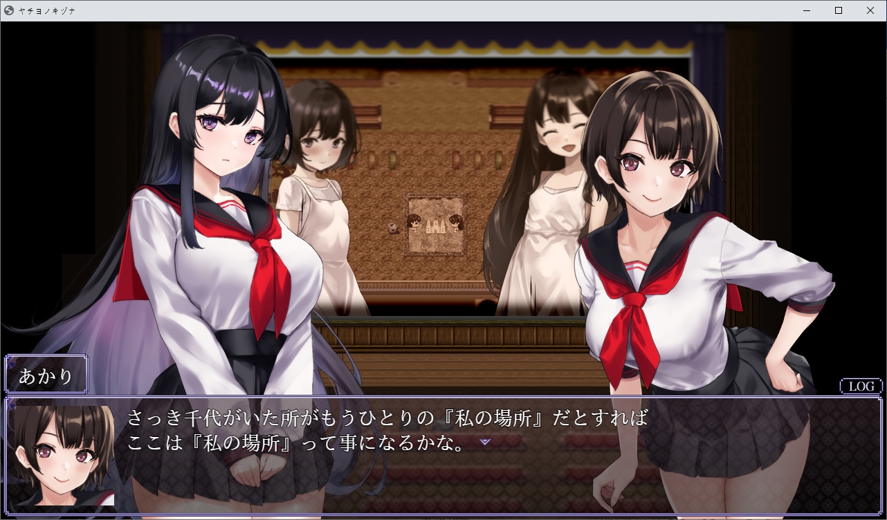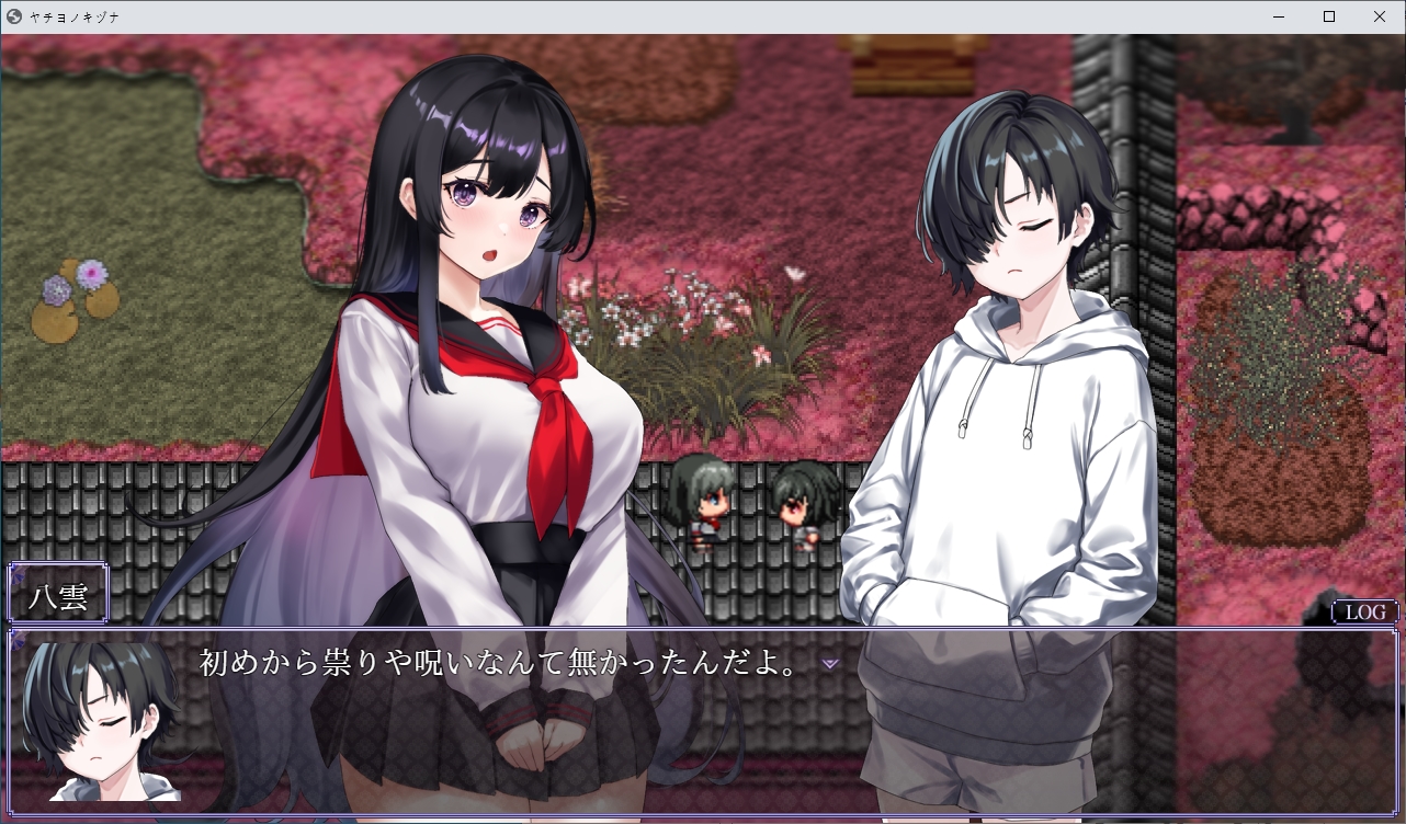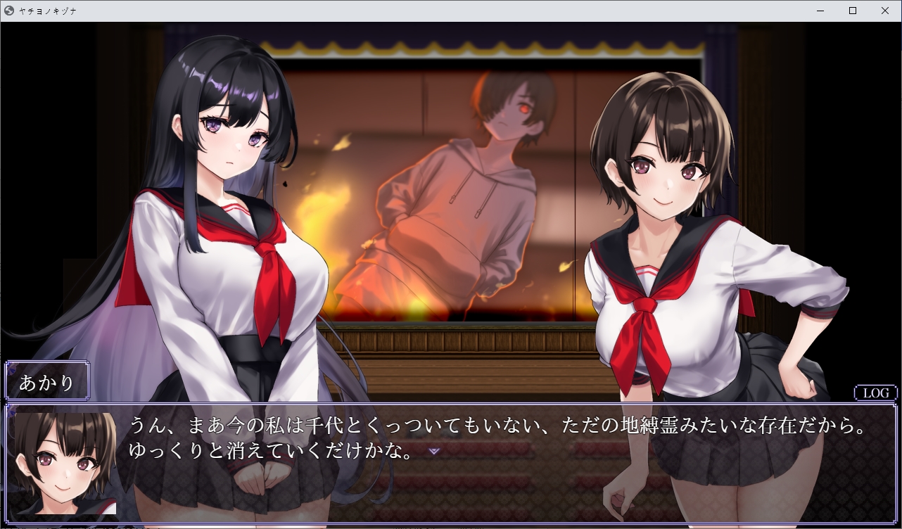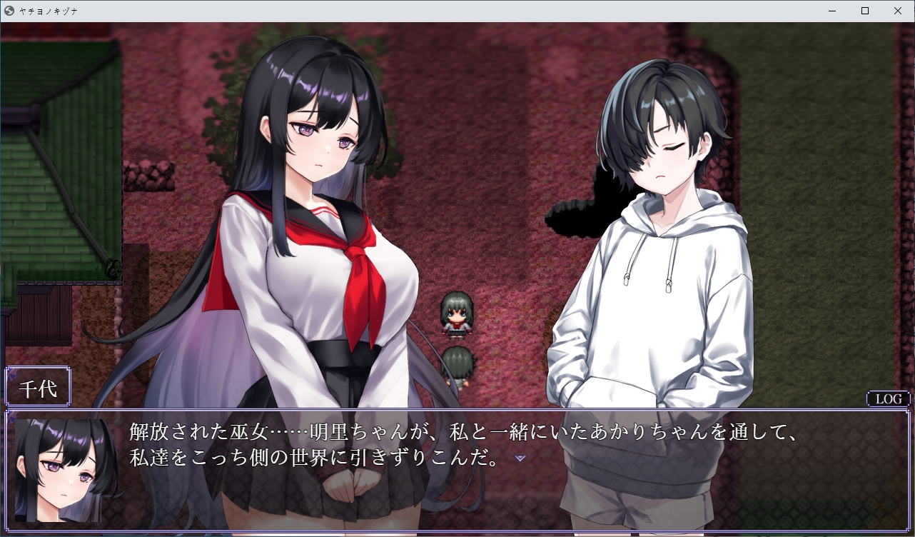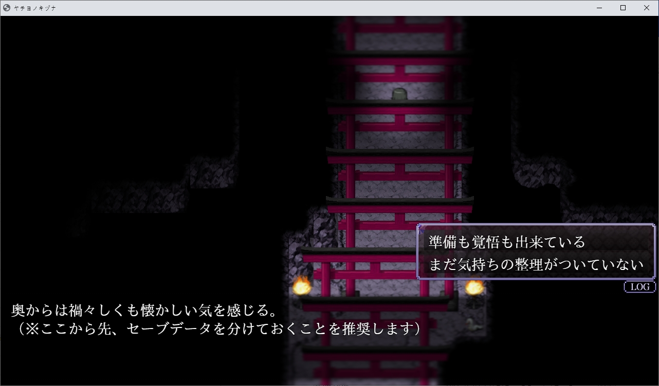 눈떠보니 이곳이네요밀고 나갑시다도망치라고 하던 초반의 그 쪽지입니다인형은 뭔가 했더니 사실 전생에 가지고 놀던 인형이였네요못들어갑니다오른쪽으로 가보니 아카리가 제물로서 끌려가고 있습니다쫓아갑시다 여긴 뭐 있을거 같이 해놓곤 없더군요끝까지 가면 의식을 볼 수 있습니다어우심?장이걸 들고 튑니다불이 꺼져서 잘 안보이지만왔던 곳을 더듬어 돌아가면 됩니다하지만 꿈속처럼 갇히게 되고뱀이 유키를 구하려다가 죽게 됩니다아유키는 흑화하고 모두를 저주합니다그리고 아카리였던 것을 먹고 우물속으로 빠집니다하지만 사실은 저주같은건 없었습니다그냥 이 곳 자체가 위험한 곳이였지만 아무도 말을 듣지 않습니다화산의 유독가스가 마을에 퍼졌던 것이였습니다한번씩 화산활동이 일어나서 가스가 차오르던 것을 저주라고 생각하고 있었습니다하지만 해당 사건으로 인해 사람들이 이성을 잃어버려 여기서 다 죽고 말았군요유키가 아카리의 일부를 먹음으로서 혼의 일부가 유키에게 묶여서대충 이런식이 되었습니다그래서 원래는 여기 있던 잔류사념들을 성불시키려고 했지만아카리가 유키쪽의 아카리를 통해 뭔 일을 저지른 것이였습니다손에 있던 아카리였던게 형태를 바꿔칼이 되었습니다이 검으로 아카리를 베면 됩니다놓친 파일들은 야쿠모가 챙겨왔습니다위쪽에 동굴이 있습니다이젠 모두를 베어버리고 진행이 가능합니다무다무다무다무다여기서 저장을 꼭 해둡시다이걸 쓰면서 엔딩을 바꿔 볼 수 있습니다나가면 아카리가 묶여있고다른쪽의 아카리가 나타납니다4개의 구슬을 3번치면 부숴지는데골고루 때려줍시다하나 부숴질때마다 적이 더 튀어나오기 때문에 골고루 쳐야합니다마지막건 거매서 잘 안보였습니다둘다 아카리라 베지 않았습니다 베면 다른엔딩이 나옵니다묶여있는 쪽이 가짜입니다중간부터 음양이 반전되었기 때문에 아카리쪽도 반전되었던 것이였습니다이런 들킴 아카리가 뱀이라는걸 보니 저쪽도 흰뱀의 환생이군요자기자신을 질투하고 있네요뭔가 표시를 해준다고 하는데저 별들을 주으면 됩니다다 조사하면 결계가 쳐지고아카리를 공격할 수 있을 줄 알았지만 튕겨냅니다계속 반복합시다난이도가 점점 올라갑니다영혼같은건 무시하고 베어냅시다그러면 뭔가 영화관같은 곳으로 오는데이쪽의 아카리가 나타납니다사실 유키가 혼자였던거와 어릴적 남자에게 덮쳐지려고 했던거도 모두 아카리가 했던 짓이였네요무슨 얀데레 수준이네요저쪽의 아카리도 사과합니다뭐 딱히 원한도 없고 지박령 수준에서 점점 사라지던게 자기 자신보고 질투해서 이 사단이 난거였습니다이제 눈을 뜰 시간입니다여기서도 엔딩 분기가 있습니다만 저장이 안됩니다눈을 뜹시다다시 일상으로 돌아왔습니다야쿠모도 있네요아카리가 실제로 있었던 사람인지 긴가민가 했지만 야쿠모가 잘 찍어줬었네요타이틀도 변하면서 좋은 엔딩이였습니다로드해서 2회차를 하면창고쪽이 돌아와있는데여기서 돌을 주을 수 있습니다참고로 진상을 알고 난 뒤 우물을 조사하면 전생의 시체를 구경가능합니다....대충 더러움으로 물든 몸이 있다면 무녀를 받아들일 수 있다고 합니다이걸 쓰라는 뜻이네요그전에 죽 돌아와서 아카리와 대화중 취소키를 계속 누르면 떨어지지 않는다를 고를 수 있고둘이 같이 죽으면서 야쿠모는 모두를 구할 수 없었습니다침울하게 있지만 이쪽도 어캐어캐 다시 전생해서 살고 있네요더러움이 가득찬 몸으로 무녀를 받아들이면아이템 없을때와 있을때와 엔딩이 다릅니다유키의 돌이 빛나면서임신을 하게 됩니다메스가키로 환생한 아카리하는말 보니 전생의 기억은 있나봅니다둘이 결혼이나 하라고 합니다