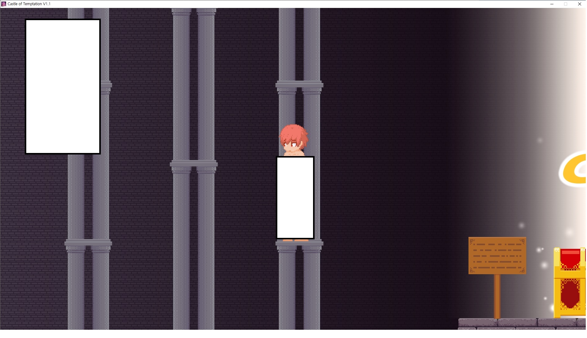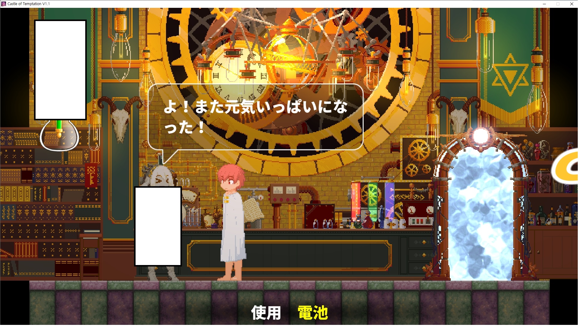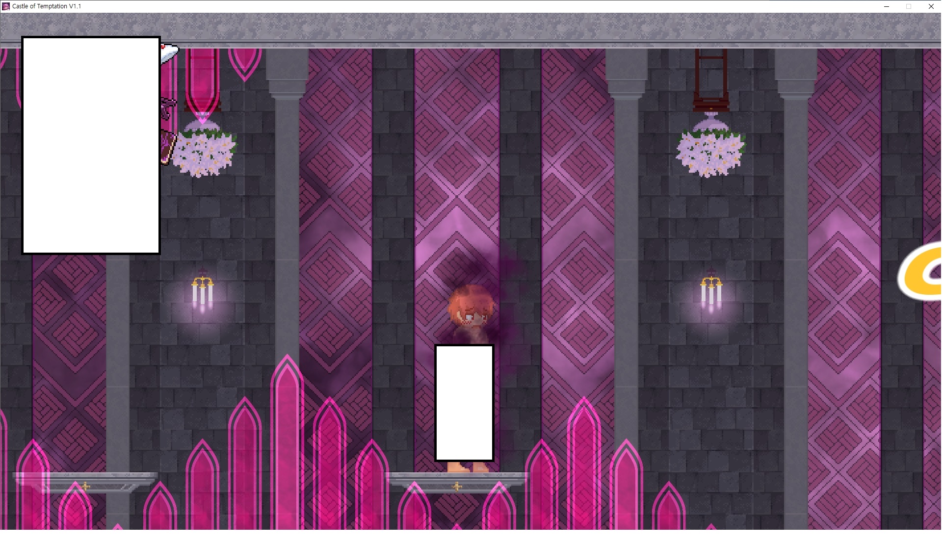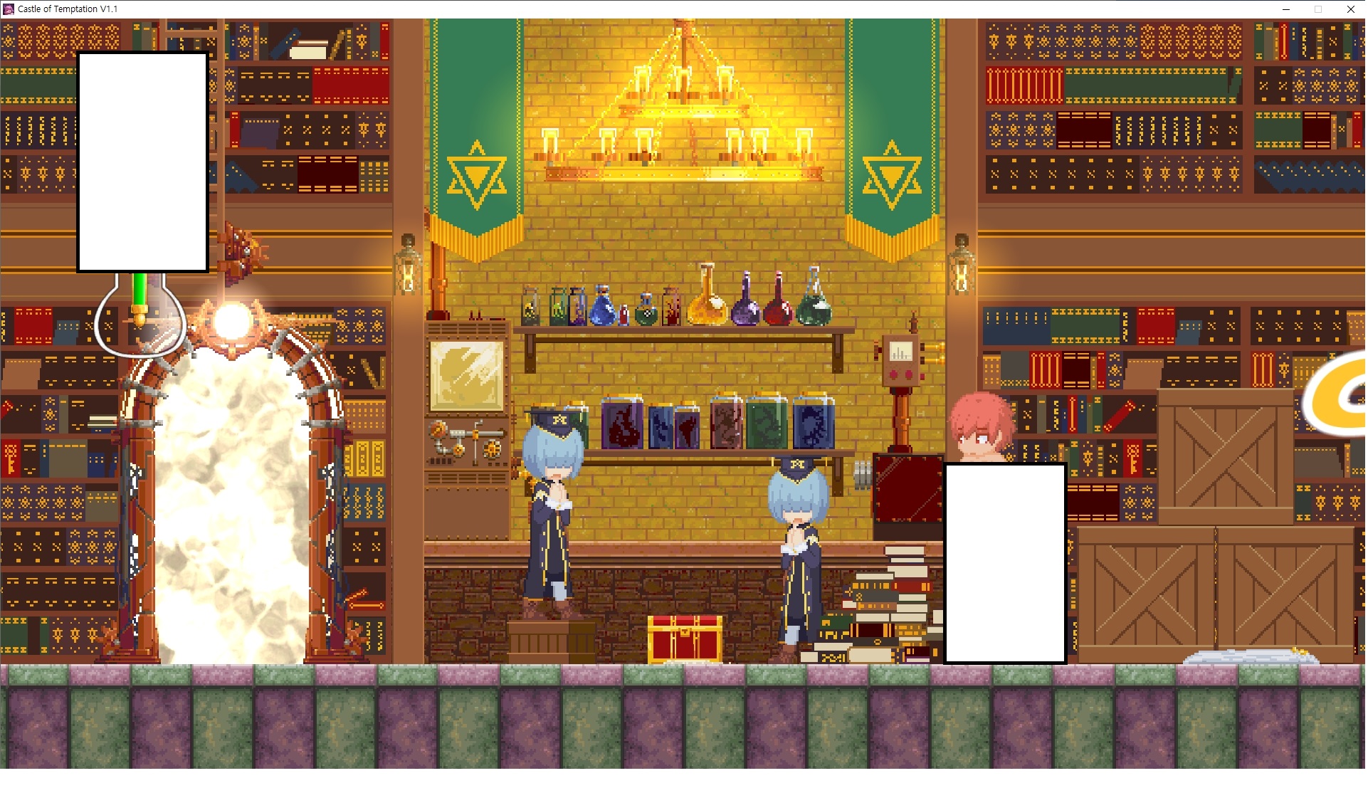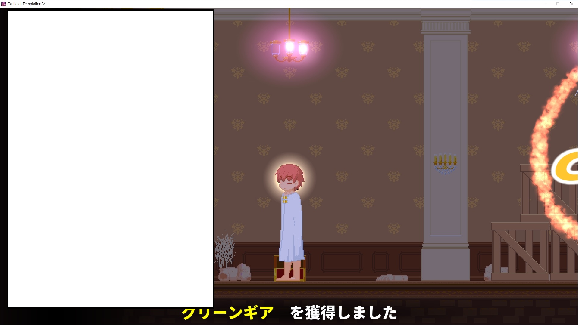 다시 처음부터여기 미믹방에서 위로 올라갑시다왼쪽에 비밀길이 있습니다죽가면 열쇠를 얻고갑자기 어두워지는데오른쪽으로 죽 달려서 도망치면 됩니다클리어하면 이렇게 열쇠가 나옵니다인형의 방은 여기 아래 상자를 치우면 길이 하나 더 있는데왼쪽 복도에서 인형이 튀어나오는길을 피해 뒤로 가면 됩니다상자를 밝고 넘어가야하나 싶긴한데 전 손에 맞아서 무적시간때 지나가졌습니다여기서 기어를 얻으면여기로 돌아오게 되고 열쇠를 얻을 수 있습니다다음은 이곳여기 점프해서 올라가면 뭔갈 조사할 수 있는데조사하면 워프가 켜집니다여기 빛에서 계속 조사하면 책상을 던질 수 있는데 그냥 던지면 죽고야스 한판 조지게 만들어 저기 앉게 만들고그 뒤에 던져주면 됩니다잘가고전지를 얻을 수 있고이걸 끼워주면열쇠로 가는 길이 열립니다여기도 온김에 3번 다 같은 곳으로 가봤습니다최종에리어는 매우 어렵다는데보스급 적이 나와서 대적합니다다만 몸이 철로 되어 있어서 자석을 켜주면 아무것도 못합니다그냥 평범히 걸어서 기계만 켜주면 깰 정도로 쉽더군요같은 곳을 3번 깨야만 도달하는 장소도 있네요뭐 별건 없었습니다여기도 최대한 날먹을 해보려고 했는데꽤 어렵더군요너무 일찍가면 닿아버려서 죽습니다계속 하다보니 되긴하더군요 날먹하는 단계가 장난이 아니기 때문에 낫긴합니다일단 되돌아가서죽 뒤로가서여기서 벽이 하나 튀어나오는데 이 뒤에 있습니다먹어둔 뒤다시 여기로이번엔 함정이 있는걸 아니까 뛰어서 넘어가줍시다무사히 탈출했습니다다시 그곳으로위서를 써서 지나갈 수 있습니다세이브장소가 있고여긴 피지컬로 넘어가야합니다살짝만 닿아도 바로 죽으니 어렵더군요어캐어캐 통과했습니다여기서 다시 정화해주고지나가면보스를 만날 수 있습니다저 랜턴이 다 꺼질때까지 버티면 됩니다공같은걸 피하면 되는데 옷을 총 4번 주니 4목숨입니다피지컬을 믿어요마지막의 발악패턴도 있습니다클리어 하면 열쇠를 쓸 수 있습니다이분은 츤츤 거리면서 같이 잘 있어주네요이쯤이면 한판 해주겠지?안해줍니다참고로 저거고르면 첨부터 해야됩니다....로드해서 올라가면?어우죽죽 위로 갑시다크게 어렵진 않더군요더 위로가면박쥐가 나와서 도와줍니다뭔가 멀쩡해졌네요이런저런 이야기가 있는데뭔 말인진 모르겠습니다대충 여기 성주가 성모의 유체를 가지고 뭔갈 했나봅니다그리고 영웅의 피로 클론을 만들어서 그 힘을 흡수하려고 한거 같네요이젤이 데몬족이고 데몬족이 평화가 싫어서 반란을 일으켰나봅니다해서 사실 지명수배당하고 있었네요이분이 조사하러 왔었나 봅니다저희가 성모랑 노는사이 튀었나봅니다반쯤 시설자첸 구라였나보네요그리고 원래 성주는 이분이였습니다하나하나 물어보고이분의 이름은 아이시스인가보네요 즐긴뒤에잘 도망가면 됩니다프리모드가 열립니다기억실이라던가 있고엔딩 그림을 구경도 할 수 있습니다친절히 수집품 위치도 적혀있고 얻기만 하면 탈출해도 획득한걸로 쳐준답니다