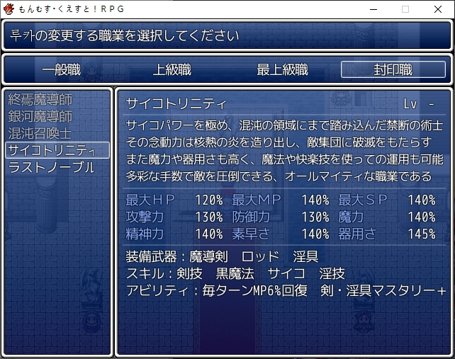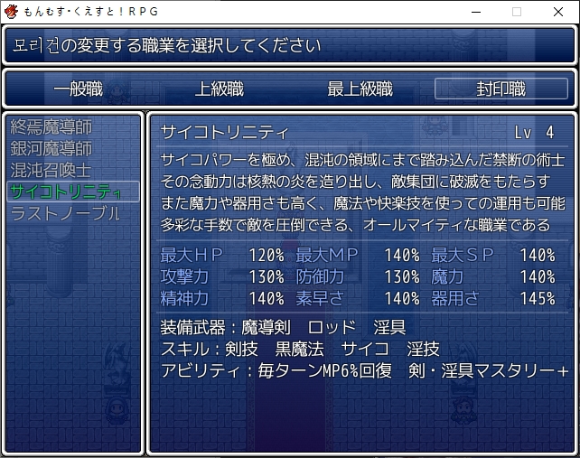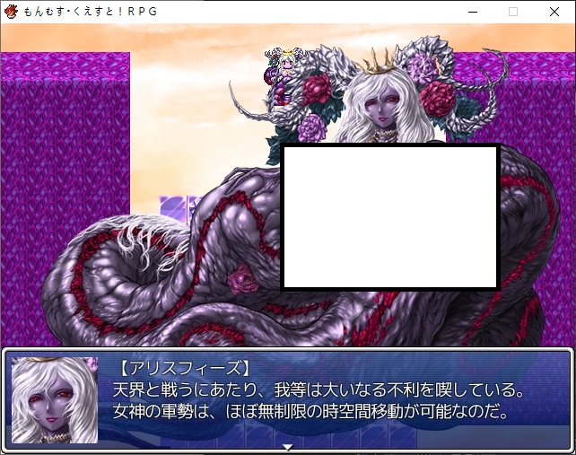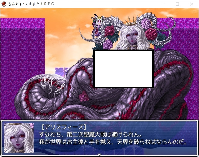 파괴자의 길을 선택해봅시다바로 깽판칩니다정사의 루트처럼 인조마물들이 공격해옵니다그란베리아가 없기 때문에 얜 놀고 있습니다거기에 라파엘이 실체화해서 공격해옵니다다만 좀 봐주더군요난리가 나는 마왕성라파엘은 리리스 세자매가 상대하려는데이쪽도 있었죠 참해치우니 또 적을 상대해야합니다연전에 연전을 거듭하는 와중 재천대성이 나타나고흑의 앨리스 쪽이 도와줘서 도망을 칠 수 있게 되었습니다에덴이 쫓아오고저쪽세계에선 롱기누스가 건재하기 때문에 날리려는 찰나이리아스가 막습니다덕분에 도망을 치게 되는데 갑자기 백토가 튀어나오네요하늘에서 나타났다가 떨어지고다시 나타납니다준비가 안된거 같으니 좀 있다 가려니그딴거 없고 걍 보냅니다천계의 파괴자 루트입니다사신성으로 이동을 하게 되고마왕은 종국으로의 스위치 카오스를 일으키는 존재라는데 흠..어쨌든 사신을 만나봅시다15세가 실종된건 백토가 데리고 이세계를 보여줘서였군요그렇게 이세계의 끝을 보았기 때문에 이런 길을 선택한거 같습니다딸에게 이런 길을 걷게 하지 않도록 마왕자리를 뺏었습니다또한 이곳도 마찬가지로 차원크랙이 발생하는데어떻게 막고 있나 했더니 그 주위의 시간을 멈춰서 시간을 끌고있었습니다당연하지만 근본적인 해결책은 되지 않습니다대충 3개월정도면 마력이 바닥날거라고 합니다그래서 합일계획은 반드시 실행되어야 합니다결국은 제2차 성마대전은 피할 수 없게 되었습니다문제는 저쪽은 무제한으로 시공간을 이동할 수 있습니다이 세계는 존재하지 않는 코어를 천계는 가지고 있습니다루카는 시공의 문을 여는 능력이 있으니 루카를 필두로 천계를 침공하려고 합니다사신도 최대한의 지원을 해준다고 합니다리리스들은 멀쩡히 있네요타마모도 만납니다에스터의 타르타로스를 이용해 천계로 가려고 합니다그랜드노아의 여왕이 거기로 갈 수 있는 방법을 찾았다고 합니다일단은 이정도만 준다고 합니다먼저 15세가 뺐었던 힘을 되돌려주는데오오 드디어그리고 15세가 쓰던 무기도 줍니다암흑의 세례도 주는데루카는 어둠의 용사가 되었습니다또한 직업아이템을 줍니다거기에 최상급직의 더욱 상위직인 봉인직이 해금됩니다어둠의 봉인옥을 받게되고루카를 왜 자꾸 파괴자라 부르나 했더니 15세가 보고온 가능성에는 루카가 파괴자가 되어있었다고 하네요전작의 6색을 넘은 8색의 힘을 다뤘다고 합니다어쨌든 가능성의 미래니 어떻게 될진 아무도 모른다고 합니다마계를 관광할 생각에 들뜬 모리건이지만 마계자체는 못들어가더군요어떻게 돌아가나 했더니 루카가 있다면 이동아이템으로 돌아갈 수 있을거라고 합니다다른 지원이 있으니 성내를 돌아다니라고 합니다마왕이 해금되었고어떤 봉인직들이 열렸는지 구경하러 갑시다텅텅주로 마법계열의 봉인직이 열려있습니다종은 앨리스가 열려있네요또한 힘이 돌아왔다는 릴리스 세자매들도 혼자 다른 봉인종을 들고 있습니다타마모에게 돌아가면 아이템들을 줍니다그리고 비석도 받습니다이런저런 추가 설명도 들을 수 있는데대체 8색의 힘이 뭔지 이쪽도 잘은 모릅니다8속성은 있긴 하니 이게 아닌가 싶긴한데무엇보다 얼음과 전기의 정령이 없습니다또한 천사의 피가 흐르기에 천사의 힘은 있지만 어둠의 힘이 없습니다롱기누스 자체는 천계빼고는 위험하다고 다 부쉈네요육조도 말이 통하는건 3명이고 나머지는 좀 위험하다고 합니다비석은 걍 소켓에 넣는 인첸트템 같은겁니다다만 효과들이 나중거는 점점 인플레가 미친듯이 오더군요이분도 이야기를 하면 정령템들을이분은 천계의 식물에 흥미가 있다면서 구해오라고 합니다이쪽의 마족에게는 종장의 시스템에 대해 들을 수 있습니다부스트가 동시에 효과를 발휘한다던가체인스킬이라던가 중요한 정보도 있더군요무엇보다 체인기로 나가는 스킬은 소비 기력과 마나가 반이 된다고 합니다 꽤 큽니다취소도 가능하긴 합니다밖으론 못나가던데 다른 루트도 해보면 이유를 짐작할 수 있습니다